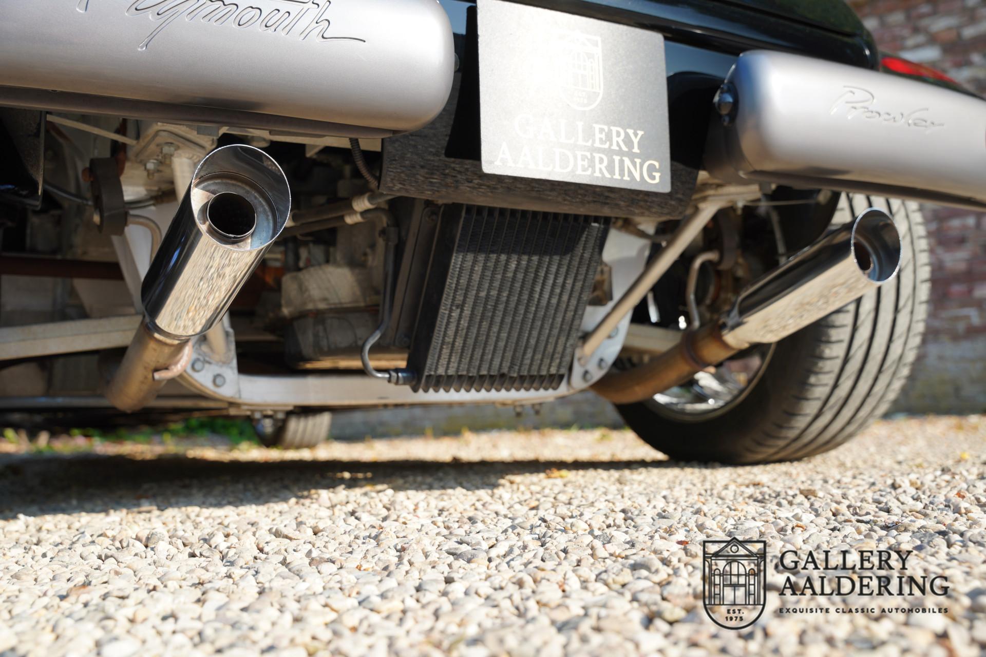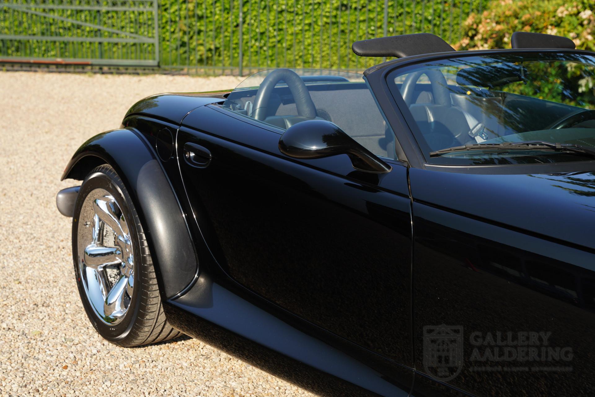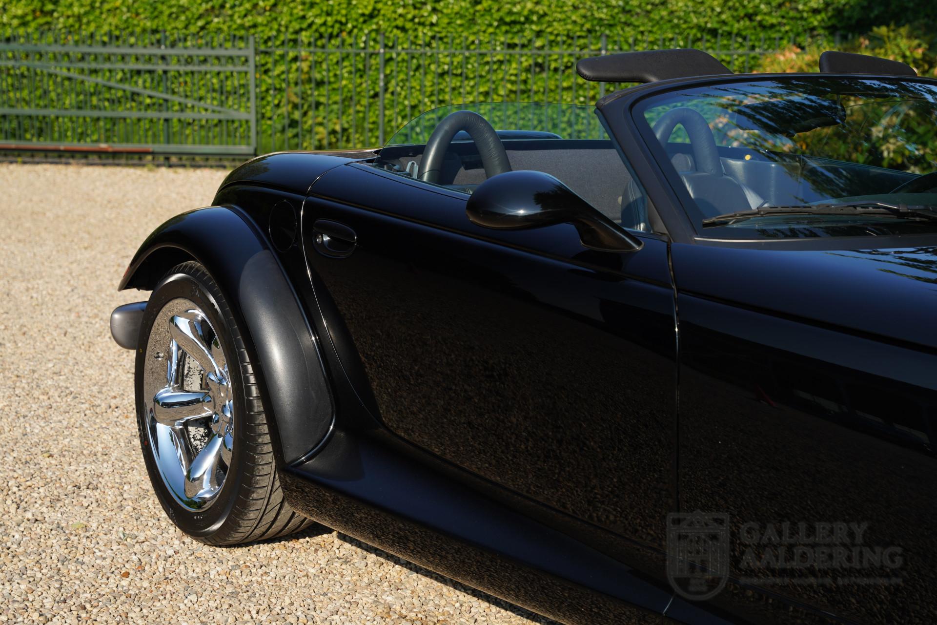 The Prowler we are offering is slightly newer, precisely two years newer. Finished in black paint with black leather, it is a direct retro version of the 30's Hotrods. Imagine some airbrushed flames on the front, and the picture is complete.