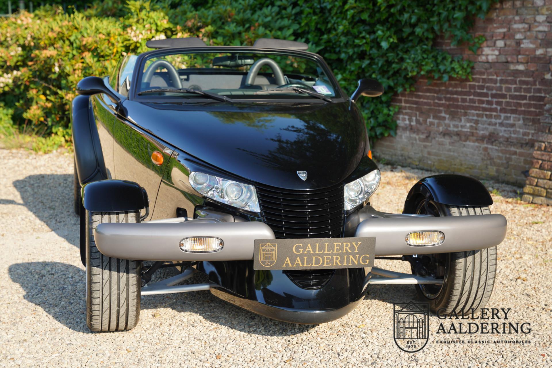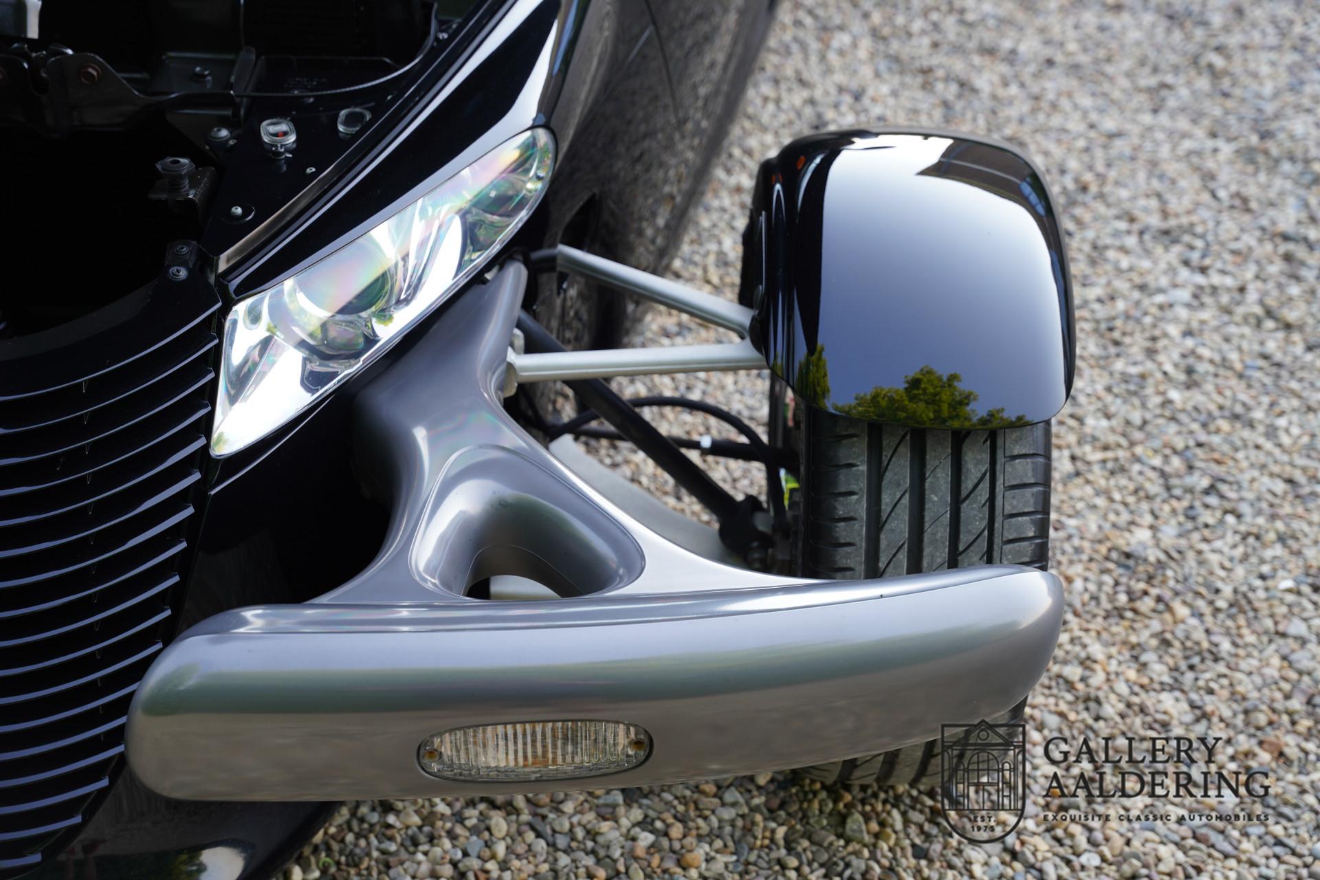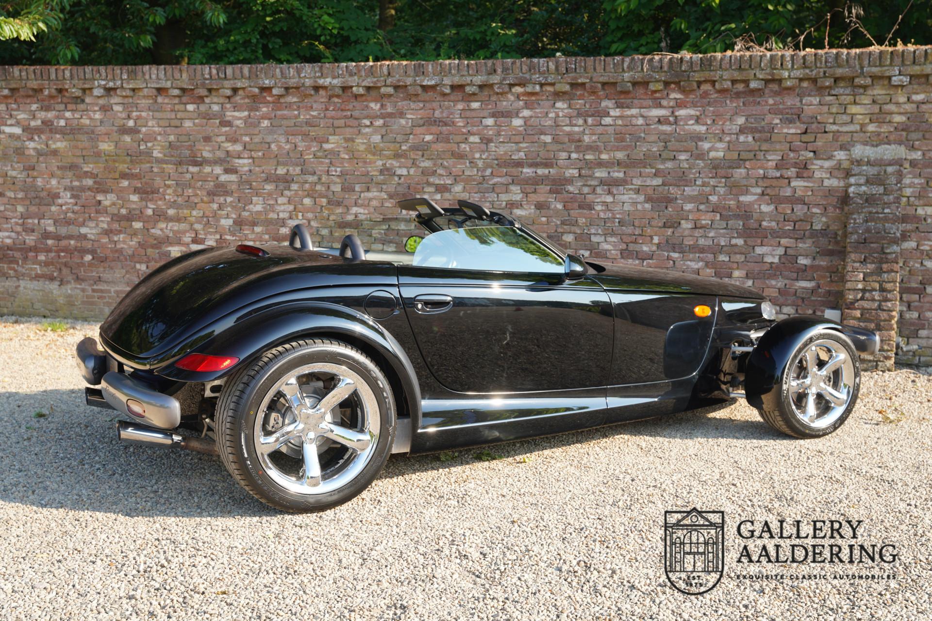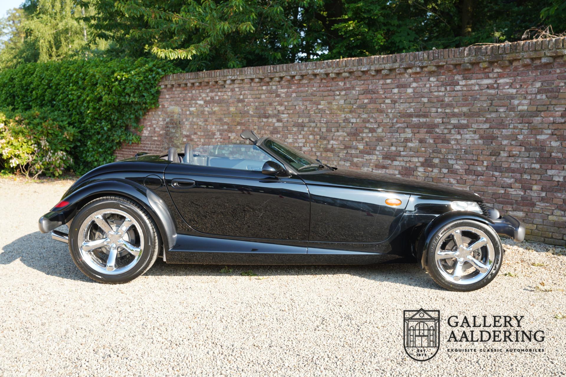 The Prowler we are offering is slightly newer, precisely two years newer. Finished in black paint with black leather, it is a direct retro version of the 30's Hotrods. Imagine some airbrushed flames on the front, and the picture is complete.