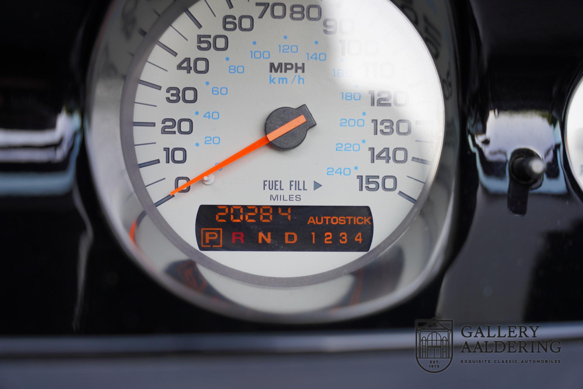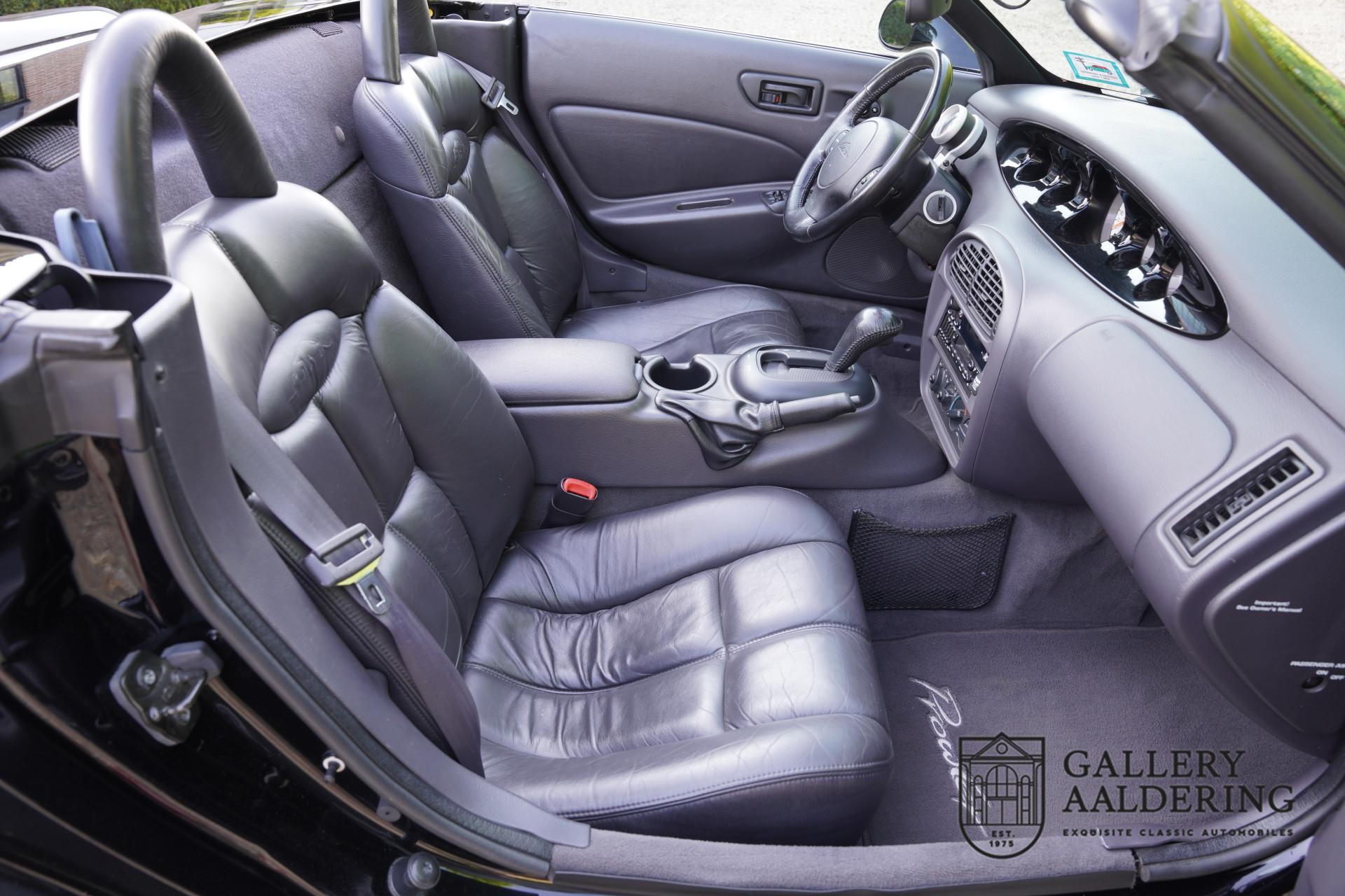 This Plymouth has only covered 20,451 miles and is therefore in practically new condition. The car's appearance reflects its condition; the paintwork and wheels look fantastic. The beautifully visible front suspension also shows that this car hasn't experienced much wear and tear during its show-stopping career. The Prowler is a typical “love it or leave it” kind of car, and we've noticed in the showroom that there are fortunately more people in the former category.