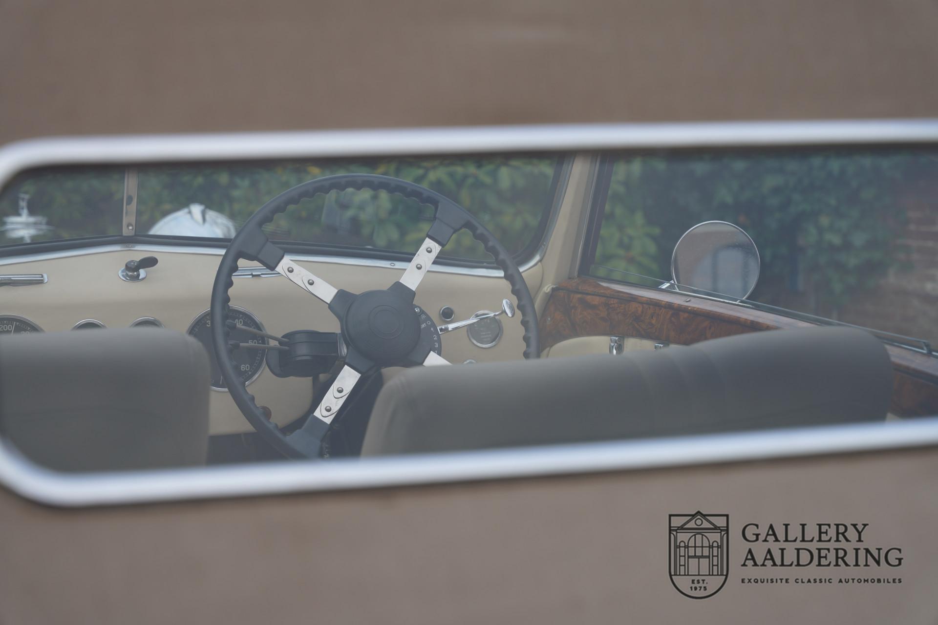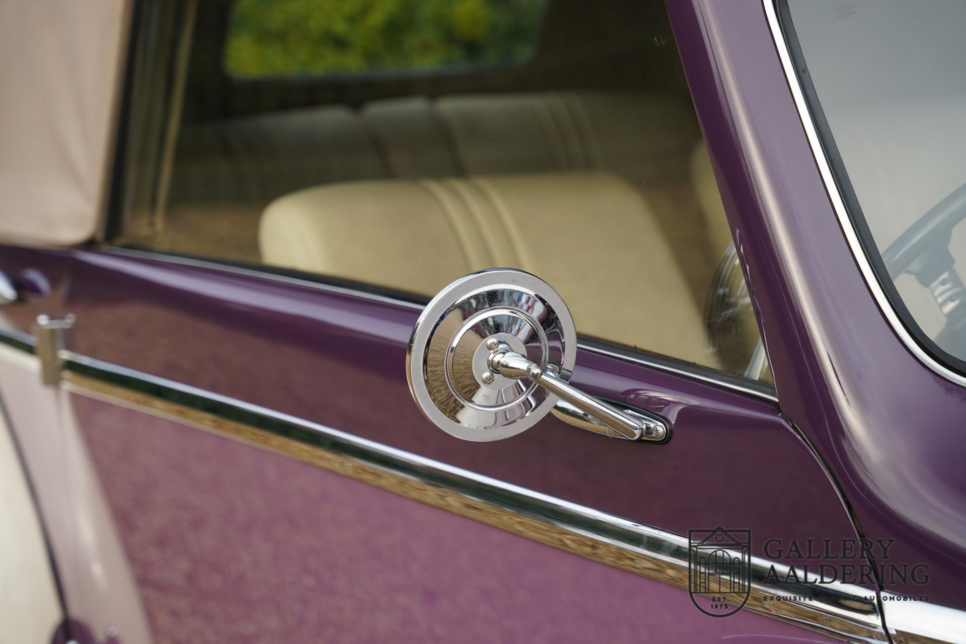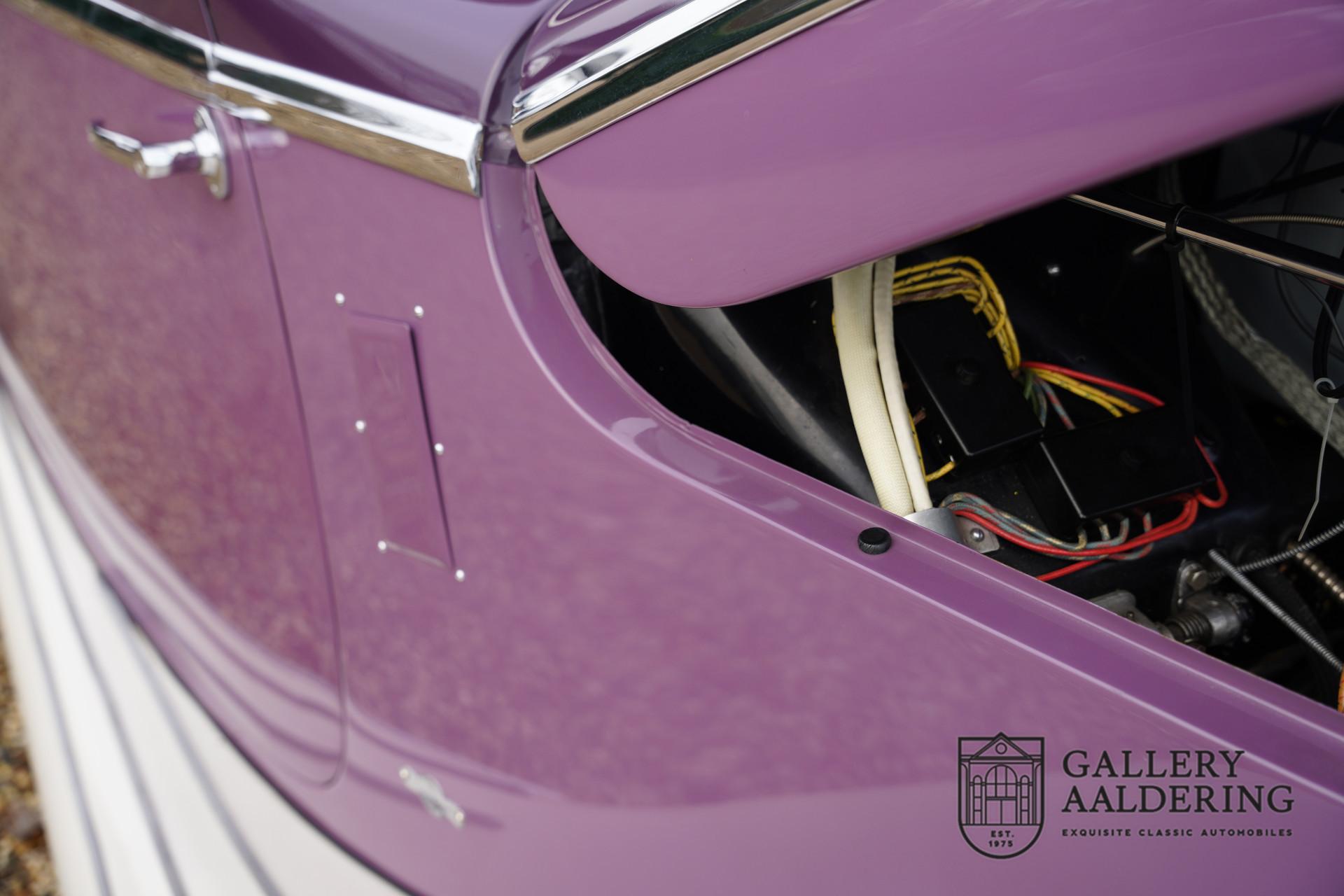 In the 1990s, the car was found by a collector who found the car as a Faux Cabriolet, or a car with a fixed roof, resembling a convertible top. As a seasoned collector and restorer, the car aroused his curiosity and he decided to buy it. His suspicion that it was a real convertible was confirmed after some research. The entire hood construction was hidden under the 'fake roof' and discovering this ensured that the restorer did not hesitate for a minute and decided to restore the car to its full glory.