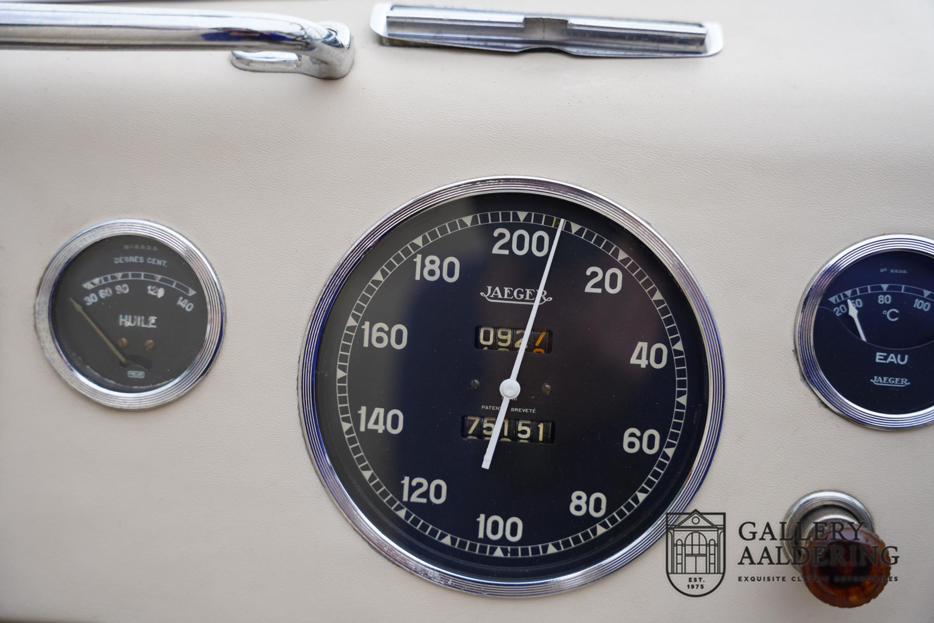 The 4,482cc 6-cylinder engine with 2 Zenith-Stromberg carburetors delivers 172 hp at 4,200 rpm and feels good. The Talbot-Lago has an independent front suspension with four drum brakes.