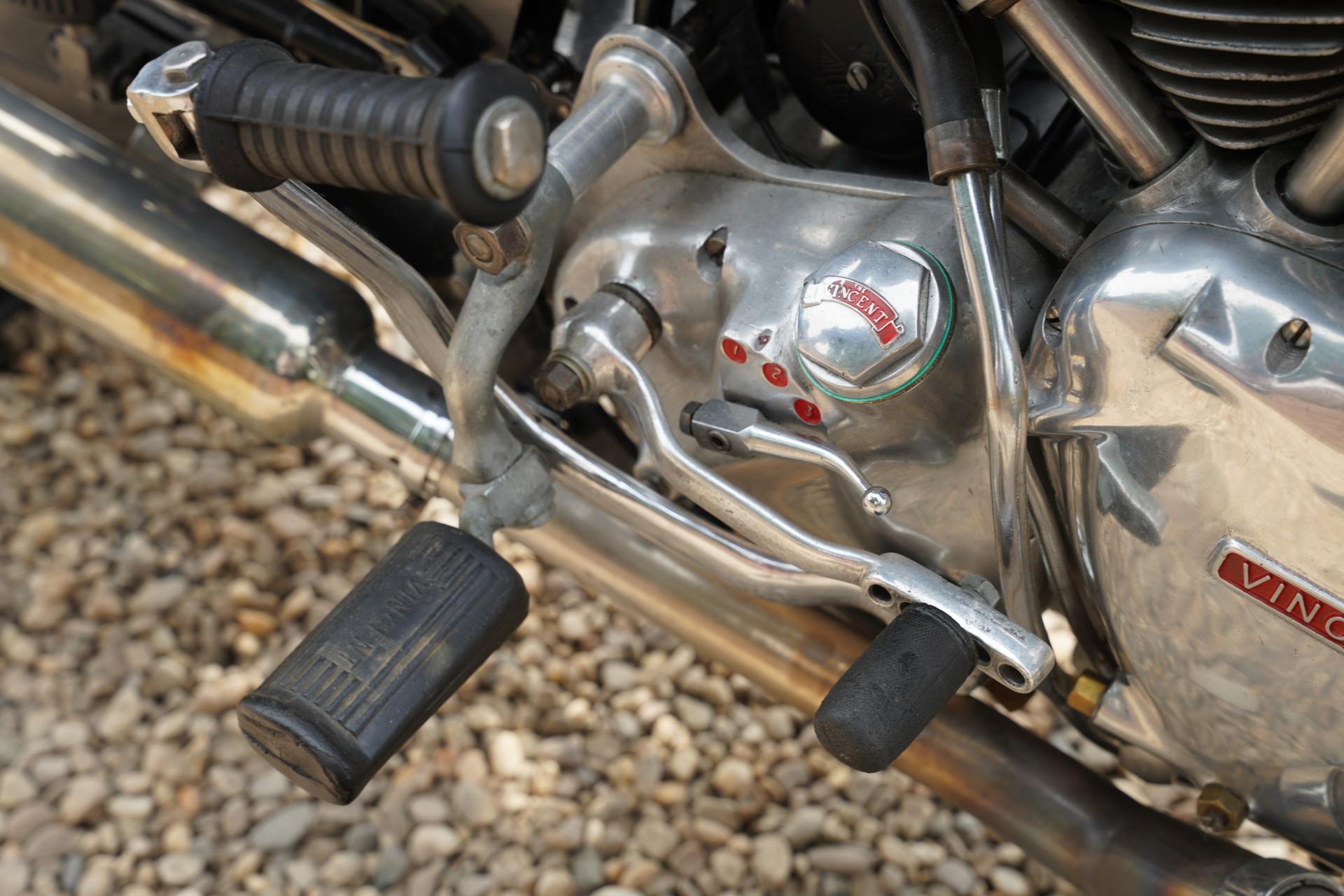Back in the day, the earlier A-Series Rapide faced what was affectionately called the “plumber's nightmare,” due to its externally routed oil systems that often leaked. This issue was resolved with the B-Series, where the oil channels were concealed, and the design became much cleaner and more efficient. However, in the United States, Vincent was often associated with Harley-Davidson because of the HRD badges on the bikes. With the introduction of the C-Series, like this model, those badges were modified, and the Vincent Rapide stood on its own as a brand of quality and superior engineering.