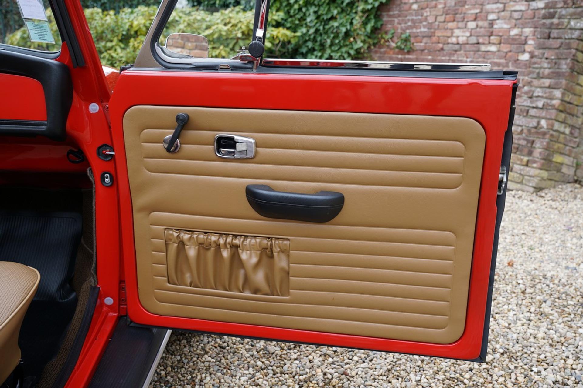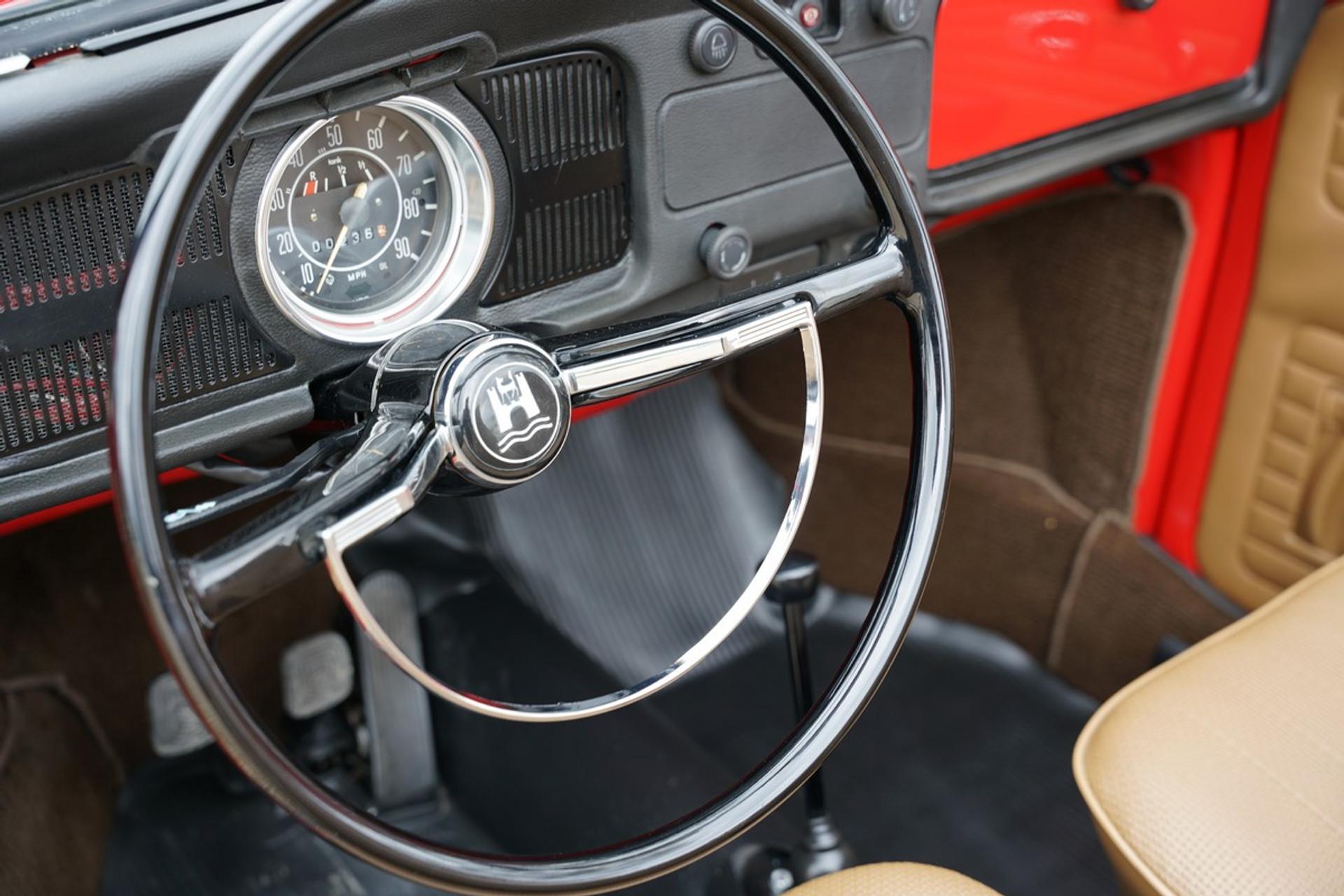 Mechanically the car was wholly taken apart during the restoration. The 1600cc engine has a Solex carburettor fitted, the transmission is by means of a manual 4-speed, The smooth running engine produced 51 Ps. The fully overhauled manual gearbox means you will have no trouble at all in selecting the correct gear. At its inception the Super Bug was famed for its vastly improved handling in comparison to the standard Beetle. The McPherson struts aid stability and cornering. Four drum brakes are perfectly adequate. Whilst driving a Beetle your heartbeat drops a bit and you then can fully enjoy the relaxed experience that accompanies driving a Beetle with the hood down.
