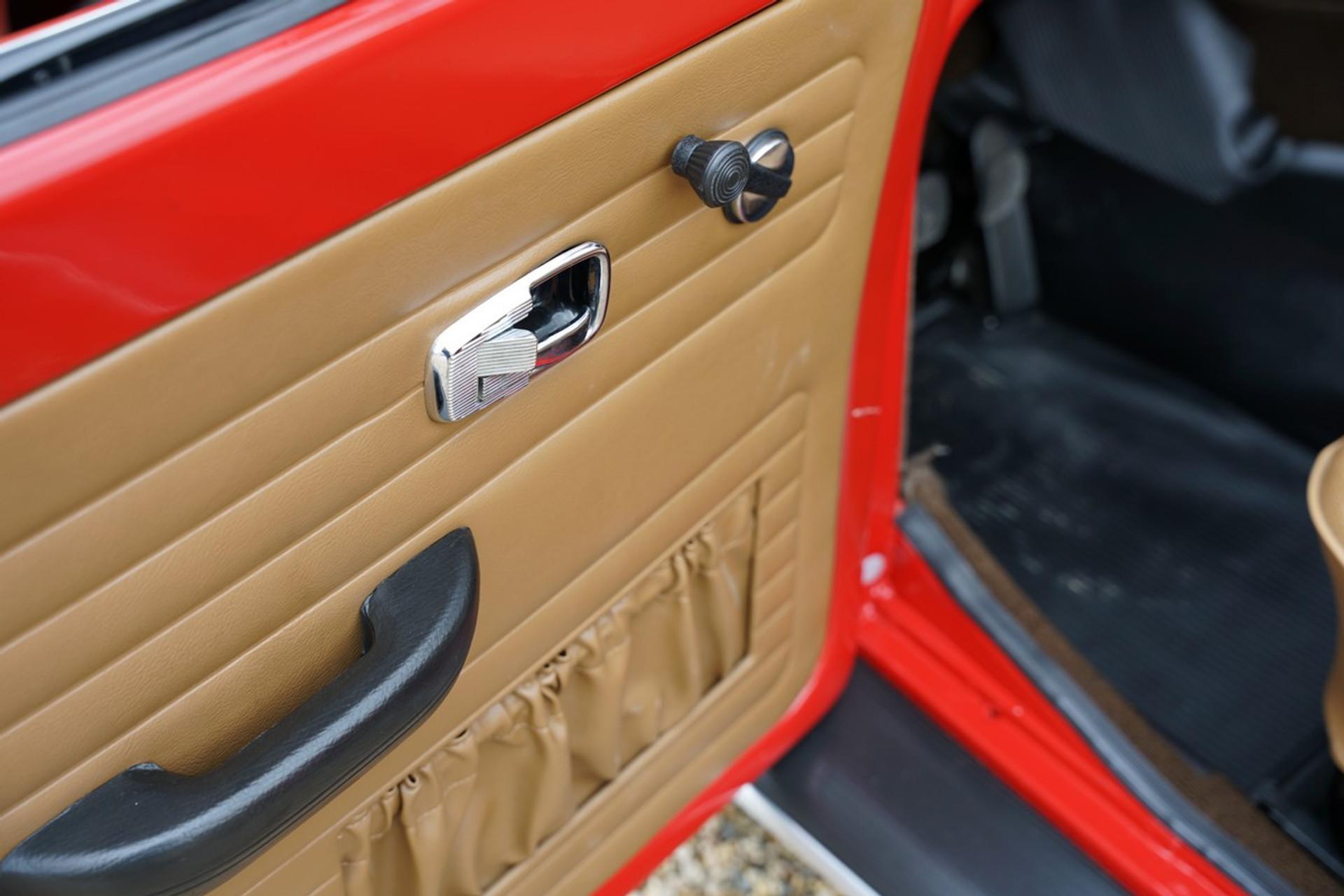 The interior was completely reupholstered. Again the work undertaken was done very much in keeping with the original concept in mind. The seats and door cards were done in brown vinyl. New carpets and a dashboard were fitted. Doorhandles, window handles and lock were also replaced. The car sports a beautiful steering wheel and gear knob inclusive of the Wolfsburg logo.
