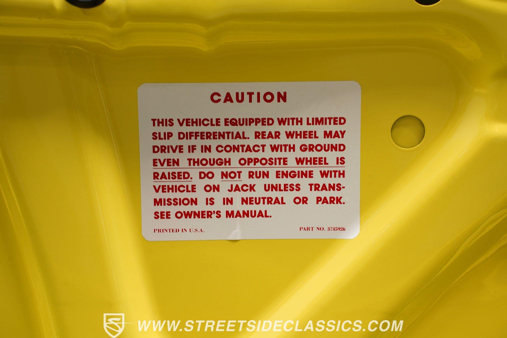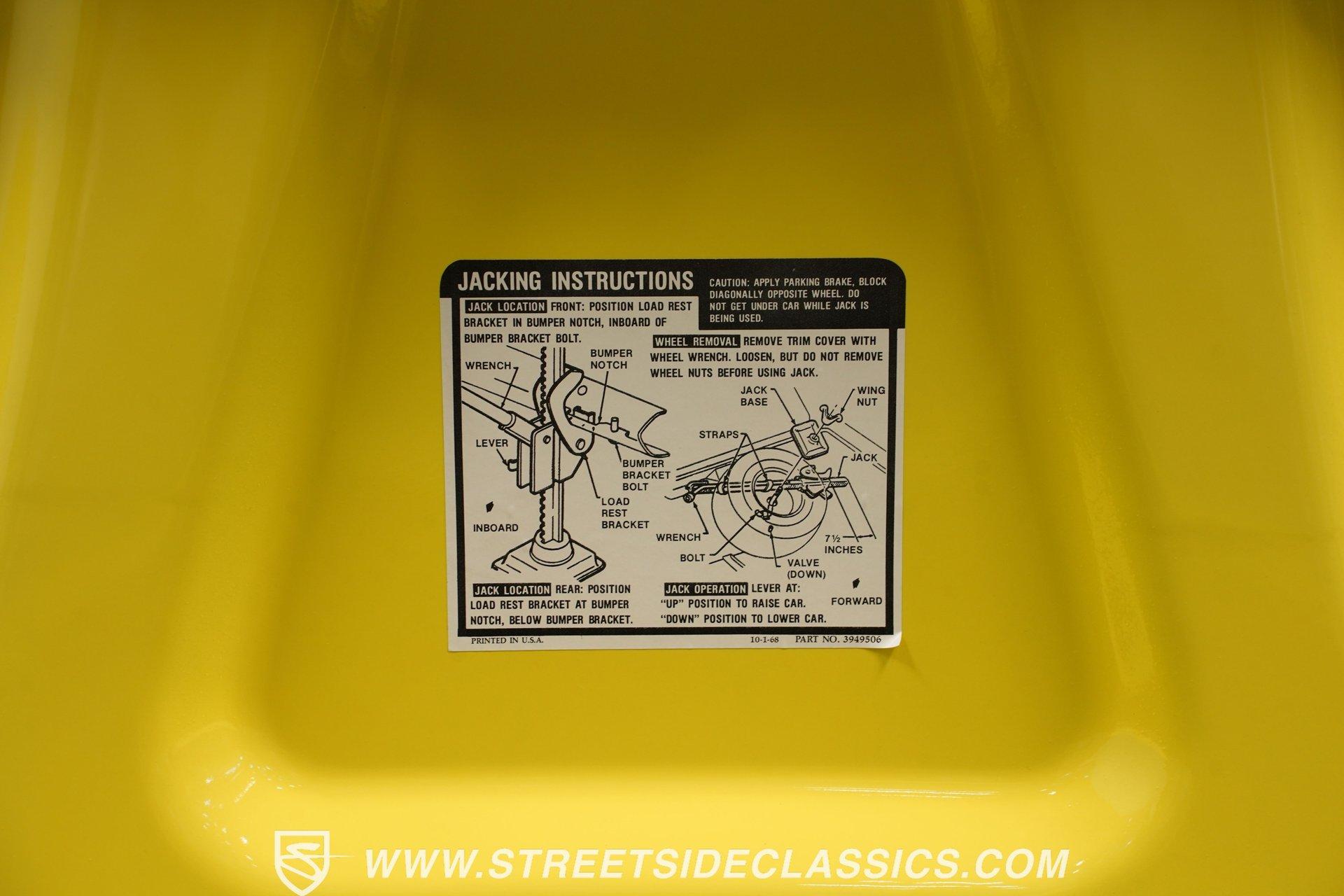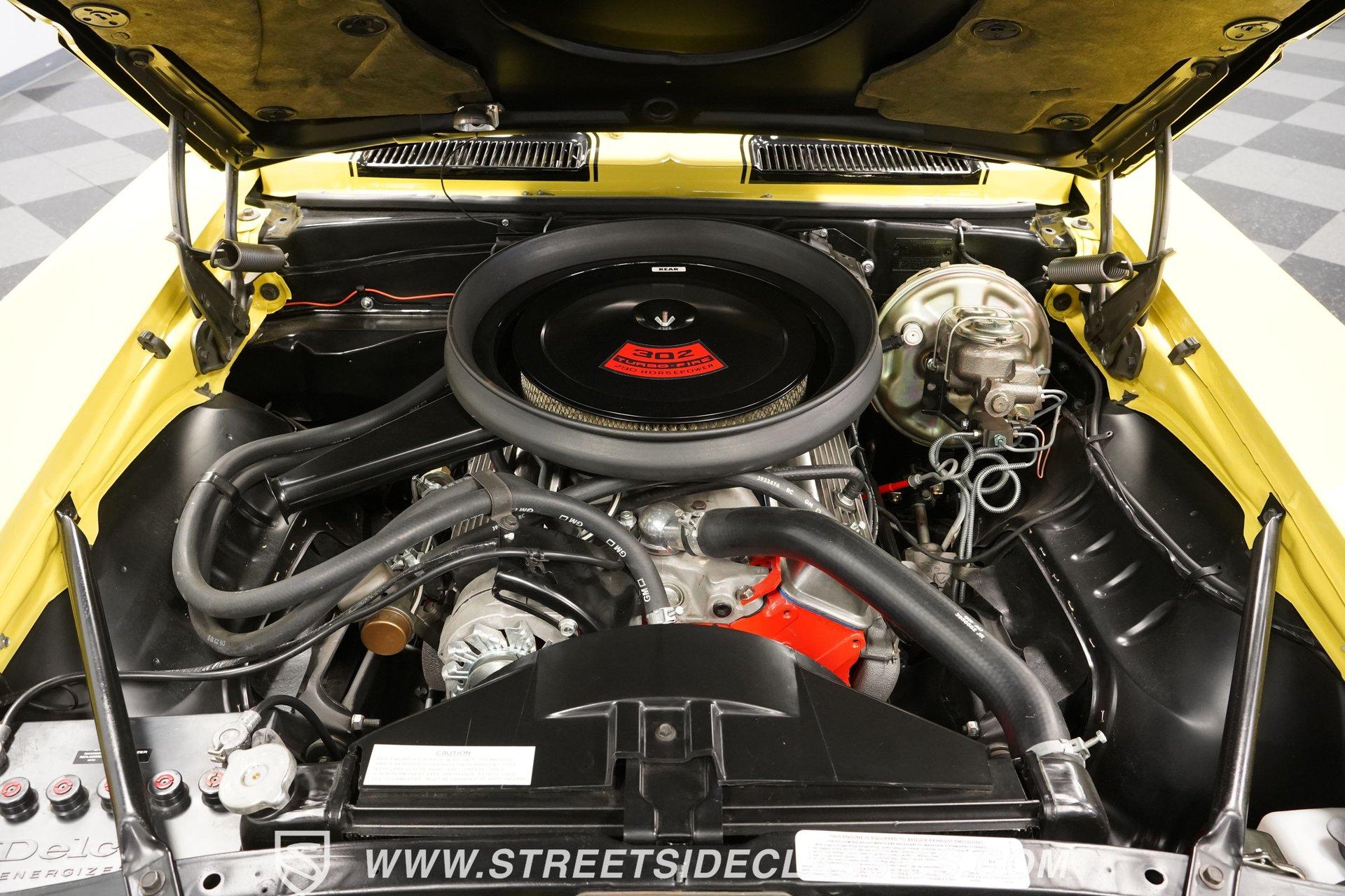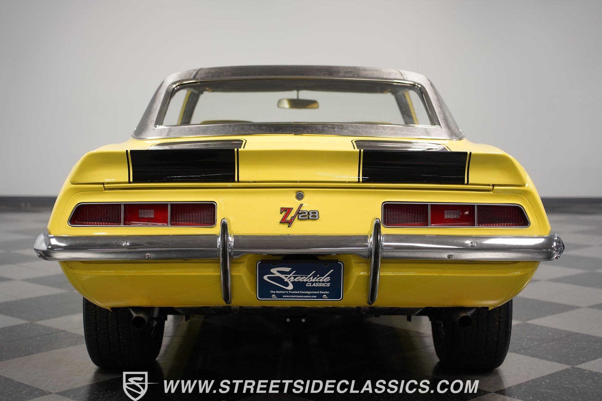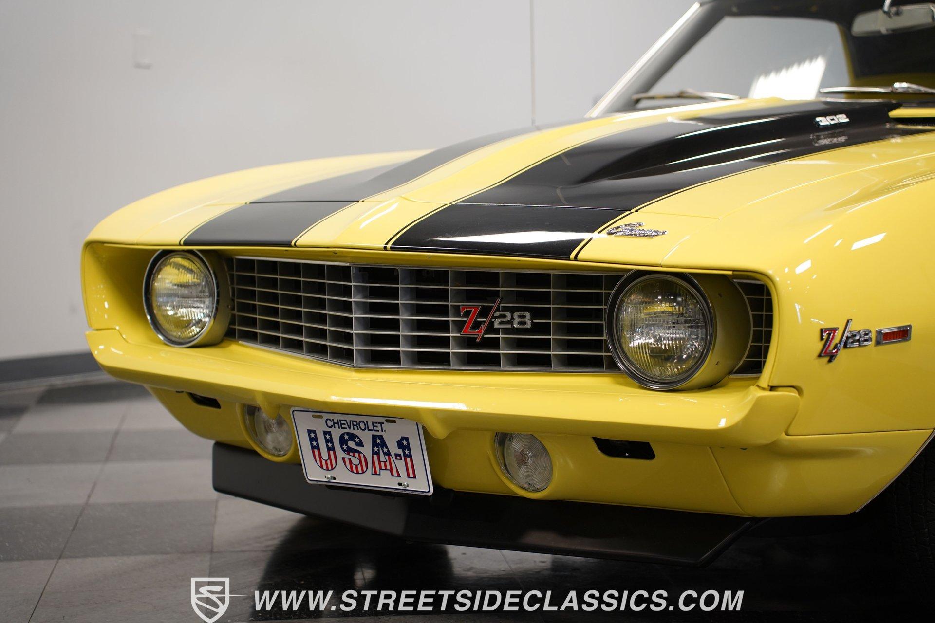 This 1969 Chevrolet Camaro Z/28 carries an incredible racing pedigree - it was bought new by Jean Howard, who was later inducted into the North Carolina Drag Racing Hall of Fame. The Daytona Yellow paint radiates against black racing stripes, while a black vinyl top adds a bold finishing touch. The iconic Z/28 styling cues hit all the right notes, and the Cragar SS wheels wrapped in 155/80/15 front and 255/60R15 rear tires add aggressive road presence. Yellow Houndstooth bucket seats anchor an immaculate interior. The center console houses factory gauges and a Hurst shifter that adds precision control. A wood steering wheel and Delco AM radio maintain the perfect period-correct vibe. The door panels and rear trim reflect exceptional craftsmanship, while the tight headliner completes the show-quality cabin. A 302 DZ V8 sits in a meticulously detailed engine bay, enhanced by Winters intake and finned valve covers. The Muncie M21 4-speed manual transmission puts the power down through a stout 12-bolt rear end with 3.73 Posi-traction gearing. Period-correct details include correctly stamped hoses and a Delco battery cover. Front coil springs and rear leaf suspension maintain authentic Z/28 handling dynamics. HIGHLIGHTS: 302 DZ V8 Engine Muncie M21 4-Speed Manual Transmission 12-bolt 3.73 Posi-traction Rear End Winters Intake Finned Valve Covers Front Coil Spring Suspension Rear Leaf Spring Suspension Power Brakes Daytona Yellow Paint with Black Stripes Black Vinyl Top Cragar SS Wheels 155/80/15 Front, 255/60R15 Rear Tires Yellow Houndstooth Interior with Bucket Seats Console-Mounted Gauges Hurst Shifter Wood Steering Wheel Delco AM Radio Original Title Drag Racing Documentation A perfect blend of authentic Z/28 performance and documented racing heritage, this 1969 Chevrolet Camaro Z/28 combines a fierce 302 V8, M21 4-speed, and a striking Daytona Yellow and black color scheme. Documented in drag racing history and owned by a Hall of Fame driver - here's your chance. Call today!