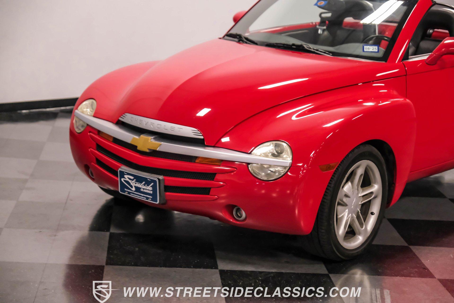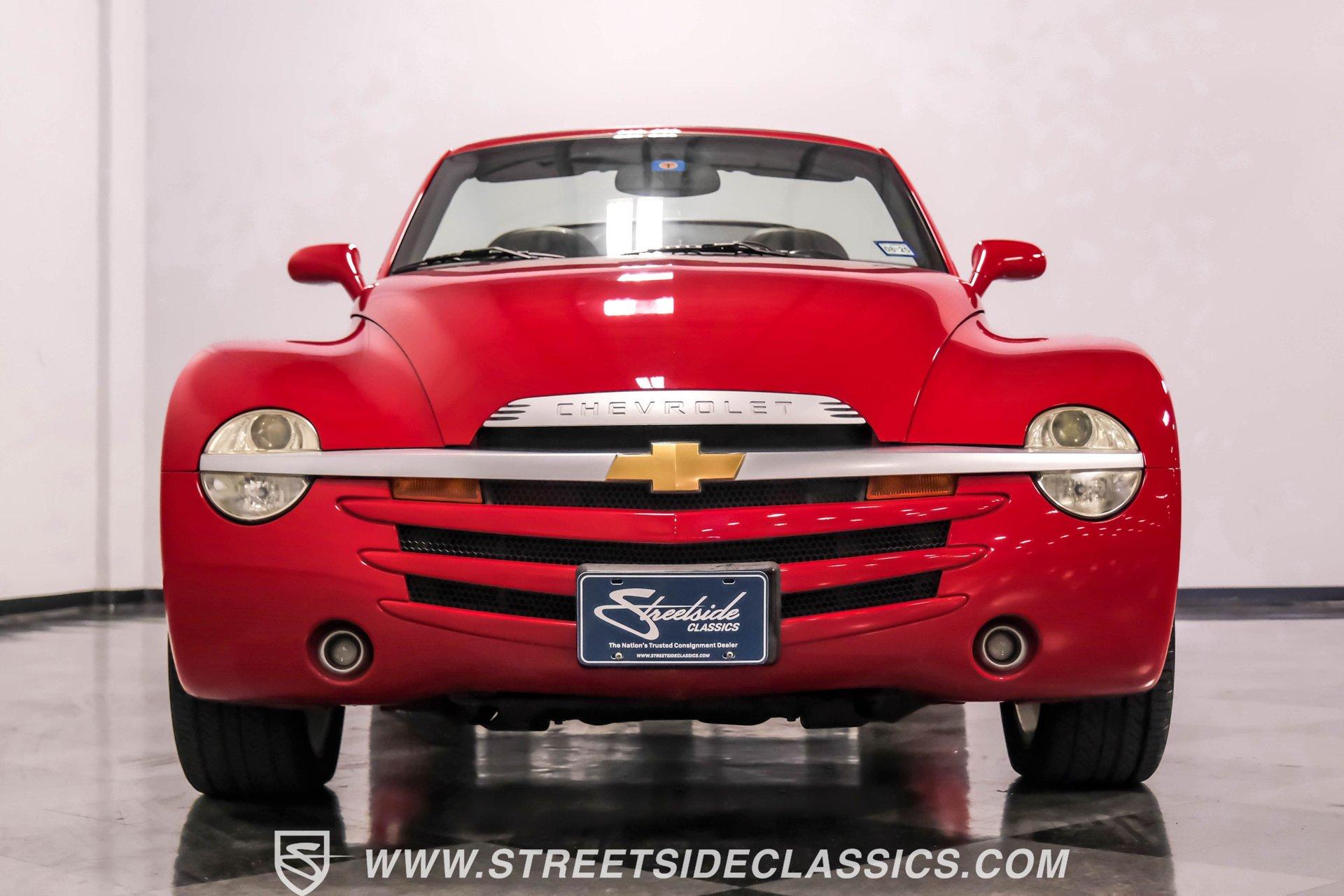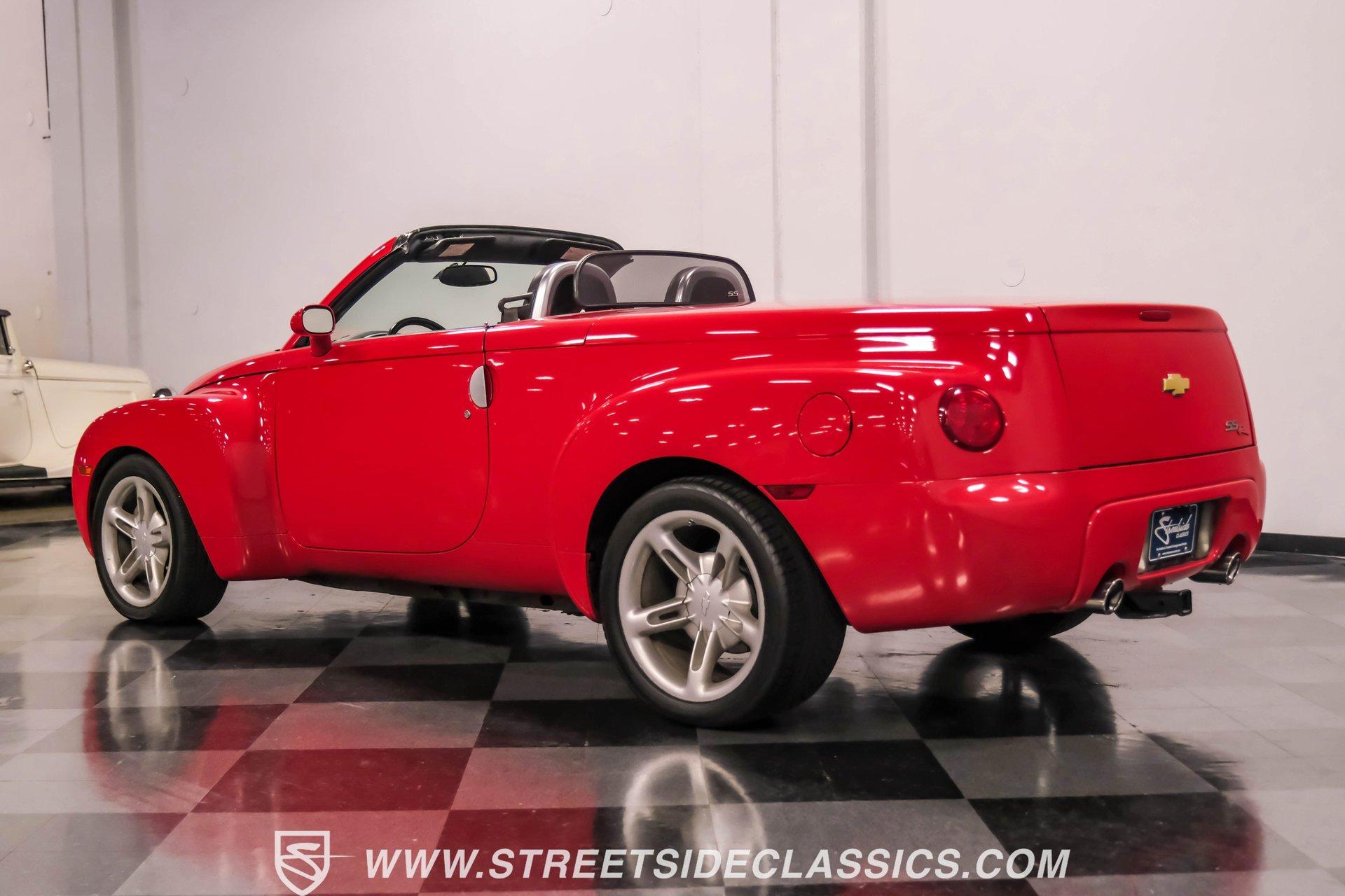 While classics from the 1950s and '60s certainly have their place at every car show and meet-up, occasionally, we come across a modern-classic that ignites our passion for all things automotive in a different yet familiar kind of way. One look at this red 2004 Chevrolet SSR, with its power-retractable hardtop and short bed design, and you can understand exactly what we mean. With just 74,979 actual miles on its odometer, this muscle truck's retro style looks just as good with its top up or down. Inside, we find a host of modern amenities that old-school hot rods can only dream of. A stock black leather interior featuring dual power leather heated seats with a memory package, power windows, locks, windows, and mirrors, along with an upgraded Bluetooth-enabled JVC touchscreen infotainment system that even has an incorporated backup camera. A power bed cover release, air-conditioning, cruise control, and a center console highlighted by a three-pod auxiliary gauge cluster all serve to make road trips of any distance overwhelmingly enjoyable. Under that trick wedge-shaped hood sits a naturally aspirated aluminum block and heads 5.3-liter Vortec V-8. From the factory, that small block could generate 300 horsepower at 5,200 rpm and 331 pound-feet of torque at 4,000 rpm, which is then routed through a Hydra-Matic 4L60E four-speed automatic transmission featuring an overdrive gear to allow highway cruising to be equally calm and fuel efficient. HIGHLIGHTS: Retractable Hardtop 74,979 Actual Miles 5.3 Liter Vortec V8 4L60E Four Speed Auto Leather Interior w/ Power Heated Seats Driver Seat Memory Package Power Locks Power Mirrors Power Windows Upgraded JVC Touchscreen w/ Bluetooth and Backup Camera New Front Hubs New Control Arms Upgraded Radiator Fan New Window Regulators This muscle truck has been well cared for, as evidenced by its new master cylinder, front calipers, brake lines, front wheel hubs, battery, front tires, tonneau cover cylinders, and upgraded radiator fan to remedy this truck's notorious overheating issues. Inside, the current owner also replaced the door stops, door latch actuator, window seal, and window actuators. If this unique 2004 Chevrolet SSR's vibe hits you the same way it does many of us, don't wait any longer. Call today!