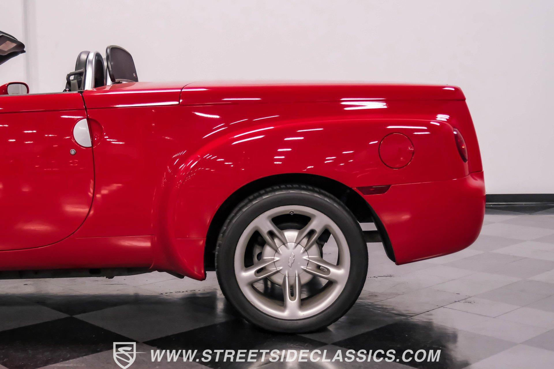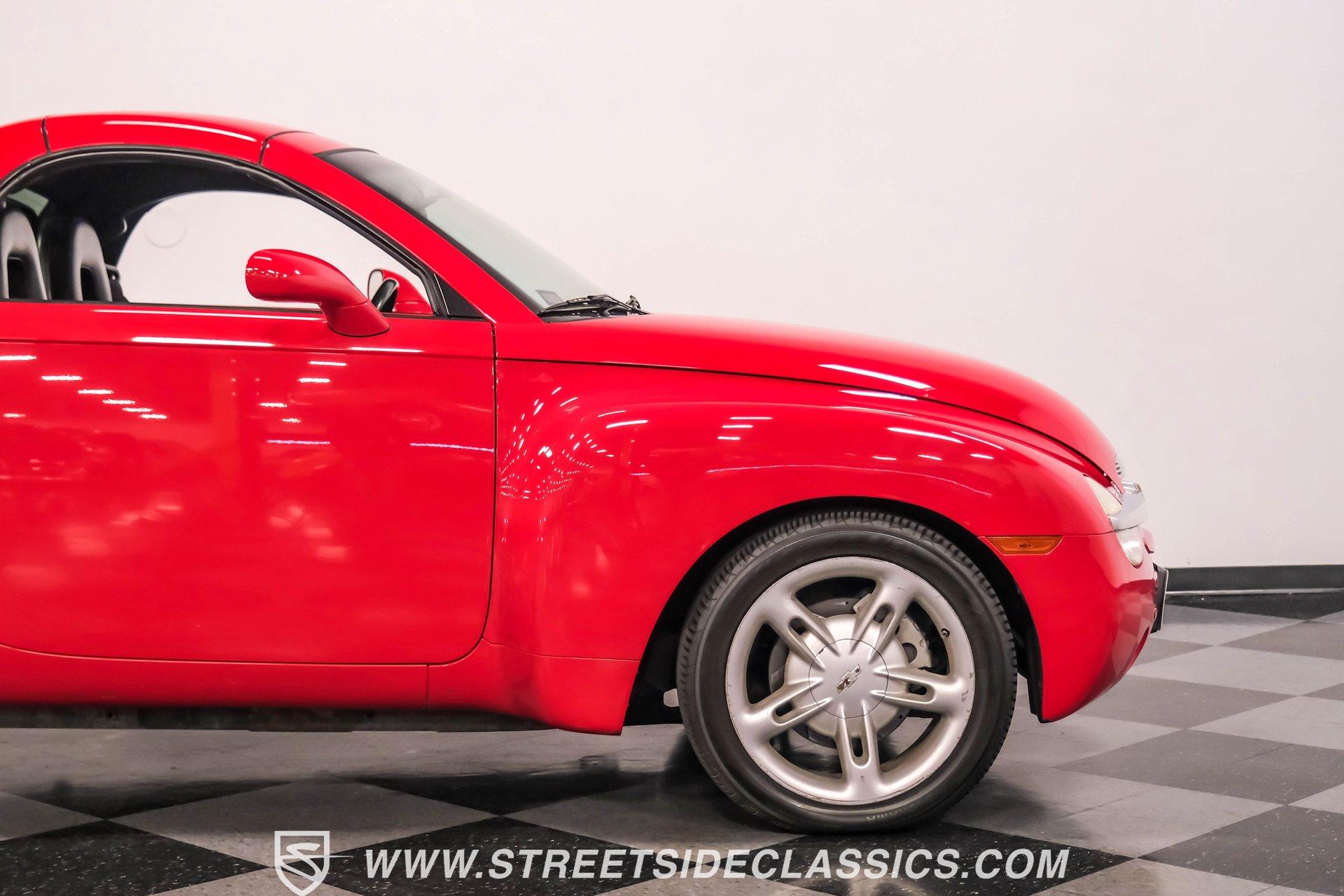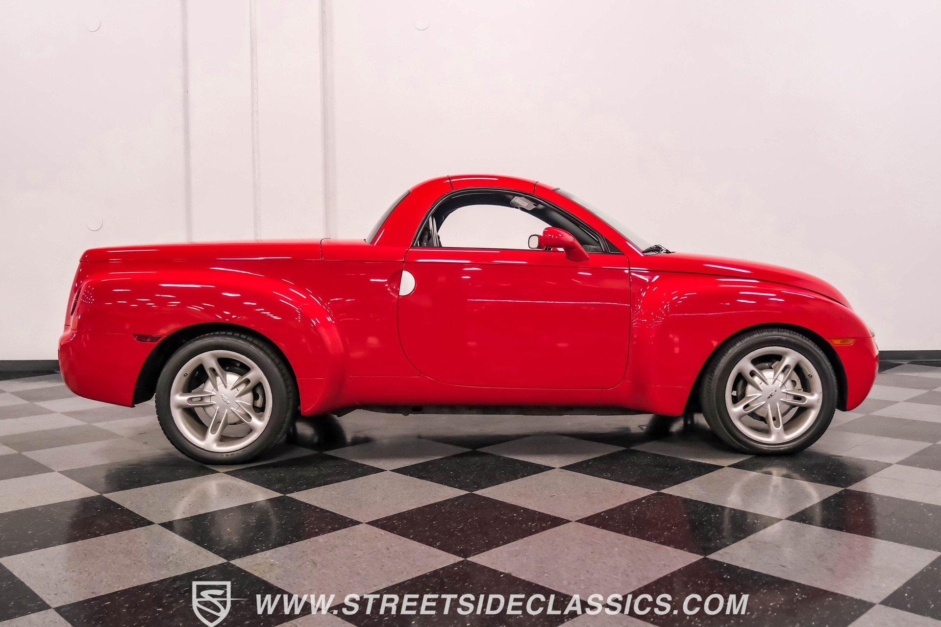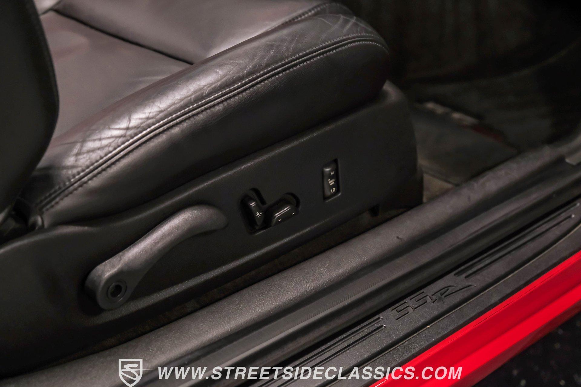 While classics from the 1950s and '60s certainly have their place at every car show and meet-up, occasionally, we come across a modern-classic that ignites our passion for all things automotive in a different yet familiar kind of way. One look at this red 2004 Chevrolet SSR, with its power-retractable hardtop and short bed design, and you can understand exactly what we mean. With just 74,979 actual miles on its odometer, this muscle truck's retro style looks just as good with its top up or down. Inside, we find a host of modern amenities that old-school hot rods can only dream of. A stock black leather interior featuring dual power leather heated seats with a memory package, power windows, locks, windows, and mirrors, along with an upgraded Bluetooth-enabled JVC touchscreen infotainment system that even has an incorporated backup camera. A power bed cover release, air-conditioning, cruise control, and a center console highlighted by a three-pod auxiliary gauge cluster all serve to make road trips of any distance overwhelmingly enjoyable. Under that trick wedge-shaped hood sits a naturally aspirated aluminum block and heads 5.3-liter Vortec V-8. From the factory, that small block could generate 300 horsepower at 5,200 rpm and 331 pound-feet of torque at 4,000 rpm, which is then routed through a Hydra-Matic 4L60E four-speed automatic transmission featuring an overdrive gear to allow highway cruising to be equally calm and fuel efficient. HIGHLIGHTS: Retractable Hardtop 74,979 Actual Miles 5.3 Liter Vortec V8 4L60E Four Speed Auto Leather Interior w/ Power Heated Seats Driver Seat Memory Package Power Locks Power Mirrors Power Windows Upgraded JVC Touchscreen w/ Bluetooth and Backup Camera New Front Hubs New Control Arms Upgraded Radiator Fan New Window Regulators This muscle truck has been well cared for, as evidenced by its new master cylinder, front calipers, brake lines, front wheel hubs, battery, front tires, tonneau cover cylinders, and upgraded radiator fan to remedy this truck's notorious overheating issues. Inside, the current owner also replaced the door stops, door latch actuator, window seal, and window actuators. If this unique 2004 Chevrolet SSR's vibe hits you the same way it does many of us, don't wait any longer. Call today!