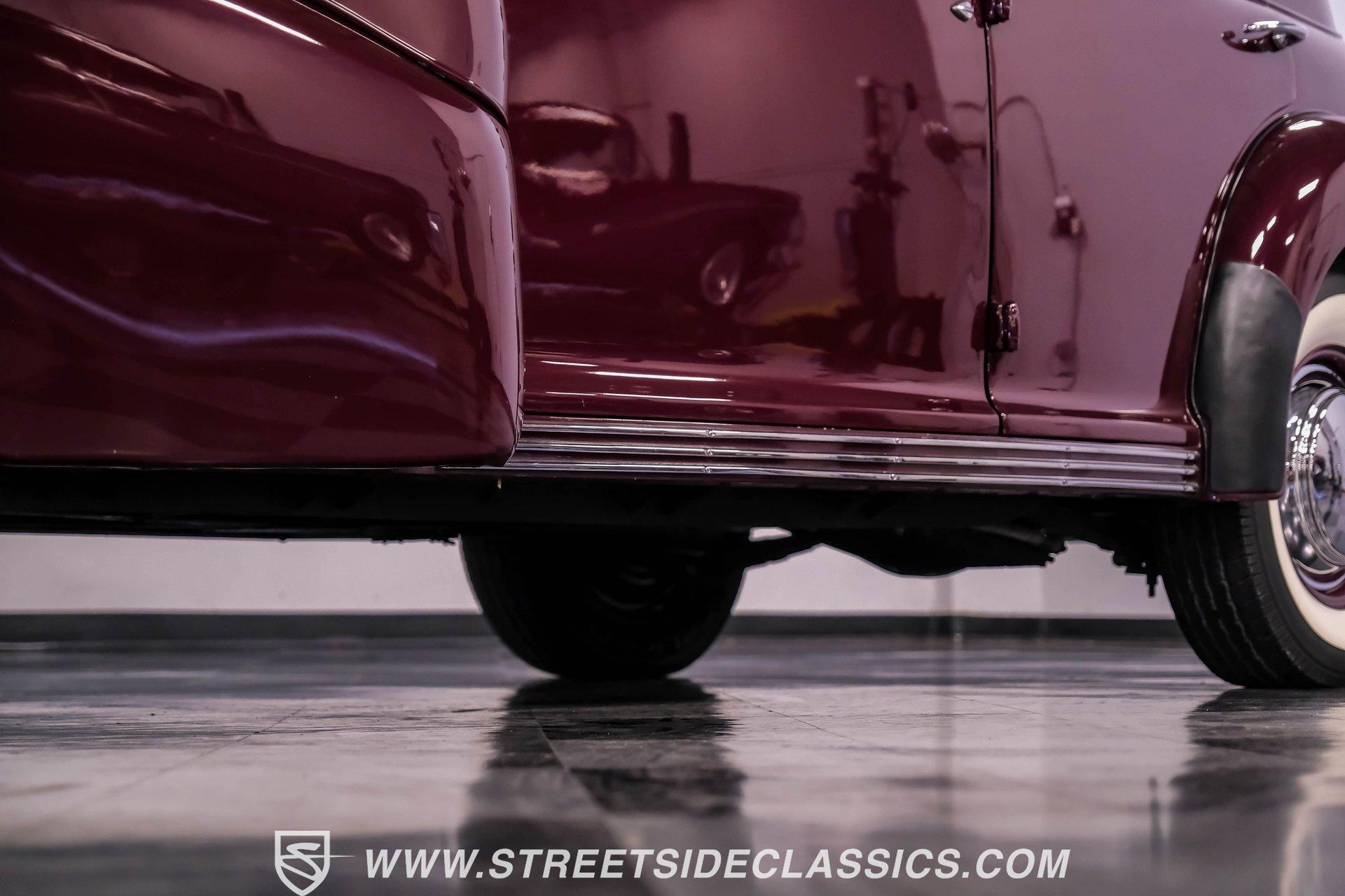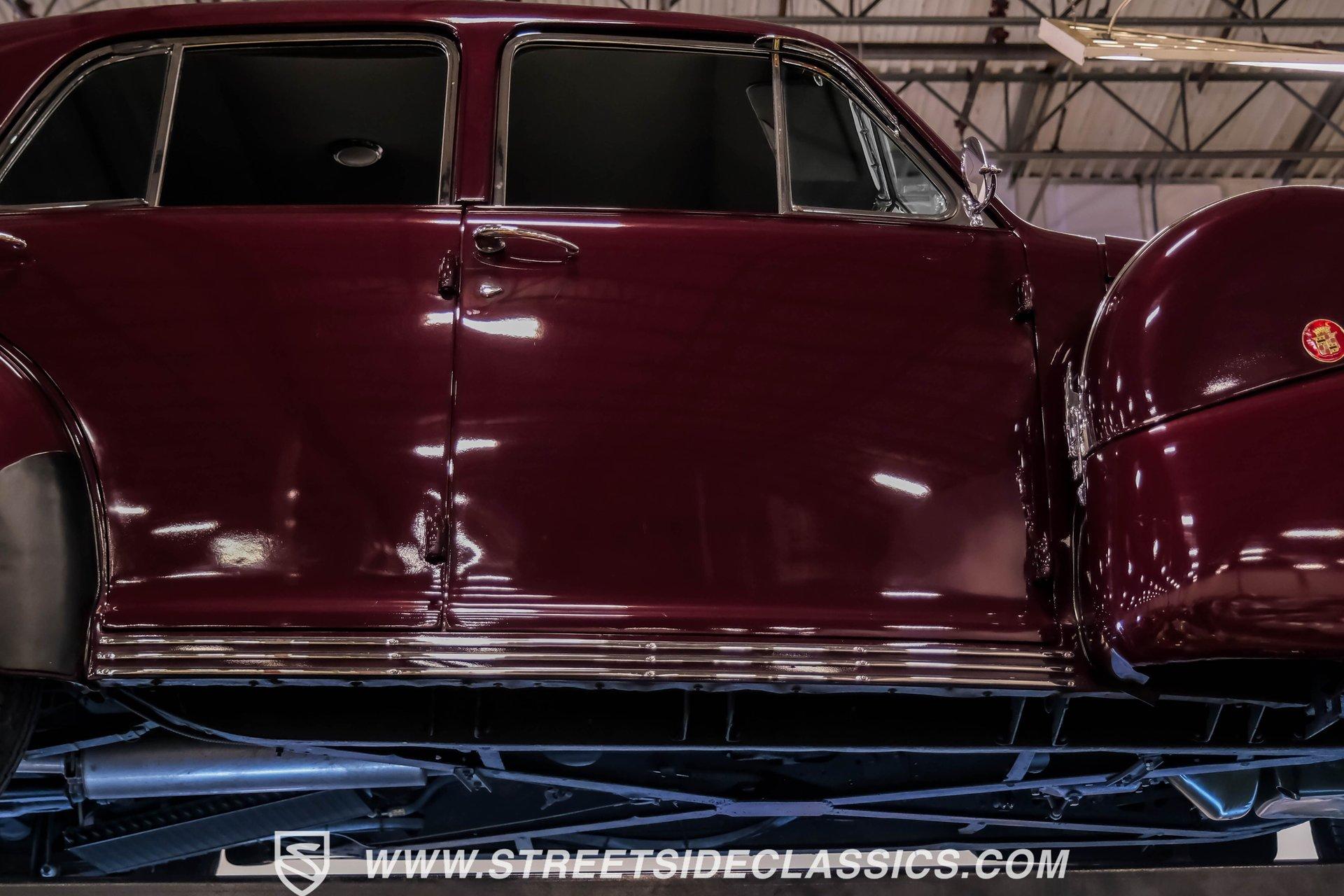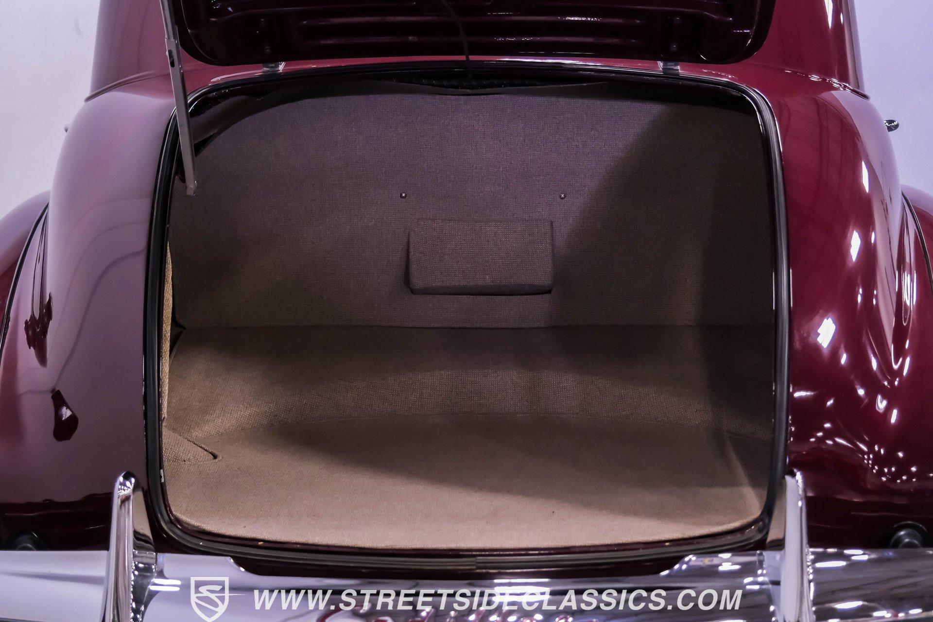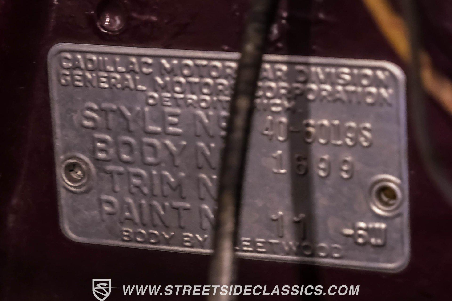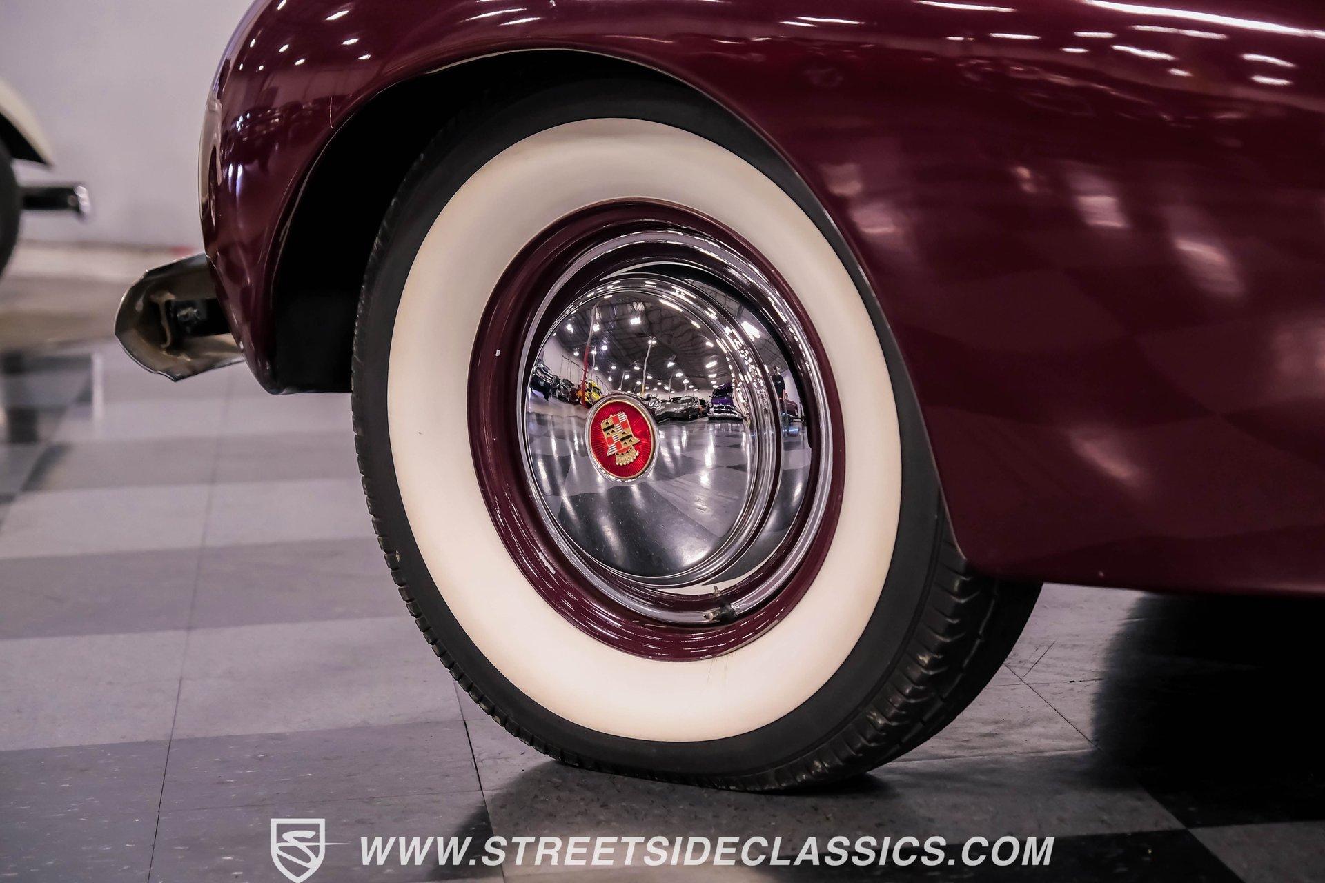 This 1940 Cadillac Series 60 Fleetwood marks an automotive milestone as the final production year featuring the distinctive torpedo-style headlights as well as the fender mounted spare tires. The Oxblood Maroon paint shows off its massive presence on the road, while those symmetrical dual spare tires flank the elongated front fenders like metallic sentries. The chrome detailing flows across the body, from the bold grille to the handcrafted bumpers, all accented by the Cadillac hubcaps and wide whitewall 215/85R16 tires mounted on 16-inch wheels. The grey leather interior stretches across the cabin like a high-end hotel lobby. The bench seats accommodate passengers in first-class comfort, while the wood grain dash serves as a control center for the authentic 6-volt gauges. A dedicated battery system hidden in the kick panel maintains the original instrumentation, and the under-dash air conditioning adds modern comfort. The carpeted trunk includes a convenient light built into the lid for nighttime loading. The 346 CI V8 dominates with raw American muscle, mated to a 3-speed manual transmission. The aluminum radiator and electric cooling fans bring 21st-century temperature management to this classic powerplant. Suspension duties fall to front coil springs paired with rear leaf springs and a sway bar. Having been converted to a 12V system, the factory gauges remain 6 volt and run off a separate battery in the kick panel. HIGHLIGHTS: 346 CI V8 Engine 3-Speed Manual Transmission Aluminum Radiator w/ Electric Cooling Fans Aftermarket Water Temperature Gauge Oxblood Maroon Paint 16-inch Wheels with Cadillac Hubcaps 215/85R16 Whitewall Tires Dual Spare Tire Carriers Gray Leather Interior with Bench Seats Air Conditioning 12V conversion w/ 6-Volt Gauge System Seat Belts This 1940 Cadillac Series 60 Fleetwood brings together raw V8 power, luxury accommodations, and pre-war American craftsmanship in one spectacular machine. Call today!