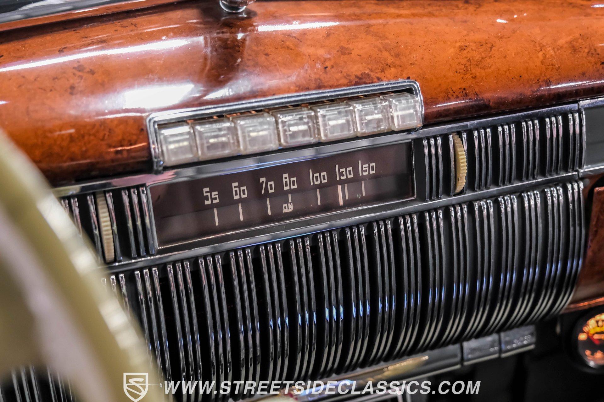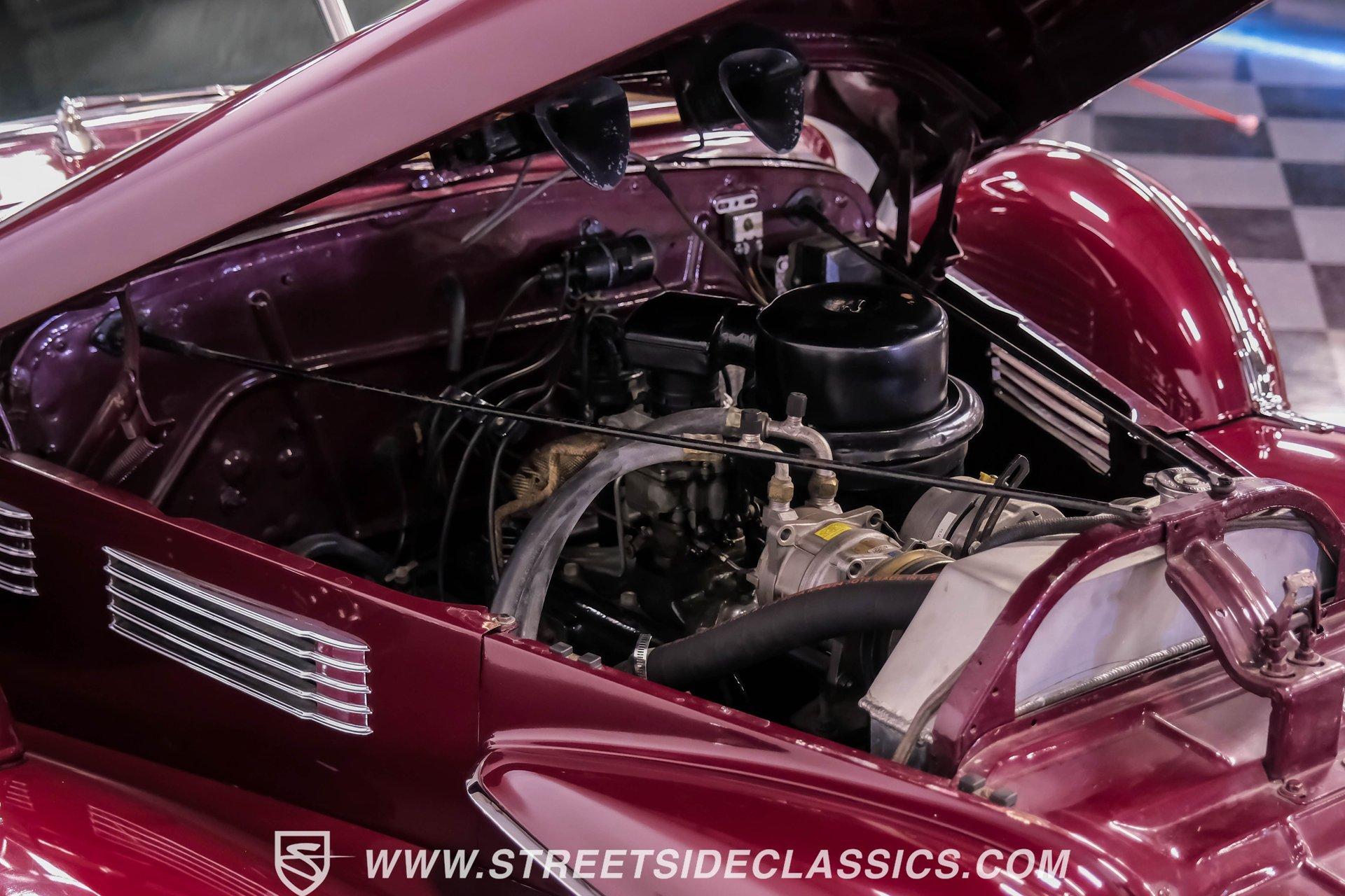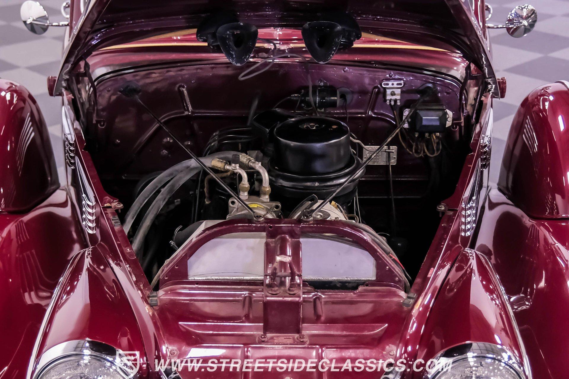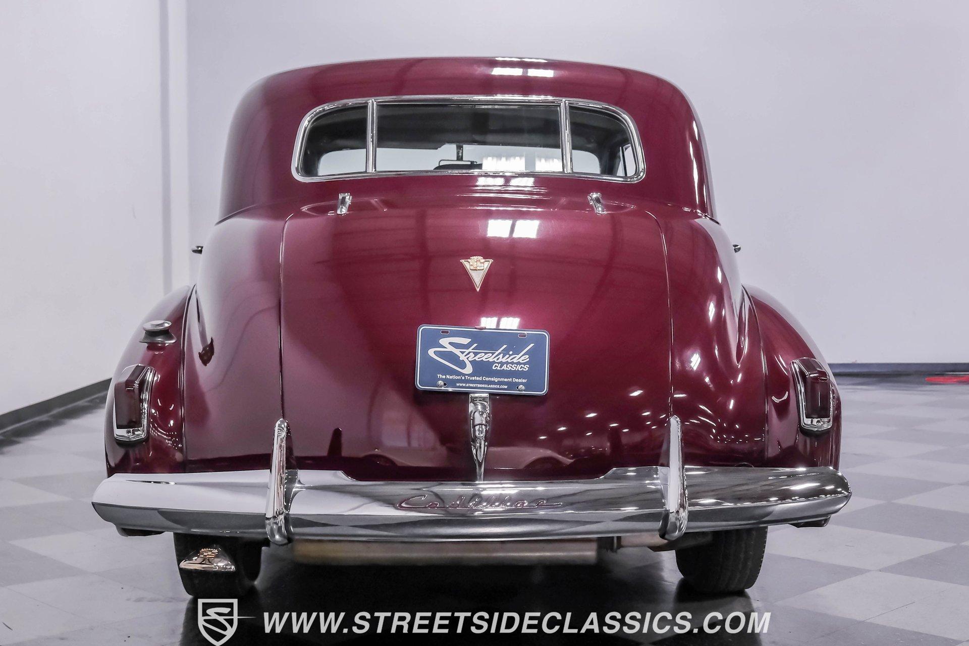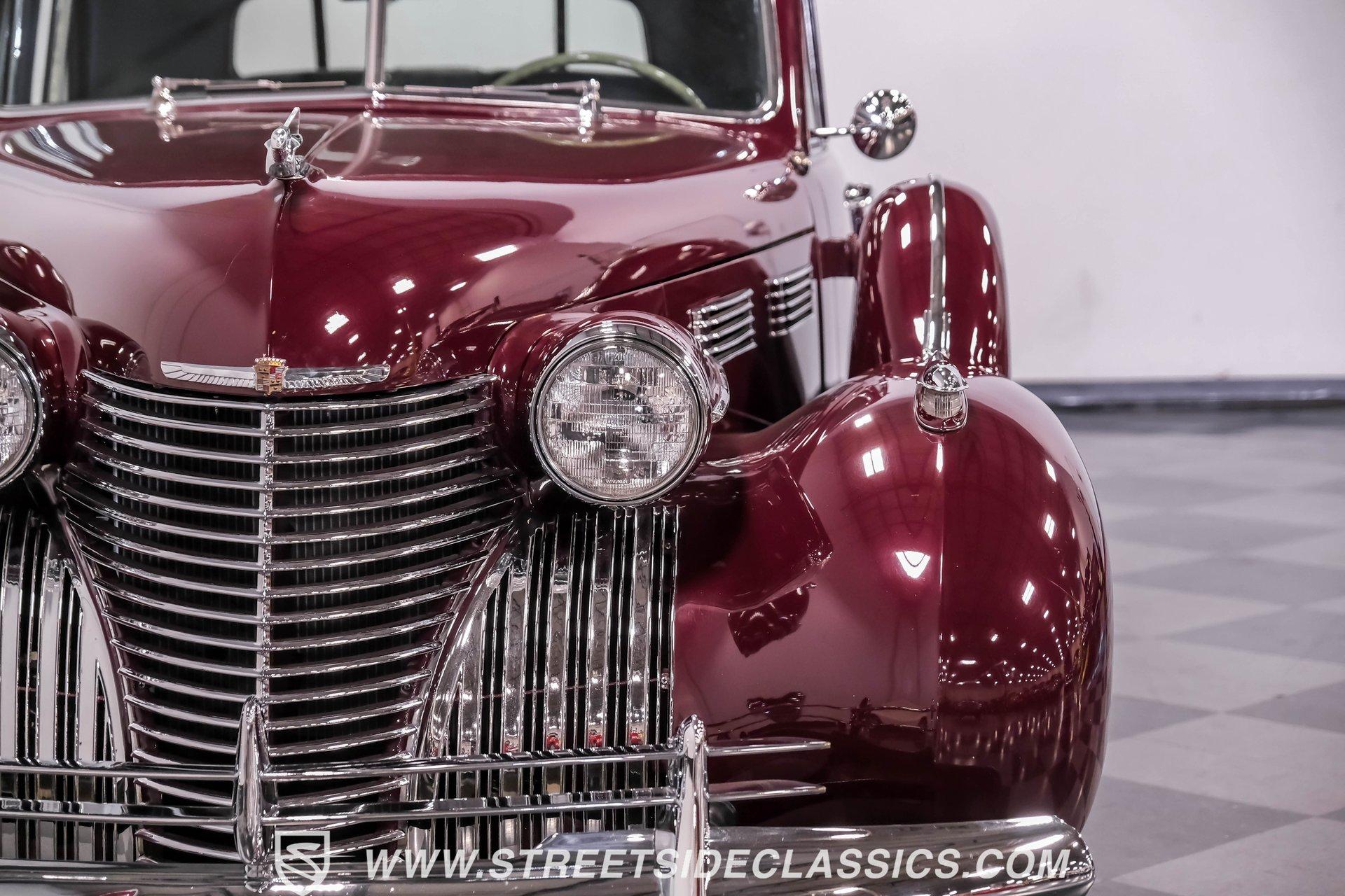 This 1940 Cadillac Series 60 Fleetwood marks an automotive milestone as the final production year featuring the distinctive torpedo-style headlights as well as the fender mounted spare tires. The Oxblood Maroon paint shows off its massive presence on the road, while those symmetrical dual spare tires flank the elongated front fenders like metallic sentries. The chrome detailing flows across the body, from the bold grille to the handcrafted bumpers, all accented by the Cadillac hubcaps and wide whitewall 215/85R16 tires mounted on 16-inch wheels. The grey leather interior stretches across the cabin like a high-end hotel lobby. The bench seats accommodate passengers in first-class comfort, while the wood grain dash serves as a control center for the authentic 6-volt gauges. A dedicated battery system hidden in the kick panel maintains the original instrumentation, and the under-dash air conditioning adds modern comfort. The carpeted trunk includes a convenient light built into the lid for nighttime loading. The 346 CI V8 dominates with raw American muscle, mated to a 3-speed manual transmission. The aluminum radiator and electric cooling fans bring 21st-century temperature management to this classic powerplant. Suspension duties fall to front coil springs paired with rear leaf springs and a sway bar. Having been converted to a 12V system, the factory gauges remain 6 volt and run off a separate battery in the kick panel. HIGHLIGHTS: 346 CI V8 Engine 3-Speed Manual Transmission Aluminum Radiator w/ Electric Cooling Fans Aftermarket Water Temperature Gauge Oxblood Maroon Paint 16-inch Wheels with Cadillac Hubcaps 215/85R16 Whitewall Tires Dual Spare Tire Carriers Gray Leather Interior with Bench Seats Air Conditioning 12V conversion w/ 6-Volt Gauge System Seat Belts This 1940 Cadillac Series 60 Fleetwood brings together raw V8 power, luxury accommodations, and pre-war American craftsmanship in one spectacular machine. Call today!