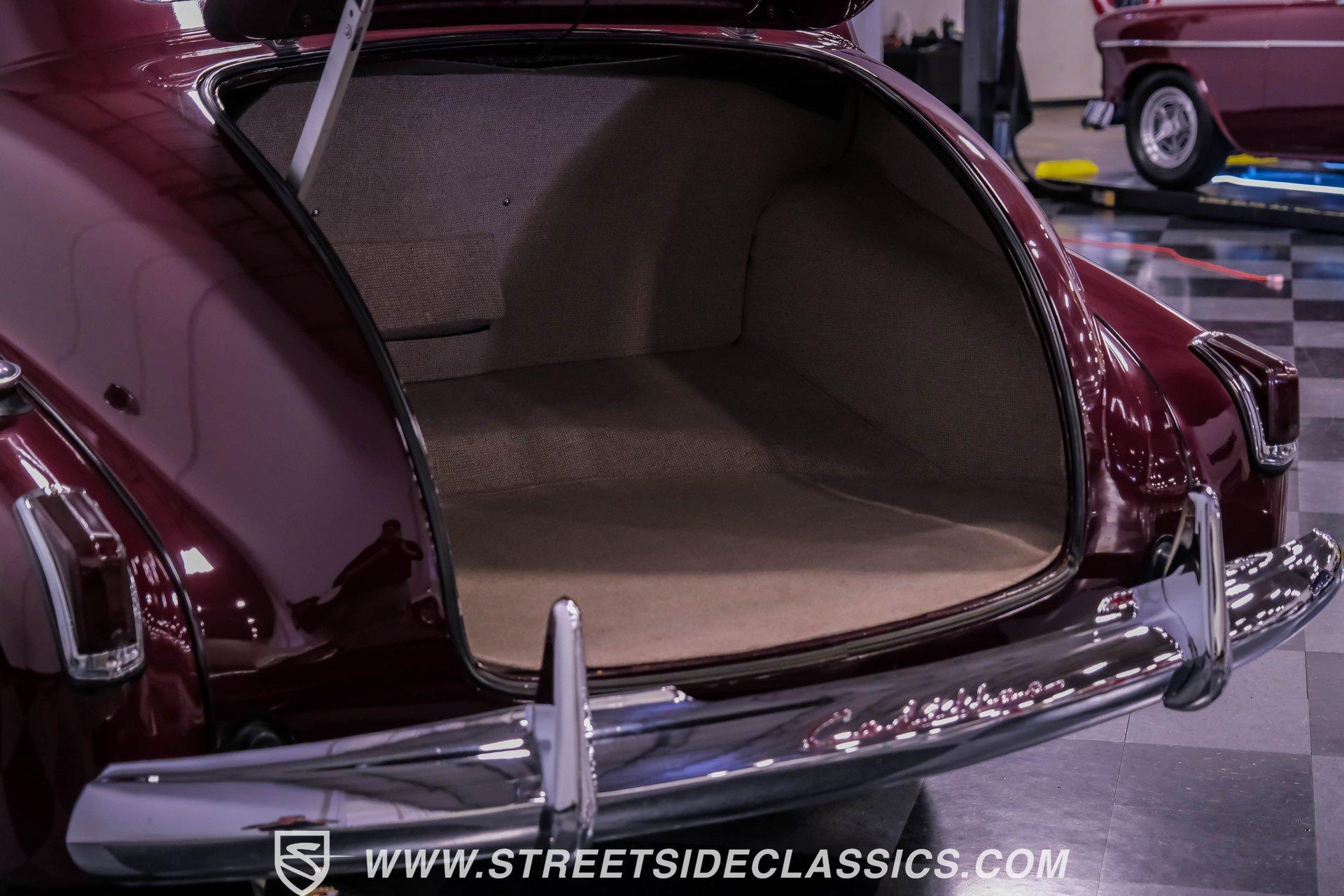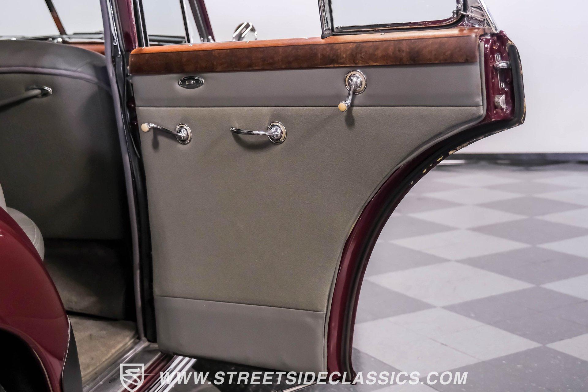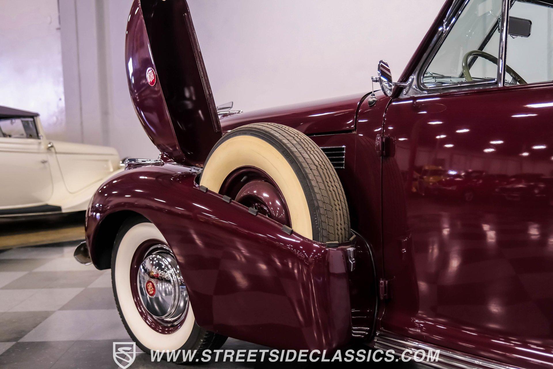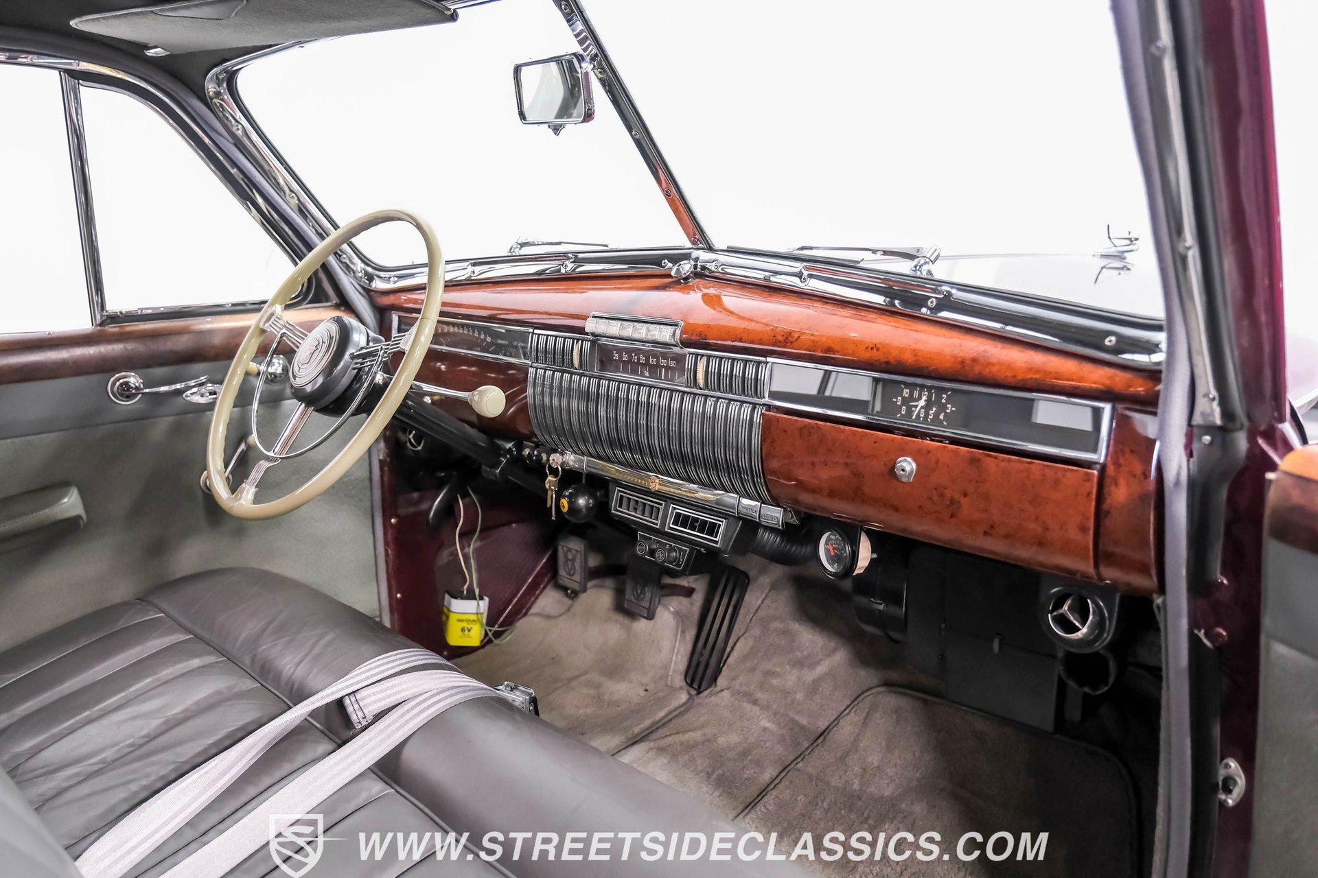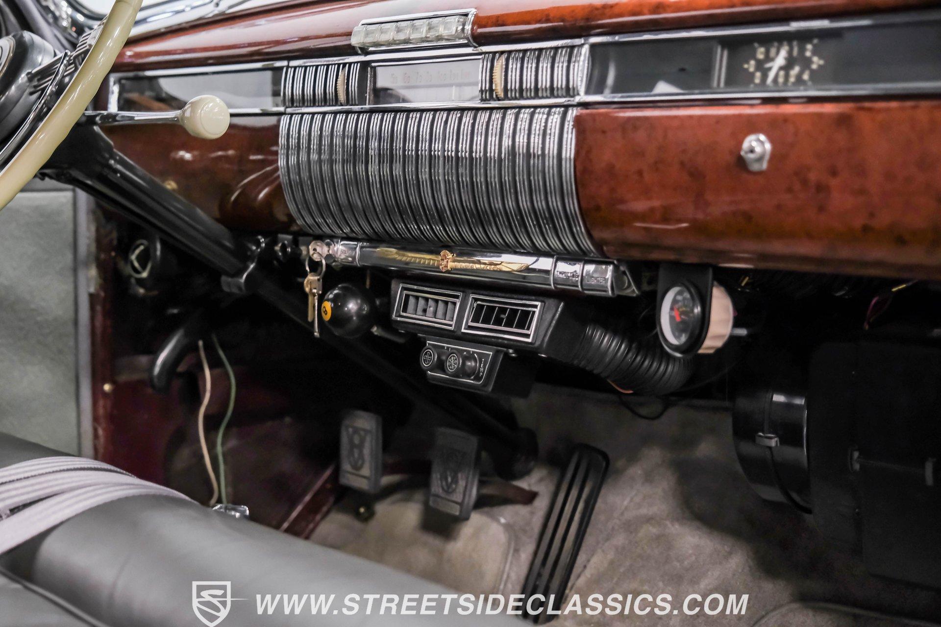 This 1940 Cadillac Series 60 Fleetwood marks an automotive milestone as the final production year featuring the distinctive torpedo-style headlights as well as the fender mounted spare tires. The Oxblood Maroon paint shows off its massive presence on the road, while those symmetrical dual spare tires flank the elongated front fenders like metallic sentries. The chrome detailing flows across the body, from the bold grille to the handcrafted bumpers, all accented by the Cadillac hubcaps and wide whitewall 215/85R16 tires mounted on 16-inch wheels. The grey leather interior stretches across the cabin like a high-end hotel lobby. The bench seats accommodate passengers in first-class comfort, while the wood grain dash serves as a control center for the authentic 6-volt gauges. A dedicated battery system hidden in the kick panel maintains the original instrumentation, and the under-dash air conditioning adds modern comfort. The carpeted trunk includes a convenient light built into the lid for nighttime loading. The 346 CI V8 dominates with raw American muscle, mated to a 3-speed manual transmission. The aluminum radiator and electric cooling fans bring 21st-century temperature management to this classic powerplant. Suspension duties fall to front coil springs paired with rear leaf springs and a sway bar. Having been converted to a 12V system, the factory gauges remain 6 volt and run off a separate battery in the kick panel. HIGHLIGHTS: 346 CI V8 Engine 3-Speed Manual Transmission Aluminum Radiator w/ Electric Cooling Fans Aftermarket Water Temperature Gauge Oxblood Maroon Paint 16-inch Wheels with Cadillac Hubcaps 215/85R16 Whitewall Tires Dual Spare Tire Carriers Gray Leather Interior with Bench Seats Air Conditioning 12V conversion w/ 6-Volt Gauge System Seat Belts This 1940 Cadillac Series 60 Fleetwood brings together raw V8 power, luxury accommodations, and pre-war American craftsmanship in one spectacular machine. Call today!