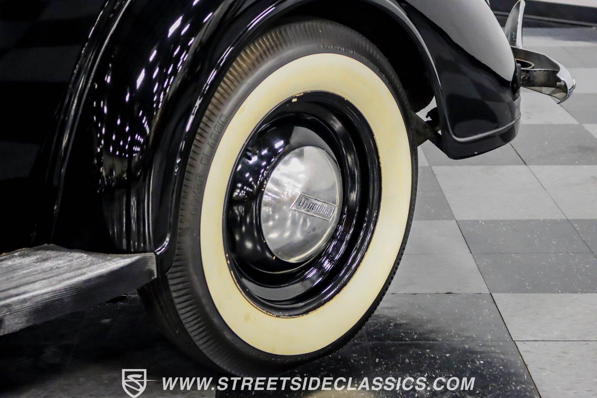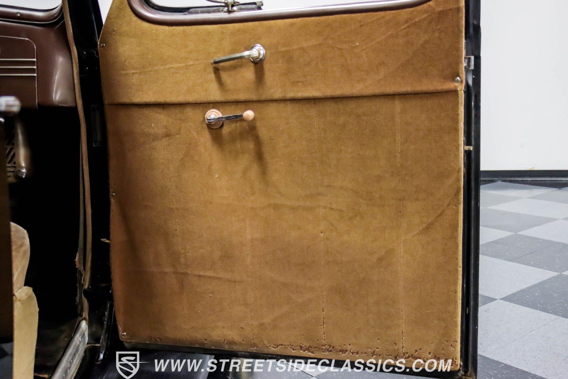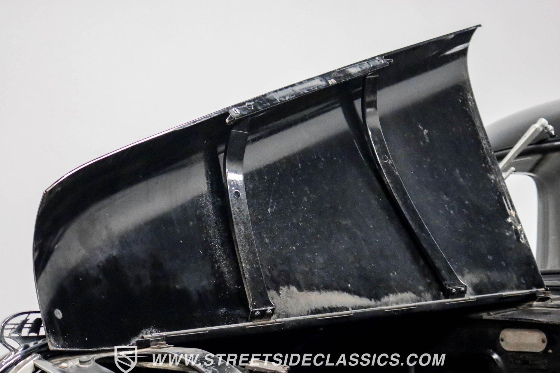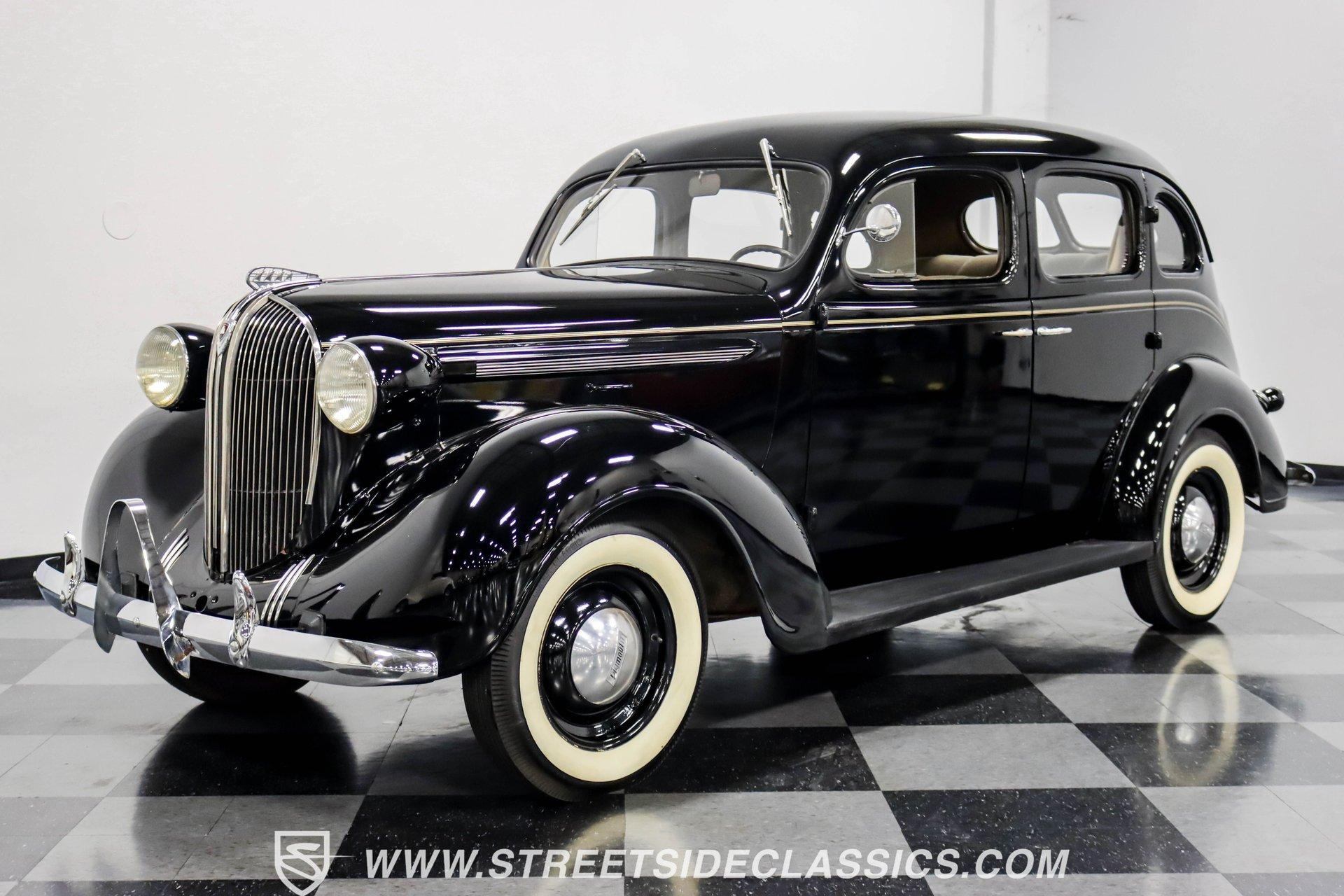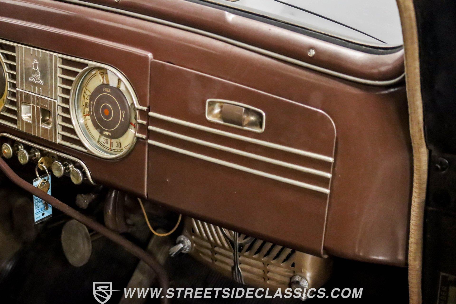 This 1938 Plymouth Deluxe spent 32 years preserved in a South Texas private museum collection until 2023. A survivor with an older repaint, the black exterior still makes quite a bold impression, accented by wide whitewall 6.00-16 Coker Classic tires mounted on 16-inch steel wheels with chrome hubcaps. The painted pinstripes add a custom touch to the classic body lines, while the chrome trim and bumpers display their luster against the dark paint. A tan mohair interior creates a refined atmosphere throughout the cabin. Original factory controls and gauges outfit the dash, while the floor-mounted shifter gives easy access to gear changes. The bench seats offer plenty of room, and back seat passengers get added security with seatbelts. An original heater box completes the authentic pre-war cabin layout. The 201 cubic inch inline-six cylinder engine runs through a 3-speed manual transmission, with a Carter carburetor still displaying its original "Mfr for Chrysler Corp" markings. The mechanical composition stays true with factory manifolds and a single exhaust system featuring a factory-style replacement muffler. Leaf springs with shocks and a sway bar up front work with the solid rear axle and leaf spring setup for proper handling. HIGHLIGHTS: 201 CI Inline 6 Cylinder Engine 3 Speed Manual Transmission Carter Single Barrel Carburetor Factory Manifolds Factory Style Replacement Muffler Black Paint w/ Painted Pinstripes Chrome Trim and Bumpers 16-inch Steel Wheels with Chrome Hubcaps 6.00-16 Coker Classic Wide Whitewall Tires Tan Mohair Interior with Bench Seats Factory Controls and Gauges Original Heater Box Shop Manual This 1938 Plymouth Deluxe 4 Door Sedan combines classic pre-war styling, a proven inline-six engine, and authentic details preserved through decades of museum care. Call today!