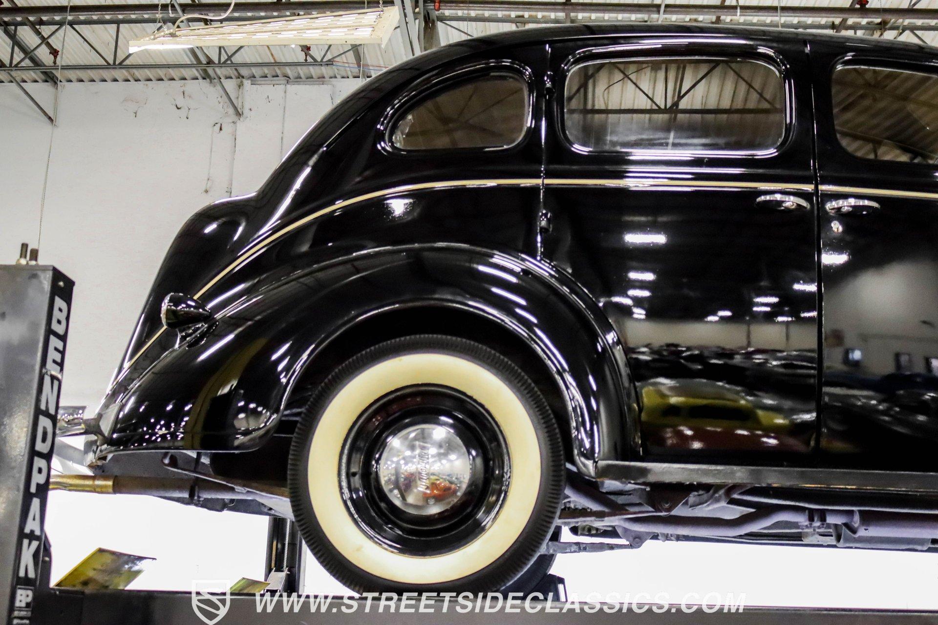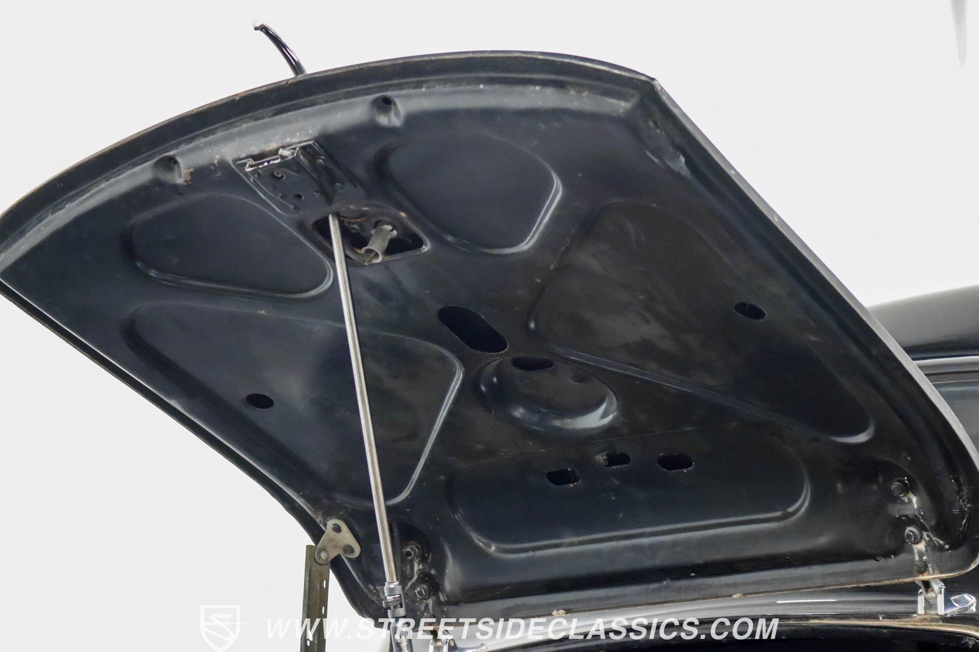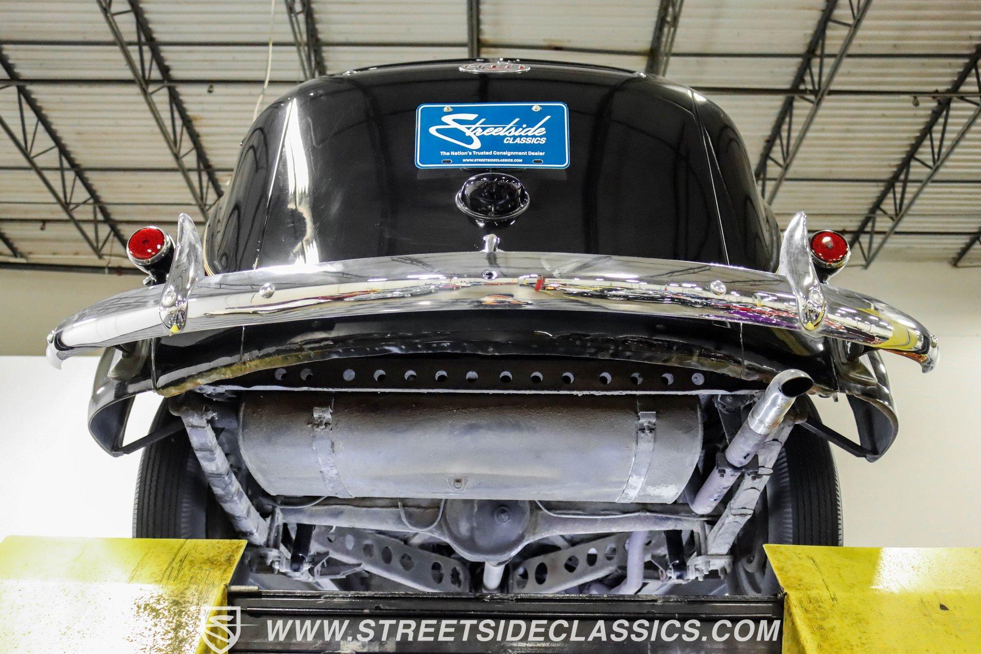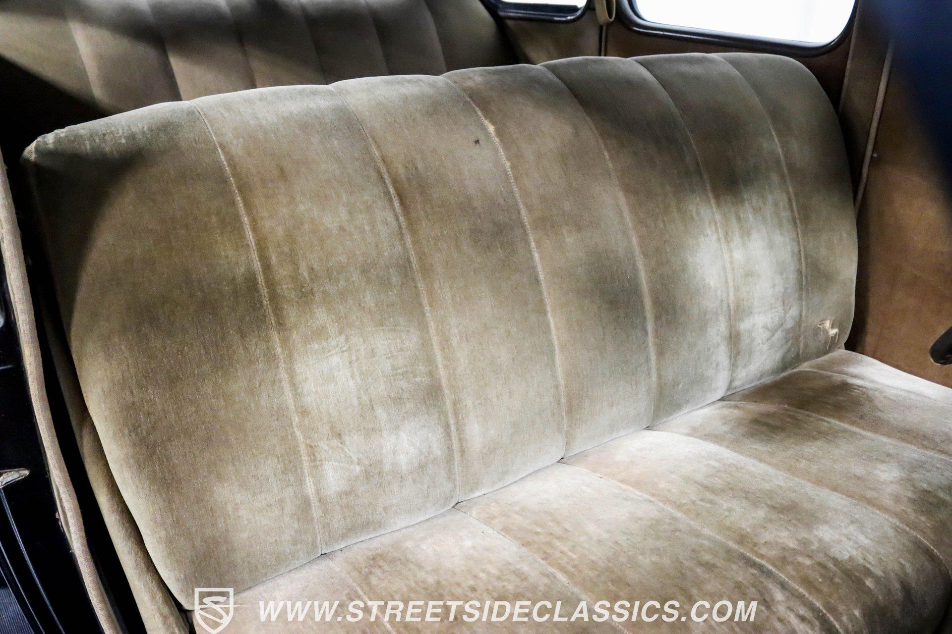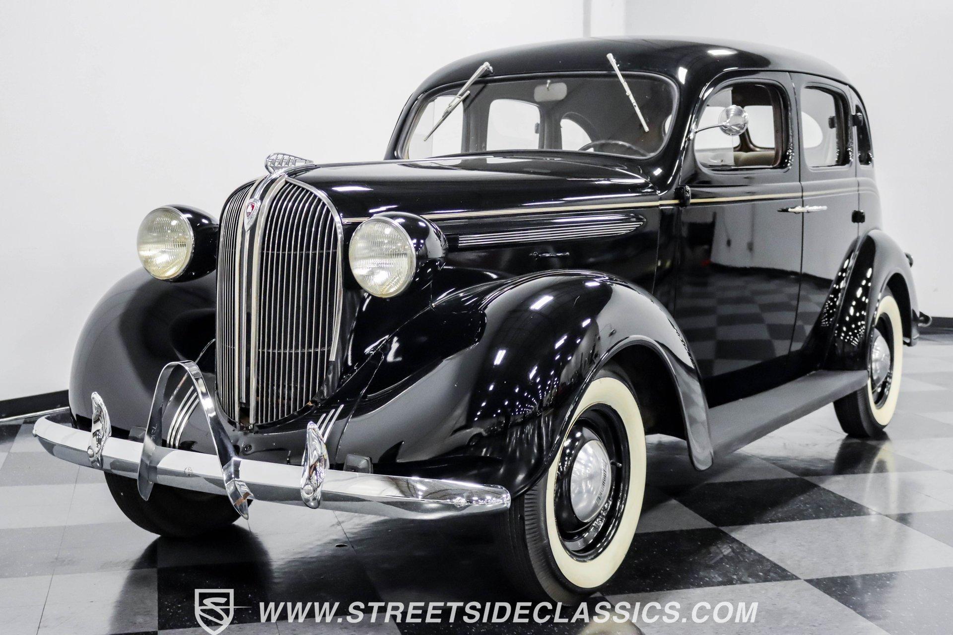 This 1938 Plymouth Deluxe spent 32 years preserved in a South Texas private museum collection until 2023. A survivor with an older repaint, the black exterior still makes quite a bold impression, accented by wide whitewall 6.00-16 Coker Classic tires mounted on 16-inch steel wheels with chrome hubcaps. The painted pinstripes add a custom touch to the classic body lines, while the chrome trim and bumpers display their luster against the dark paint. A tan mohair interior creates a refined atmosphere throughout the cabin. Original factory controls and gauges outfit the dash, while the floor-mounted shifter gives easy access to gear changes. The bench seats offer plenty of room, and back seat passengers get added security with seatbelts. An original heater box completes the authentic pre-war cabin layout. The 201 cubic inch inline-six cylinder engine runs through a 3-speed manual transmission, with a Carter carburetor still displaying its original "Mfr for Chrysler Corp" markings. The mechanical composition stays true with factory manifolds and a single exhaust system featuring a factory-style replacement muffler. Leaf springs with shocks and a sway bar up front work with the solid rear axle and leaf spring setup for proper handling. HIGHLIGHTS: 201 CI Inline 6 Cylinder Engine 3 Speed Manual Transmission Carter Single Barrel Carburetor Factory Manifolds Factory Style Replacement Muffler Black Paint w/ Painted Pinstripes Chrome Trim and Bumpers 16-inch Steel Wheels with Chrome Hubcaps 6.00-16 Coker Classic Wide Whitewall Tires Tan Mohair Interior with Bench Seats Factory Controls and Gauges Original Heater Box Shop Manual This 1938 Plymouth Deluxe 4 Door Sedan combines classic pre-war styling, a proven inline-six engine, and authentic details preserved through decades of museum care. Call today!