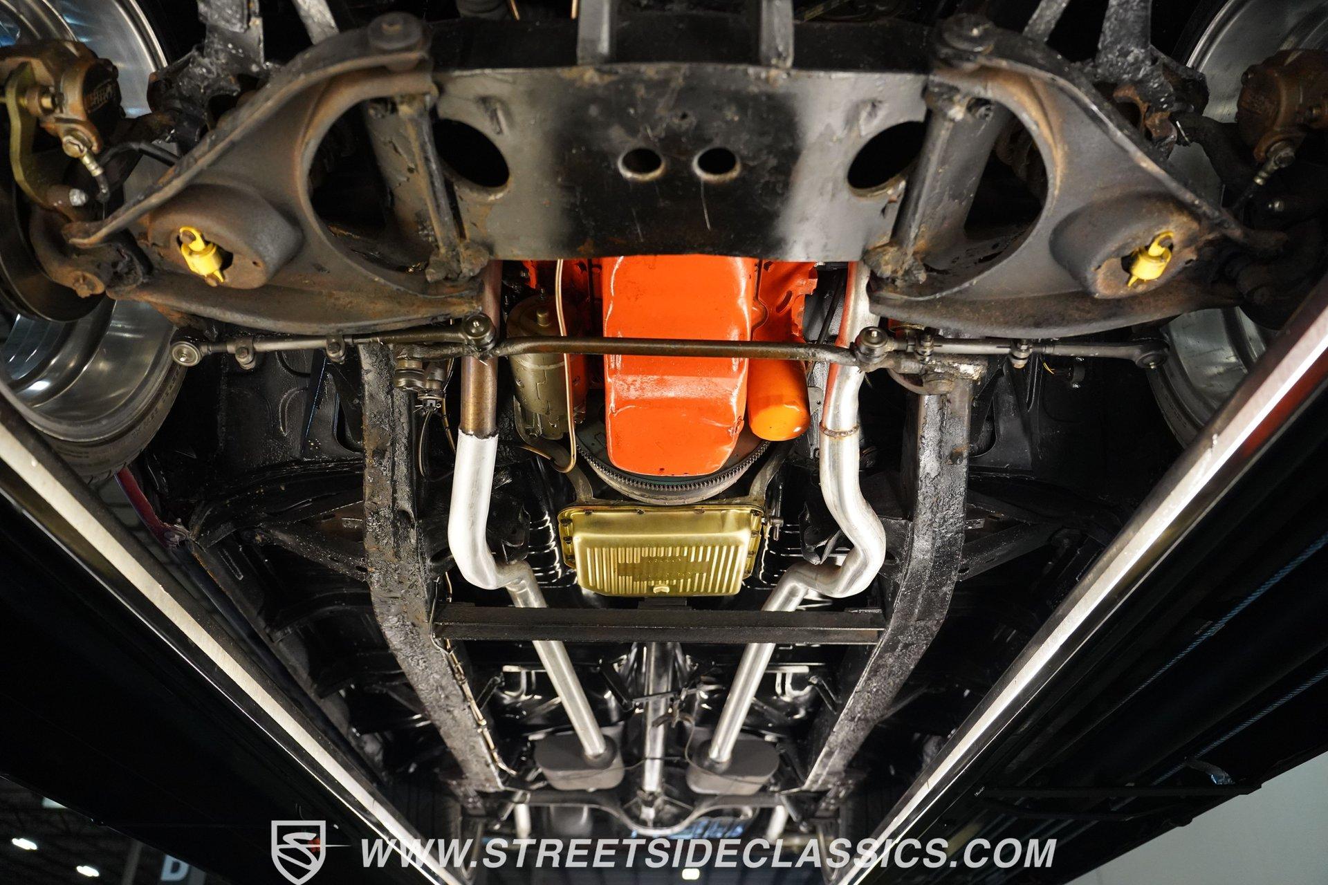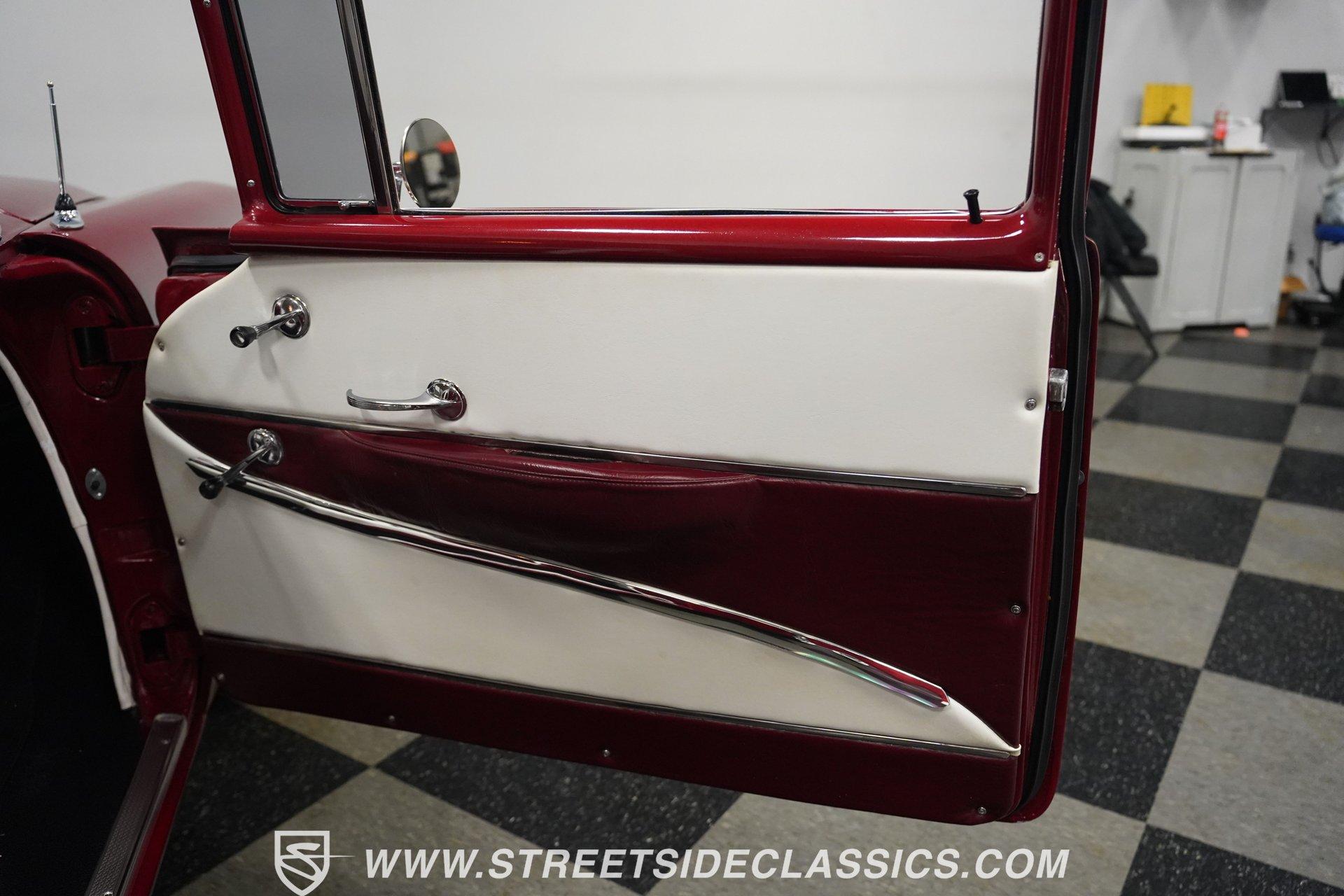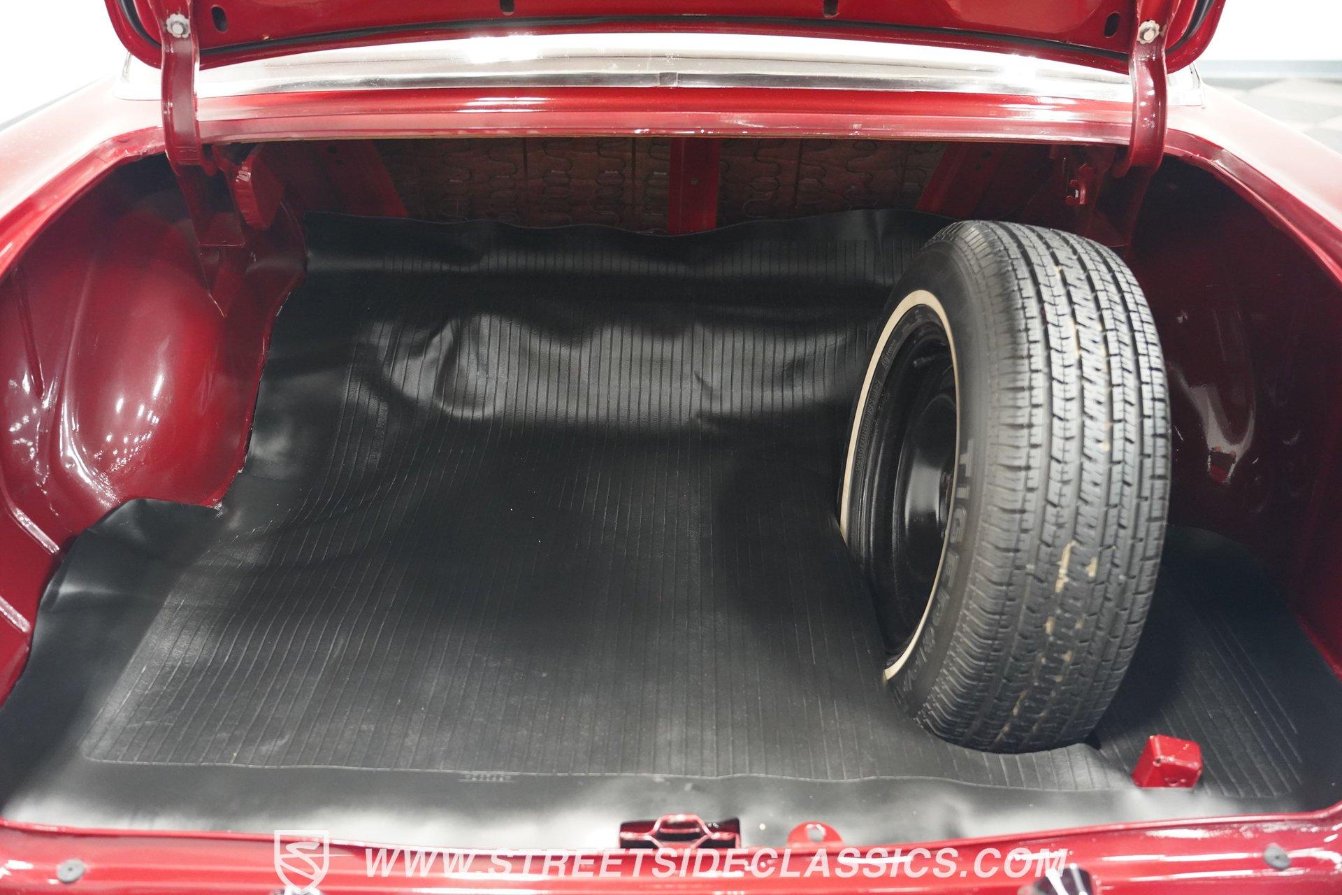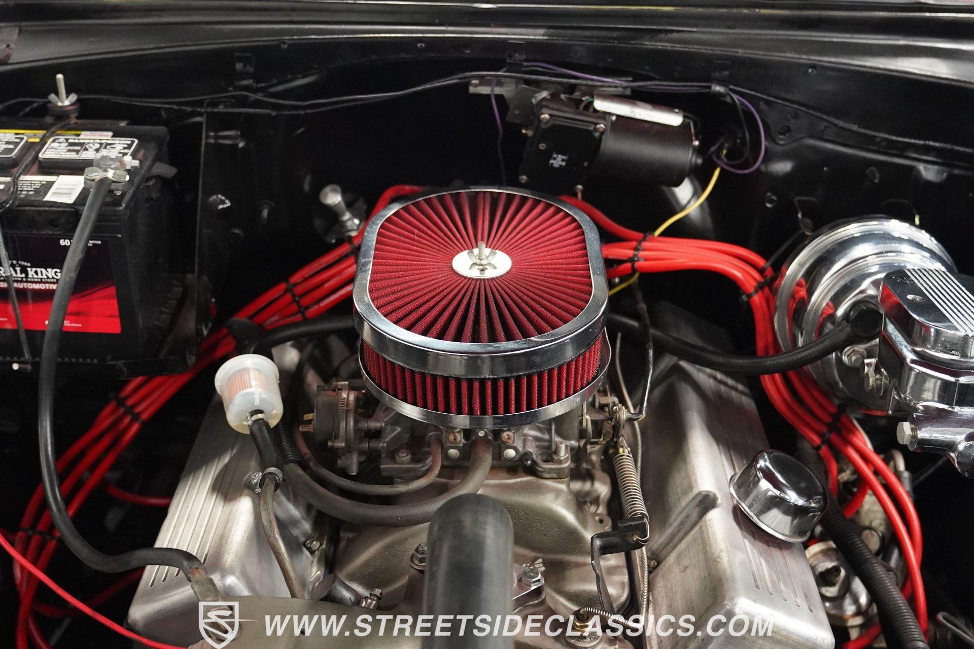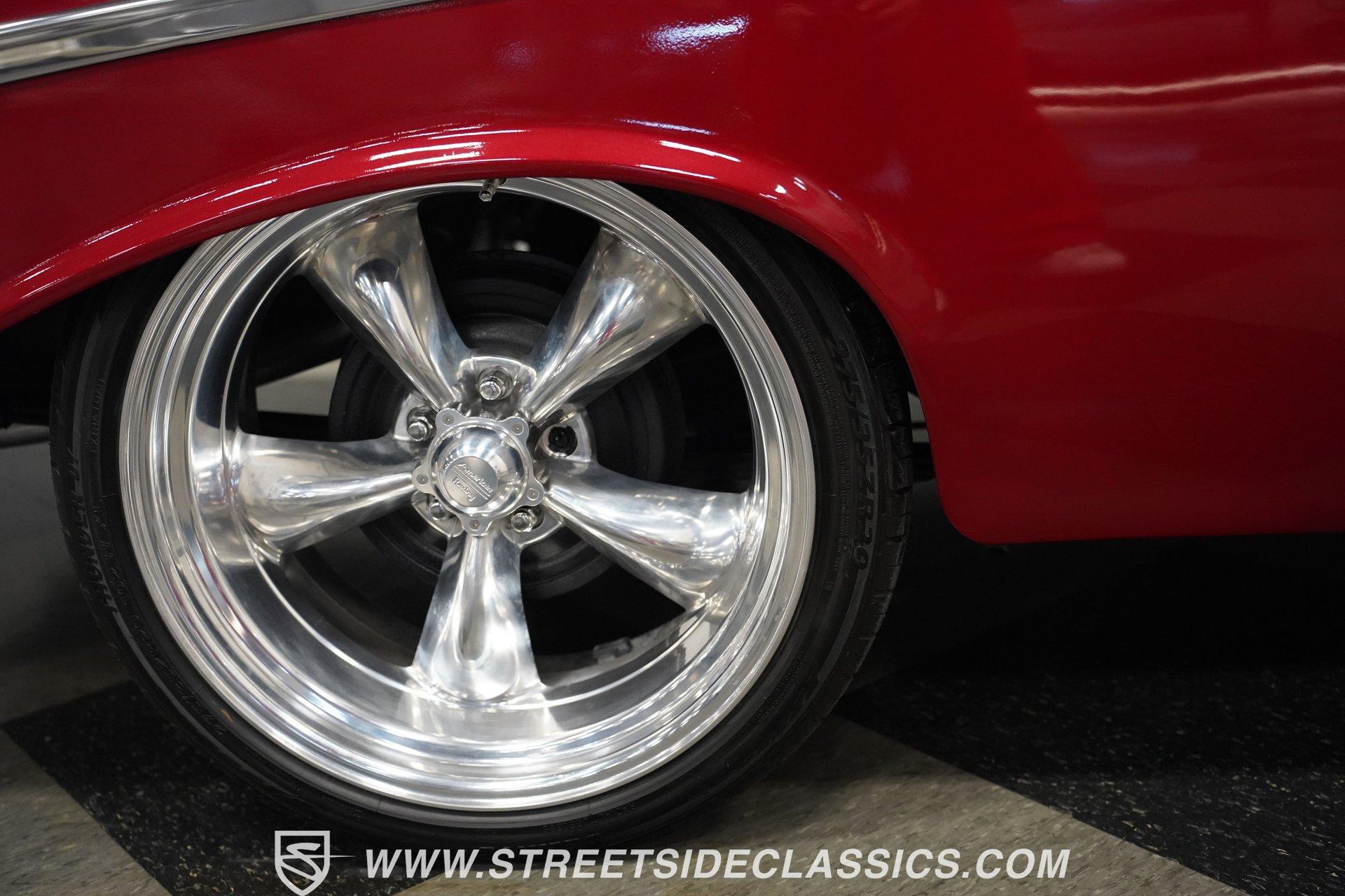 This 1956 Chevrolet 210 rolls on massive American Racing 20-inch wheels, creating a street-dominating stance that announces its arrival from blocks away. The dark red paint accentuates every crisp body line, while the polished chrome trim adds brilliant contrast to this classic's exterior. The wide rubber setup features 245/35ZR20 tires up front and aggressive 275/35ZR20 tires in the rear. The dual exhaust exits cleanly through the rear bumper, completing this two-door's powerful profile. The maroon and white interior combination reflects the precision and style of 1950s American craftsmanship, updated with carefully chosen modifications. The vinyl bench seat anchors the cabin, while the tilt steering column puts you in complete control. The auxiliary gauges mounted below the dash deliver crucial performance data. Power steering allows for quick directional changes, while the stock original gauge cluster maintains the period-correct appeal. A 350 V8 engine amplifies this Chevy's performance capabilities, drawing air through an Edelbrock 1405 carburetor with manual choke. The TH350 3-speed automatic transmission distributes power to the rear end. The chassis features power front disc brakes for rapid deceleration, while the dual exhaust system with Thrush mufflers produces a deep, resonant tone. The aluminum radiator maintains optimal temperature control during extended driving sessions. HIGHLIGHTS: 350 V8 Engine TH350 3-Speed Automatic Transmission Edelbrock 1405 Carburetor with Manual Choke Power Front Disc Brakes Dual Exhaust with Thrush Mufflers Aluminum Radiator Power Steering Dark Red Paint 20-inch American Racing Wheels with 245/35ZR20 Front, 275/35ZR20 Rear Tires Chrome Trim and Brightwork Dual Exhaust Tips Maroon and White Interior with Bench Seat Tilt Steering Column Auxiliary Gauges Stock Original Gauge Cluster Custom Door Panels Owner's Manual Parts Catalog Wiring Diagram This 1956 Chevrolet 210 combines its 350 V8 power with American Racing wheels and dual Thrush exhaust. The maroon and white interior pairs perfectly with the dark red exterior, making this classic two-door Chevy ready for the road. Call today!