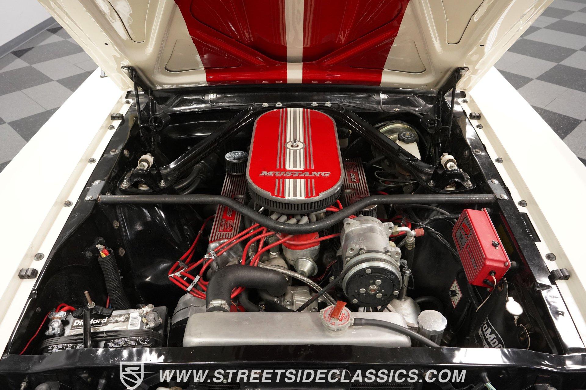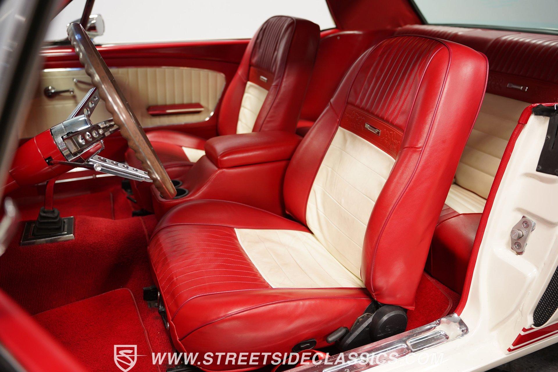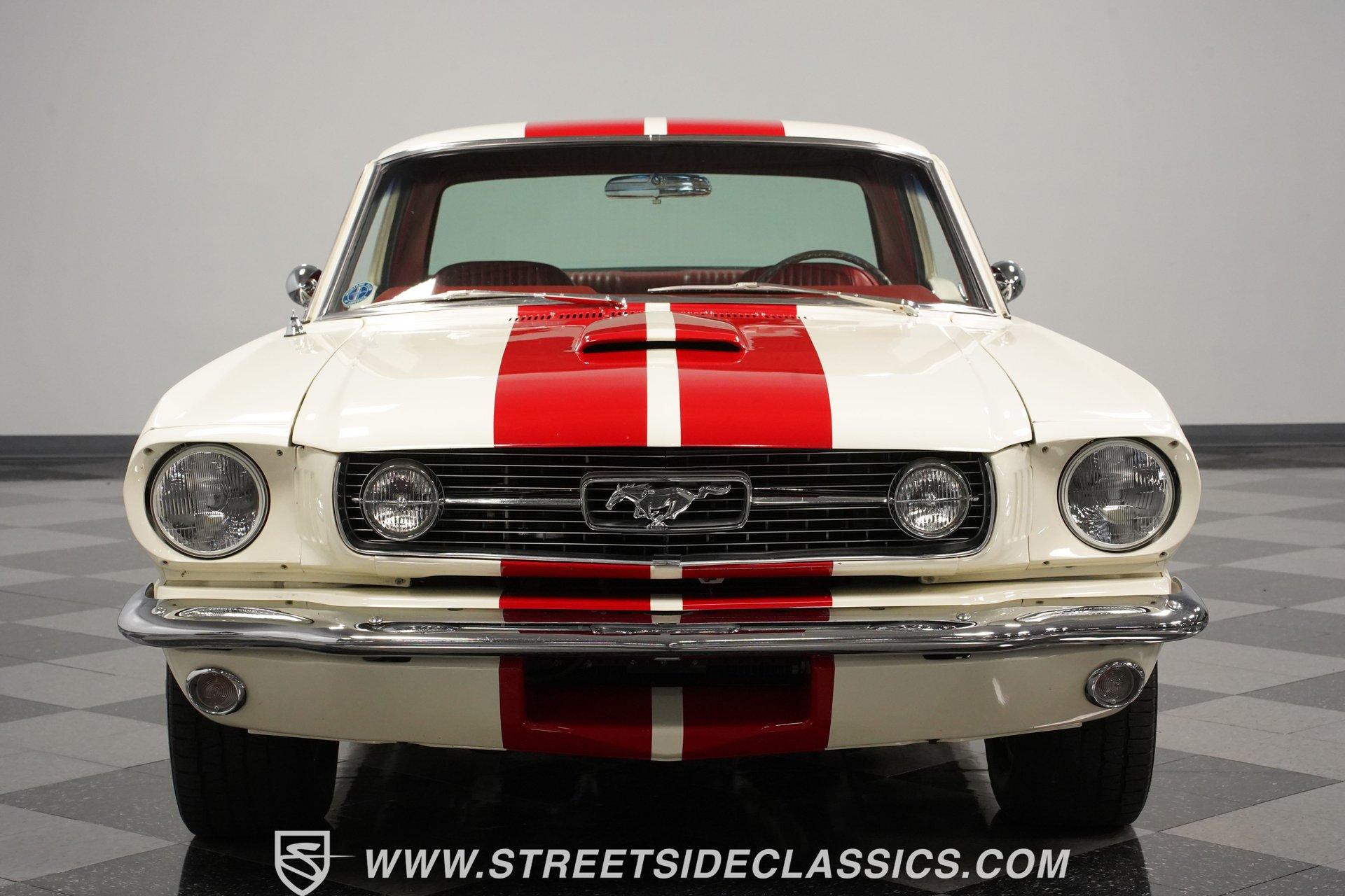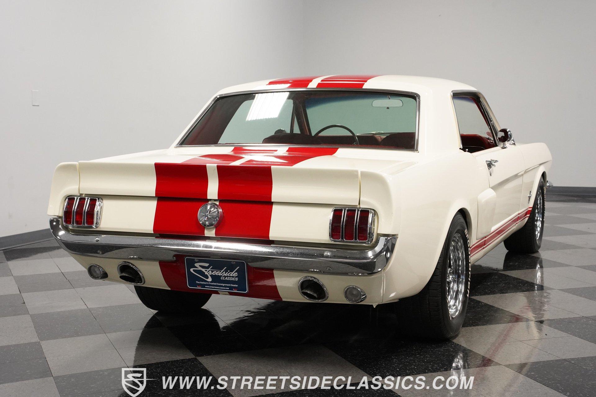 Built for speed and styled for admiration, this 1966 Ford Mustang Restomod showcases a striking Wimbledon White paint accented by bold red racing stripes that continue onto the underside of both hood and trunk lid. The aggressive stance comes from a performance-focused suspension setup, while Shelby-inspired upgrades including the functional hood scoop, GT350R front valence, side scoops, and integrated rear spoiler give this classic pony car a competition-ready appearance. GT-style exhaust pipes mounted through the rear valance and the Monte Carlo bracer bar complete the performance aesthetic, all rolling on a set of performance wheels wrapped in 225/60R15 front and 235/60R15 rear tires. The red vinyl interior provides a vibrant contrast to the exterior while staying true to the Mustang's sporty heritage. Modern upgrades include power-adjustable front bucket seats with improved bolstering for superior support during spirited driving. The clean dash houses AutoMeter gauges and factory-style AC controls, while a retro-style AM/FM/AUX stereo with Bluetooth connectivity brings modern audio capabilities to this classic interior. A floor shifter rises from the center console, complemented by a stylish wooden steering wheel that adds both function and visual appeal. The clean carpets, tight headliner, and well-fitted door panels demonstrate careful attention to the restoration process. Powering this Mustang is a potent 302 V8 engine connected to a 5-speed manual transmission for an engaging driving experience. The engine bay shows excellent attention to detail with red Mustang air cleaner sitting atop a Holley four-barrel carburetor, Edelbrock air-gap intake manifold, and Boss Racing valve covers. Performance enhancements include JBA headers feeding into a MagnaFlow dual exhaust system, plus an MSD ignition system for reliable starting and improved performance. A newer aluminum radiator keeps temperatures in check, while power disc brakes at all four corners provide strong stopping power. The upgraded suspension includes an aftermarket rack-and-pinion steering setup and subframe connectors for improved rigidity. HIGHLIGHTS: 302 V8 Engine 5-Speed Manual Transmission Holley Four-Barrel Carburetor Edelbrock Air-Gap Intake Manifold Boss Racing Valve Covers JBA Headers MagnaFlow Dual Exhaust System MSD Ignition Aluminum Radiator Power Disc Brakes Front and Rear Aftermarket Rack and Pinion Steering Subframe Connectors Wimbledon White Paint Red Racing Stripes Fiberglass Hood with Scoop Fiberglass Trunk GT350R Front Valence Side Scoops Integrated Rear Spoiler Monte Carlo Bracer Bar GT-Style Exhaust through Rear Valance GT Fog Lights 225/60R15 Front, 235/60R15 Rear Tires Red Interior with Bucket Seats Power Adjustable Front Seats Wooden Steering Wheel Floor Shifter Center Console AutoMeter Gauges AM/FM/AUX Stereo with Bluetooth Air Conditioning Power Steering This 1966 Ford Mustang Restomod combines classic Mustang styling with modern performance upgrades that make it both a showpiece and an excellent weekend cruiser. The enhanced 302 V8 engine, upgraded suspension, and four-wheel disc brakes deliver an authentic driving feel with improved reliability. Call today!