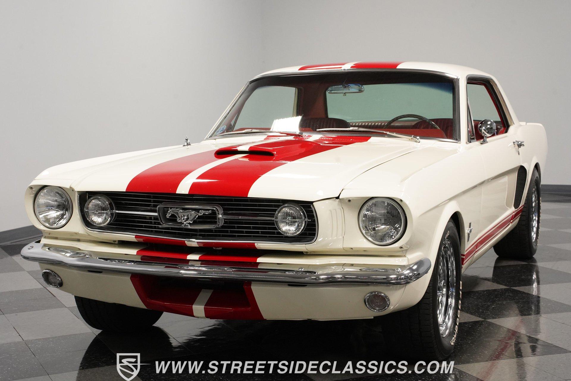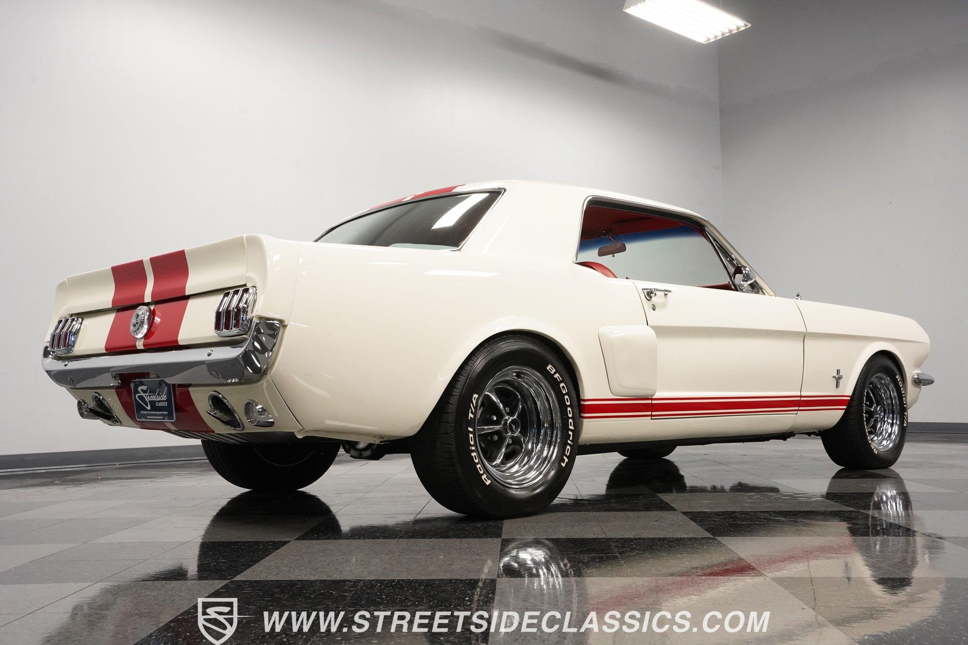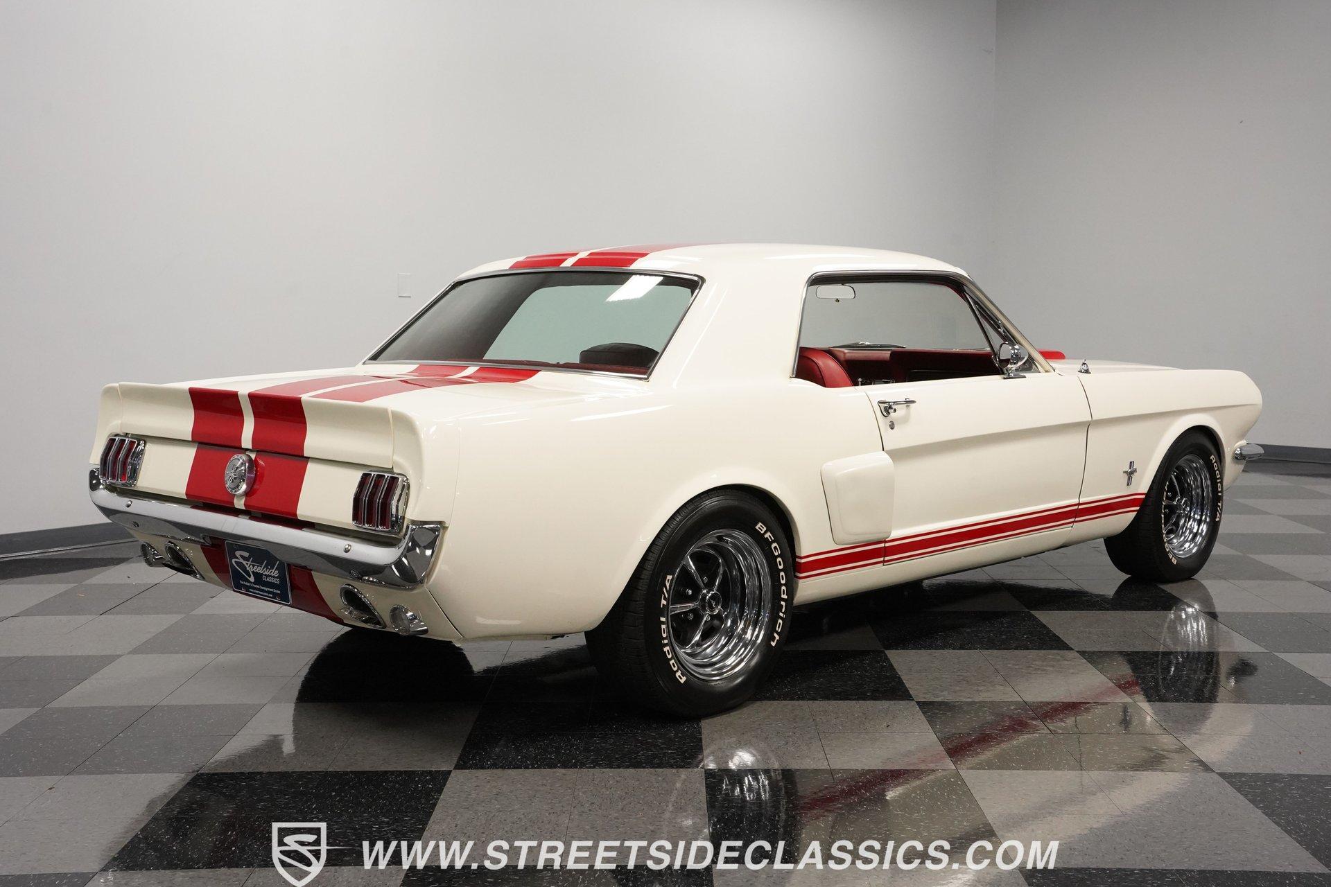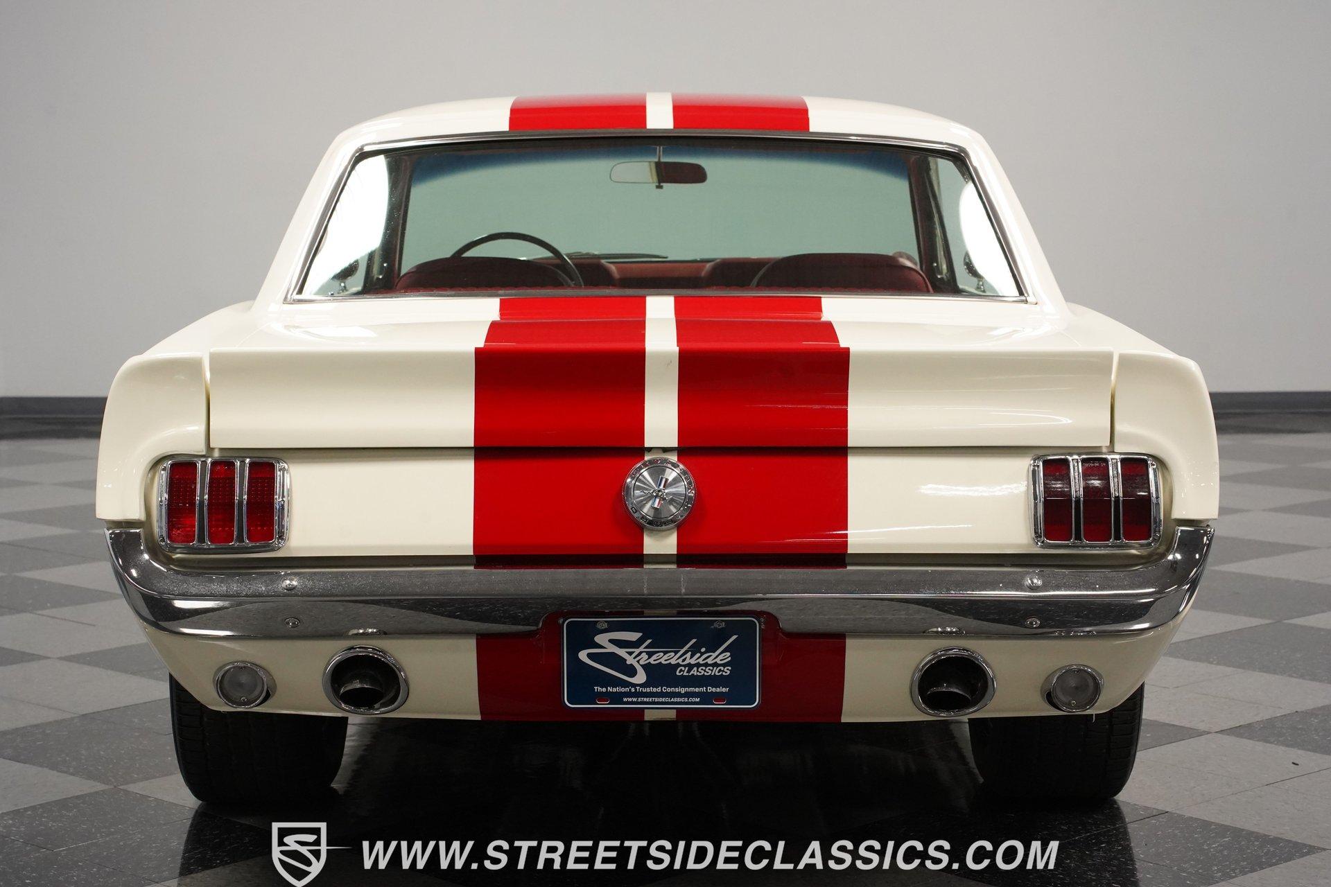 Built for speed and styled for admiration, this 1966 Ford Mustang Restomod showcases a striking Wimbledon White paint accented by bold red racing stripes that continue onto the underside of both hood and trunk lid. The aggressive stance comes from a performance-focused suspension setup, while Shelby-inspired upgrades including the functional hood scoop, GT350R front valence, side scoops, and integrated rear spoiler give this classic pony car a competition-ready appearance. GT-style exhaust pipes mounted through the rear valance and the Monte Carlo bracer bar complete the performance aesthetic, all rolling on a set of performance wheels wrapped in 225/60R15 front and 235/60R15 rear tires. The red vinyl interior provides a vibrant contrast to the exterior while staying true to the Mustang's sporty heritage. Modern upgrades include power-adjustable front bucket seats with improved bolstering for superior support during spirited driving. The clean dash houses AutoMeter gauges and factory-style AC controls, while a retro-style AM/FM/AUX stereo with Bluetooth connectivity brings modern audio capabilities to this classic interior. A floor shifter rises from the center console, complemented by a stylish wooden steering wheel that adds both function and visual appeal. The clean carpets, tight headliner, and well-fitted door panels demonstrate careful attention to the restoration process. Powering this Mustang is a potent 302 V8 engine connected to a 5-speed manual transmission for an engaging driving experience. The engine bay shows excellent attention to detail with red Mustang air cleaner sitting atop a Holley four-barrel carburetor, Edelbrock air-gap intake manifold, and Boss Racing valve covers. Performance enhancements include JBA headers feeding into a MagnaFlow dual exhaust system, plus an MSD ignition system for reliable starting and improved performance. A newer aluminum radiator keeps temperatures in check, while power disc brakes at all four corners provide strong stopping power. The upgraded suspension includes an aftermarket rack-and-pinion steering setup and subframe connectors for improved rigidity. HIGHLIGHTS: 302 V8 Engine 5-Speed Manual Transmission Holley Four-Barrel Carburetor Edelbrock Air-Gap Intake Manifold Boss Racing Valve Covers JBA Headers MagnaFlow Dual Exhaust System MSD Ignition Aluminum Radiator Power Disc Brakes Front and Rear Aftermarket Rack and Pinion Steering Subframe Connectors Wimbledon White Paint Red Racing Stripes Fiberglass Hood with Scoop Fiberglass Trunk GT350R Front Valence Side Scoops Integrated Rear Spoiler Monte Carlo Bracer Bar GT-Style Exhaust through Rear Valance GT Fog Lights 225/60R15 Front, 235/60R15 Rear Tires Red Interior with Bucket Seats Power Adjustable Front Seats Wooden Steering Wheel Floor Shifter Center Console AutoMeter Gauges AM/FM/AUX Stereo with Bluetooth Air Conditioning Power Steering This 1966 Ford Mustang Restomod combines classic Mustang styling with modern performance upgrades that make it both a showpiece and an excellent weekend cruiser. The enhanced 302 V8 engine, upgraded suspension, and four-wheel disc brakes deliver an authentic driving feel with improved reliability. Call today!