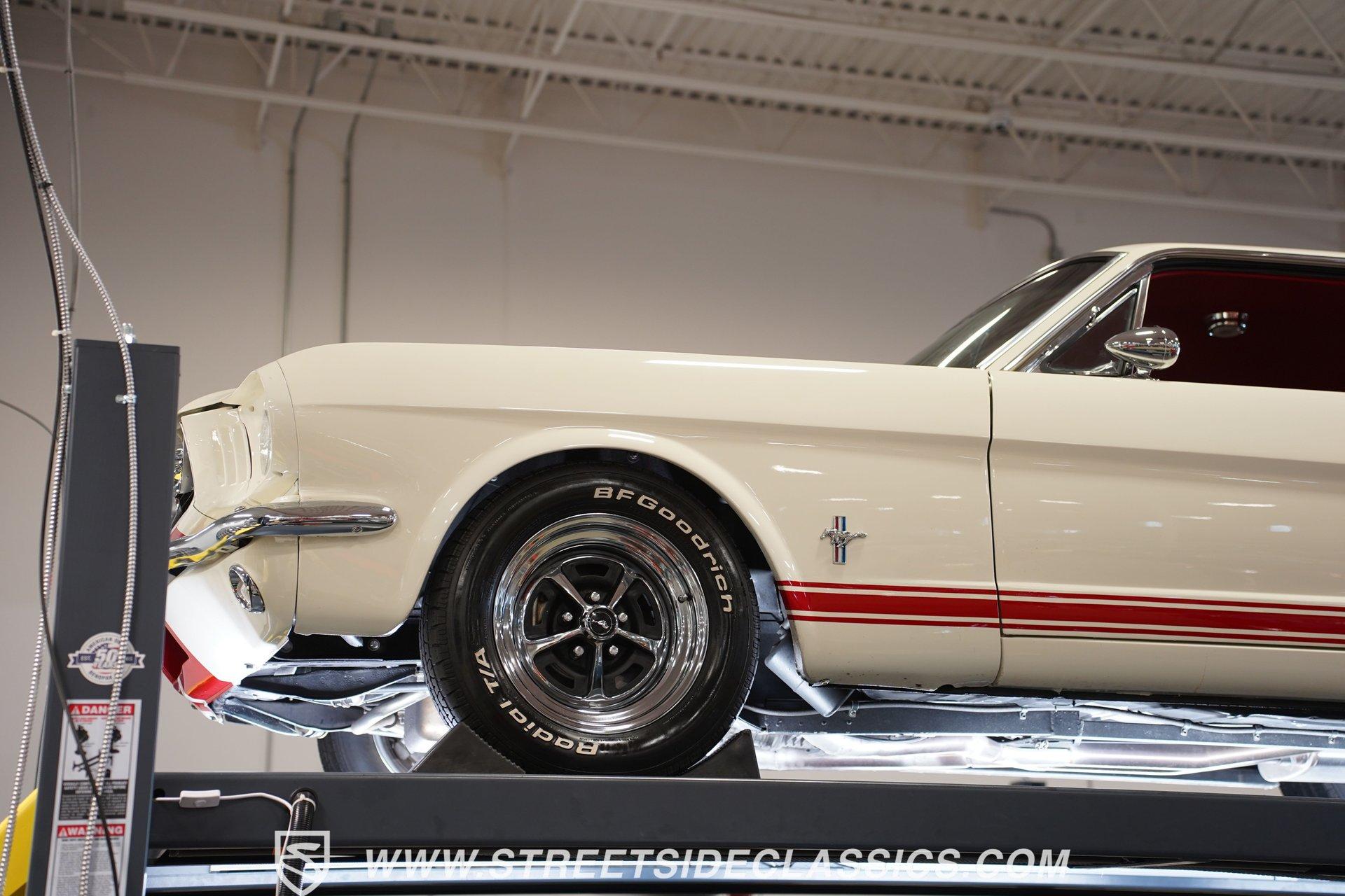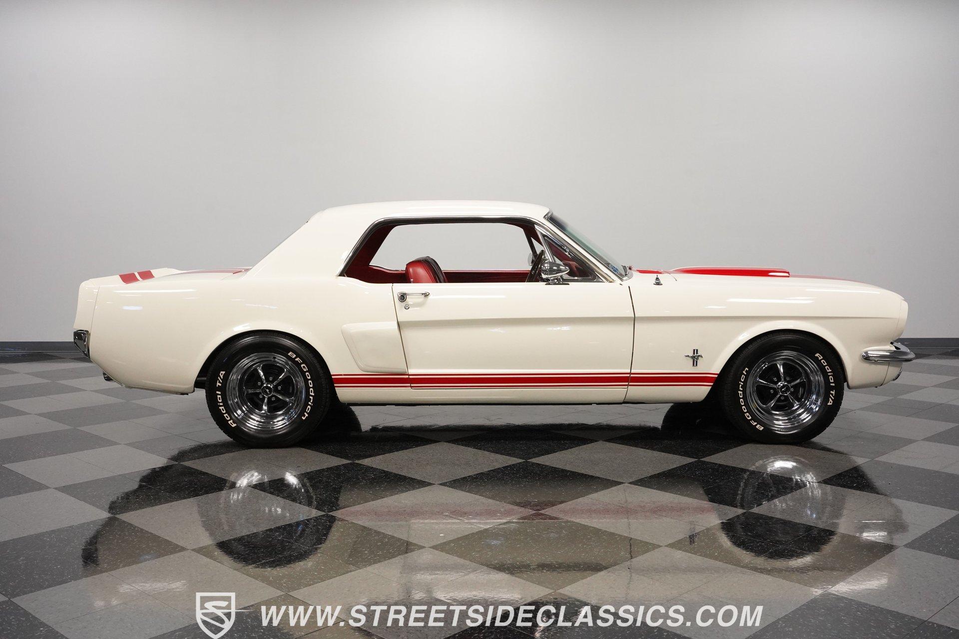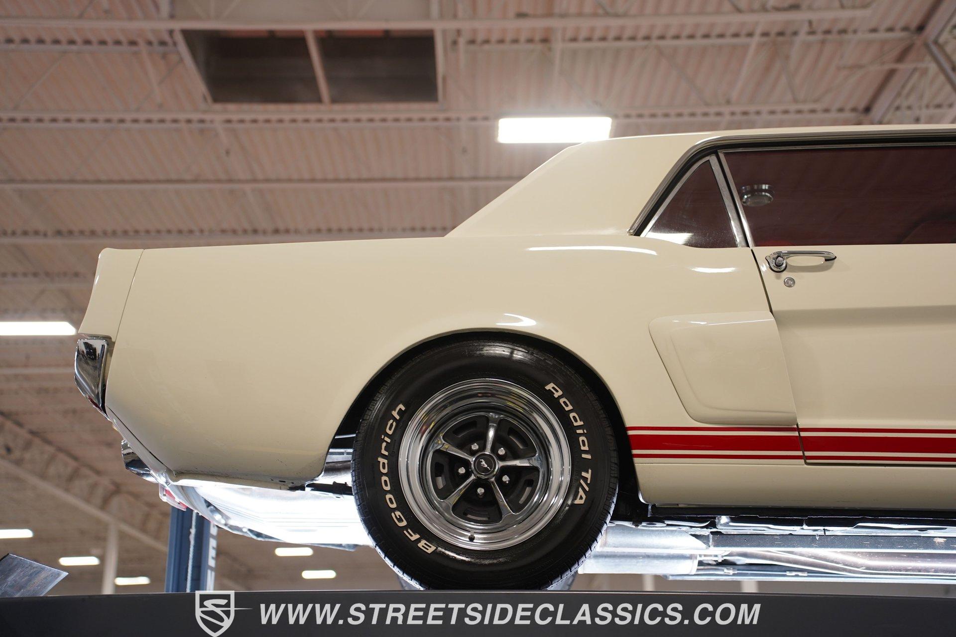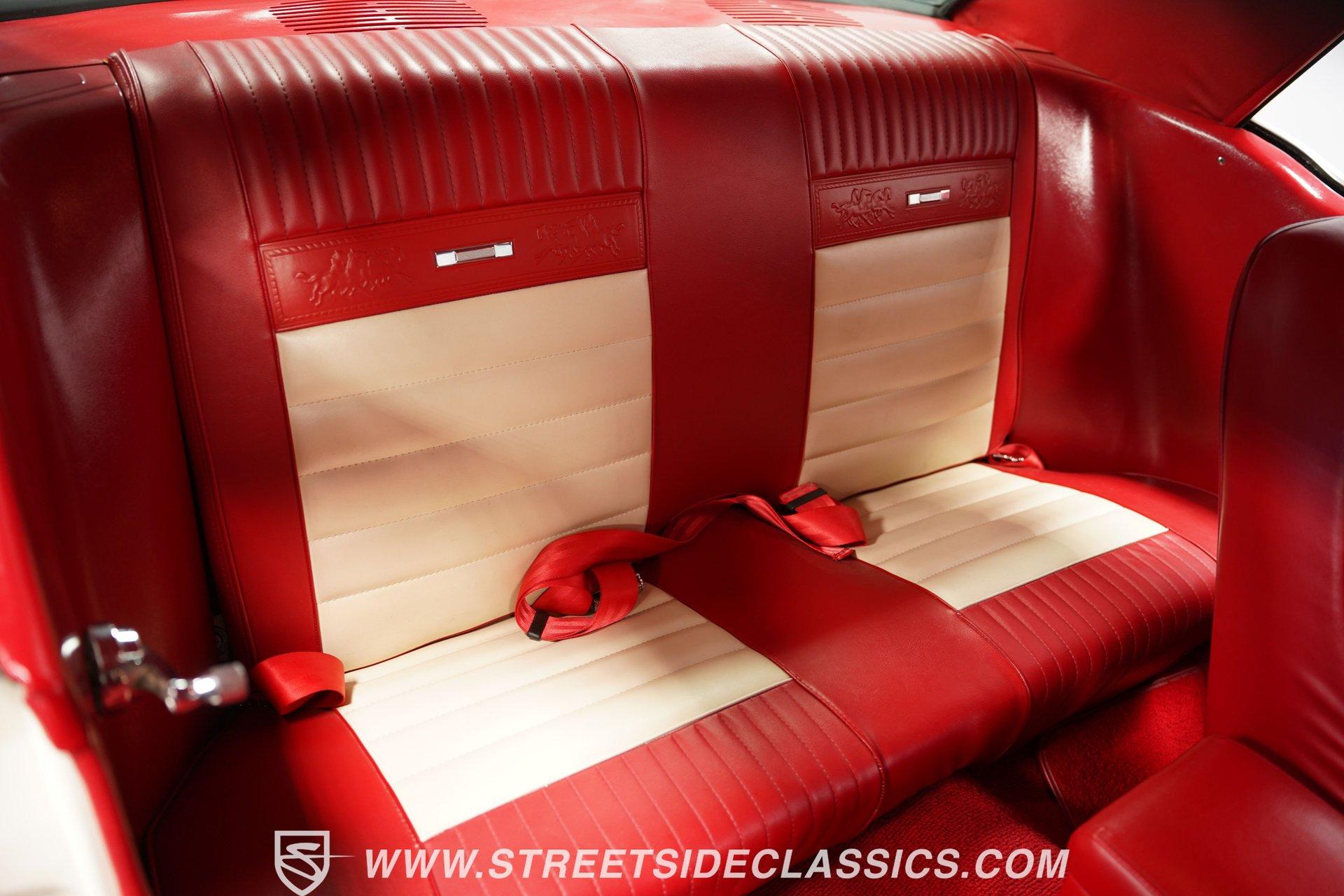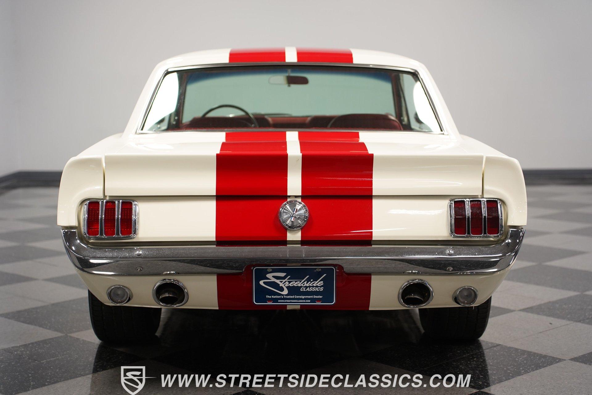 Built for speed and styled for admiration, this 1966 Ford Mustang Restomod showcases a striking Wimbledon White paint accented by bold red racing stripes that continue onto the underside of both hood and trunk lid. The aggressive stance comes from a performance-focused suspension setup, while Shelby-inspired upgrades including the functional hood scoop, GT350R front valence, side scoops, and integrated rear spoiler give this classic pony car a competition-ready appearance. GT-style exhaust pipes mounted through the rear valance and the Monte Carlo bracer bar complete the performance aesthetic, all rolling on a set of performance wheels wrapped in 225/60R15 front and 235/60R15 rear tires. The red vinyl interior provides a vibrant contrast to the exterior while staying true to the Mustang's sporty heritage. Modern upgrades include power-adjustable front bucket seats with improved bolstering for superior support during spirited driving. The clean dash houses AutoMeter gauges and factory-style AC controls, while a retro-style AM/FM/AUX stereo with Bluetooth connectivity brings modern audio capabilities to this classic interior. A floor shifter rises from the center console, complemented by a stylish wooden steering wheel that adds both function and visual appeal. The clean carpets, tight headliner, and well-fitted door panels demonstrate careful attention to the restoration process. Powering this Mustang is a potent 302 V8 engine connected to a 5-speed manual transmission for an engaging driving experience. The engine bay shows excellent attention to detail with red Mustang air cleaner sitting atop a Holley four-barrel carburetor, Edelbrock air-gap intake manifold, and Boss Racing valve covers. Performance enhancements include JBA headers feeding into a MagnaFlow dual exhaust system, plus an MSD ignition system for reliable starting and improved performance. A newer aluminum radiator keeps temperatures in check, while power disc brakes at all four corners provide strong stopping power. The upgraded suspension includes an aftermarket rack-and-pinion steering setup and subframe connectors for improved rigidity. HIGHLIGHTS: 302 V8 Engine 5-Speed Manual Transmission Holley Four-Barrel Carburetor Edelbrock Air-Gap Intake Manifold Boss Racing Valve Covers JBA Headers MagnaFlow Dual Exhaust System MSD Ignition Aluminum Radiator Power Disc Brakes Front and Rear Aftermarket Rack and Pinion Steering Subframe Connectors Wimbledon White Paint Red Racing Stripes Fiberglass Hood with Scoop Fiberglass Trunk GT350R Front Valence Side Scoops Integrated Rear Spoiler Monte Carlo Bracer Bar GT-Style Exhaust through Rear Valance GT Fog Lights 225/60R15 Front, 235/60R15 Rear Tires Red Interior with Bucket Seats Power Adjustable Front Seats Wooden Steering Wheel Floor Shifter Center Console AutoMeter Gauges AM/FM/AUX Stereo with Bluetooth Air Conditioning Power Steering This 1966 Ford Mustang Restomod combines classic Mustang styling with modern performance upgrades that make it both a showpiece and an excellent weekend cruiser. The enhanced 302 V8 engine, upgraded suspension, and four-wheel disc brakes deliver an authentic driving feel with improved reliability. Call today!