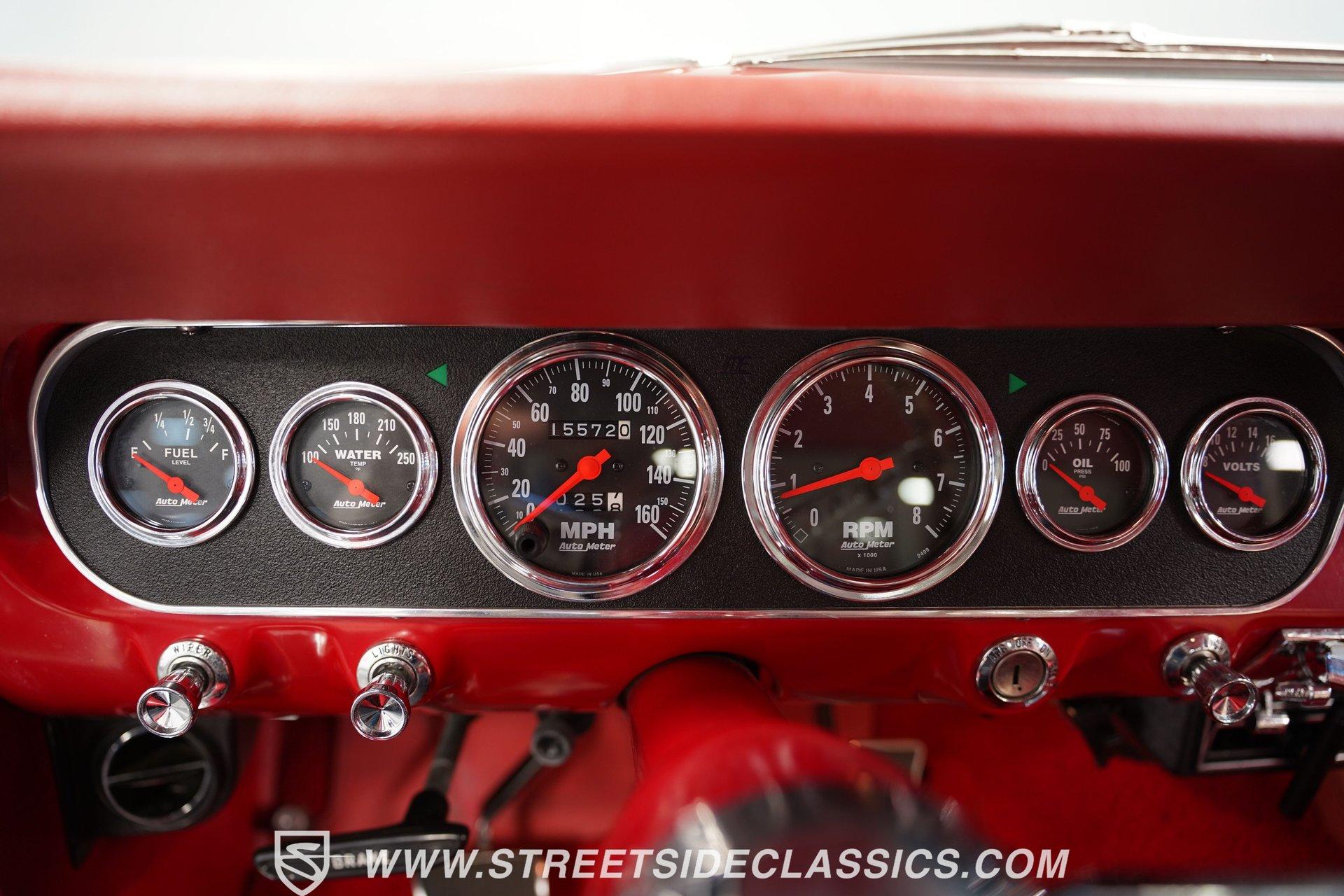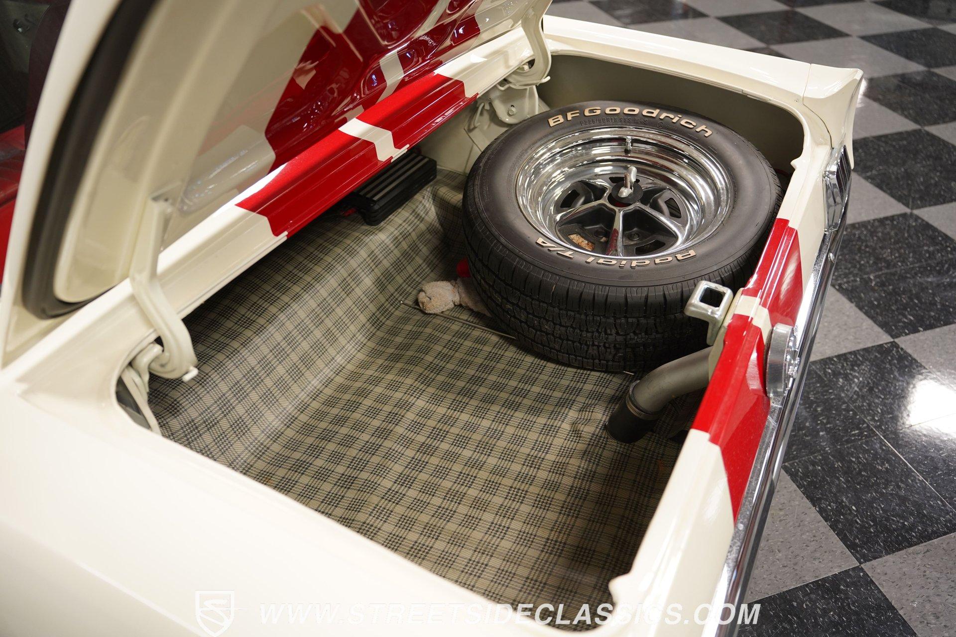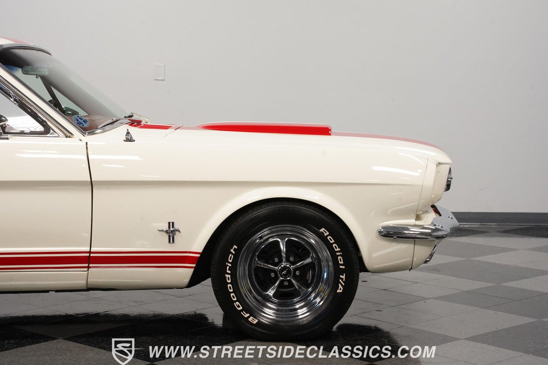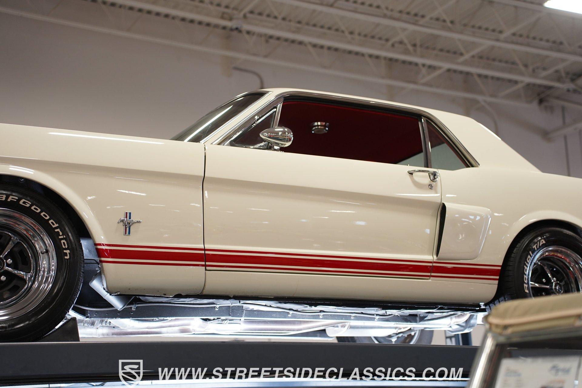 Built for speed and styled for admiration, this 1966 Ford Mustang Restomod showcases a striking Wimbledon White paint accented by bold red racing stripes that continue onto the underside of both hood and trunk lid. The aggressive stance comes from a performance-focused suspension setup, while Shelby-inspired upgrades including the functional hood scoop, GT350R front valence, side scoops, and integrated rear spoiler give this classic pony car a competition-ready appearance. GT-style exhaust pipes mounted through the rear valance and the Monte Carlo bracer bar complete the performance aesthetic, all rolling on a set of performance wheels wrapped in 225/60R15 front and 235/60R15 rear tires. The red vinyl interior provides a vibrant contrast to the exterior while staying true to the Mustang's sporty heritage. Modern upgrades include power-adjustable front bucket seats with improved bolstering for superior support during spirited driving. The clean dash houses AutoMeter gauges and factory-style AC controls, while a retro-style AM/FM/AUX stereo with Bluetooth connectivity brings modern audio capabilities to this classic interior. A floor shifter rises from the center console, complemented by a stylish wooden steering wheel that adds both function and visual appeal. The clean carpets, tight headliner, and well-fitted door panels demonstrate careful attention to the restoration process. Powering this Mustang is a potent 302 V8 engine connected to a 5-speed manual transmission for an engaging driving experience. The engine bay shows excellent attention to detail with red Mustang air cleaner sitting atop a Holley four-barrel carburetor, Edelbrock air-gap intake manifold, and Boss Racing valve covers. Performance enhancements include JBA headers feeding into a MagnaFlow dual exhaust system, plus an MSD ignition system for reliable starting and improved performance. A newer aluminum radiator keeps temperatures in check, while power disc brakes at all four corners provide strong stopping power. The upgraded suspension includes an aftermarket rack-and-pinion steering setup and subframe connectors for improved rigidity. HIGHLIGHTS: 302 V8 Engine 5-Speed Manual Transmission Holley Four-Barrel Carburetor Edelbrock Air-Gap Intake Manifold Boss Racing Valve Covers JBA Headers MagnaFlow Dual Exhaust System MSD Ignition Aluminum Radiator Power Disc Brakes Front and Rear Aftermarket Rack and Pinion Steering Subframe Connectors Wimbledon White Paint Red Racing Stripes Fiberglass Hood with Scoop Fiberglass Trunk GT350R Front Valence Side Scoops Integrated Rear Spoiler Monte Carlo Bracer Bar GT-Style Exhaust through Rear Valance GT Fog Lights 225/60R15 Front, 235/60R15 Rear Tires Red Interior with Bucket Seats Power Adjustable Front Seats Wooden Steering Wheel Floor Shifter Center Console AutoMeter Gauges AM/FM/AUX Stereo with Bluetooth Air Conditioning Power Steering This 1966 Ford Mustang Restomod combines classic Mustang styling with modern performance upgrades that make it both a showpiece and an excellent weekend cruiser. The enhanced 302 V8 engine, upgraded suspension, and four-wheel disc brakes deliver an authentic driving feel with improved reliability. Call today!
