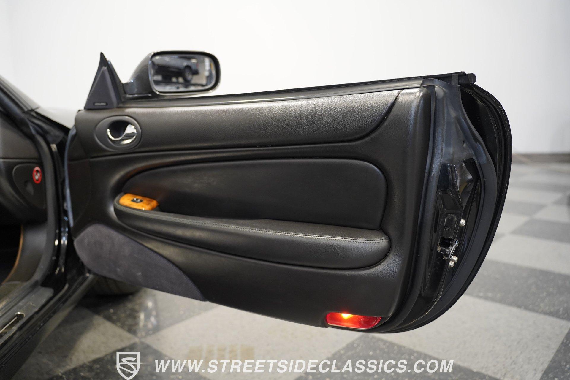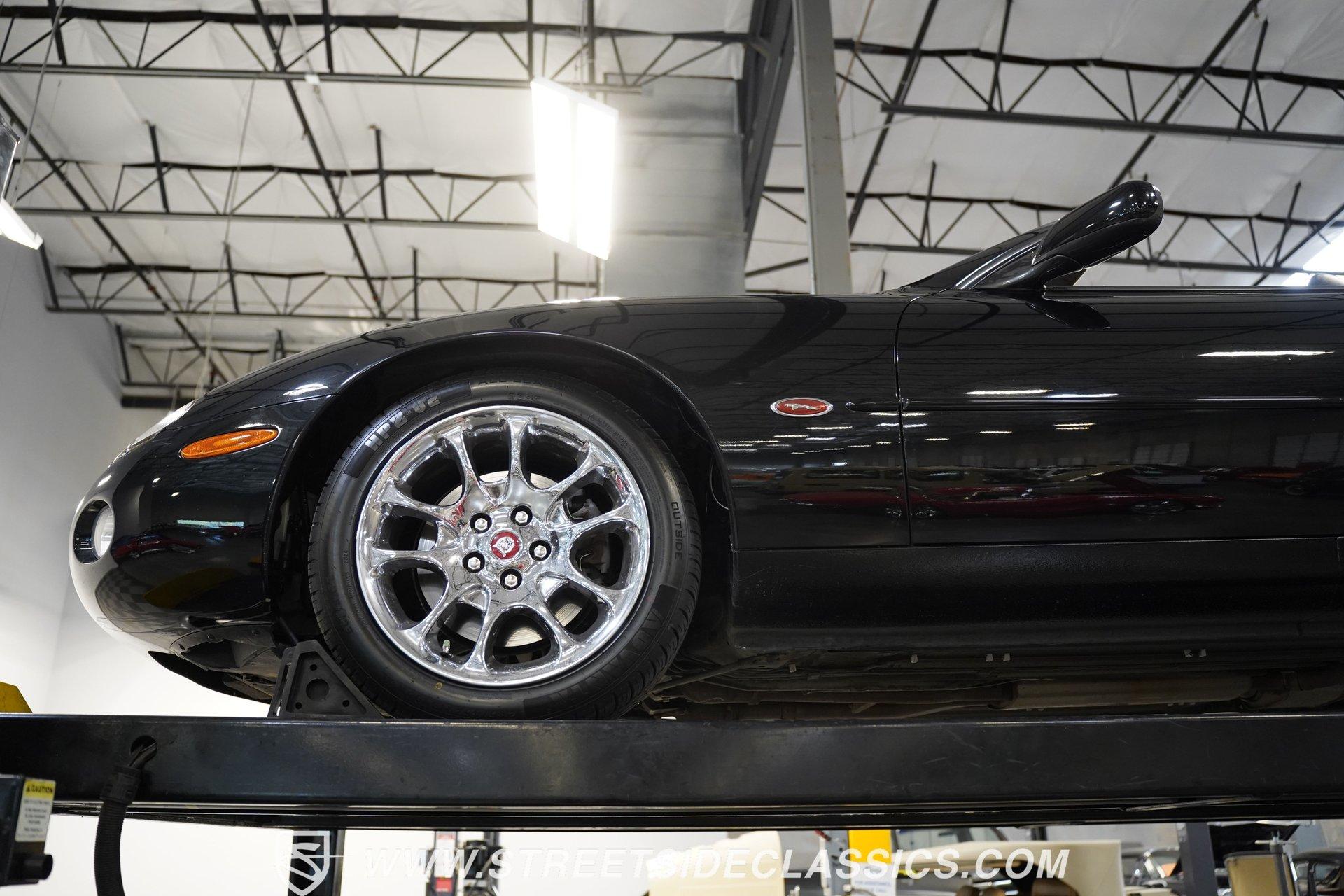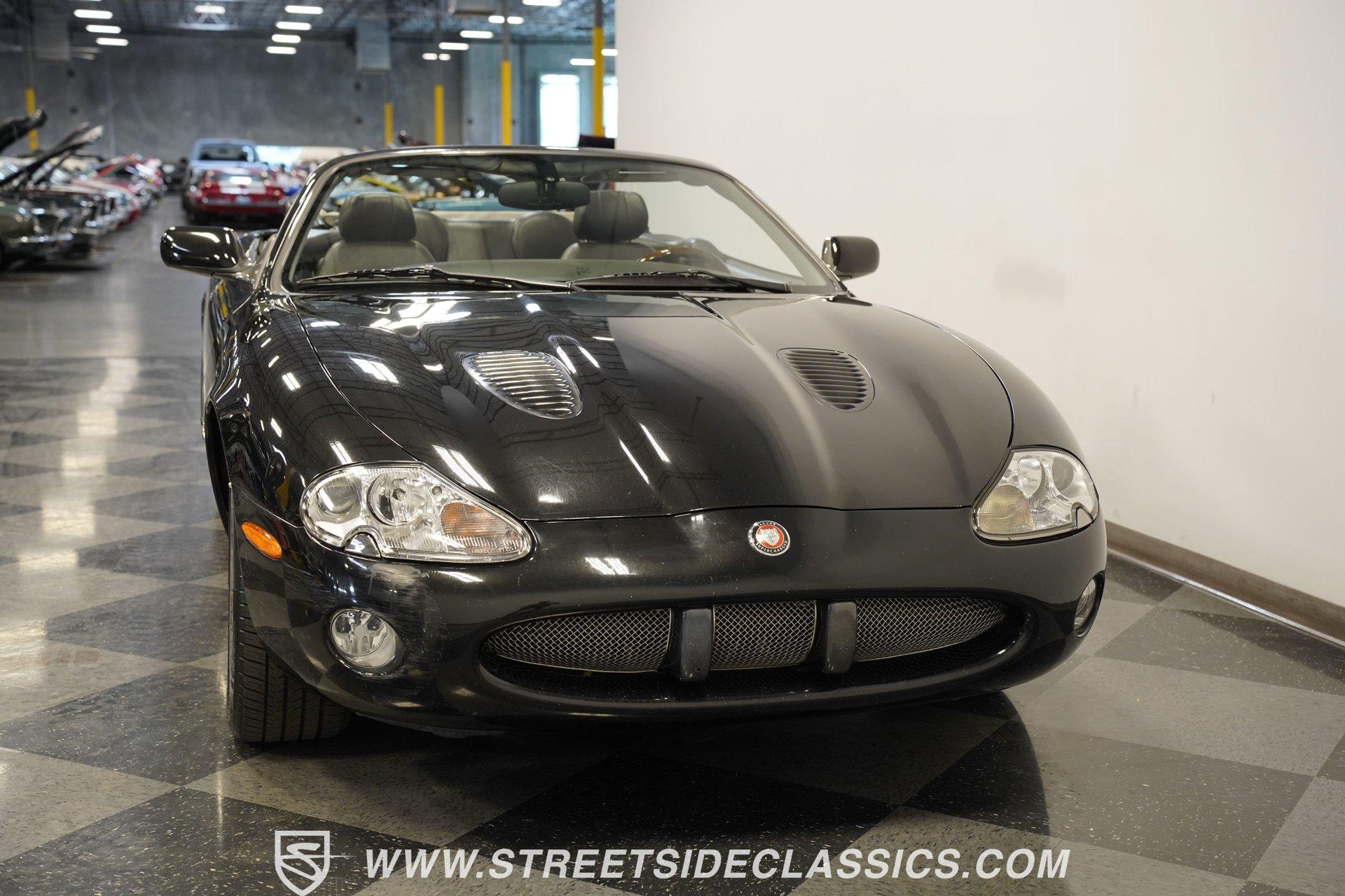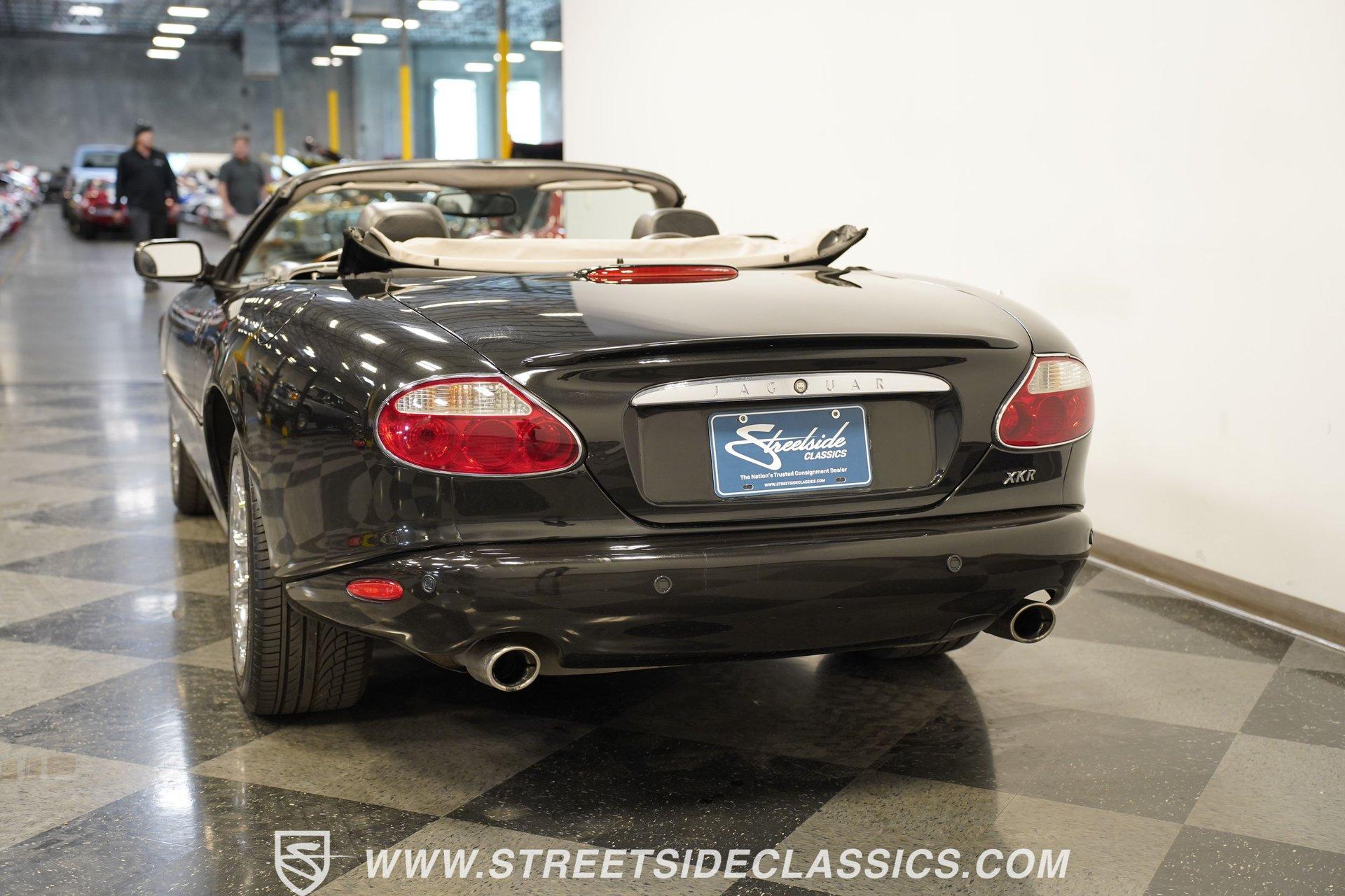 4115-PHX 2002 JAGUAR XKR SUPERCHARGED Finished in sleek black paint that accentuates its athletic silhouette, this 2002 Jaguar XKR Supercharged convertible represents British performance luxury at its finest. The svelte profile of this Coventry creation is complemented by its matching black canvas top with glass rear window, creating a cohesive appearance whether open or closed. Factory chrome 18-inch wheels fill the wheel wells perfectly and are wrapped in substantial 245/45ZR18 front and 255/45ZR18 rear tires. Red Jaguar emblems throughout signal this as the performance-focused R model, while the dual exhaust tips integrated into the rear bumper give a subtle nod to the additional power lurking within. The black leather interior continues the sophisticated British sporting tradition with supportive bucket seats and rich wood trim throughout the cabin. The driver-centric dashboard layout puts all controls within easy reach, featuring the signature J-gate shifter on the center console. A DVD-based navigation system provides guidance while the AM/FM cassette stereo system supplies the soundtrack. Thoughtful luxury touches abound with power accessories, including windows, locks, and seats, complemented by essential comfort features that make this Grand Tourer equally suitable for spirited drives or long-distance travel. The technical masterpiece of this XKR is its 4.0-liter V8 Supercharged engine producing impressive power through a refined 5-speed automatic transmission. This drivetrain combination offers excellent throttle response and acceleration while maintaining the dignified character expected of a proper Jaguar. The fully independent suspension system with control arms and coil springs delivers exceptional handling dynamics, while power disc brakes at all four corners provide confident stopping power. The rear-wheel-drive platform maintains traditional sports car balance and feel while the advanced engineering delivers modern performance. HIGHLIGHTS: 4.0L V8 Supercharged FI DOHC Engine 5 Speed Automatic Transmission Rear Wheel Drive Four-Wheel Power Disc Brakes Independent Suspension with Control Arms and Coil Springs Dual Exhaust Black Exterior Paint Black Canvas Convertible Top with Glass Rear Window 18" Factory Chrome Wheels 245/45ZR18 Front, 255/45ZR18 Rear Tires Red Jaguar Emblems Rear Parking Sensors Black Interior with Leather Bucket Seats Wood Trim Power Steering Air Conditioning AM/FM Cassette Stereo DVD-Based Navigation System Floor Shifter Center Console Power Windows and Locks A thrilling combination of British luxury and supercharged performance, this 2002 Jaguar XKR convertible offers the perfect blend of sporting capability and refined elegance. With its potent V8 engine, sumptuous leather interior, and timeless styling, this grand touring convertible awaits your command. Call today!