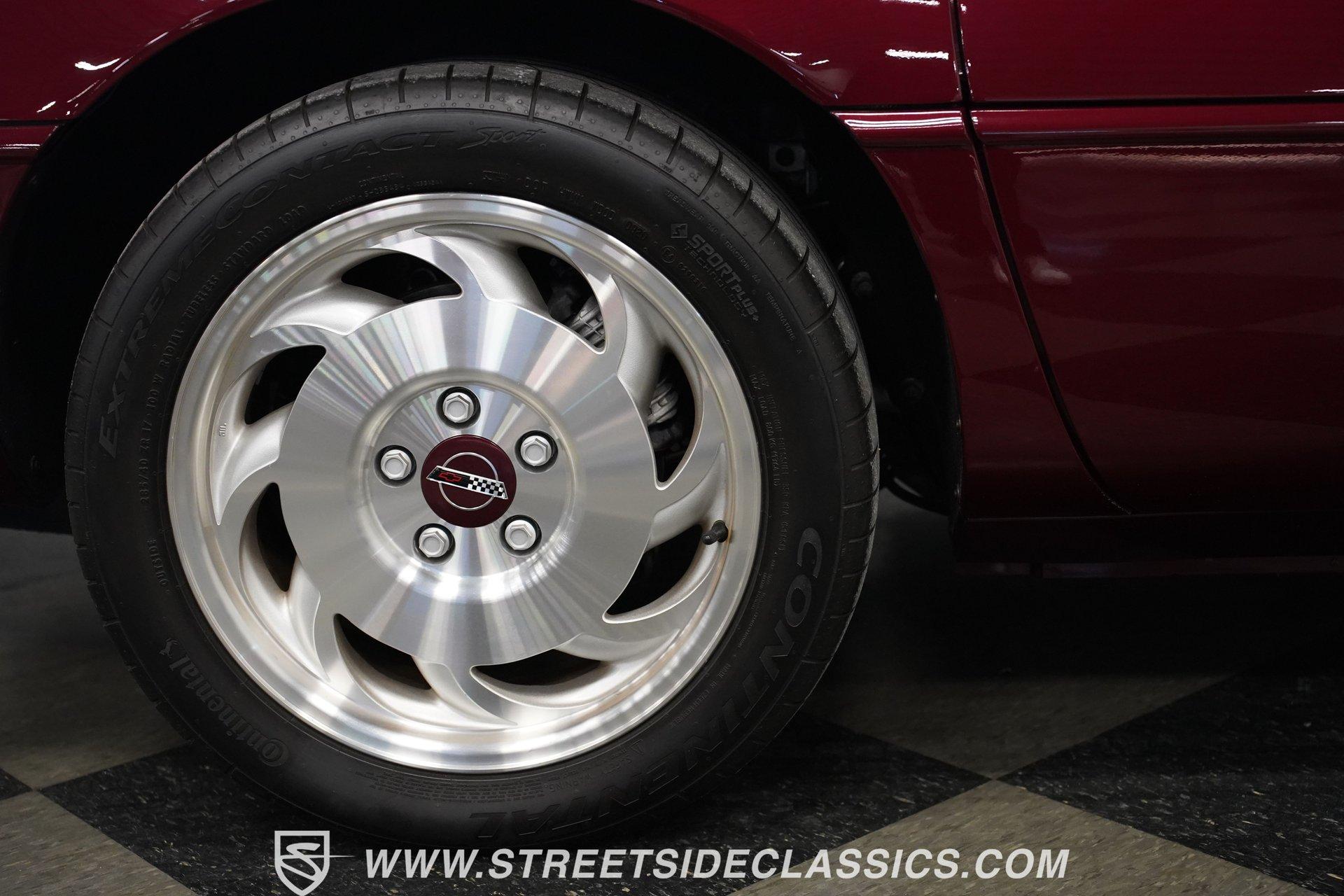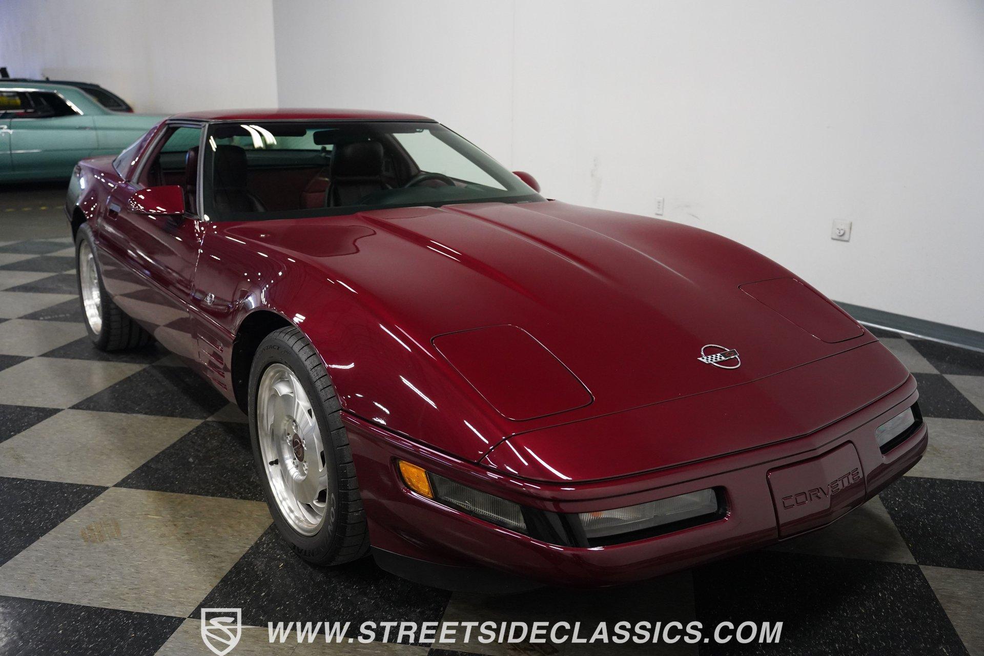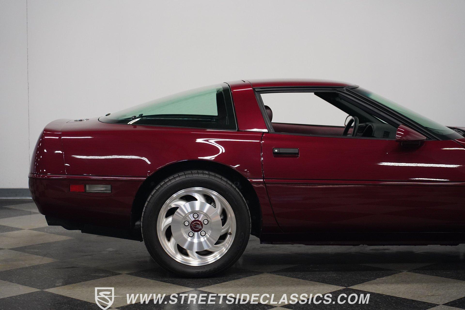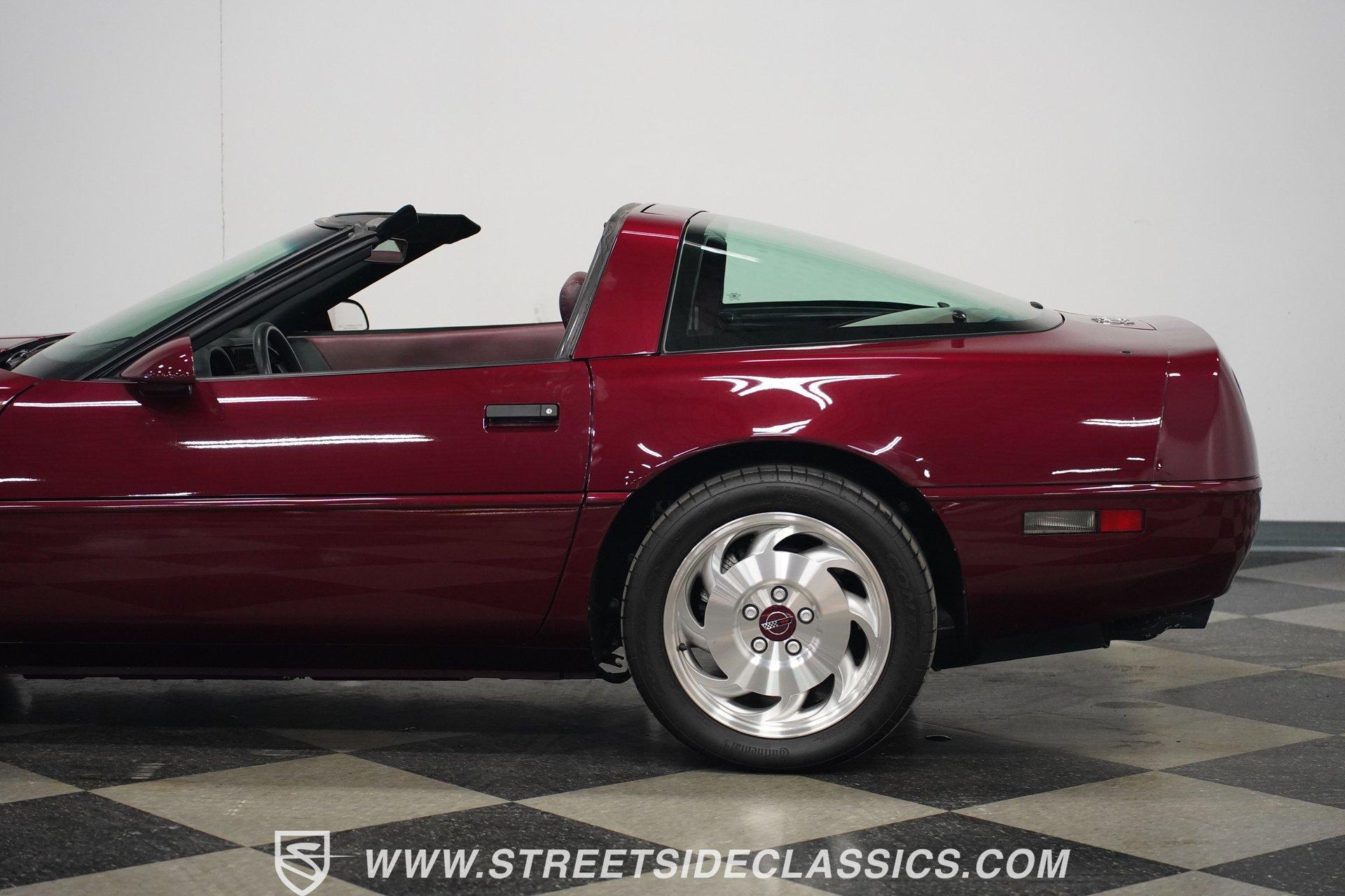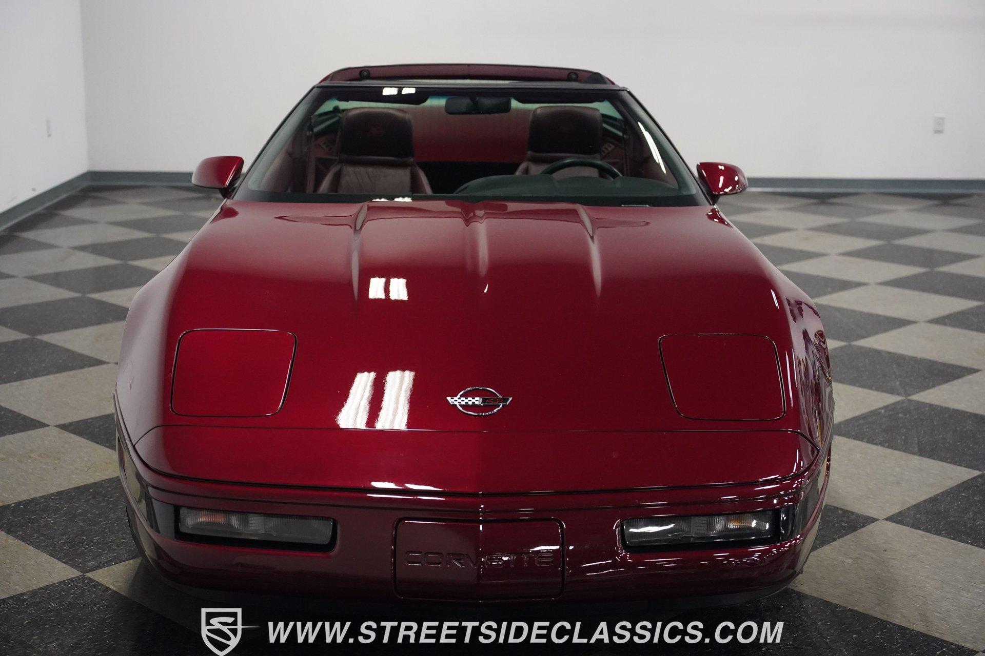 Rare and exclusive, the 1993 Chevrolet Corvette 40th Anniversary appears before you in its factory Ruby Red Metallic finish - one of only about 4,500 anniversary coupes produced. The astonishing odometer reading of just 21,607 miles translates to an average of less than 700 miles driven per year over its 32-year lifespan. The unmistakable Corvette profile is complemented by factory 17" sawblade wheels wrapped in Continental rubber (255/45ZR17 front, 285/40ZR17 rear) that create an aggressive stance. With a removable targa top for open-air cruising and virtually time-capsule-level preservation, this anniversary edition maintains its factory appearance exactly as it rolled off the assembly line. Ruby Red leather adorns the interior, creating a cohesive visual connection with the exterior. The cabin remains exceptionally preserved, showing minimal wear on touch points - a testament to the extraordinarily low 21,607 lifetime miles accumulated. Both driver and passenger enjoy power-adjustable bucket seats positioned around the center console with its six-speed manual shifter. Comfort comes standard with power windows, power locks, air conditioning, and an AM/FM cassette player. The original equipment remains intact throughout, preserving the authentic Corvette experience that made these C4 models legendary among performance enthusiasts. Powering this American icon is the potent 5.7 Liter LT1 V8 engine mated to the coveted six-speed manual transmission. With just 21,607 miles - averaging less than 700 miles annually since new - this drivetrain remains in virtually factory-fresh condition. The combination produces exhilarating acceleration while the factory mono leaf spring suspension both front and rear delivers precise handling. Four-wheel power disc brakes provide excellent stopping capability, and power steering ensures effortless control at any speed. The dual exhaust system produces the signature Corvette sound that enthusiasts crave, all while maintaining mechanical components that have seen remarkably little use over three decades. HIGHLIGHTS: 5.7 Liter LT1 V8 Engine 6-Speed Manual Transmission Electronic Fuel Injection Power Disc Brakes Mono Leaf Spring Suspension Dual Exhaust Power Steering Ruby Red Metallic Paint 17" Factory Sawblade Wheels 255/45ZR17 Front, 285/40ZR17 Rear Continental Tires Removable Targa Top Ruby Red Interior with Power Leather Bucket Seats Power Windows Power Locks Air Conditioning AM/FM Cassette Player Console Shifter Tool to Remove Targa Top Wheel Lock Socket 21,607 Miles One of approximately 4,500 40th Anniversary coupes produced, this remarkably low-mileage 1993 Chevrolet Corvette represents American performance preserved in time. With just 21,607 original miles, its Ruby Red Metallic paint, matching leather interior, potent LT1 V8 engine, and six-speed manual combine to deliver an essentially new 32-year-old sports car experience. Call today!