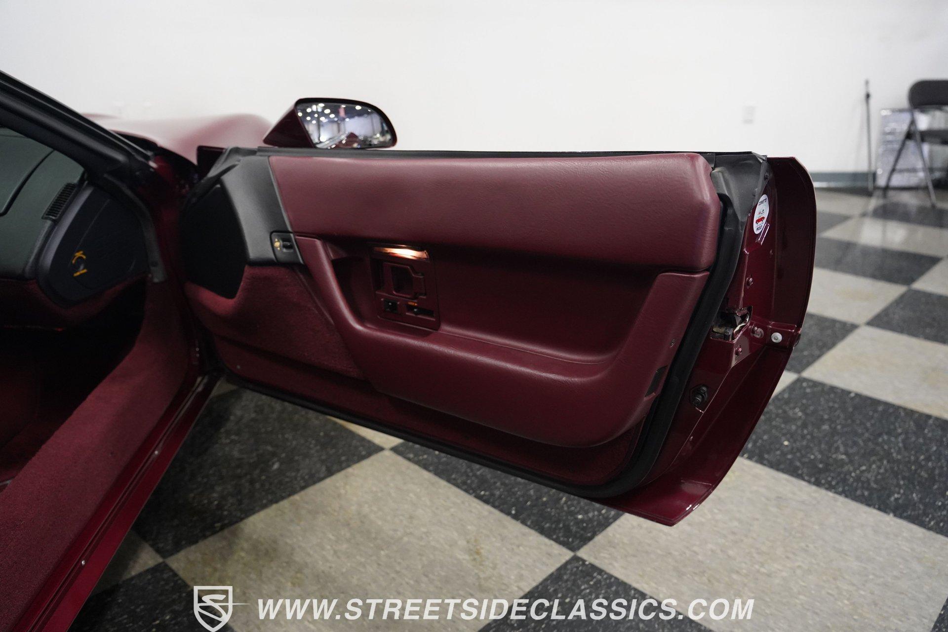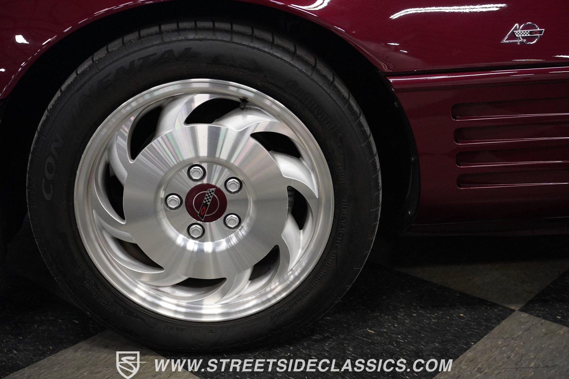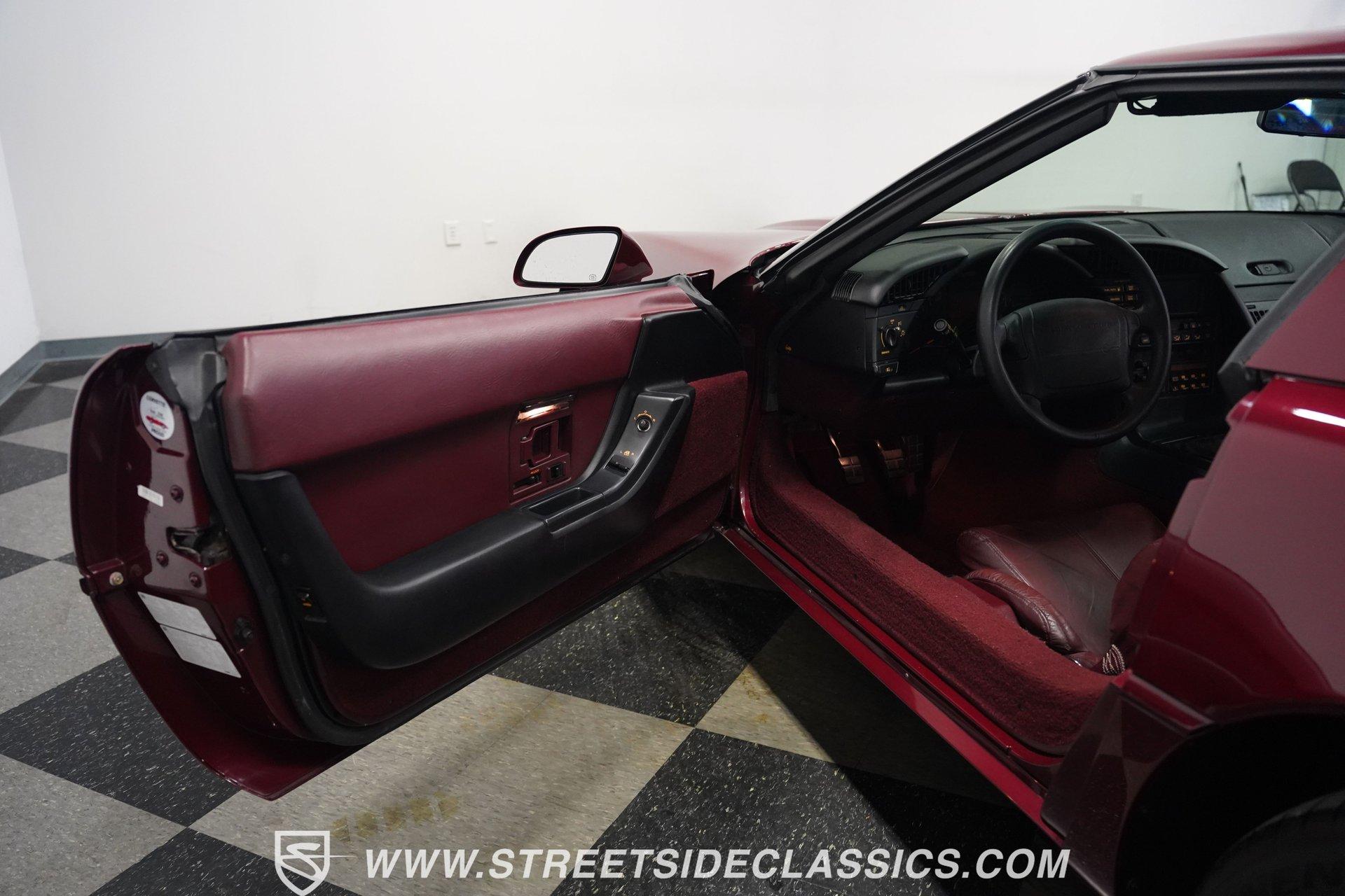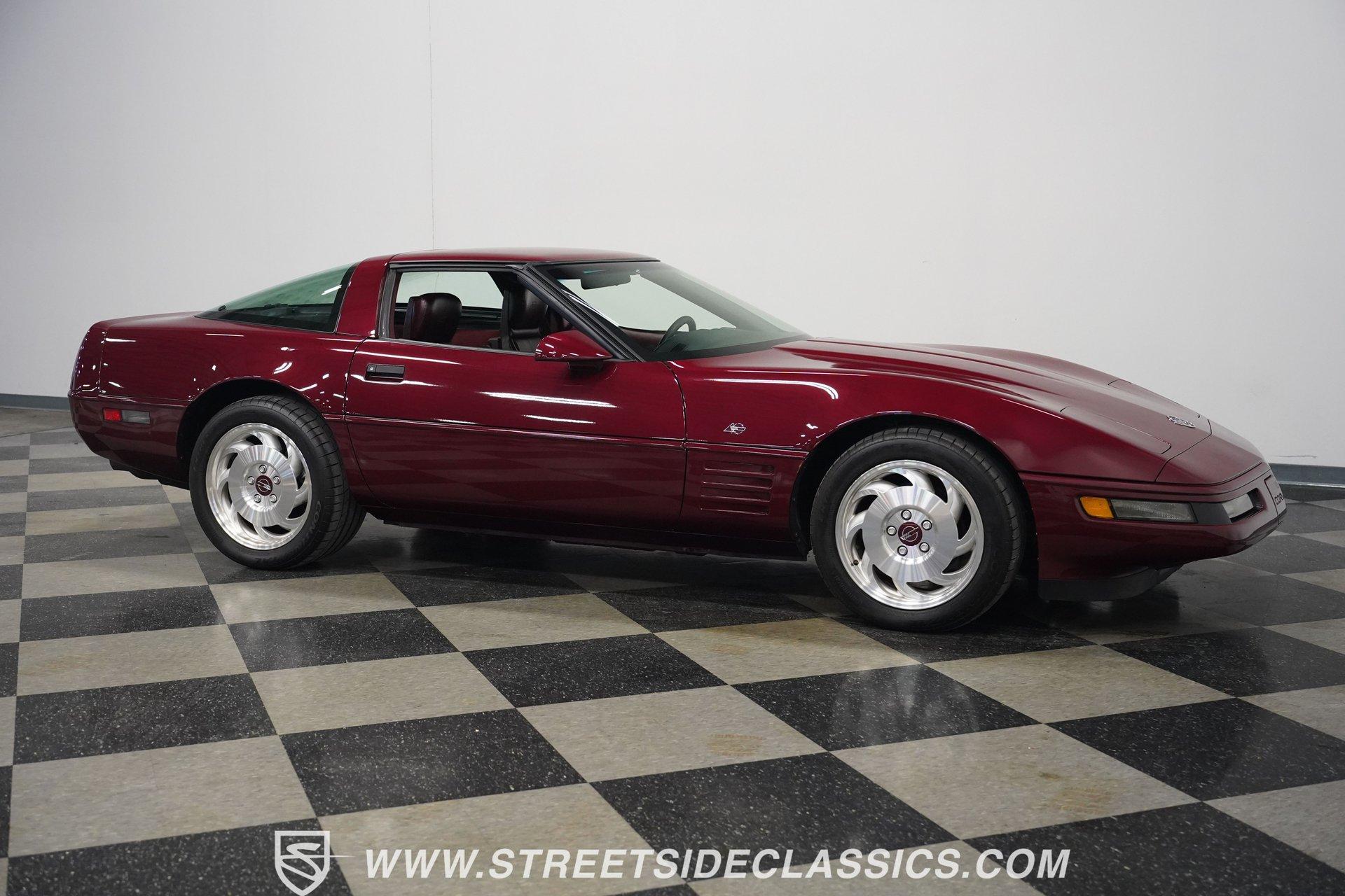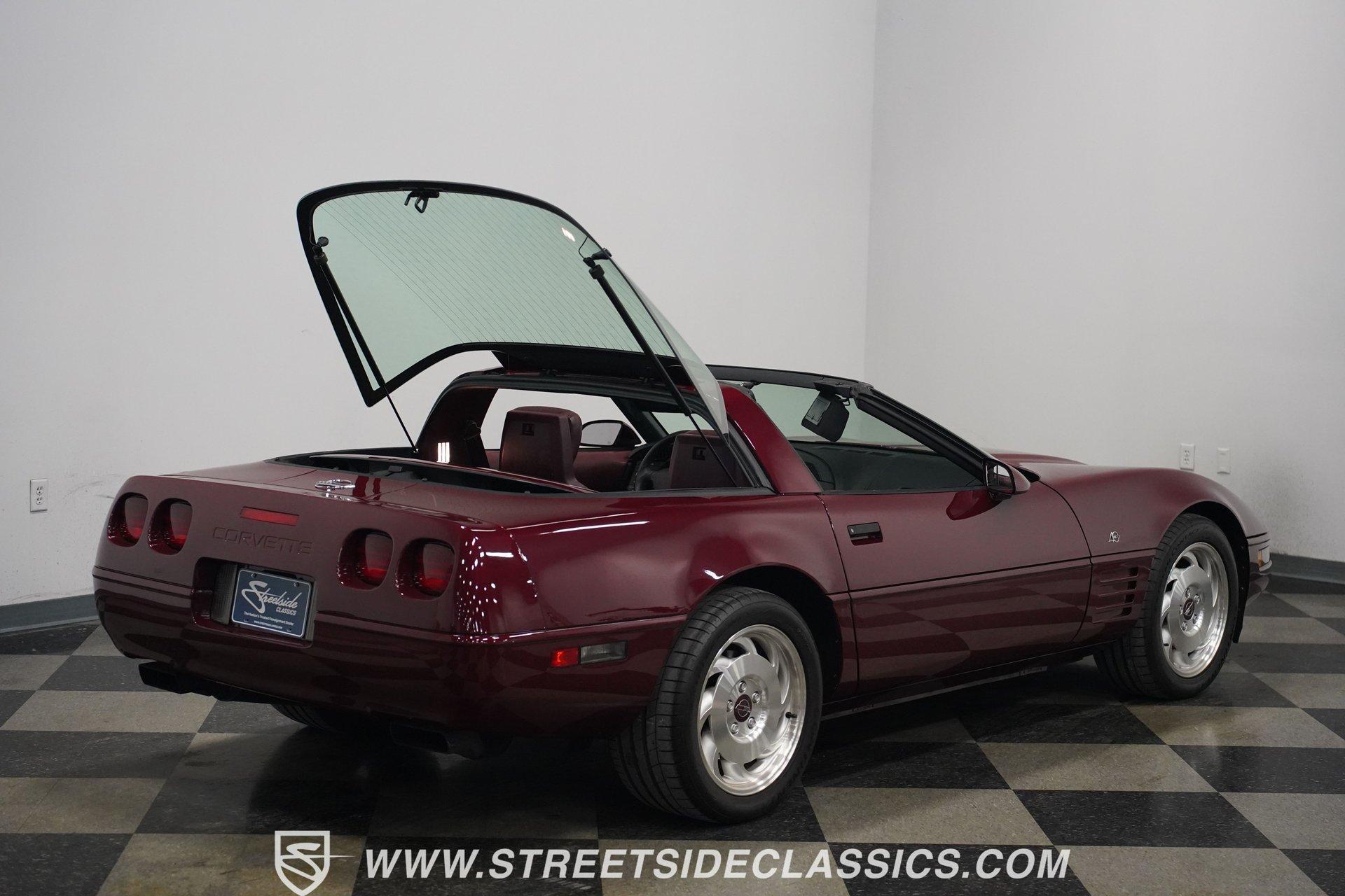 Rare and exclusive, the 1993 Chevrolet Corvette 40th Anniversary appears before you in its factory Ruby Red Metallic finish - one of only about 4,500 anniversary coupes produced. The astonishing odometer reading of just 21,607 miles translates to an average of less than 700 miles driven per year over its 32-year lifespan. The unmistakable Corvette profile is complemented by factory 17" sawblade wheels wrapped in Continental rubber (255/45ZR17 front, 285/40ZR17 rear) that create an aggressive stance. With a removable targa top for open-air cruising and virtually time-capsule-level preservation, this anniversary edition maintains its factory appearance exactly as it rolled off the assembly line. Ruby Red leather adorns the interior, creating a cohesive visual connection with the exterior. The cabin remains exceptionally preserved, showing minimal wear on touch points - a testament to the extraordinarily low 21,607 lifetime miles accumulated. Both driver and passenger enjoy power-adjustable bucket seats positioned around the center console with its six-speed manual shifter. Comfort comes standard with power windows, power locks, air conditioning, and an AM/FM cassette player. The original equipment remains intact throughout, preserving the authentic Corvette experience that made these C4 models legendary among performance enthusiasts. Powering this American icon is the potent 5.7 Liter LT1 V8 engine mated to the coveted six-speed manual transmission. With just 21,607 miles - averaging less than 700 miles annually since new - this drivetrain remains in virtually factory-fresh condition. The combination produces exhilarating acceleration while the factory mono leaf spring suspension both front and rear delivers precise handling. Four-wheel power disc brakes provide excellent stopping capability, and power steering ensures effortless control at any speed. The dual exhaust system produces the signature Corvette sound that enthusiasts crave, all while maintaining mechanical components that have seen remarkably little use over three decades. HIGHLIGHTS: 5.7 Liter LT1 V8 Engine 6-Speed Manual Transmission Electronic Fuel Injection Power Disc Brakes Mono Leaf Spring Suspension Dual Exhaust Power Steering Ruby Red Metallic Paint 17" Factory Sawblade Wheels 255/45ZR17 Front, 285/40ZR17 Rear Continental Tires Removable Targa Top Ruby Red Interior with Power Leather Bucket Seats Power Windows Power Locks Air Conditioning AM/FM Cassette Player Console Shifter Tool to Remove Targa Top Wheel Lock Socket 21,607 Miles One of approximately 4,500 40th Anniversary coupes produced, this remarkably low-mileage 1993 Chevrolet Corvette represents American performance preserved in time. With just 21,607 original miles, its Ruby Red Metallic paint, matching leather interior, potent LT1 V8 engine, and six-speed manual combine to deliver an essentially new 32-year-old sports car experience. Call today!