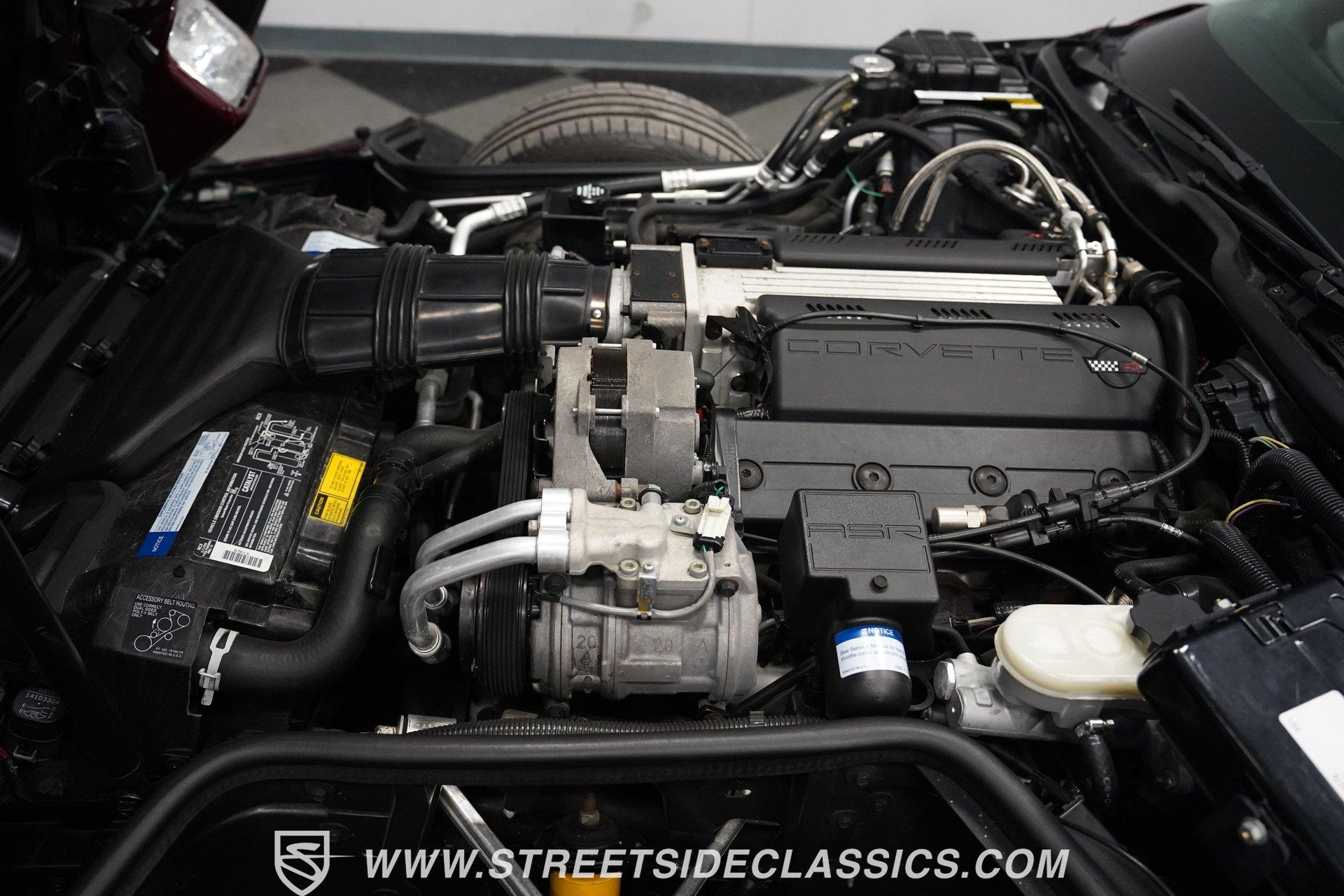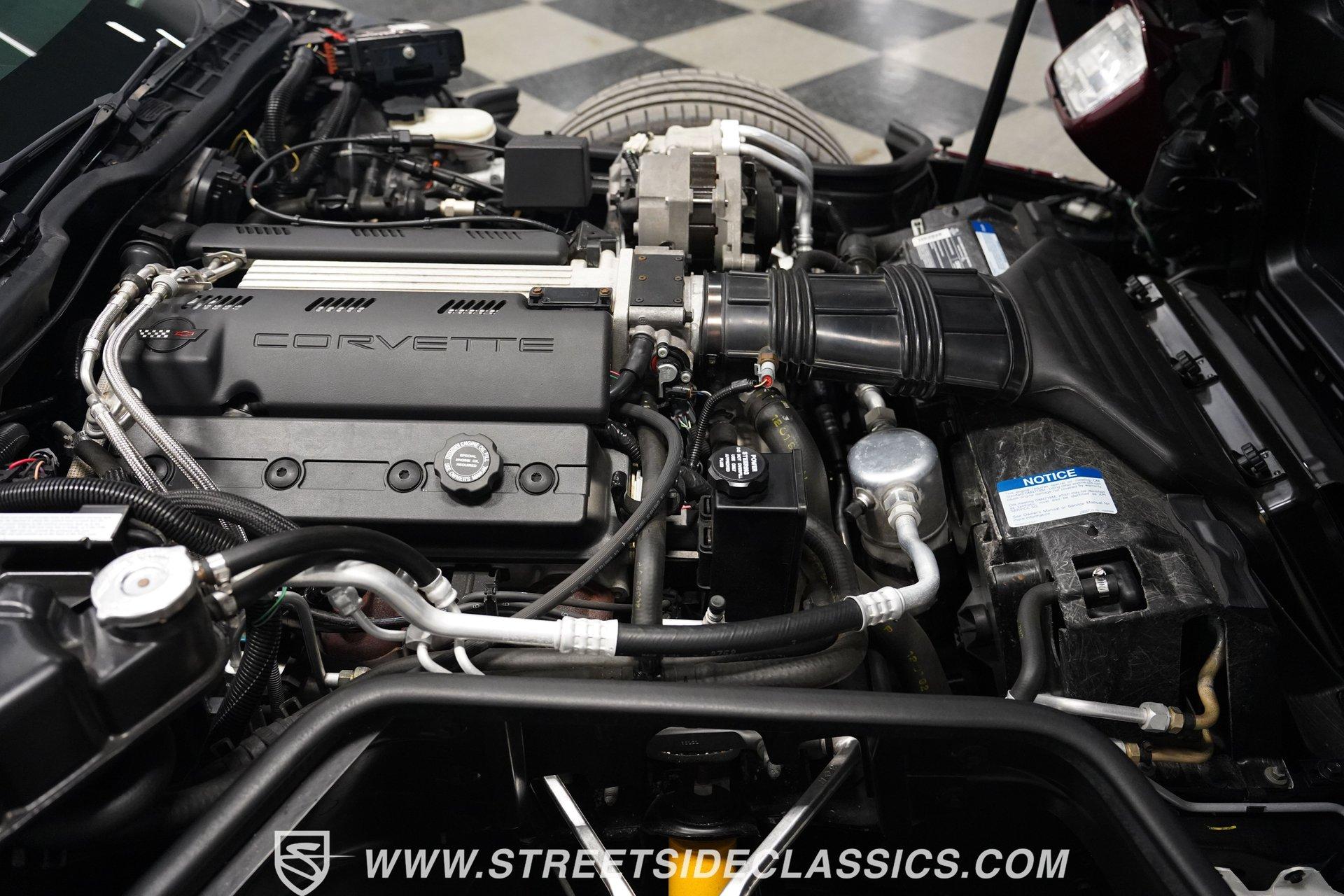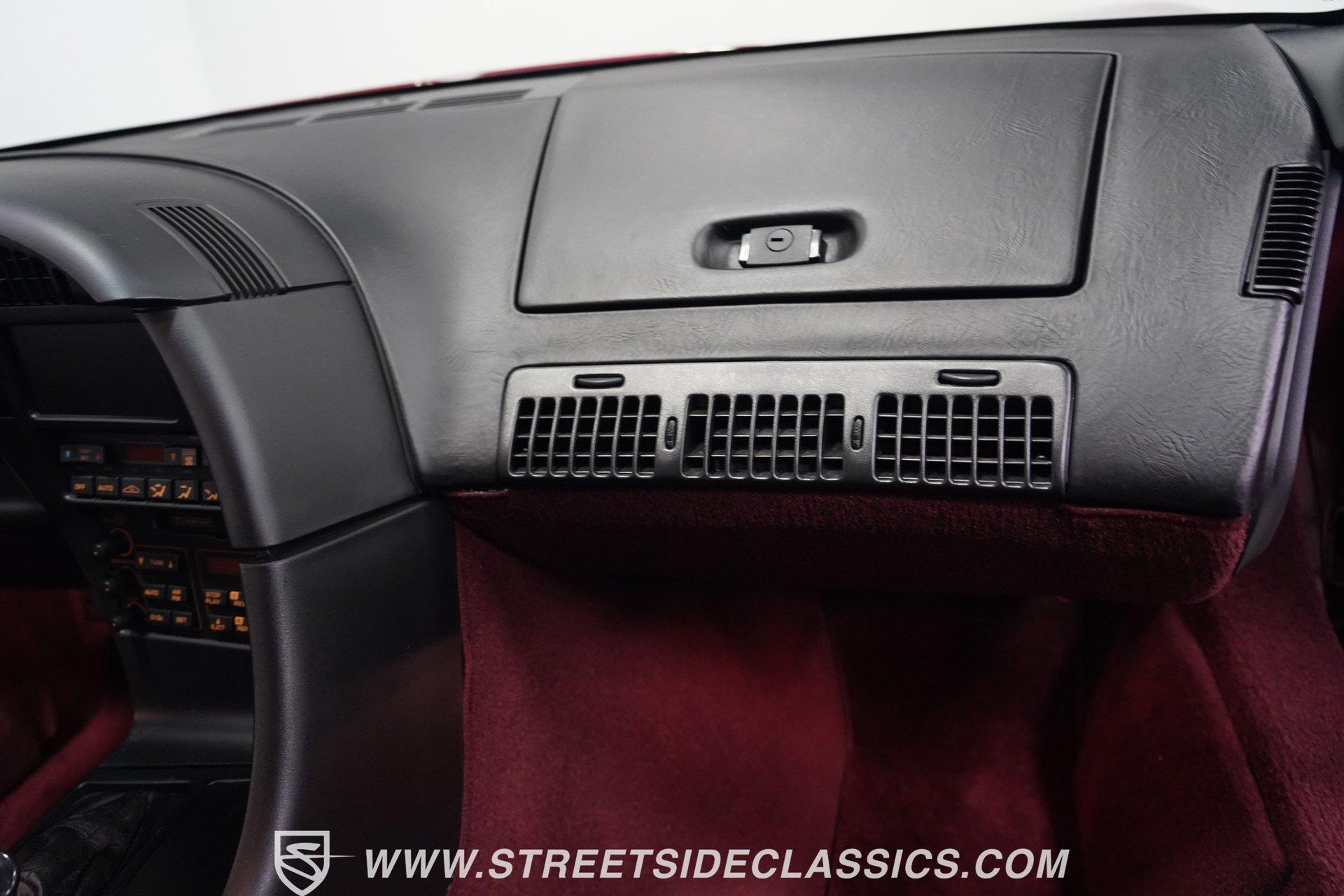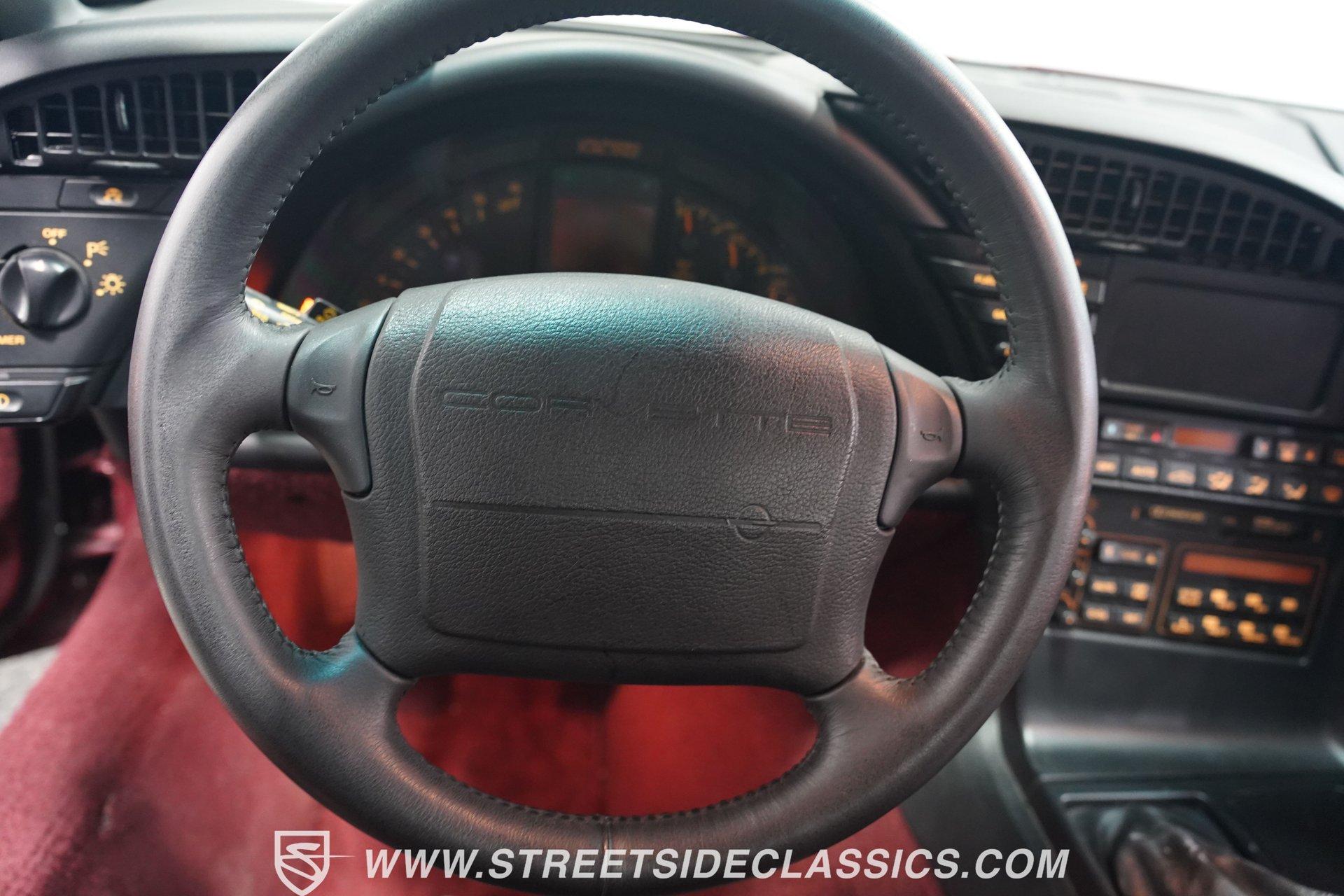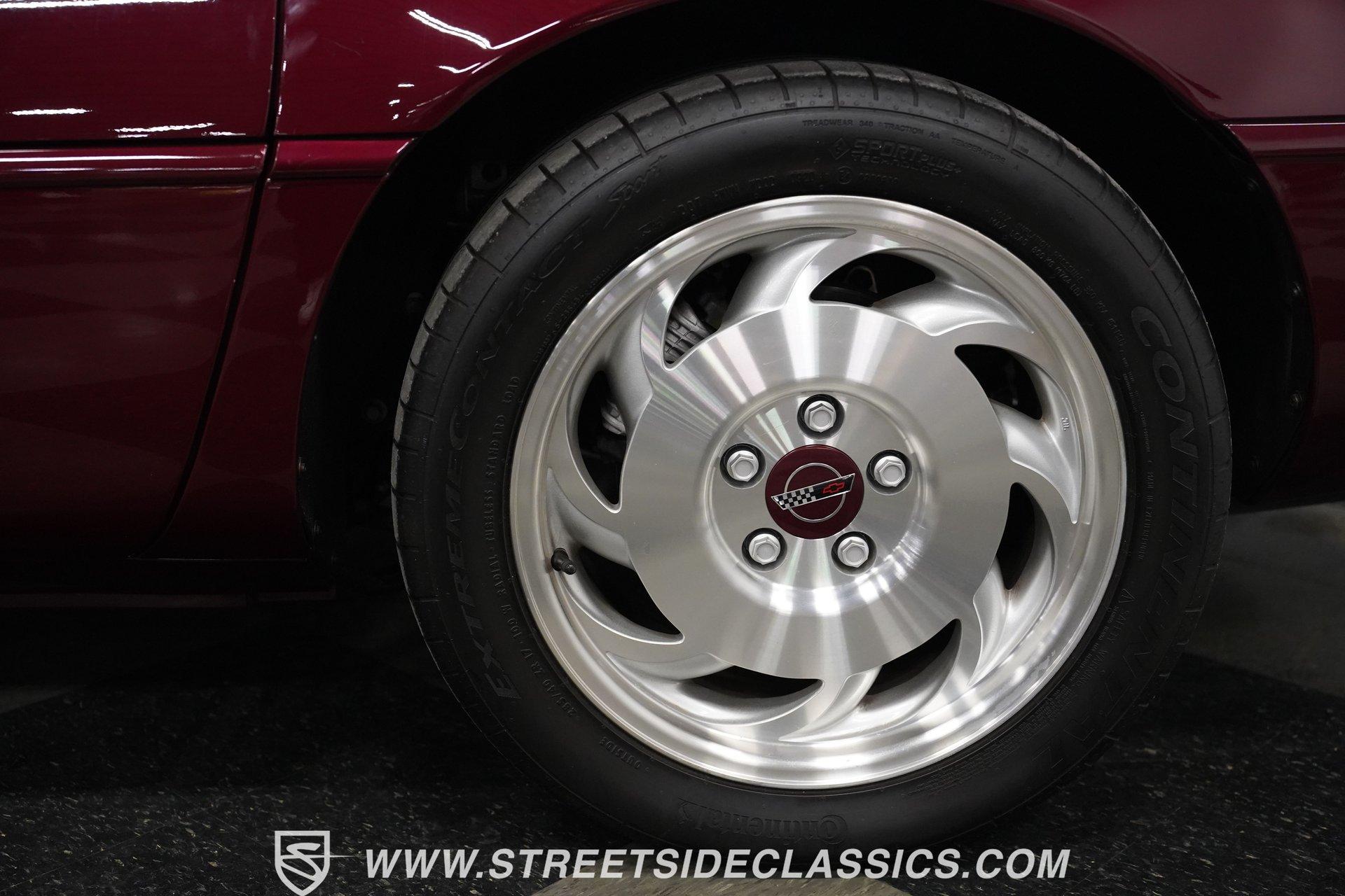 Rare and exclusive, the 1993 Chevrolet Corvette 40th Anniversary appears before you in its factory Ruby Red Metallic finish - one of only about 4,500 anniversary coupes produced. The astonishing odometer reading of just 21,607 miles translates to an average of less than 700 miles driven per year over its 32-year lifespan. The unmistakable Corvette profile is complemented by factory 17" sawblade wheels wrapped in Continental rubber (255/45ZR17 front, 285/40ZR17 rear) that create an aggressive stance. With a removable targa top for open-air cruising and virtually time-capsule-level preservation, this anniversary edition maintains its factory appearance exactly as it rolled off the assembly line. Ruby Red leather adorns the interior, creating a cohesive visual connection with the exterior. The cabin remains exceptionally preserved, showing minimal wear on touch points - a testament to the extraordinarily low 21,607 lifetime miles accumulated. Both driver and passenger enjoy power-adjustable bucket seats positioned around the center console with its six-speed manual shifter. Comfort comes standard with power windows, power locks, air conditioning, and an AM/FM cassette player. The original equipment remains intact throughout, preserving the authentic Corvette experience that made these C4 models legendary among performance enthusiasts. Powering this American icon is the potent 5.7 Liter LT1 V8 engine mated to the coveted six-speed manual transmission. With just 21,607 miles - averaging less than 700 miles annually since new - this drivetrain remains in virtually factory-fresh condition. The combination produces exhilarating acceleration while the factory mono leaf spring suspension both front and rear delivers precise handling. Four-wheel power disc brakes provide excellent stopping capability, and power steering ensures effortless control at any speed. The dual exhaust system produces the signature Corvette sound that enthusiasts crave, all while maintaining mechanical components that have seen remarkably little use over three decades. HIGHLIGHTS: 5.7 Liter LT1 V8 Engine 6-Speed Manual Transmission Electronic Fuel Injection Power Disc Brakes Mono Leaf Spring Suspension Dual Exhaust Power Steering Ruby Red Metallic Paint 17" Factory Sawblade Wheels 255/45ZR17 Front, 285/40ZR17 Rear Continental Tires Removable Targa Top Ruby Red Interior with Power Leather Bucket Seats Power Windows Power Locks Air Conditioning AM/FM Cassette Player Console Shifter Tool to Remove Targa Top Wheel Lock Socket 21,607 Miles One of approximately 4,500 40th Anniversary coupes produced, this remarkably low-mileage 1993 Chevrolet Corvette represents American performance preserved in time. With just 21,607 original miles, its Ruby Red Metallic paint, matching leather interior, potent LT1 V8 engine, and six-speed manual combine to deliver an essentially new 32-year-old sports car experience. Call today!