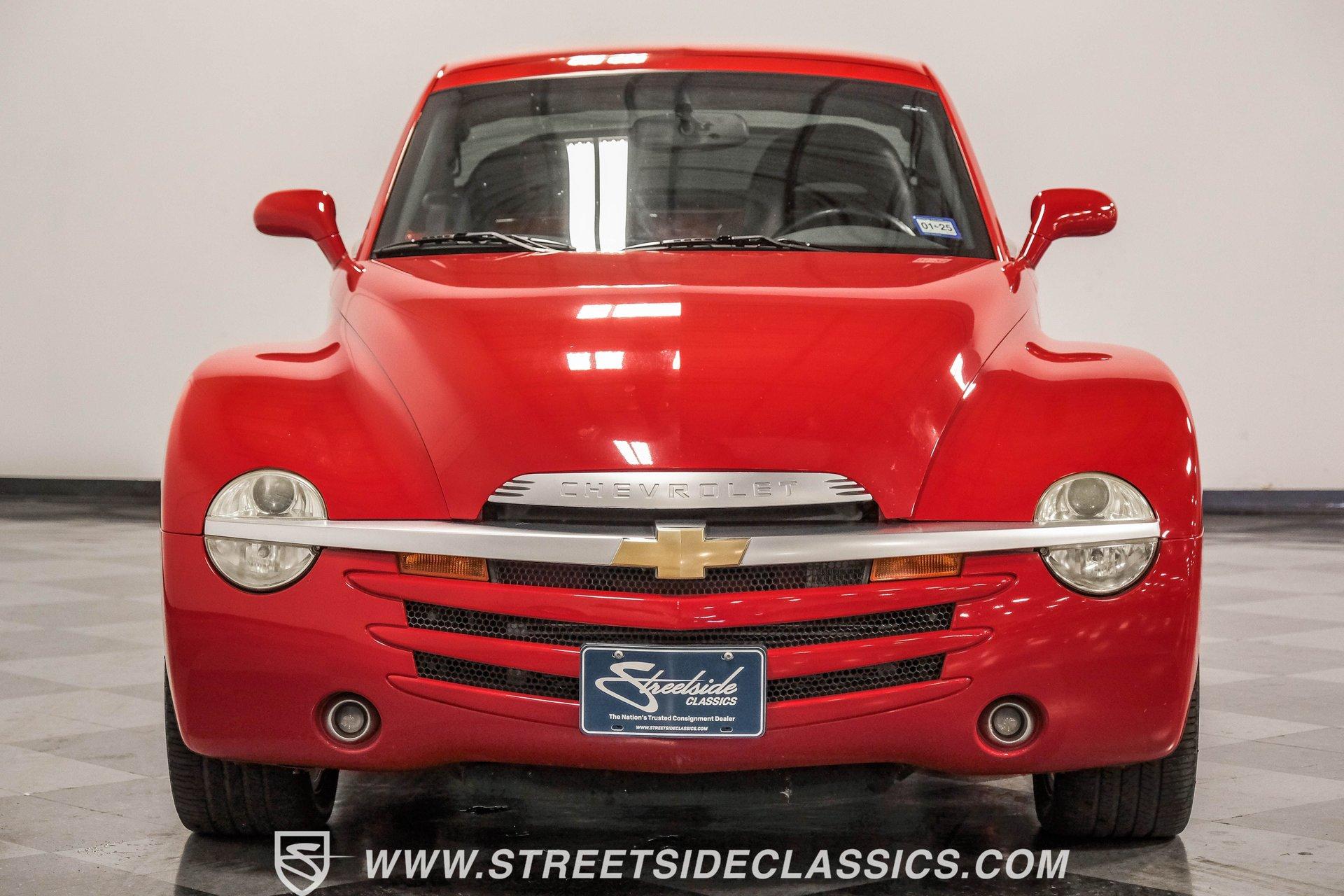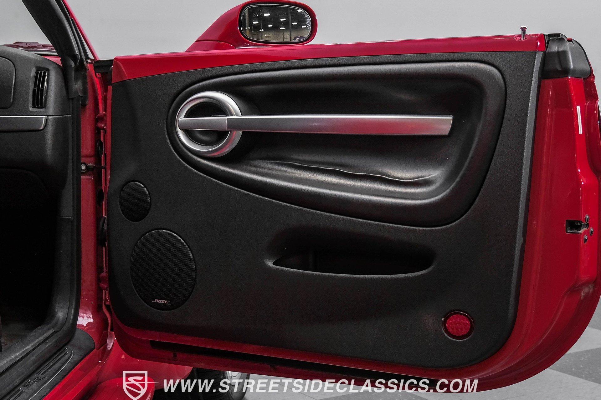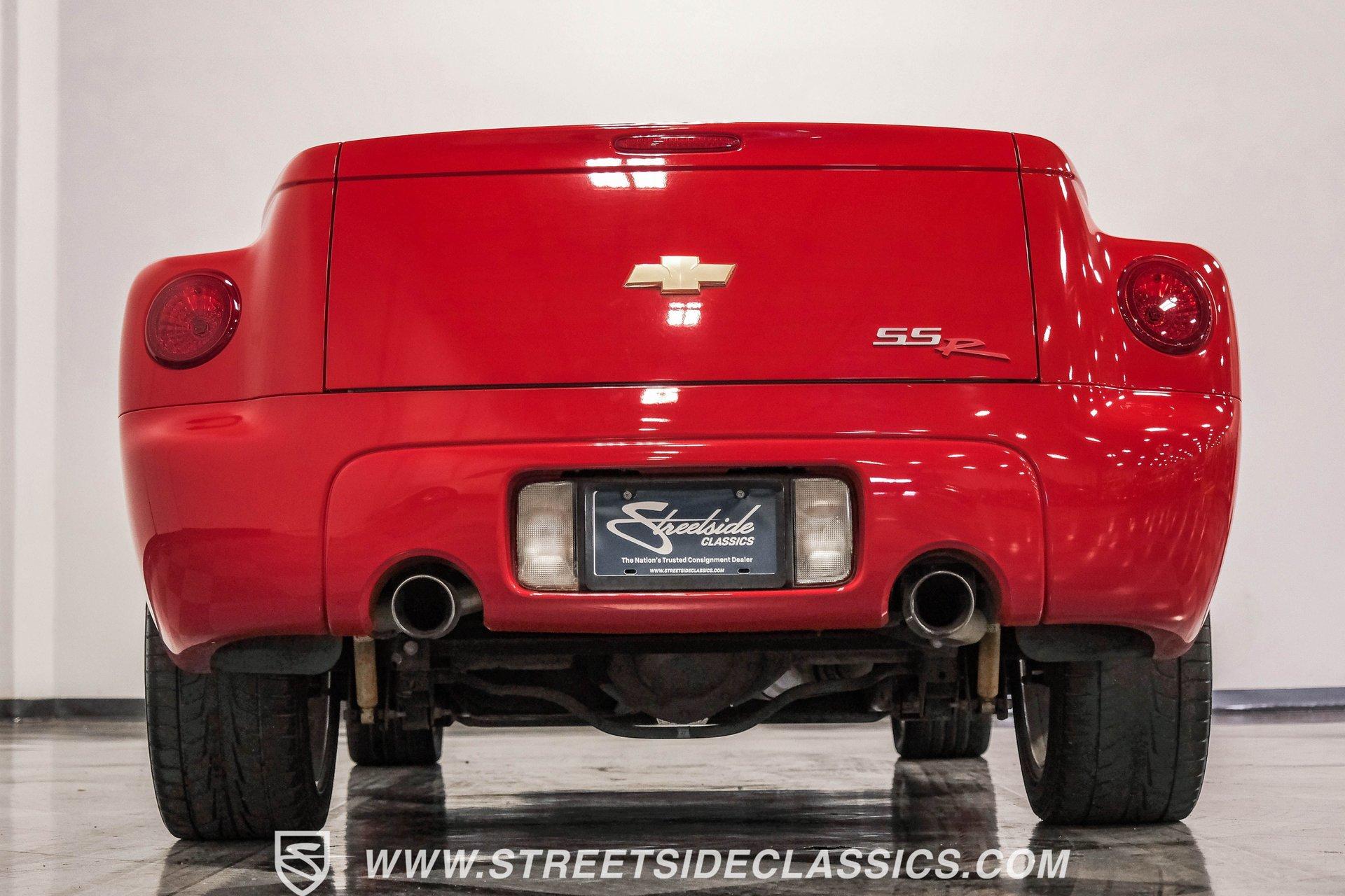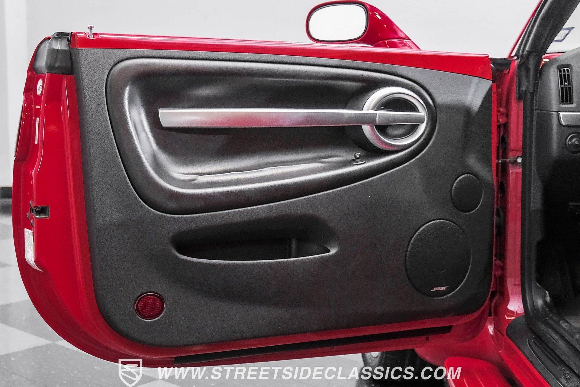 Muscular street machine with convertible tricks, this 2003 Chevrolet SSR Supercharged wears Torch Red paint that amplifies its bold presence. Factory staggered wheel setup features 19-inch chrome wheels up front and 20-inch chrome wheels in the rear for a perfect rake. Power-operated retractable hardtop folds away completely for open-air enjoyment at the push of a button. Clean running boards follow the lines while maintaining access. Dark tinted glass adds mystery as 255/45R19 front and 295/40R20 rear tires complete this truck's aggressive stance. Black leather lines this vehicle's performance-oriented interior, covering the dual power heated bucket seats with memory settings and extending to the door panels. Leather-wrapped steering wheel includes audio controls for the Bose premium sound system with CD changer capabilities. Floor shifter rises from the center console alongside power windows, locks, and heated mirror controls. Air conditioning, cruise control, tilt steering column, and rear window defogger add daily usability to this performance machine while factory gauges monitor all systems. Forced induction comes via a Magnacharger supercharger mounted to this vehicle's 5.3L V8, enhanced by a custom Comp Cams camshaft installed at 65,600 miles. 4L60E 4-speed automatic transmission with stage 2 stall converter delivers power on demand. Kooks long-tube headers connect to a catted Y-pipe and aftermarket dual exhaust for a powerful sound. Four-wheel disc brakes, limited-slip differential with 3.73 gears, and K&N cold air intake system round out this vehicle's $15,000 worth of performance modifications. Traction control keeps everything manageable in varied conditions. HIGHLIGHTS: 5.3L V8 Engine with Magnacharger Supercharger Custom Comp Cams Camshaft 4-Speed Automatic Transmission (4L60E) Stage 2 Stall Converter 3.73 Rear Axle Ratio w/ Limited Slip Power 4-Wheel Disc Brakes Power Steering Aftermarket Dual Exhaust w/ Kooks Long Tube Headers & Catted Y-Pipe K&N Cold Air Intake Torch Red Paint Retractable Hardtop 19" Front, 20" Rear Chrome Wheels 255/45R19 Front, 295/40R20 Rear Tires Black Leather Bucket Seats with Memory Power Heated Seats Air Conditioning Power Windows Power Heated Mirrors Leather-Wrapped Steering Wheel with Audio Controls Cruise Control Tilt Steering Column Bose Premium Sound System with CD Changer Rear Window Defogger Owner's Manuals Over $15,000 in Performance Upgrades Ready to rumble with $15,000 in performance upgrades, this 2003 Chevrolet SSR Supercharged brings muscle car power in a convertible pickup package. The Magnacharger and custom cam give this Torch Red machine serious speed to match its distinctive style. Call today!