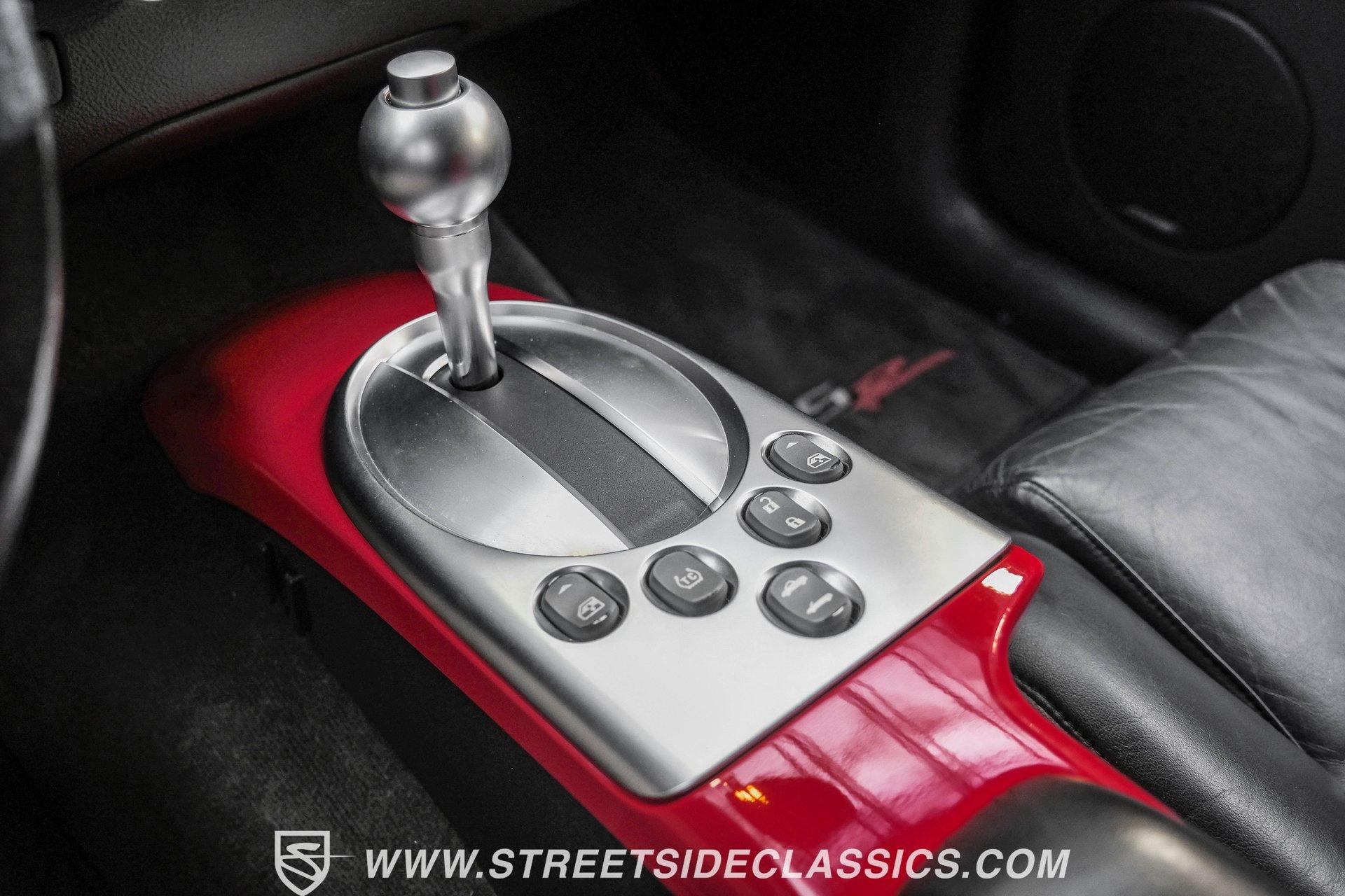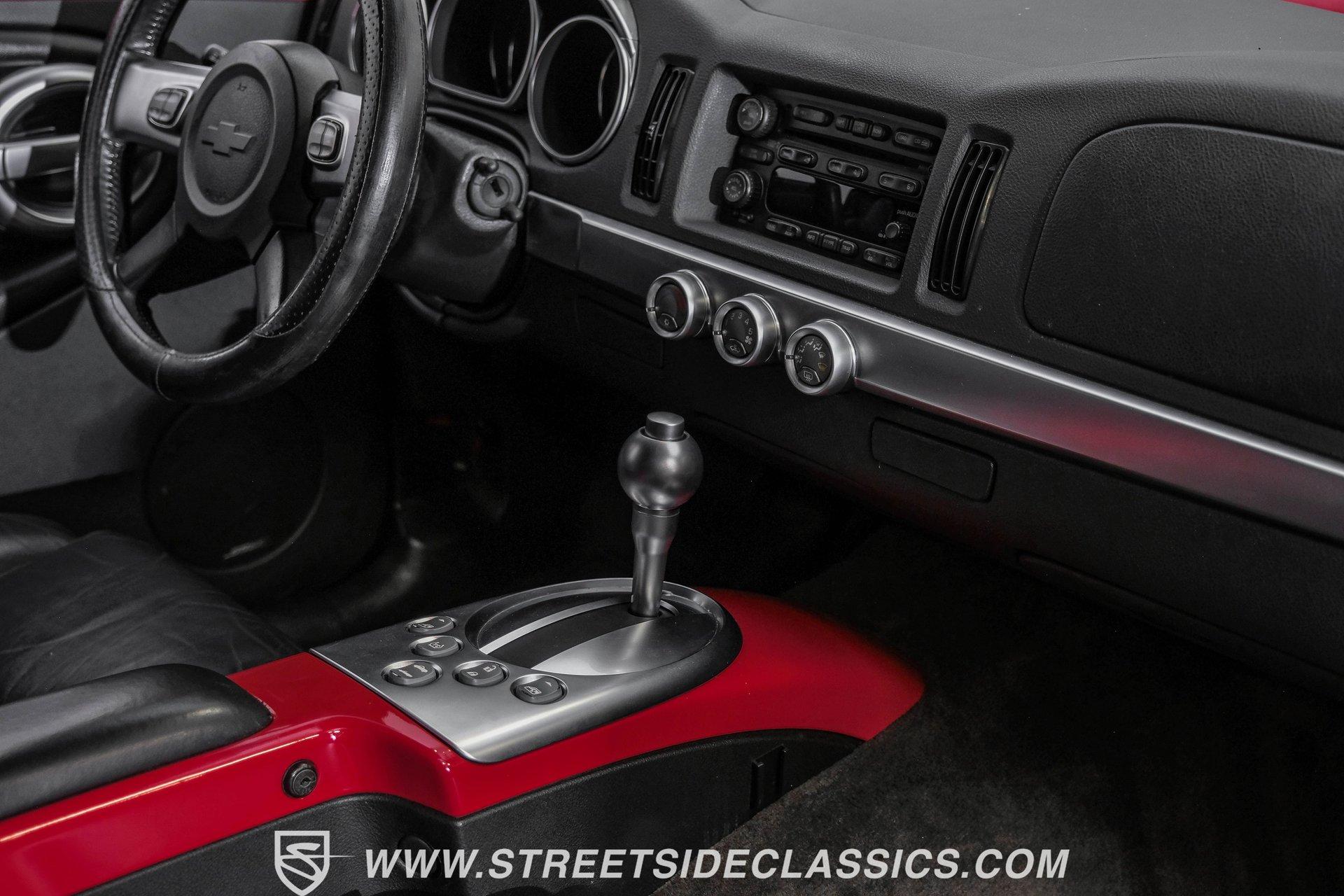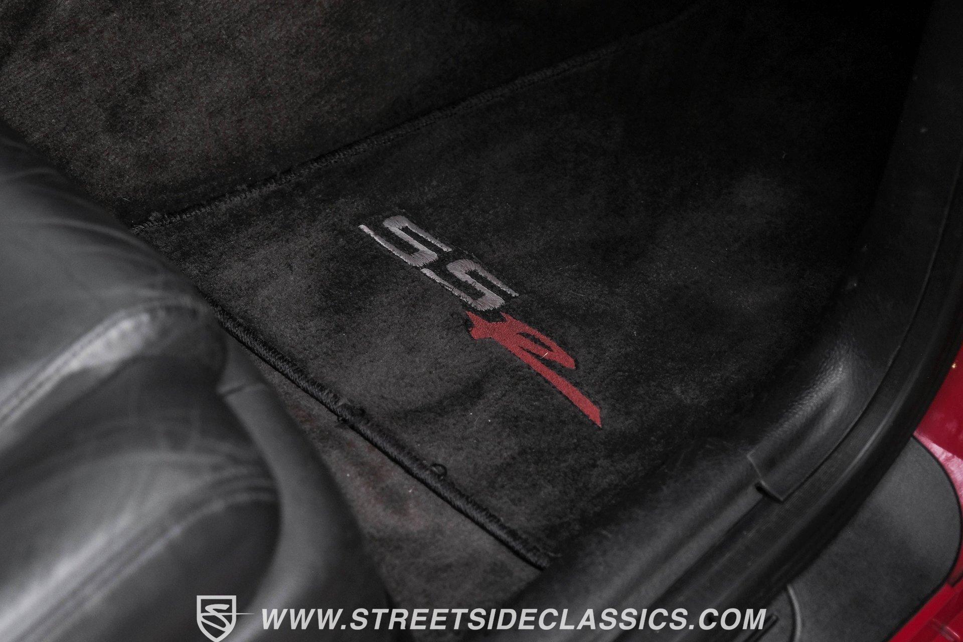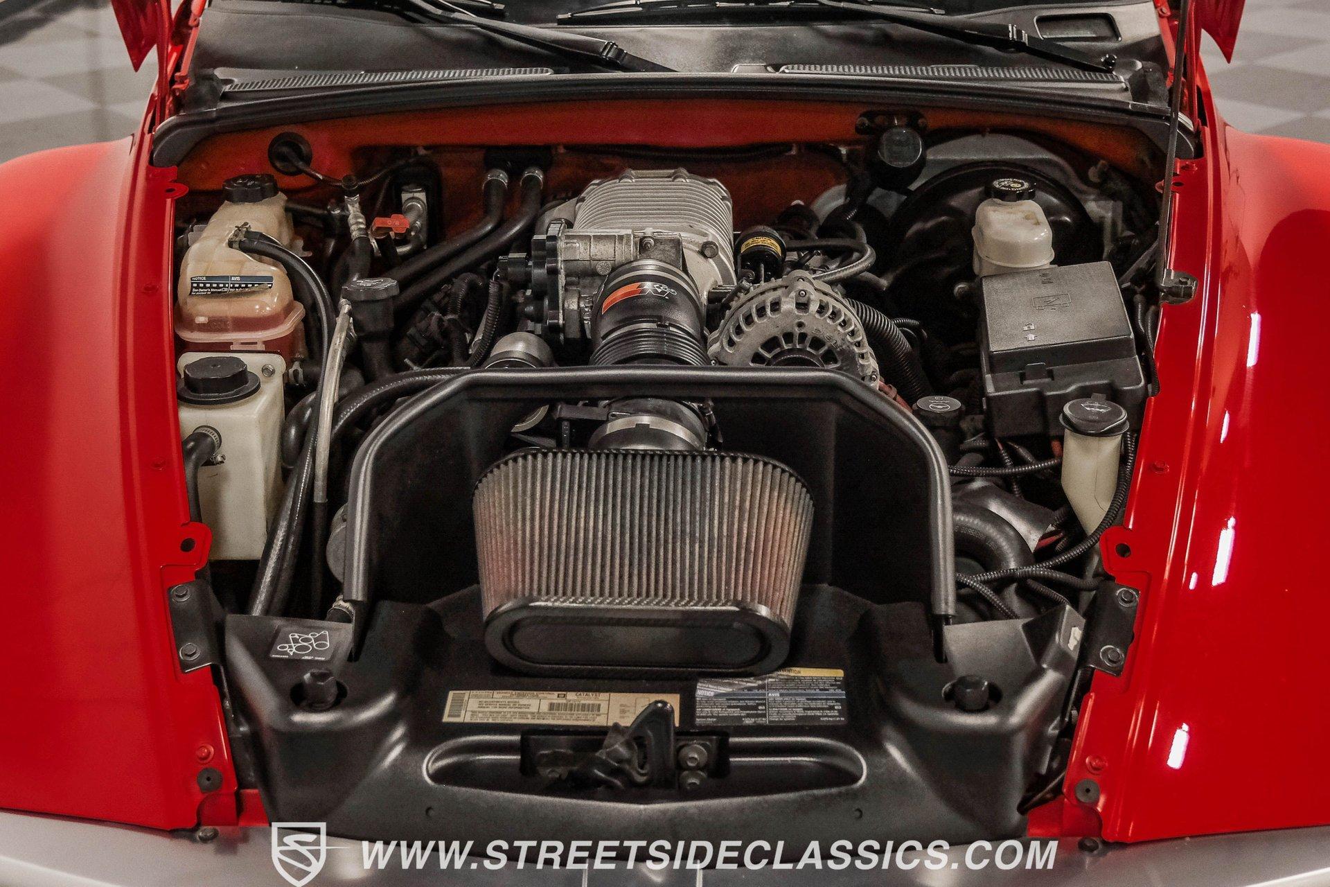 Muscular street machine with convertible tricks, this 2003 Chevrolet SSR Supercharged wears Torch Red paint that amplifies its bold presence. Factory staggered wheel setup features 19-inch chrome wheels up front and 20-inch chrome wheels in the rear for a perfect rake. Power-operated retractable hardtop folds away completely for open-air enjoyment at the push of a button. Clean running boards follow the lines while maintaining access. Dark tinted glass adds mystery as 255/45R19 front and 295/40R20 rear tires complete this truck's aggressive stance. Black leather lines this vehicle's performance-oriented interior, covering the dual power heated bucket seats with memory settings and extending to the door panels. Leather-wrapped steering wheel includes audio controls for the Bose premium sound system with CD changer capabilities. Floor shifter rises from the center console alongside power windows, locks, and heated mirror controls. Air conditioning, cruise control, tilt steering column, and rear window defogger add daily usability to this performance machine while factory gauges monitor all systems. Forced induction comes via a Magnacharger supercharger mounted to this vehicle's 5.3L V8, enhanced by a custom Comp Cams camshaft installed at 65,600 miles. 4L60E 4-speed automatic transmission with stage 2 stall converter delivers power on demand. Kooks long-tube headers connect to a catted Y-pipe and aftermarket dual exhaust for a powerful sound. Four-wheel disc brakes, limited-slip differential with 3.73 gears, and K&N cold air intake system round out this vehicle's $15,000 worth of performance modifications. Traction control keeps everything manageable in varied conditions. HIGHLIGHTS: 5.3L V8 Engine with Magnacharger Supercharger Custom Comp Cams Camshaft 4-Speed Automatic Transmission (4L60E) Stage 2 Stall Converter 3.73 Rear Axle Ratio w/ Limited Slip Power 4-Wheel Disc Brakes Power Steering Aftermarket Dual Exhaust w/ Kooks Long Tube Headers & Catted Y-Pipe K&N Cold Air Intake Torch Red Paint Retractable Hardtop 19" Front, 20" Rear Chrome Wheels 255/45R19 Front, 295/40R20 Rear Tires Black Leather Bucket Seats with Memory Power Heated Seats Air Conditioning Power Windows Power Heated Mirrors Leather-Wrapped Steering Wheel with Audio Controls Cruise Control Tilt Steering Column Bose Premium Sound System with CD Changer Rear Window Defogger Owner's Manuals Over $15,000 in Performance Upgrades Ready to rumble with $15,000 in performance upgrades, this 2003 Chevrolet SSR Supercharged brings muscle car power in a convertible pickup package. The Magnacharger and custom cam give this Torch Red machine serious speed to match its distinctive style. Call today!