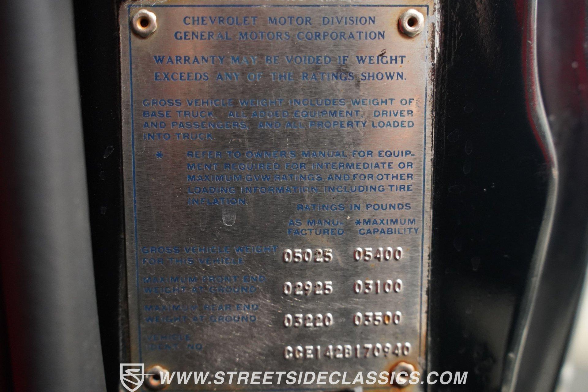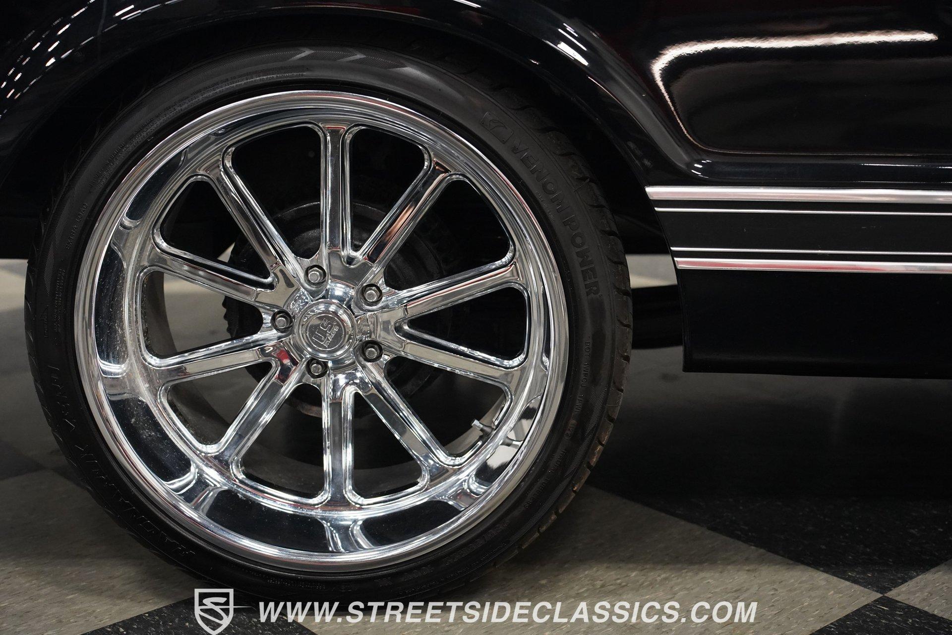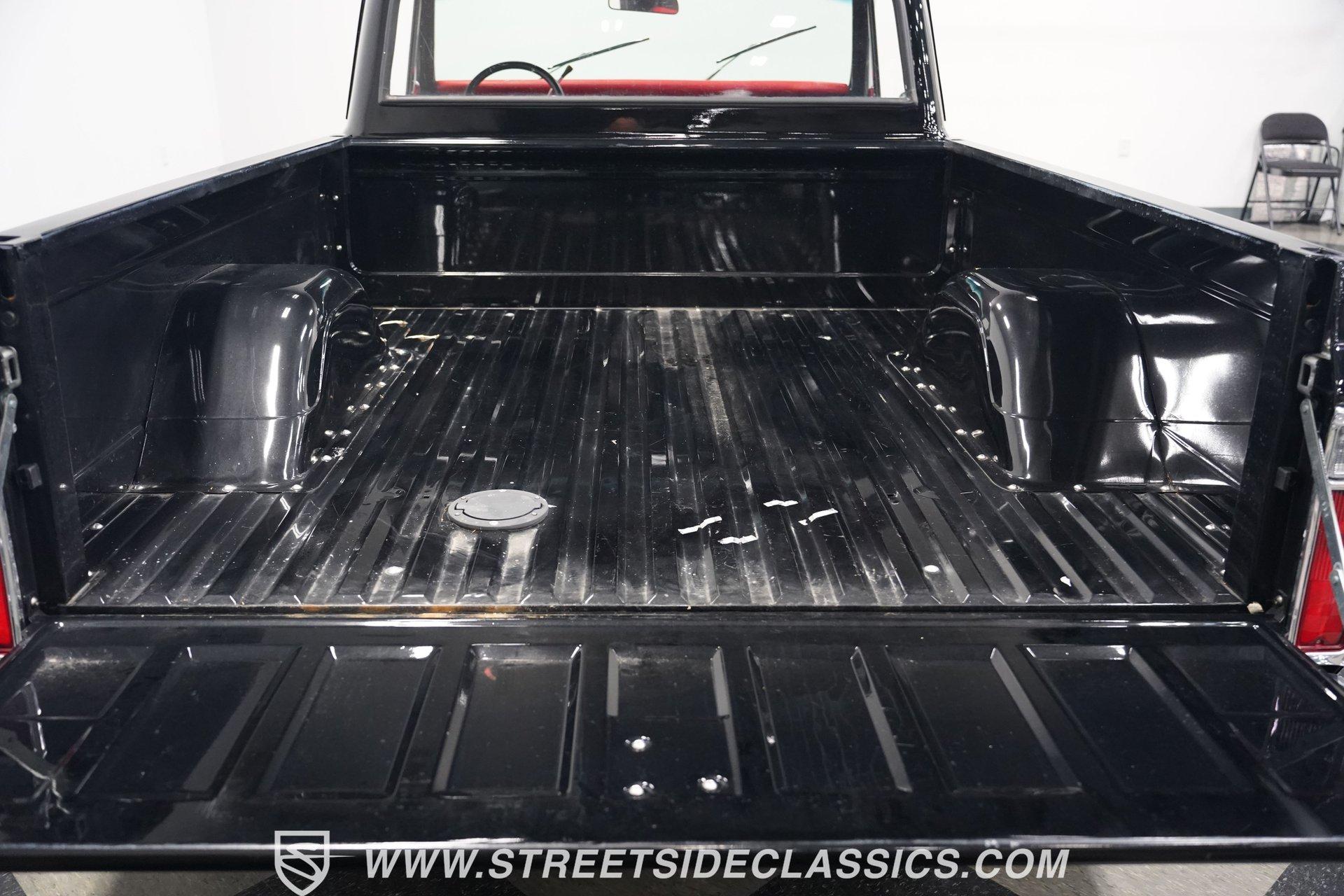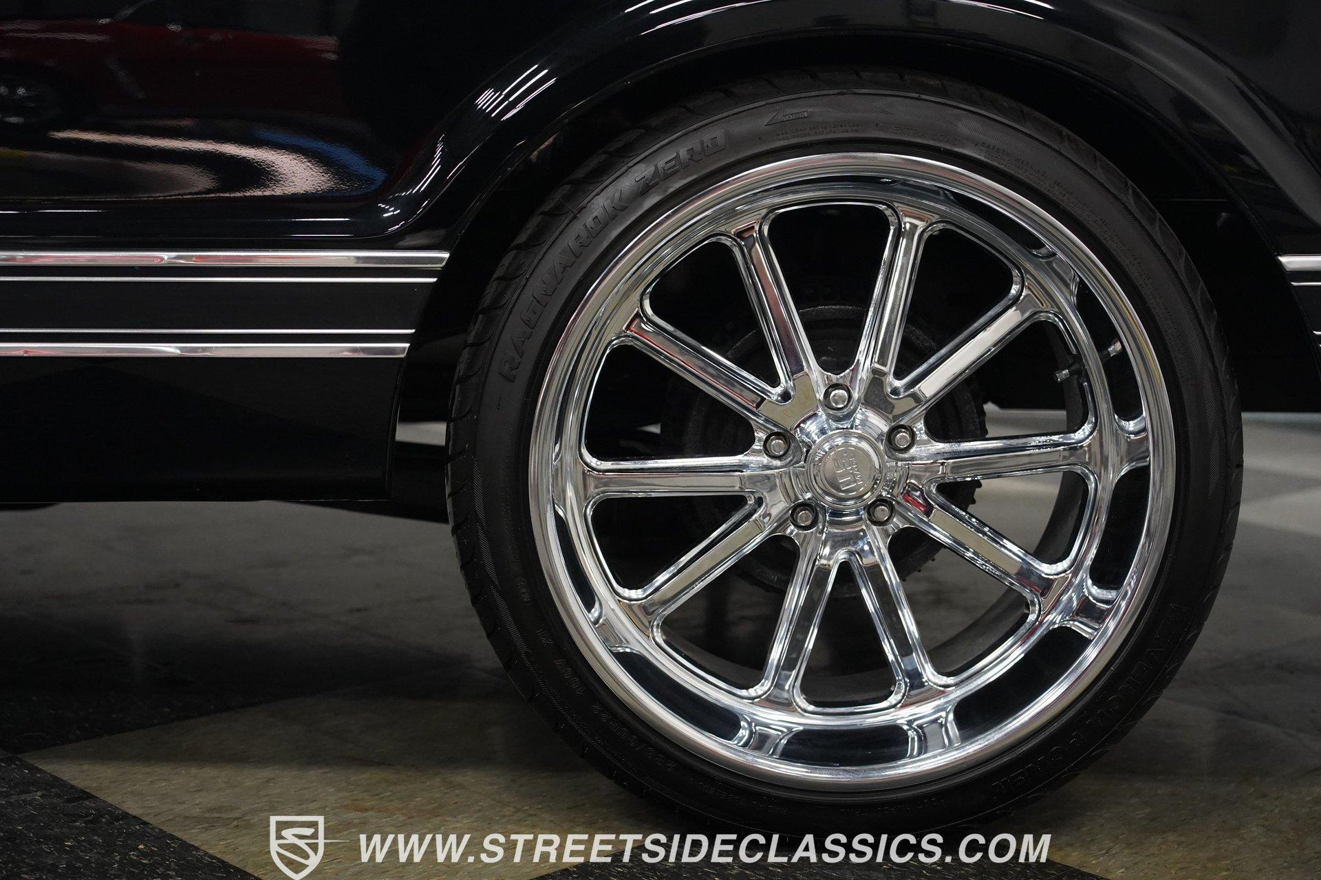 Murdered-out and ready to rumble, this 1972 Chevrolet C10 wears its black paint job like a boxer wears his gloves - with purpose and attitude. Freshly resprayed for maximum impact, the sleek bodywork features a custom-smoothed tailgate and strategically relocated fuel tank underneath the bed for cleaner lines. Chrome bumpers and crisp belt line trim cut through the darkness, providing perfect visual counterpoints against the midnight canvas. Slammed to the pavement through custom suspension work, this muscle truck hunkers down over massive 22" US Mag wheels, with 255/30ZR22 front and 285/35R22 rear rubber that plant it firmly on the street with undeniable presence. Red-hot and ready for action, the cabin of this C10 grabs your attention with vibrant red vinyl bench seating that pops against the exterior's dark demeanor. Custom door panels match the seating surfaces for a cohesive, deliberate design statement. The dashboard houses clear aftermarket gauges in a purpose-built binnacle, giving you instant access to vital engine information. Entertainment comes courtesy of a Pioneer AM/FM/AUX stereo that provides the soundtrack for your cruising adventures. A sporty aftermarket steering wheel feels solid in your hands, with the column shifter positioned perfectly for quick gear selection when it's time to move. Muscle comes standard with the 305 V8 (5.0L) powerplant that gives this truck its bark and bite, mated to a bulletproof TH350 three-speed automatic transmission. Fuel flows through a Holly-style Brawler 4-barrel carburetor, optimized for street performance and throttle response. The engine bay shines with its chrome dress-up kit, making this truck as impressive with the hood up as down. Long tube headers feed into a rumbling dual exhaust system that announces your arrival with authority. Power steering and power disc brakes make this beast easy to handle despite its aggressive stance, while the custom-lowered suspension with drop spindles puts it right in the weeds where a street truck belongs. HIGHLIGHTS: 305 V8 (5.0L) Engine TH350 3-Speed Automatic Transmission Holly-style Brawler 4-Barrel Carburetor Long Tube Headers Dual Exhaust System Power Disc Brakes Lowered Suspension with Drop Spindles Chrome Engine Dress-up Kit Black Paint Smoothed Tailgate Relocated Fuel Tank (Under Bed) Chrome Bumpers Belt Line Trim 22" US Mag Wheels 255/30ZR22 Front, 285/35R22 Rear Tires Red Interior with Bench Seat Custom Door Panels Aftermarket Gauges and Binnacle Pioneer AM/FM/AUX Stereo Aftermarket Steering Wheel Column Shifter Power Steering Clean Carpet Blacked-out, lowered, and loaded with attitude, this 1972 Chevrolet C10 delivers everything a street truck enthusiast could want - killer stance, powerful V8, custom touches inside and out, and undeniable street presence that makes an impression without saying a word. Call today!