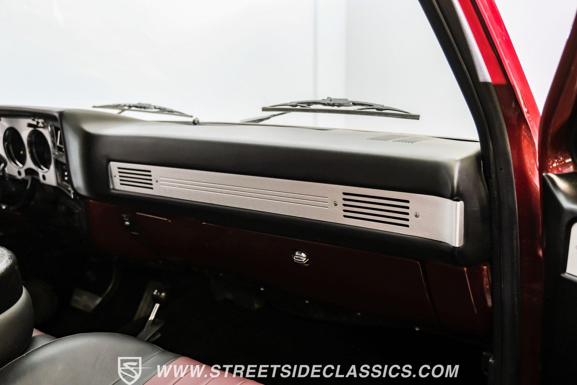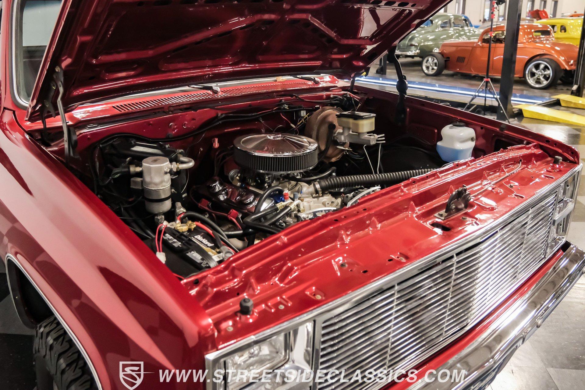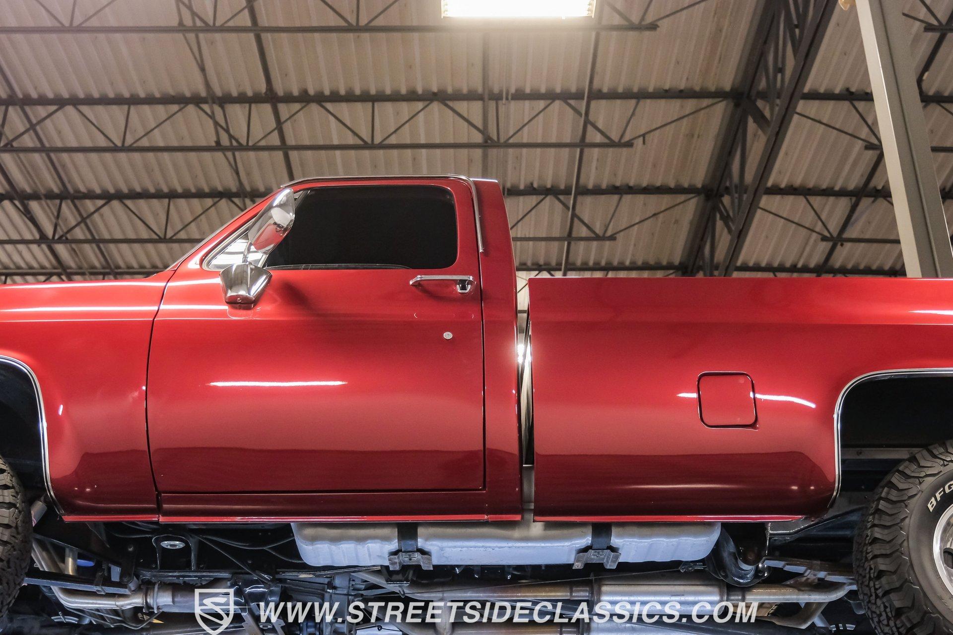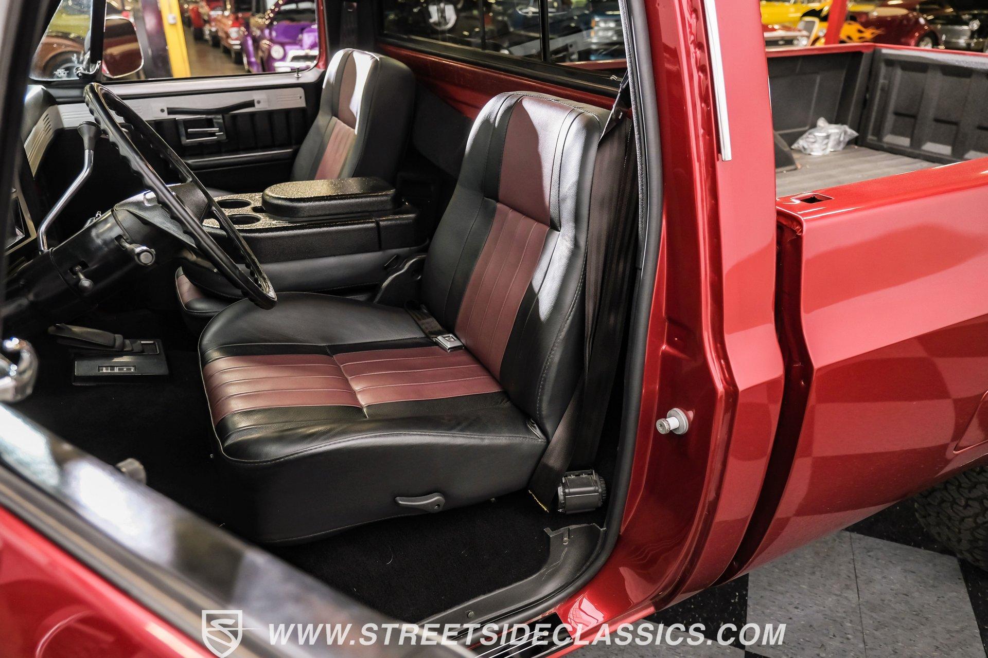 Completely transformed from its humble origins, this 1982 GMC K1500 4X4 ZZ4 shows off its Carmine Red Metallic finish with an unapologetic presence that demands your attention. Originally a diesel-powered workhorse, this truck has undergone a full restoration completed in 2023, emerging as a different animal altogether. The upgraded grille and headlights give the front end a modern edge, while the clean, badge-free body panels accentuate its muscular proportions. Riding on 15" Ultra wheels wrapped in meaty 32x11.50R15 BFG tires from 2022, this K1500 has an authoritative stance that makes ordinary trucks move aside. A textured spray-in bed liner protects the cargo area, completing the rugged yet refined exterior presentation. The black and maroon custom leather interior elevates this truck beyond its utilitarian roots. Custom billet accents throughout add a touch of sophistication while maintaining the truck's rugged character. Bucket seats with a folding armrest provide long-haul comfort while keeping you planted during off-road excursions. The Alpine audio system, featuring AM/FM/USB/CD head unit and strategically placed speakers including kick panel units and a small subwoofer behind the seat, delivers premium sound quality wherever your adventures take you. Additional creature comforts include power steering, tilt column, and cruise control for those extended highway stretches between trail sessions. The mechanical transformation is the true star of this build, featuring a potent 350 V8 ZZ4 crate engine that replaces the original diesel powerplant. Breathing through an Edelbrock carburetor on an aluminum intake manifold and expelling spent gases via Hedman headers connected to a dual exhaust system with MagnaFlow mufflers, this powertrain delivers ample thrust in all conditions. The 700R4 4-speed automatic transmission smoothly transfers power to both axles through the 4-wheel drive system. Modern upgrades continue with March accessories, a contemporary radiator, and electric cooling fans ensuring optimal temperature management. Power disc brakes up front provide confident stopping power, while the front sway bar helps keep body roll in check during aggressive cornering. HIGHLIGHTS: 350 V8 ZZ4 Crate Engine 4-Speed Automatic 700R4 Transmission Edelbrock Carburetor Aluminum Intake Manifold Hedman Headers Dual Exhaust with H-Pipe MagnaFlow Mufflers 10-Bolt Front and Rear Axles 4X4 System Front Sway Bar Power Disc Brakes March Accessories Modern Radiator Electric Cooling Fans Carmine Red Metallic Paint 15" Ultra Wheels in 32x11.50R15 BFG Tires Upgraded Grille and Headlights Textured Spray-in Bed Liner Badge-Free Body Panels Full Frame Powder Coating Dual Fuel Tanks Black and Maroon Custom Leather Interior with Bucket Seats Custom Billet Interior Accents Alpine AM/FM/USB/CD Head Unit Alpine Speakers in Kick Panels Alpine Speakers Behind Seat Tilt Steering Column Cruise Control Power Steering Full Restoration Completed in 2023 Few trucks combine off-road capability, classic styling, and modern performance as effectively as this 1982 GMC K1500. With its full restoration, powerful ZZ4 V8 engine, and thoughtfully upgraded interior, this truck delivers true go-anywhere capability with surprising comfort and style. Call today!