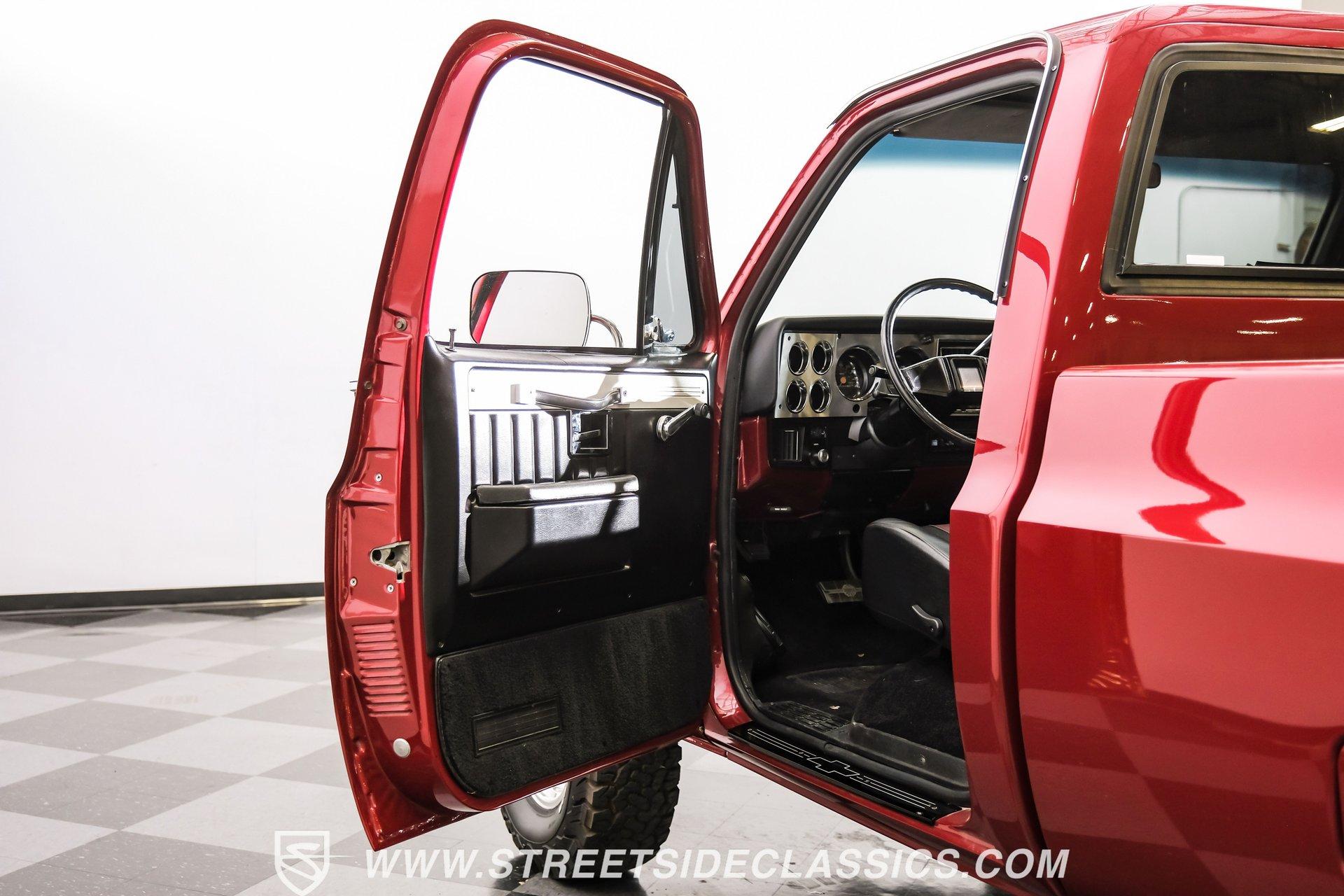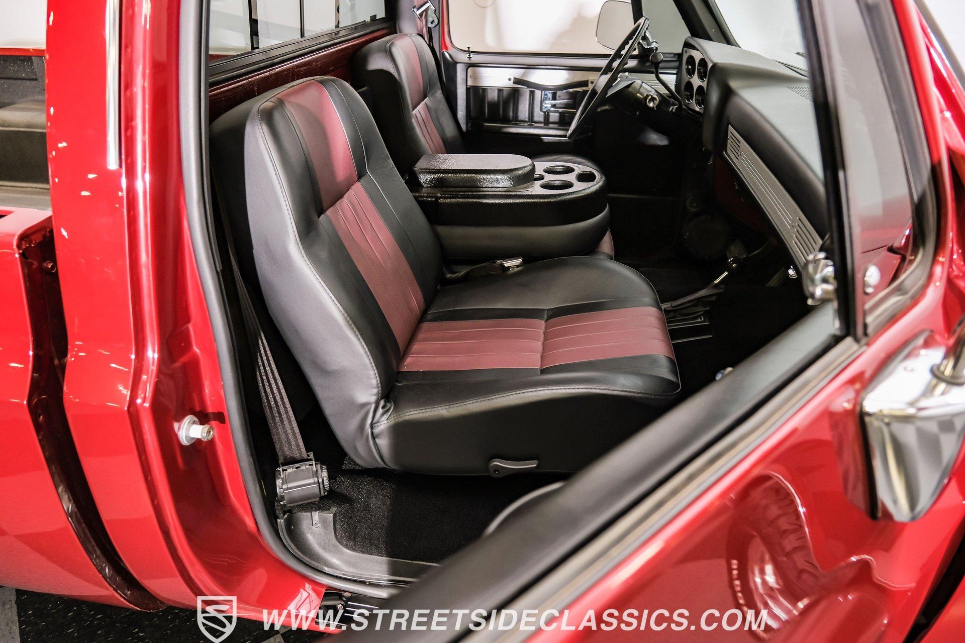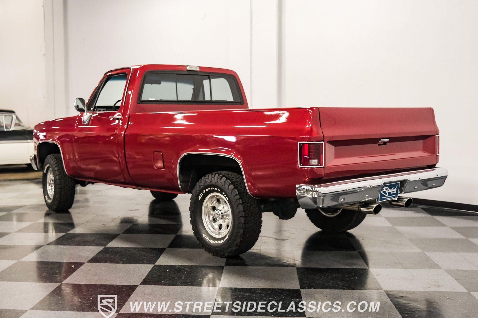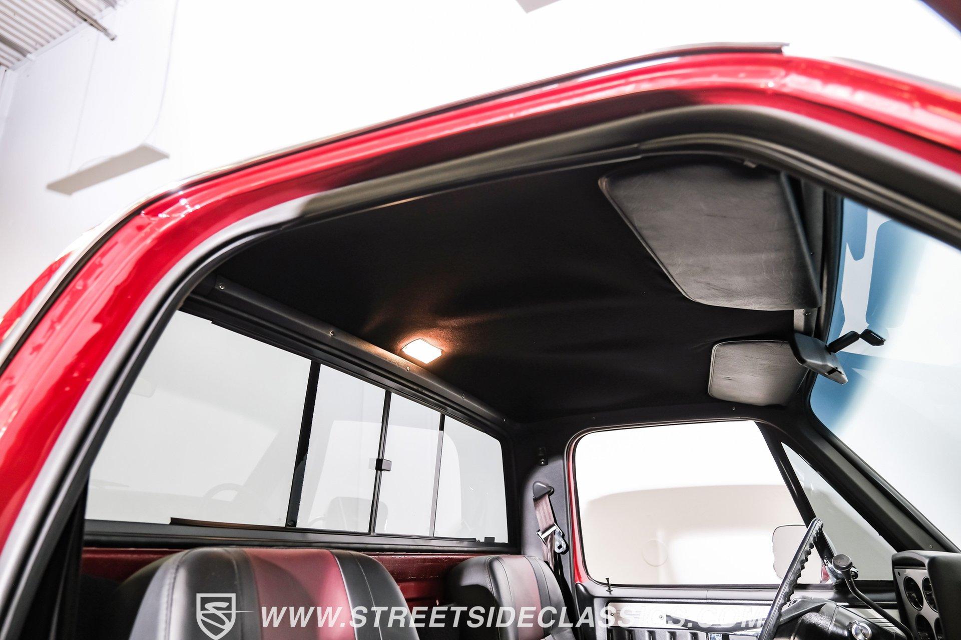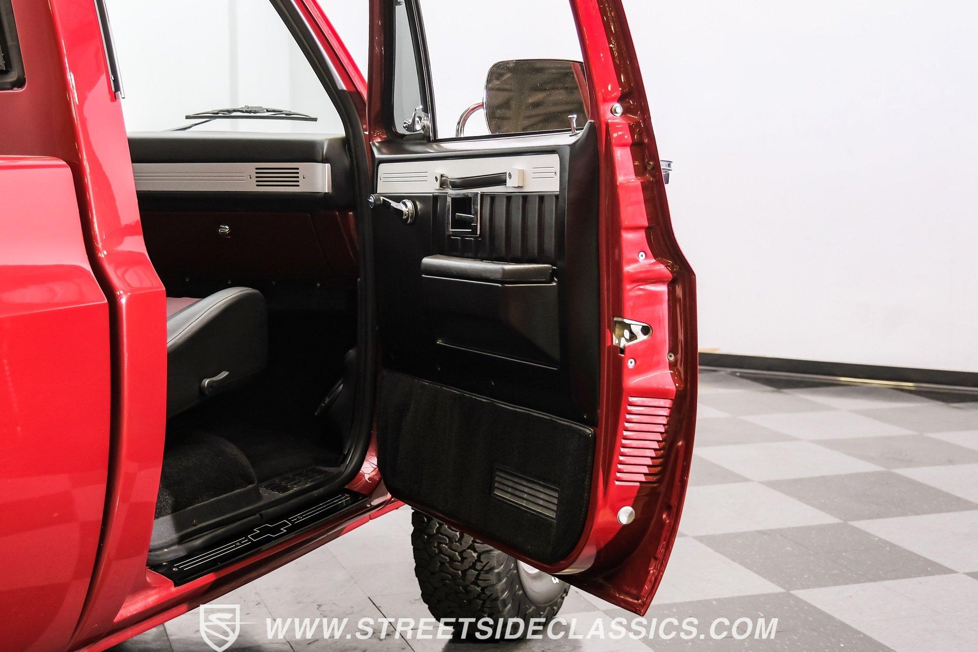 Completely transformed from its humble origins, this 1982 GMC K1500 4X4 ZZ4 shows off its Carmine Red Metallic finish with an unapologetic presence that demands your attention. Originally a diesel-powered workhorse, this truck has undergone a full restoration completed in 2023, emerging as a different animal altogether. The upgraded grille and headlights give the front end a modern edge, while the clean, badge-free body panels accentuate its muscular proportions. Riding on 15" Ultra wheels wrapped in meaty 32x11.50R15 BFG tires from 2022, this K1500 has an authoritative stance that makes ordinary trucks move aside. A textured spray-in bed liner protects the cargo area, completing the rugged yet refined exterior presentation. The black and maroon custom leather interior elevates this truck beyond its utilitarian roots. Custom billet accents throughout add a touch of sophistication while maintaining the truck's rugged character. Bucket seats with a folding armrest provide long-haul comfort while keeping you planted during off-road excursions. The Alpine audio system, featuring AM/FM/USB/CD head unit and strategically placed speakers including kick panel units and a small subwoofer behind the seat, delivers premium sound quality wherever your adventures take you. Additional creature comforts include power steering, tilt column, and cruise control for those extended highway stretches between trail sessions. The mechanical transformation is the true star of this build, featuring a potent 350 V8 ZZ4 crate engine that replaces the original diesel powerplant. Breathing through an Edelbrock carburetor on an aluminum intake manifold and expelling spent gases via Hedman headers connected to a dual exhaust system with MagnaFlow mufflers, this powertrain delivers ample thrust in all conditions. The 700R4 4-speed automatic transmission smoothly transfers power to both axles through the 4-wheel drive system. Modern upgrades continue with March accessories, a contemporary radiator, and electric cooling fans ensuring optimal temperature management. Power disc brakes up front provide confident stopping power, while the front sway bar helps keep body roll in check during aggressive cornering. HIGHLIGHTS: 350 V8 ZZ4 Crate Engine 4-Speed Automatic 700R4 Transmission Edelbrock Carburetor Aluminum Intake Manifold Hedman Headers Dual Exhaust with H-Pipe MagnaFlow Mufflers 10-Bolt Front and Rear Axles 4X4 System Front Sway Bar Power Disc Brakes March Accessories Modern Radiator Electric Cooling Fans Carmine Red Metallic Paint 15" Ultra Wheels in 32x11.50R15 BFG Tires Upgraded Grille and Headlights Textured Spray-in Bed Liner Badge-Free Body Panels Full Frame Powder Coating Dual Fuel Tanks Black and Maroon Custom Leather Interior with Bucket Seats Custom Billet Interior Accents Alpine AM/FM/USB/CD Head Unit Alpine Speakers in Kick Panels Alpine Speakers Behind Seat Tilt Steering Column Cruise Control Power Steering Full Restoration Completed in 2023 Few trucks combine off-road capability, classic styling, and modern performance as effectively as this 1982 GMC K1500. With its full restoration, powerful ZZ4 V8 engine, and thoughtfully upgraded interior, this truck delivers true go-anywhere capability with surprising comfort and style. Call today!