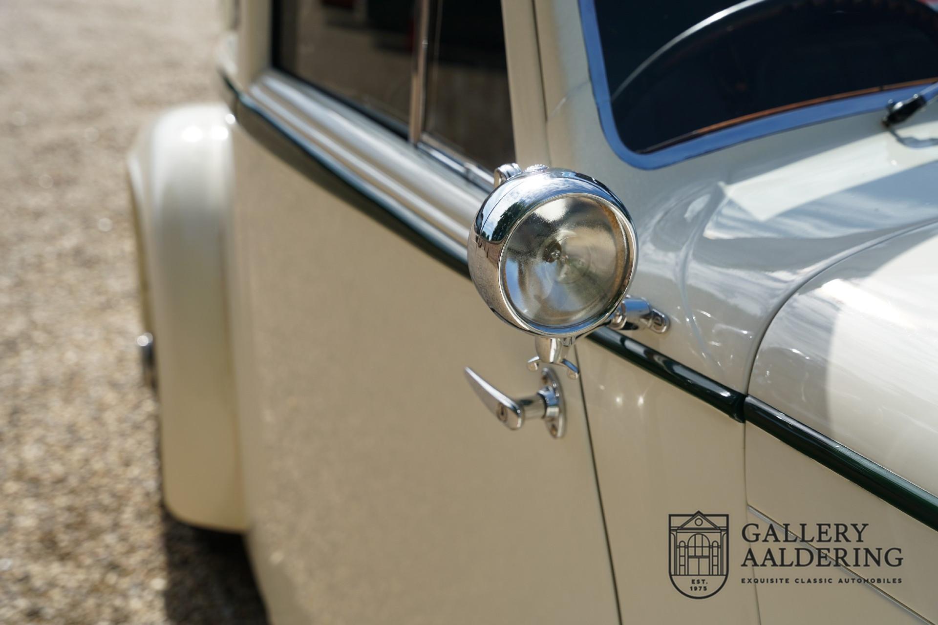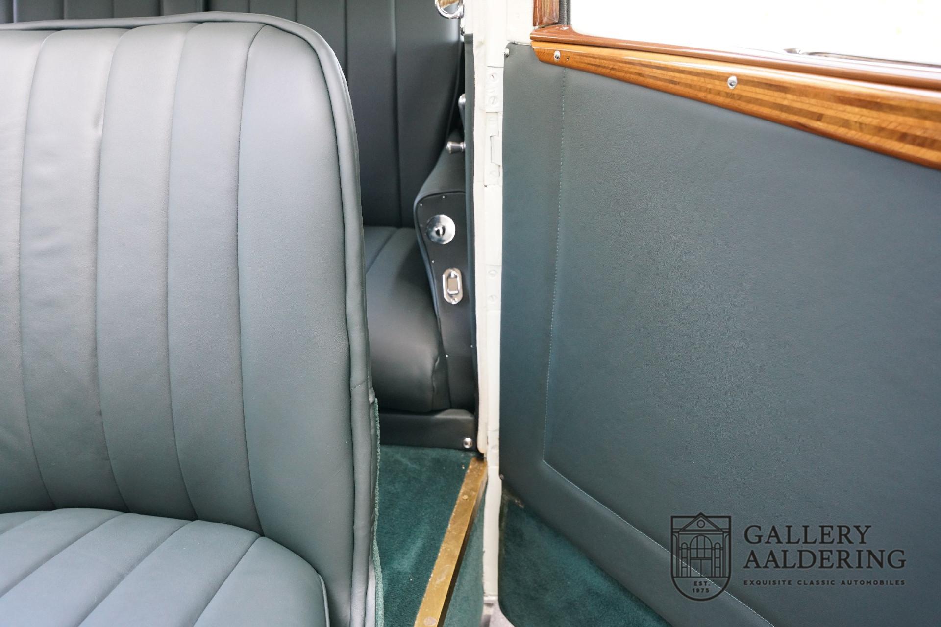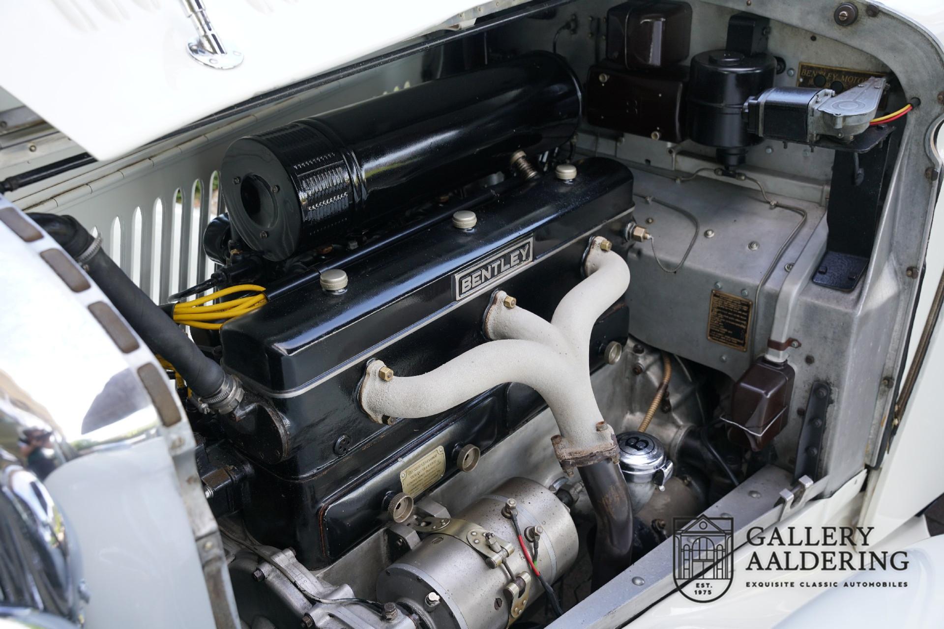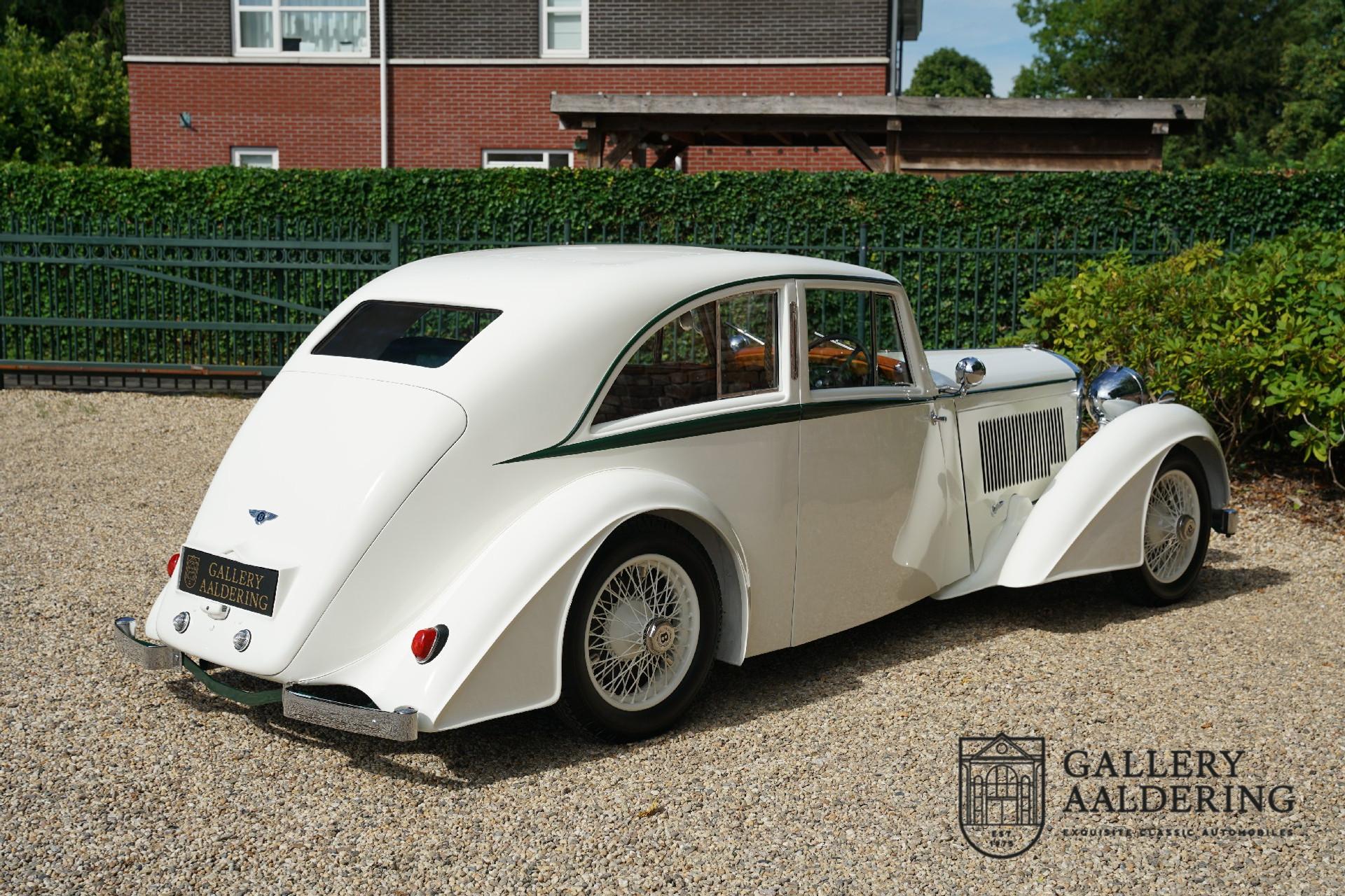 However, this copy was not ordered by a customer but built by Park Ward itself. This car was a moving billboard for Park Ward's view that a car should be constructed. It is a rare beautiful design. Not only do we think so, but also the jury in 1934 at the Concours de Charme in Bournemouth. Completely justified of course when we look at the beautiful way in which this Streamline is built. In full this concerns a: Bentley 3 ½ DB Series A Streamline Saloon by Park Ward. The car was first admitted to traffic in 1933. The car was sold by Bentley and Rolls-Royce dealer Jack Barclay in London. The car has had only three owners since then and is still in very good condition.