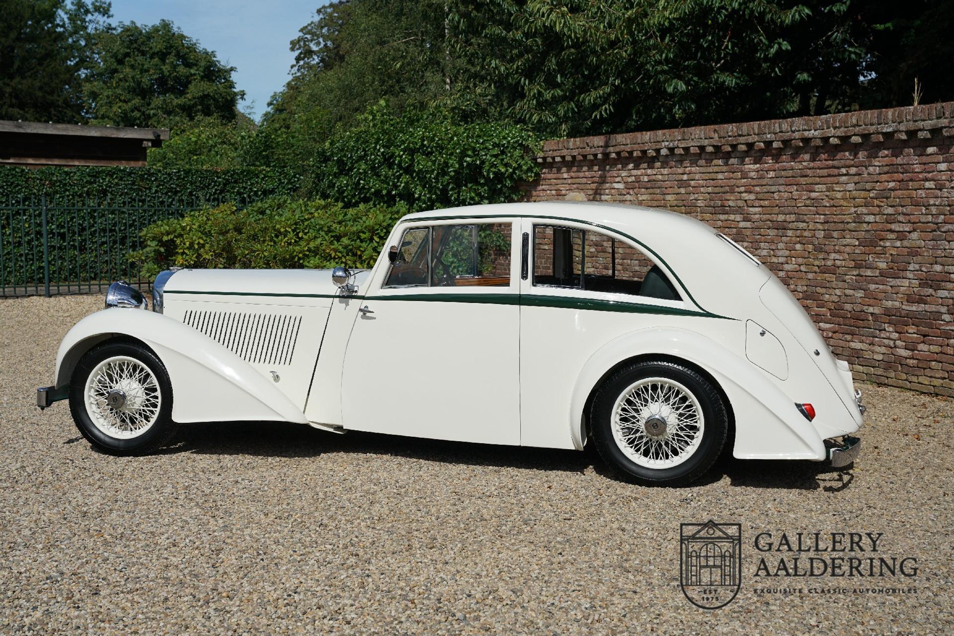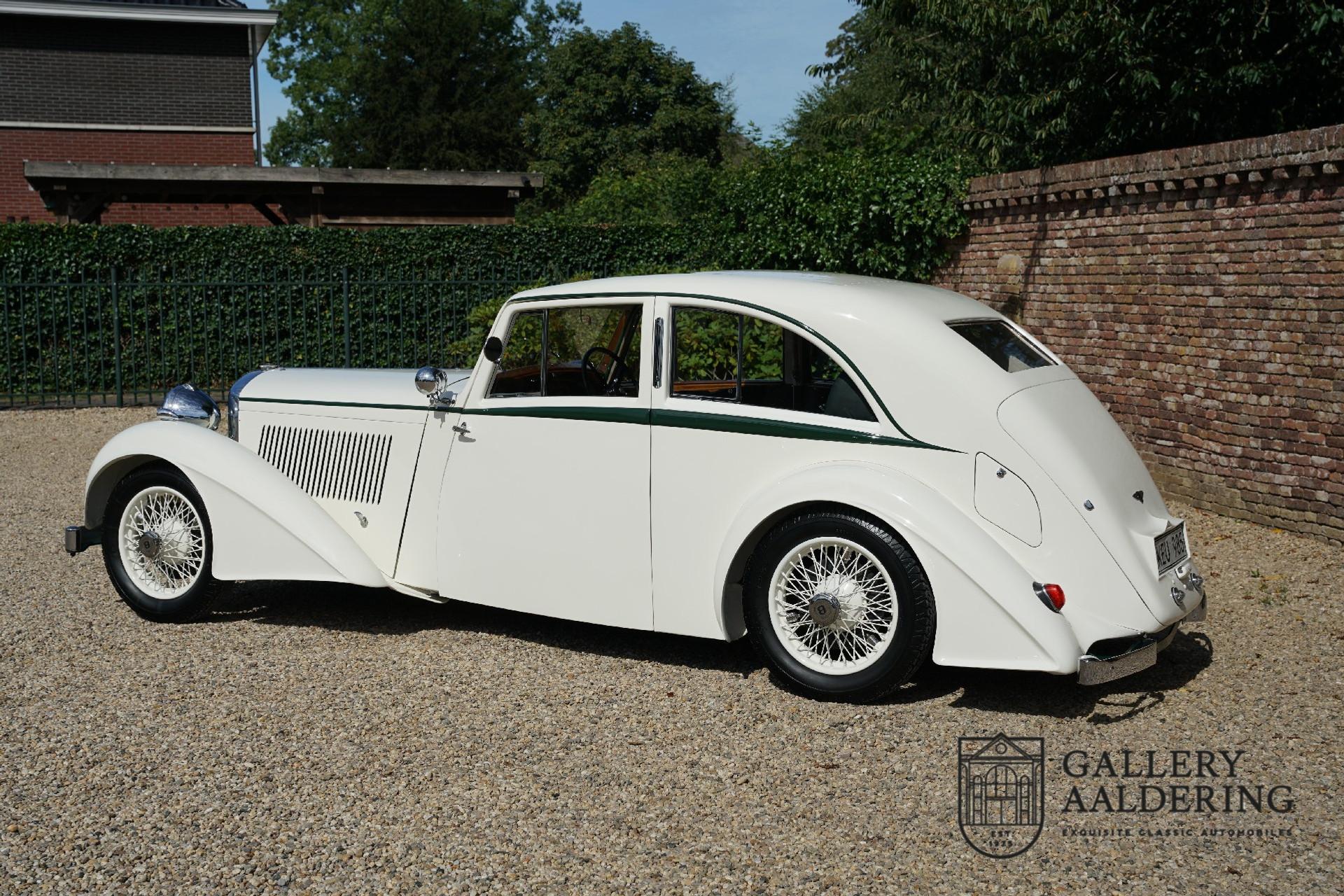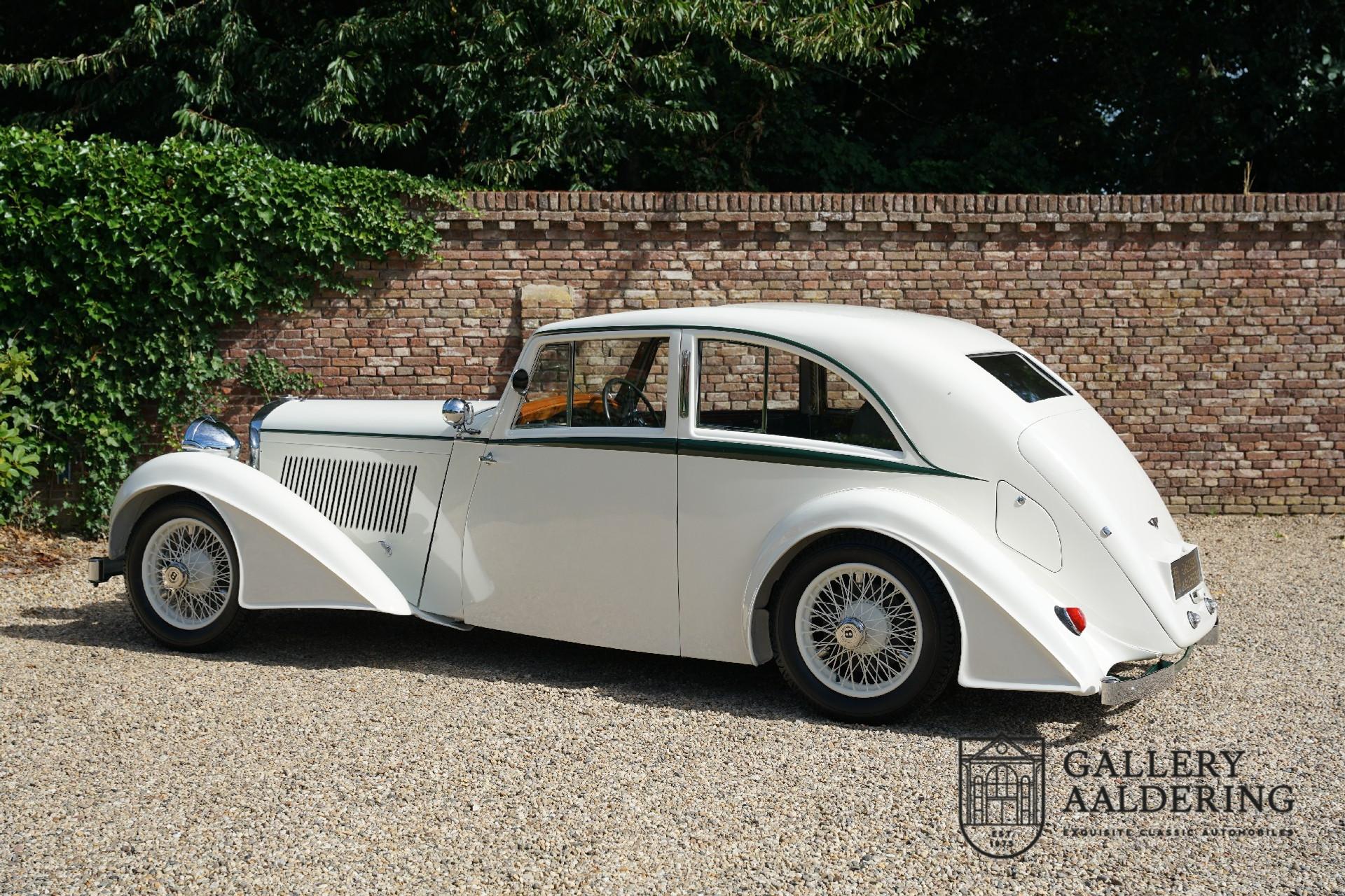 However, this copy was not ordered by a customer but built by Park Ward itself. This car was a moving billboard for Park Ward's view that a car should be constructed. It is a rare beautiful design. Not only do we think so, but also the jury in 1934 at the Concours de Charme in Bournemouth. Completely justified of course when we look at the beautiful way in which this Streamline is built. In full this concerns a: Bentley 3 ½ DB Series A Streamline Saloon by Park Ward. The car was first admitted to traffic in 1933. The car was sold by Bentley and Rolls-Royce dealer Jack Barclay in London. The car has had only three owners since then and is still in very good condition.