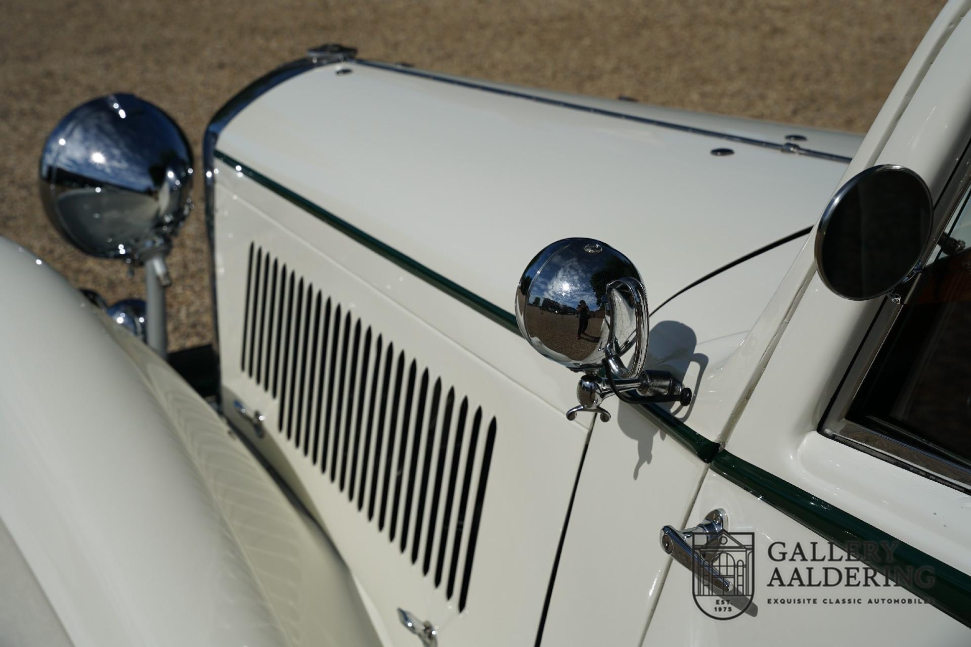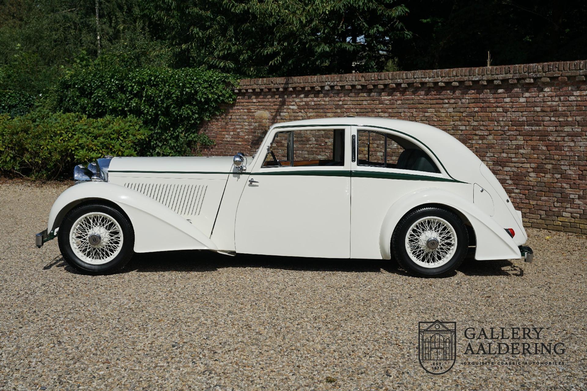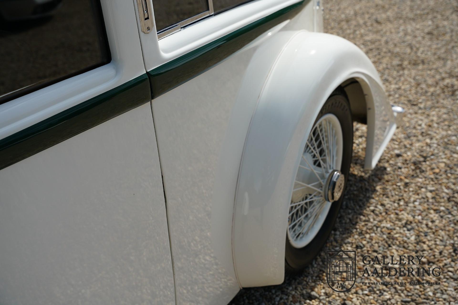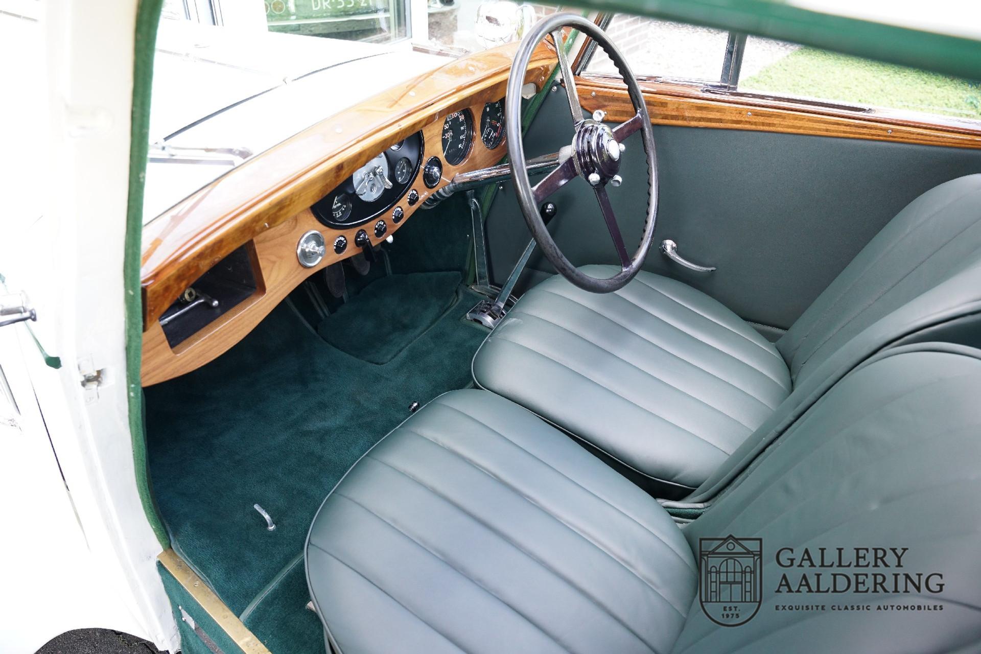 However, this copy was not ordered by a customer but built by Park Ward itself. This car was a moving billboard for Park Ward's view that a car should be constructed. It is a rare beautiful design. Not only do we think so, but also the jury in 1934 at the Concours de Charme in Bournemouth. Completely justified of course when we look at the beautiful way in which this Streamline is built. In full this concerns a: Bentley 3 ½ DB Series A Streamline Saloon by Park Ward. The car was first admitted to traffic in 1933. The car was sold by Bentley and Rolls-Royce dealer Jack Barclay in London. The car has had only three owners since then and is still in very good condition.