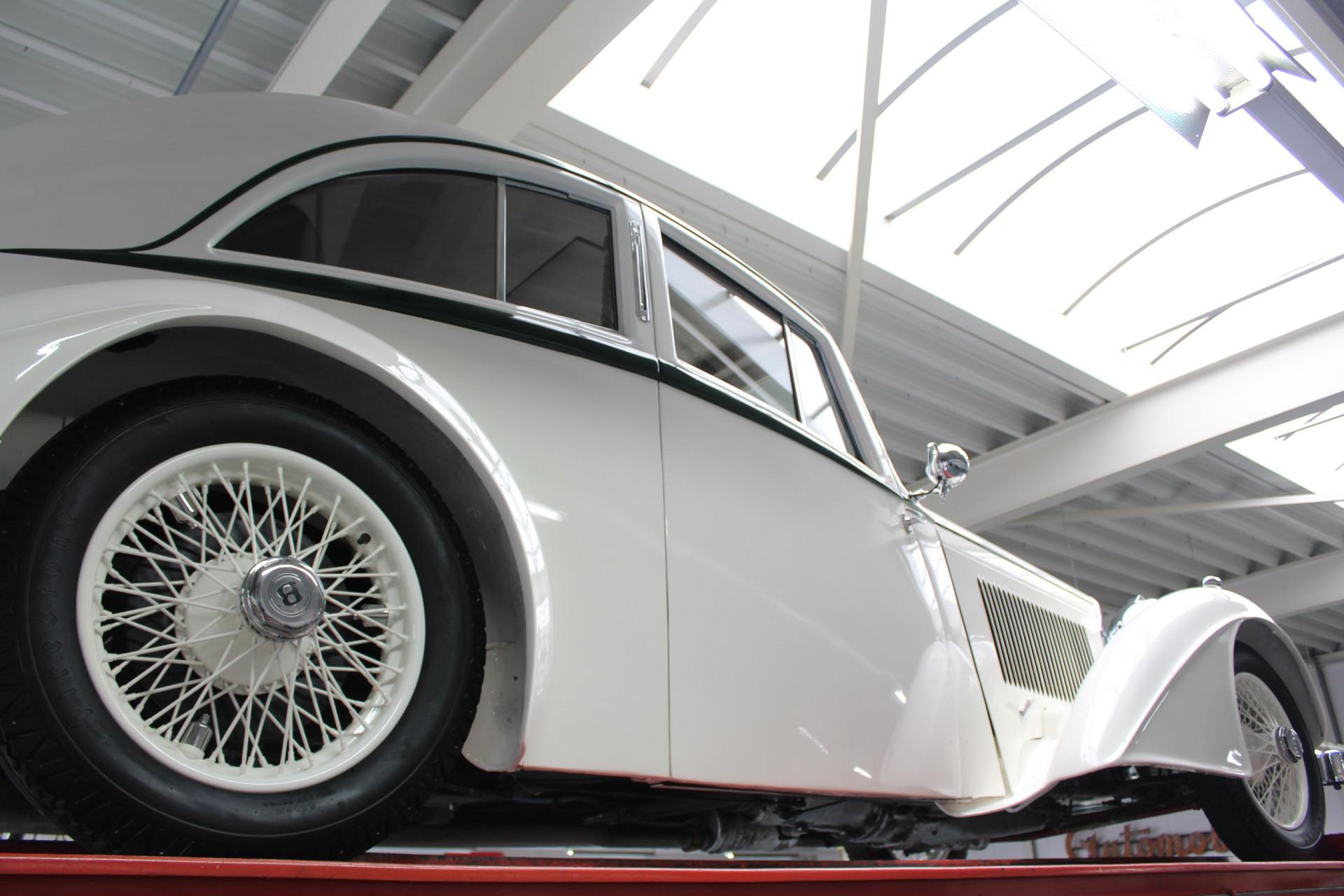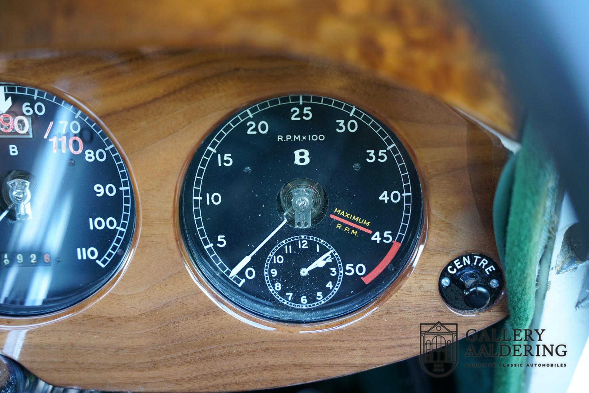 It is not only the engine and transmission that are well maintained, but also the brakes and the chassis function as they should. The engine is a so-called Rolls-Royce Peregrini engine that is 3.5 liters in size and produces about 110 hp. The engine is equipped with two SU carburettors and gives the car a top speed of around 90 kilometers per hour. The engine is mated to a four-speed manual transmission fitted with synchromesh rings on third and fourth gears. What may be called striking is that the chassis weighs only 1,140 kilos drivable.