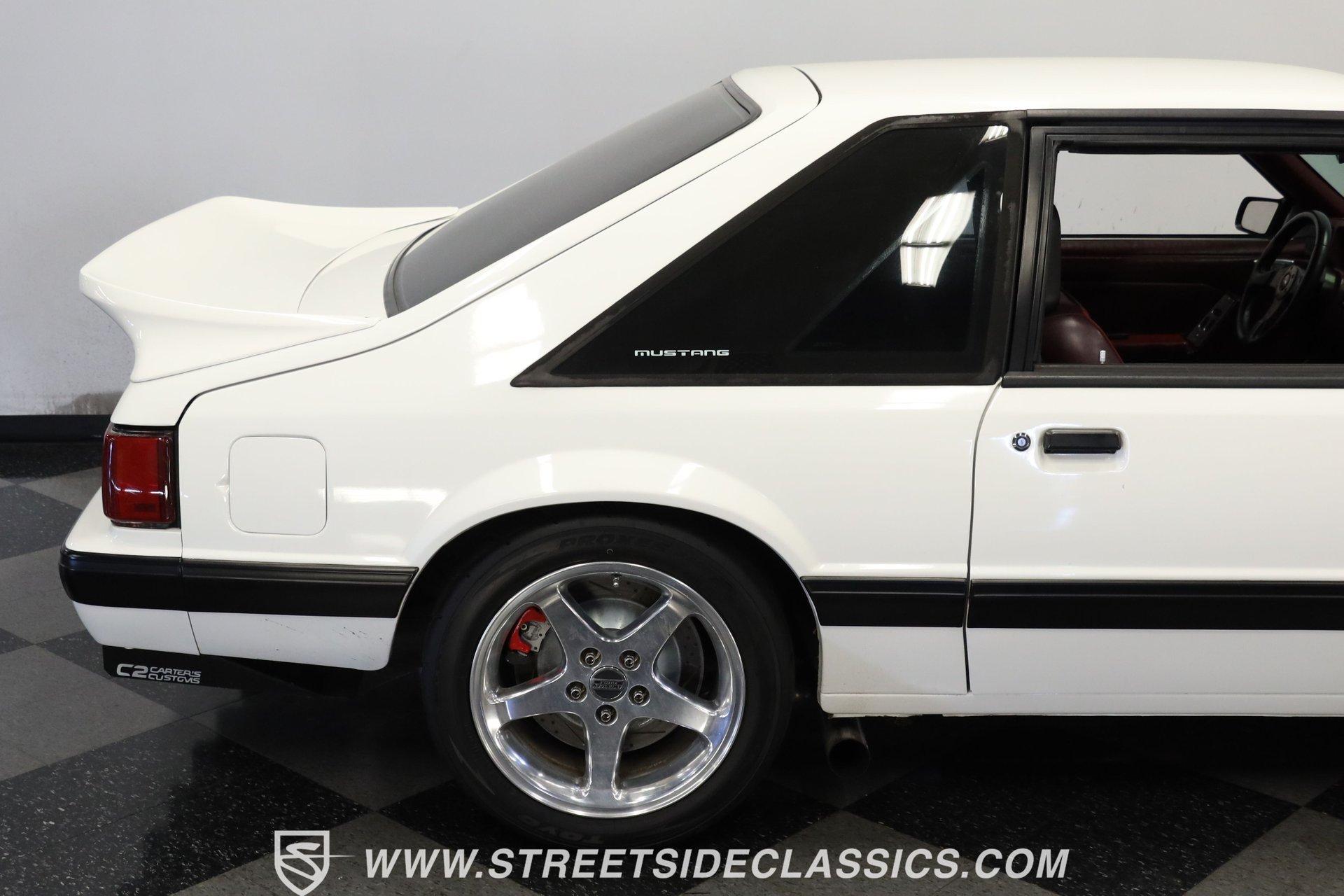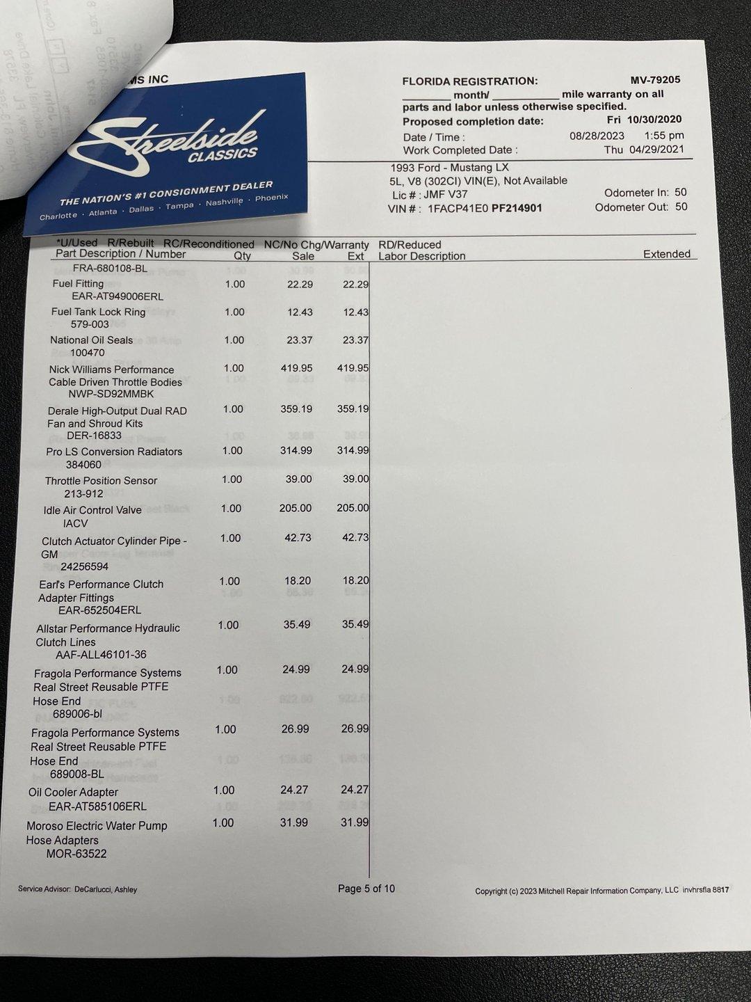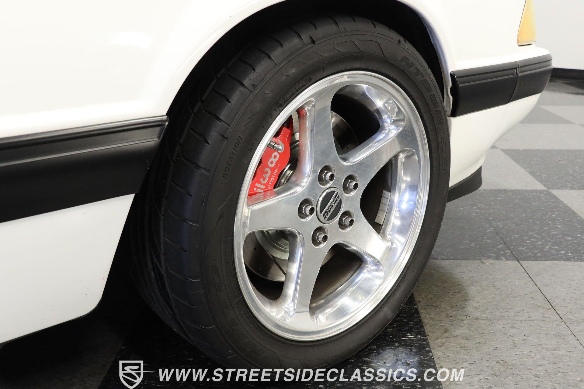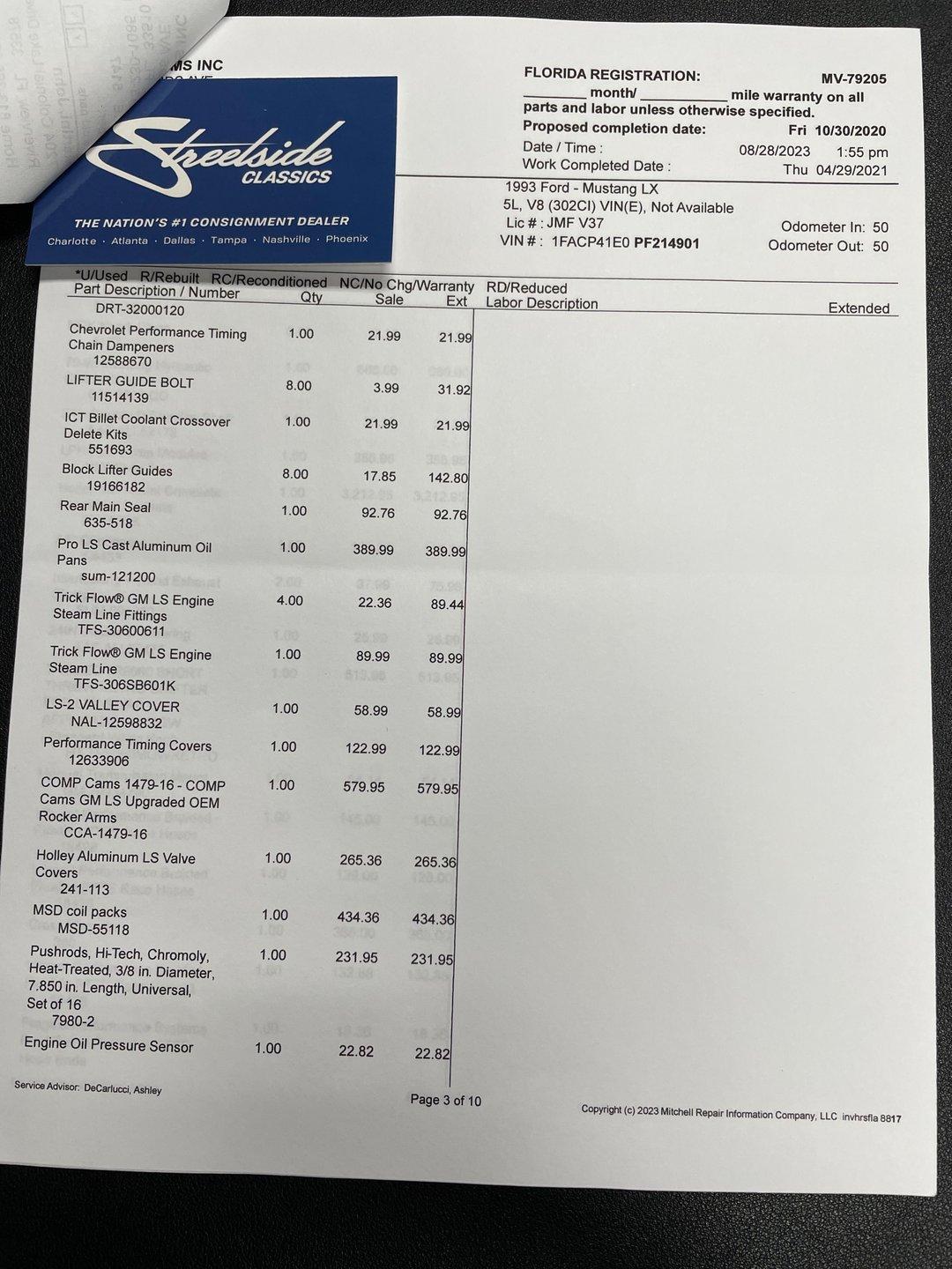 5049-TPA 1993 FORD MUSTANG LS SWAP RESTOMOD Ferociously engineered with modern muscle, this 1993 Ford Mustang LS Swap Restomod flexes a dyno-proven 488 horsepower at the wheels alone. Styled in Vibrant White with aggressive black racing stripes slashing across the hood, this Fox Body transformation combines classic Mustang lines with contemporary performance attitude. From every angle, the large rear spoiler and custom rear air dam create an unmistakable performance silhouette, while the 17" American Muscle wheels filled with meaty 245/45ZR17 front and 275/40ZR17 rear tires plant this pony firmly to the pavement with track-ready stance and purpose. Fire-engine red cloth upholstery greets you inside this performance machine, offering a bold counterpoint to the white exterior. The driver-centered layout puts everything within easy reach, from the Momo steering wheel to the 6-speed manual shifter rising from the clean center console. JVC provides the soundtrack through a Kicker amp and subwoofer system, while aftermarket digital gauges relay vital information at a glance. The strategic half roll bar adds rigidity without sacrificing usability, and the factory-style layout maintains comfort despite the serious performance capabilities underneath. Giving life to this street predator is a carefully crafted 427 cubic inch LSX powerplant built on an iron Dart block - specifically chosen for its superior strength characteristics when pushing serious power. PRC aluminum heads and precision-tuned Holley EFI manage the combustion process with computer-controlled precision, while the Tremec TR-6060 6-speed manual transmission handles all 478 lb-ft of torque with confidence. Completely reimagined suspension components including tubular A-arms, AJE steering rack, Maximum Motorsports torque arm and responsive coilovers work in harmony to translate raw power into usable performance, while four-wheel disc brakes bring everything to a controlled halt when needed. HIGHLIGHTS: 427 LSX Engine (488 HP / 478 TQ at rear wheels) Tremec TR-6060 6-Speed Manual Transmission Iron Dart Block PRC Aluminum Cylinder Heads Holley Electronic Fuel Injection Coilover Suspension Tubular A-arm Front End Tubular Rear Arms AJE Steering Rack Maximum Motorsports Torque Arm 4-Wheel Power Disc Brakes (Slotted & Drilled) 2.73 Rear Axle Ratio Dual Side Exit Exhaust Aluminum Radiator with Dual Fans Vibrant White Paint with Black Racing Stripes 17" American Muscle Wheels 245/45ZR17 Front, 275/40ZR17 Rear Tires Large Rear Spoiler Aftermarket Rear Air Dam Tinted Windows Red Interior with Bucket Seats Momo Steering Wheel Half Roll Bar JVC Receiver Kicker Amplifier & Subwoofer Aftermarket Digital Gauges 6-Speed Floor Shifter Center Console Air Conditioning Power Steering Only 995 Miles Since Build $50,000 in Engine/Drivetrain Build Receipts Born from intense engineering focus and $50,000 in drivetrain investments alone, this Fox Body Mustang delivers brutal, modern LS power in a classic form. With just 995 miles on the build, the combination of iron-block muscle, precision handling, and aggressive looks creates a genuine street machine worthy of any performance collection. Call today! We can assist you with getting an Extended Vehicle Service Plan from Freedom Warranty, which provides comprehensive coverage that can save thousands of dollars on unexpected repairs. Inquire for more details and pricing!
