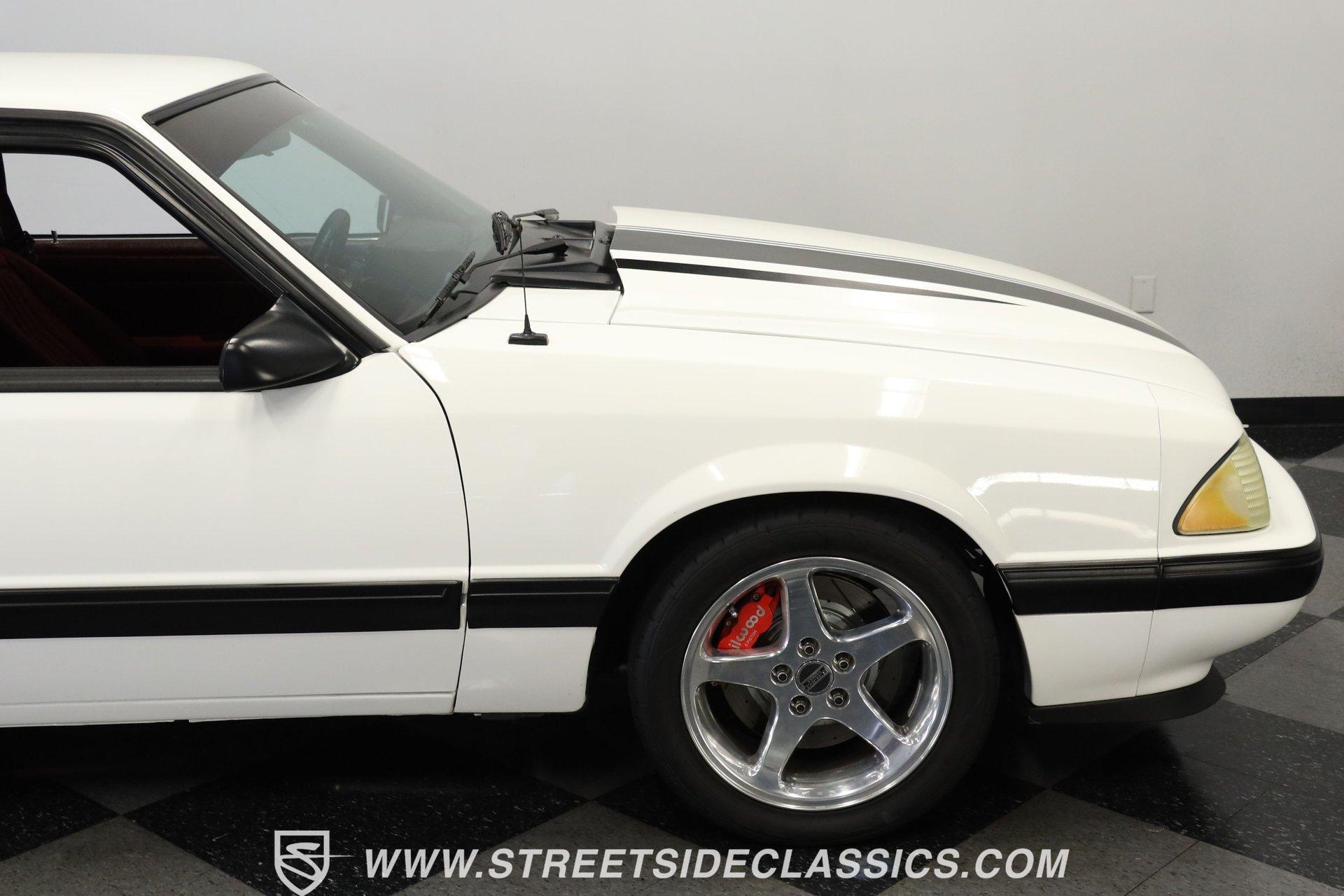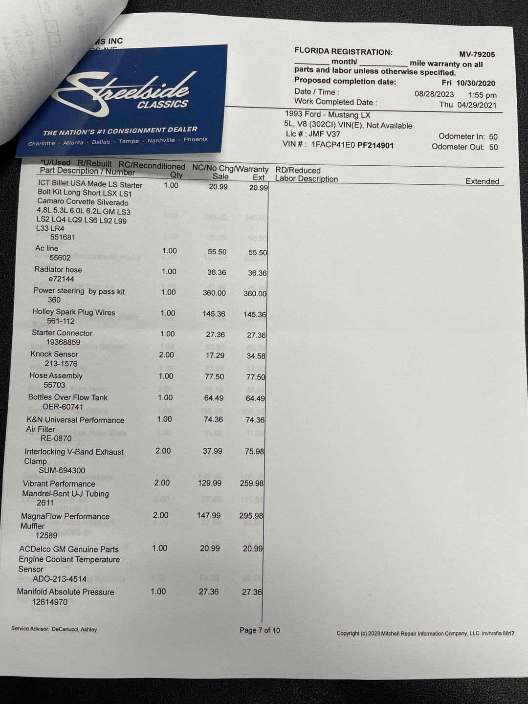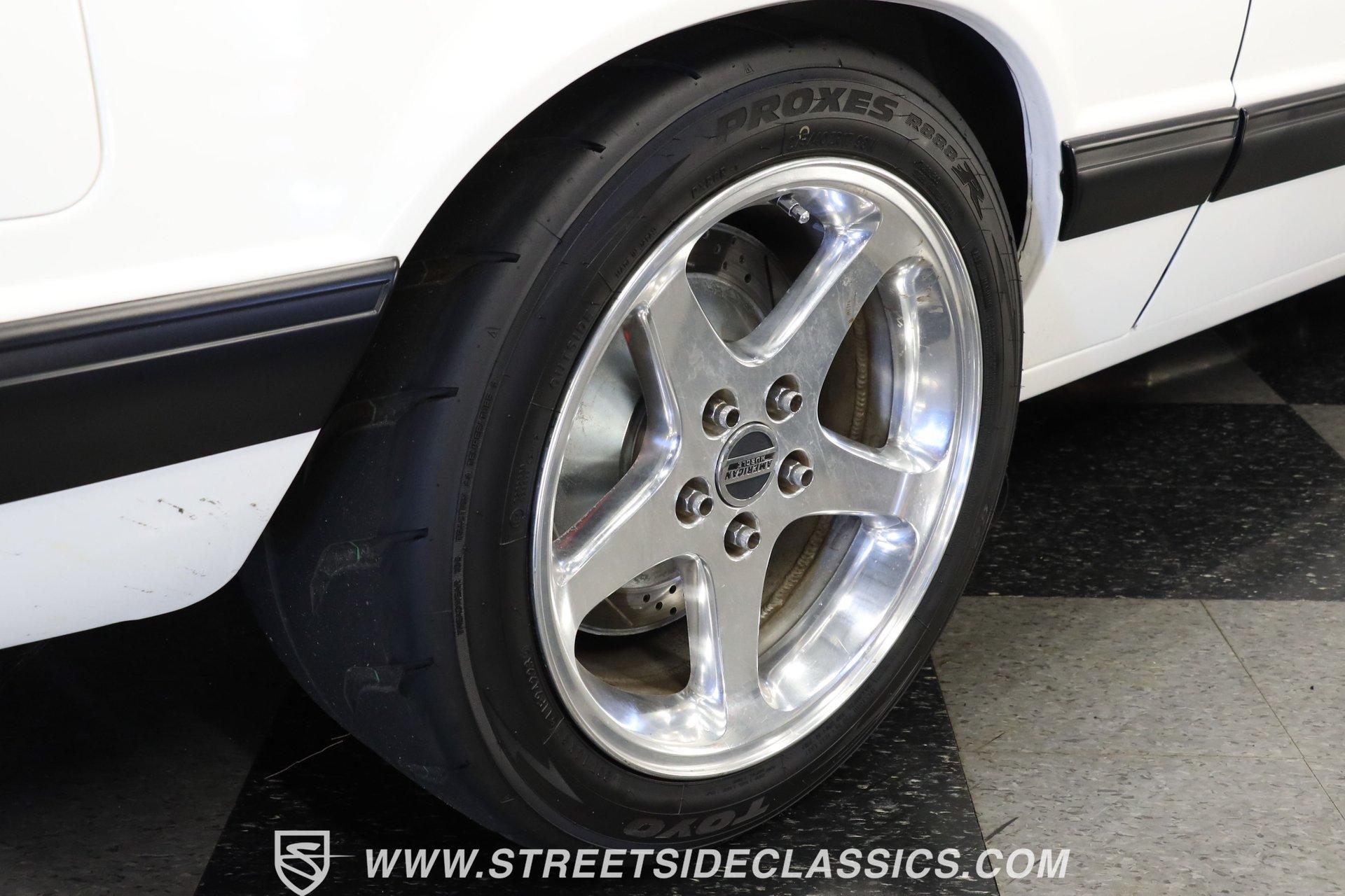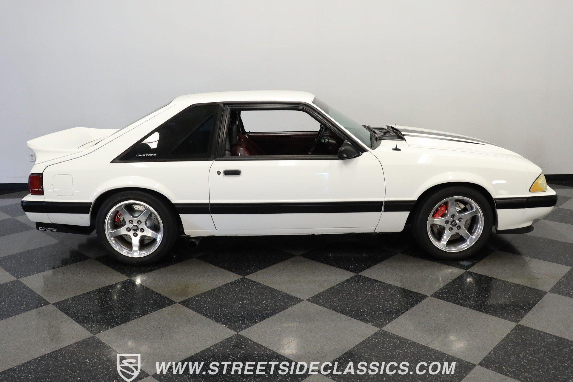 5049-TPA 1993 FORD MUSTANG LS SWAP RESTOMOD Ferociously engineered with modern muscle, this 1993 Ford Mustang LS Swap Restomod flexes a dyno-proven 488 horsepower at the wheels alone. Styled in Vibrant White with aggressive black racing stripes slashing across the hood, this Fox Body transformation combines classic Mustang lines with contemporary performance attitude. From every angle, the large rear spoiler and custom rear air dam create an unmistakable performance silhouette, while the 17" American Muscle wheels filled with meaty 245/45ZR17 front and 275/40ZR17 rear tires plant this pony firmly to the pavement with track-ready stance and purpose. Fire-engine red cloth upholstery greets you inside this performance machine, offering a bold counterpoint to the white exterior. The driver-centered layout puts everything within easy reach, from the Momo steering wheel to the 6-speed manual shifter rising from the clean center console. JVC provides the soundtrack through a Kicker amp and subwoofer system, while aftermarket digital gauges relay vital information at a glance. The strategic half roll bar adds rigidity without sacrificing usability, and the factory-style layout maintains comfort despite the serious performance capabilities underneath. Giving life to this street predator is a carefully crafted 427 cubic inch LSX powerplant built on an iron Dart block - specifically chosen for its superior strength characteristics when pushing serious power. PRC aluminum heads and precision-tuned Holley EFI manage the combustion process with computer-controlled precision, while the Tremec TR-6060 6-speed manual transmission handles all 478 lb-ft of torque with confidence. Completely reimagined suspension components including tubular A-arms, AJE steering rack, Maximum Motorsports torque arm and responsive coilovers work in harmony to translate raw power into usable performance, while four-wheel disc brakes bring everything to a controlled halt when needed. HIGHLIGHTS: 427 LSX Engine (488 HP / 478 TQ at rear wheels) Tremec TR-6060 6-Speed Manual Transmission Iron Dart Block PRC Aluminum Cylinder Heads Holley Electronic Fuel Injection Coilover Suspension Tubular A-arm Front End Tubular Rear Arms AJE Steering Rack Maximum Motorsports Torque Arm 4-Wheel Power Disc Brakes (Slotted & Drilled) 2.73 Rear Axle Ratio Dual Side Exit Exhaust Aluminum Radiator with Dual Fans Vibrant White Paint with Black Racing Stripes 17" American Muscle Wheels 245/45ZR17 Front, 275/40ZR17 Rear Tires Large Rear Spoiler Aftermarket Rear Air Dam Tinted Windows Red Interior with Bucket Seats Momo Steering Wheel Half Roll Bar JVC Receiver Kicker Amplifier & Subwoofer Aftermarket Digital Gauges 6-Speed Floor Shifter Center Console Air Conditioning Power Steering Only 995 Miles Since Build $50,000 in Engine/Drivetrain Build Receipts Born from intense engineering focus and $50,000 in drivetrain investments alone, this Fox Body Mustang delivers brutal, modern LS power in a classic form. With just 995 miles on the build, the combination of iron-block muscle, precision handling, and aggressive looks creates a genuine street machine worthy of any performance collection. Call today! We can assist you with getting an Extended Vehicle Service Plan from Freedom Warranty, which provides comprehensive coverage that can save thousands of dollars on unexpected repairs. Inquire for more details and pricing!