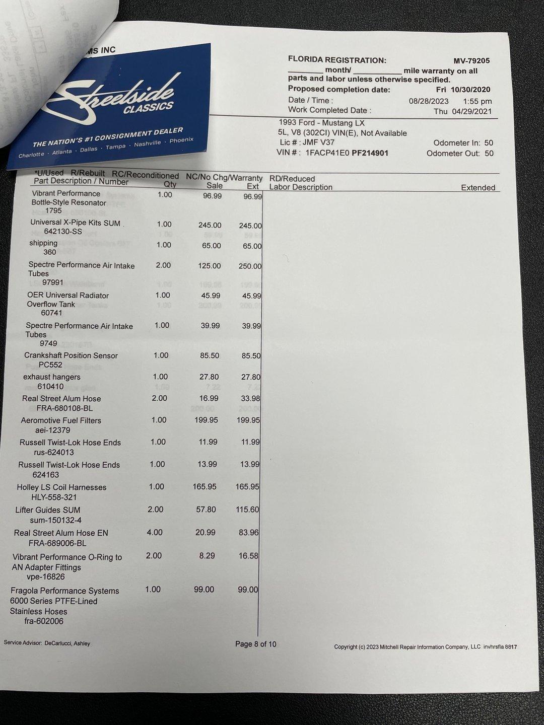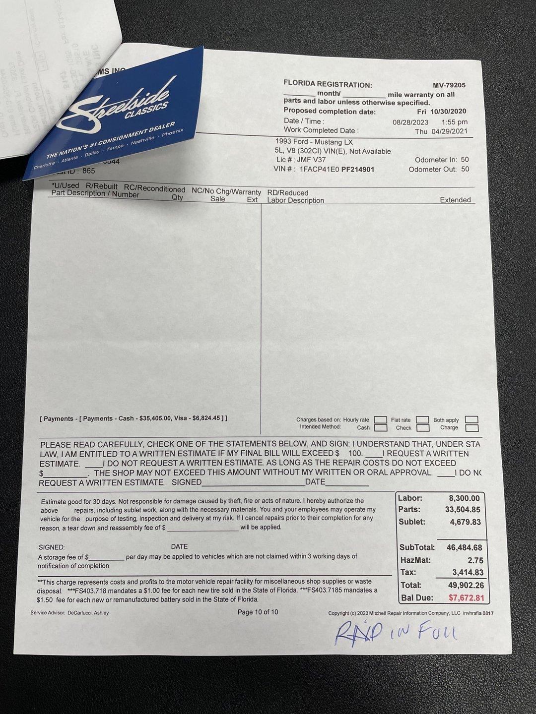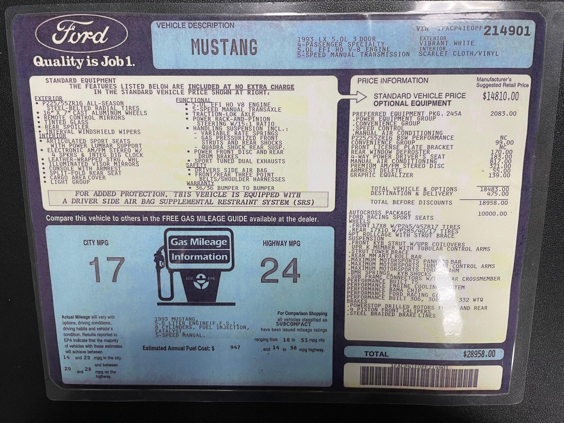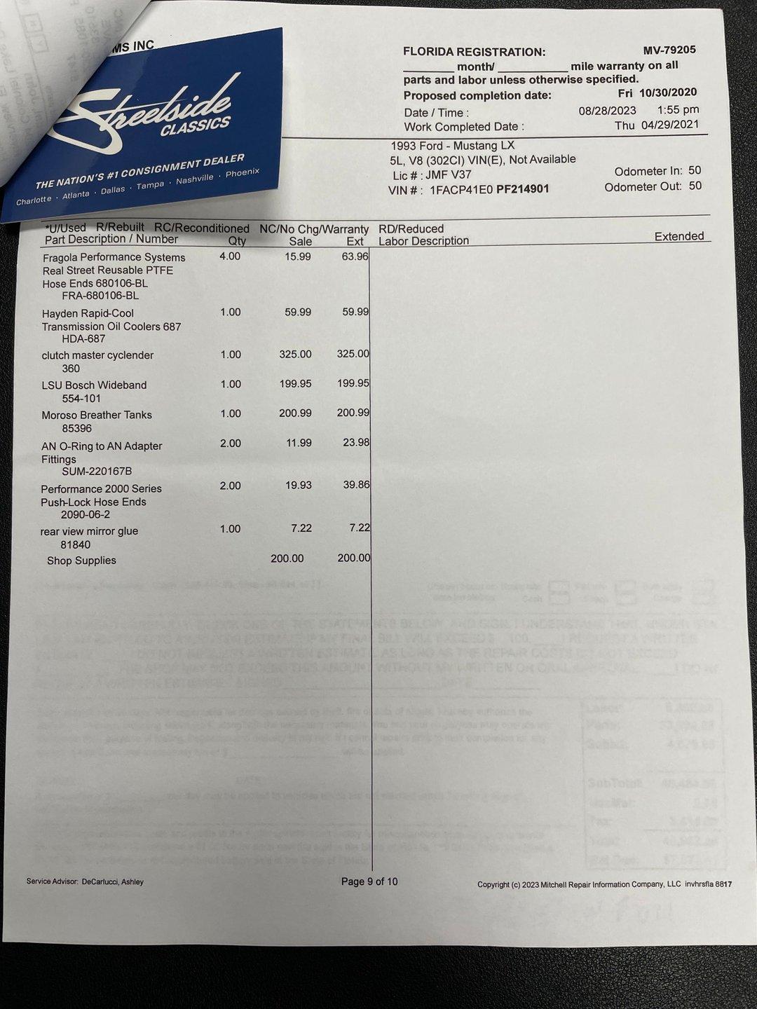 5049-TPA 1993 FORD MUSTANG LS SWAP RESTOMOD Ferociously engineered with modern muscle, this 1993 Ford Mustang LS Swap Restomod flexes a dyno-proven 488 horsepower at the wheels alone. Styled in Vibrant White with aggressive black racing stripes slashing across the hood, this Fox Body transformation combines classic Mustang lines with contemporary performance attitude. From every angle, the large rear spoiler and custom rear air dam create an unmistakable performance silhouette, while the 17" American Muscle wheels filled with meaty 245/45ZR17 front and 275/40ZR17 rear tires plant this pony firmly to the pavement with track-ready stance and purpose. Fire-engine red cloth upholstery greets you inside this performance machine, offering a bold counterpoint to the white exterior. The driver-centered layout puts everything within easy reach, from the Momo steering wheel to the 6-speed manual shifter rising from the clean center console. JVC provides the soundtrack through a Kicker amp and subwoofer system, while aftermarket digital gauges relay vital information at a glance. The strategic half roll bar adds rigidity without sacrificing usability, and the factory-style layout maintains comfort despite the serious performance capabilities underneath. Giving life to this street predator is a carefully crafted 427 cubic inch LSX powerplant built on an iron Dart block - specifically chosen for its superior strength characteristics when pushing serious power. PRC aluminum heads and precision-tuned Holley EFI manage the combustion process with computer-controlled precision, while the Tremec TR-6060 6-speed manual transmission handles all 478 lb-ft of torque with confidence. Completely reimagined suspension components including tubular A-arms, AJE steering rack, Maximum Motorsports torque arm and responsive coilovers work in harmony to translate raw power into usable performance, while four-wheel disc brakes bring everything to a controlled halt when needed. HIGHLIGHTS: 427 LSX Engine (488 HP / 478 TQ at rear wheels) Tremec TR-6060 6-Speed Manual Transmission Iron Dart Block PRC Aluminum Cylinder Heads Holley Electronic Fuel Injection Coilover Suspension Tubular A-arm Front End Tubular Rear Arms AJE Steering Rack Maximum Motorsports Torque Arm 4-Wheel Power Disc Brakes (Slotted & Drilled) 2.73 Rear Axle Ratio Dual Side Exit Exhaust Aluminum Radiator with Dual Fans Vibrant White Paint with Black Racing Stripes 17" American Muscle Wheels 245/45ZR17 Front, 275/40ZR17 Rear Tires Large Rear Spoiler Aftermarket Rear Air Dam Tinted Windows Red Interior with Bucket Seats Momo Steering Wheel Half Roll Bar JVC Receiver Kicker Amplifier & Subwoofer Aftermarket Digital Gauges 6-Speed Floor Shifter Center Console Air Conditioning Power Steering Only 995 Miles Since Build $50,000 in Engine/Drivetrain Build Receipts Born from intense engineering focus and $50,000 in drivetrain investments alone, this Fox Body Mustang delivers brutal, modern LS power in a classic form. With just 995 miles on the build, the combination of iron-block muscle, precision handling, and aggressive looks creates a genuine street machine worthy of any performance collection. Call today! We can assist you with getting an Extended Vehicle Service Plan from Freedom Warranty, which provides comprehensive coverage that can save thousands of dollars on unexpected repairs. Inquire for more details and pricing!