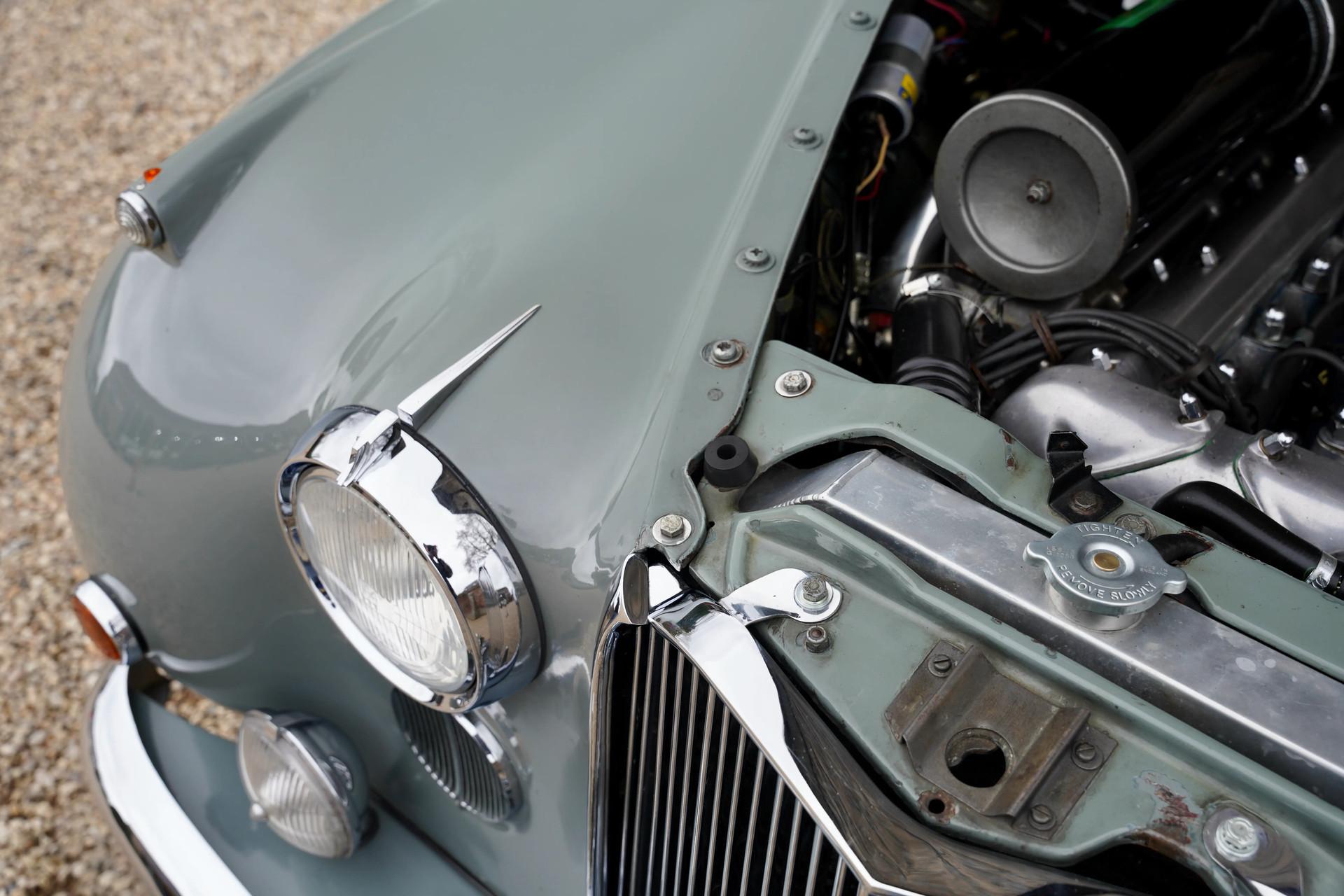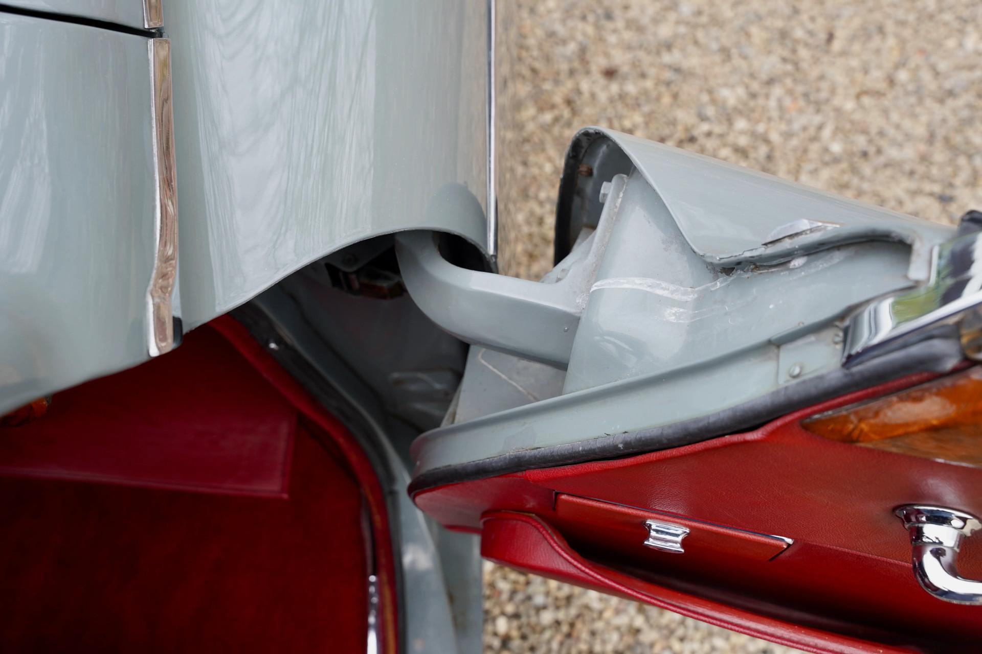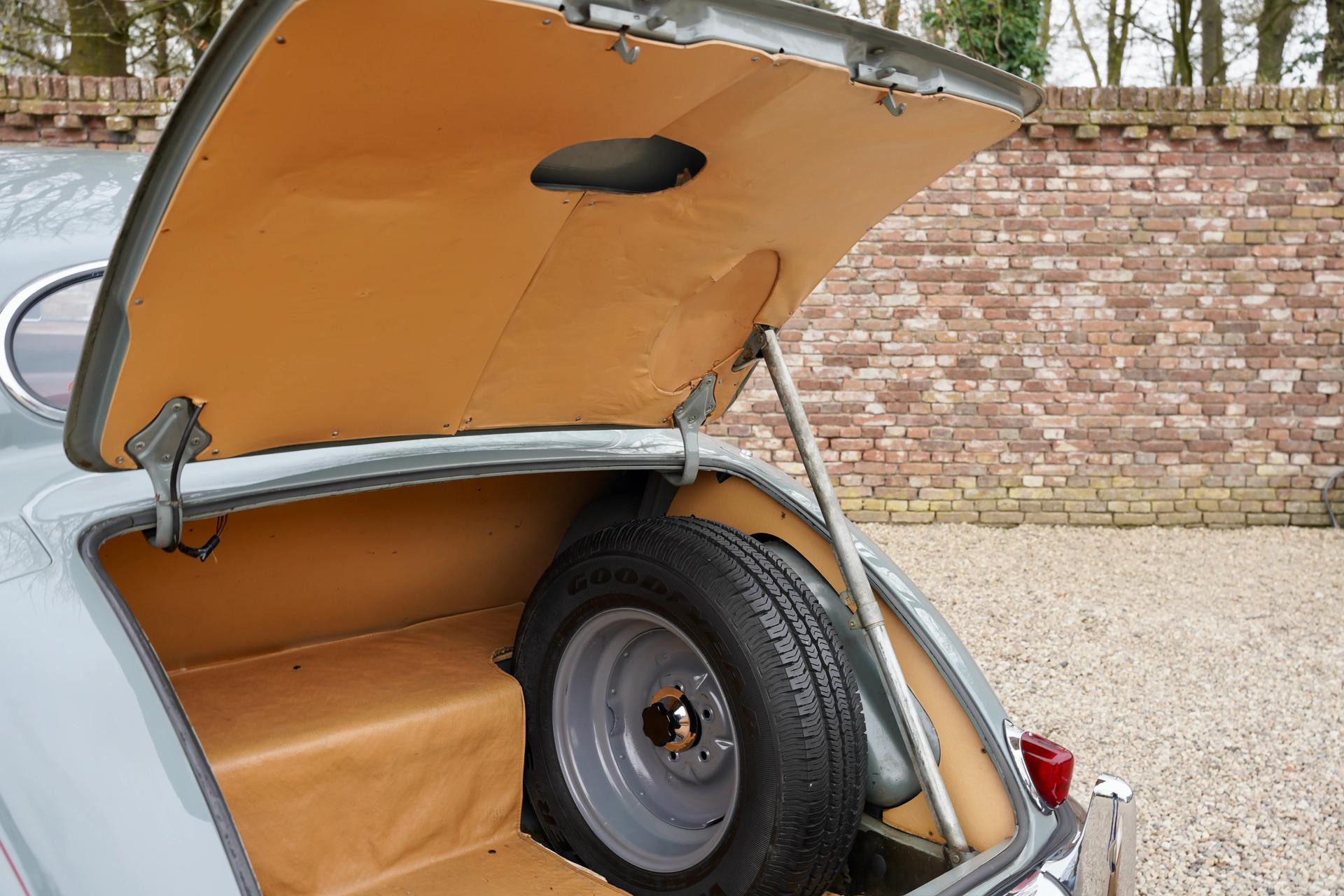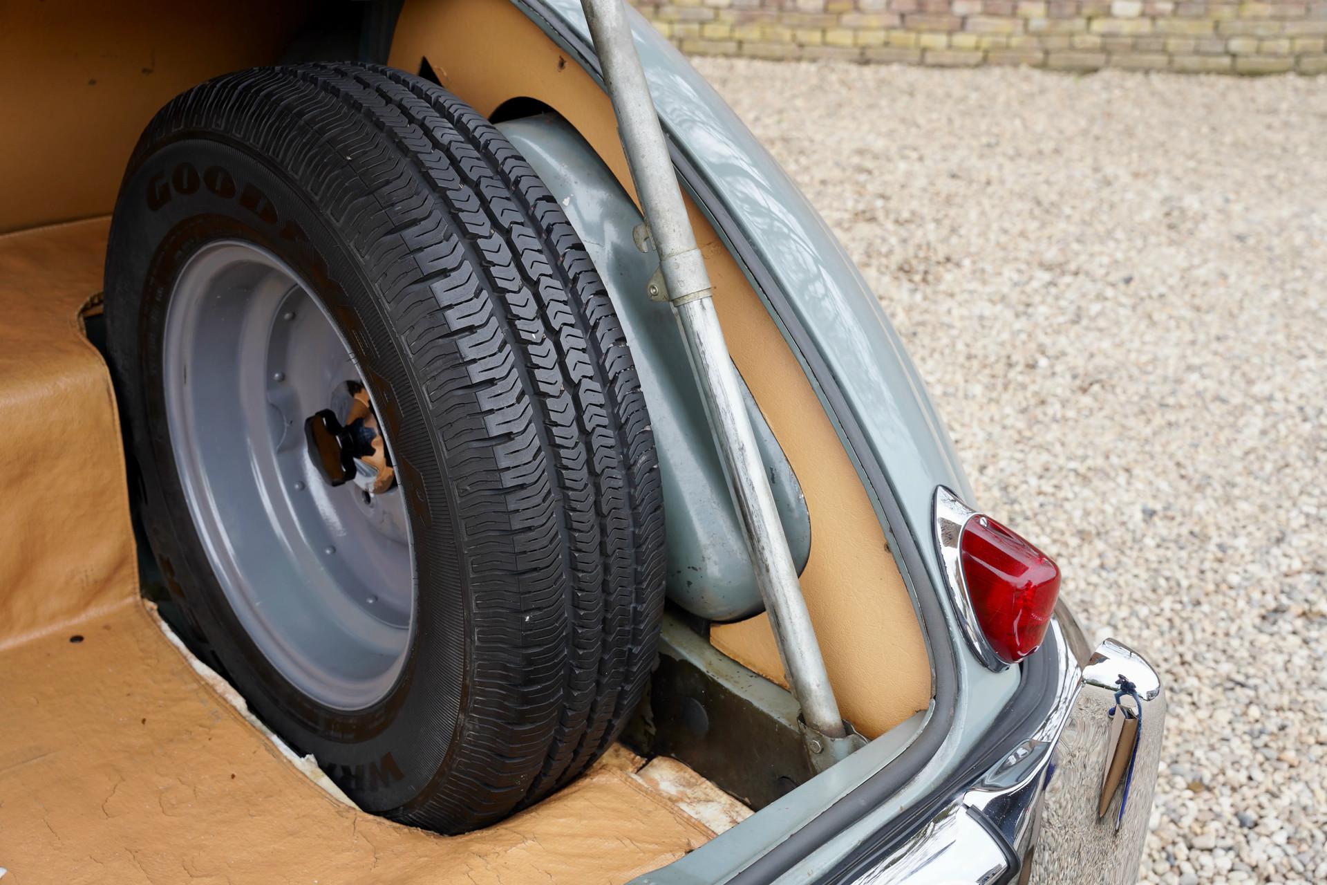 And you feel that the moment you start it up and take off. The 3.8-liter straight-six runs quietly and smoothly, the automatic gearbox shifts without hesitation, and the car has that solid, composed feel that defines a proper Jaguar. And then there's the added bonus: factory air conditioning and a sliding sunroof. In a 1959 model. A real treat, if you ask us.