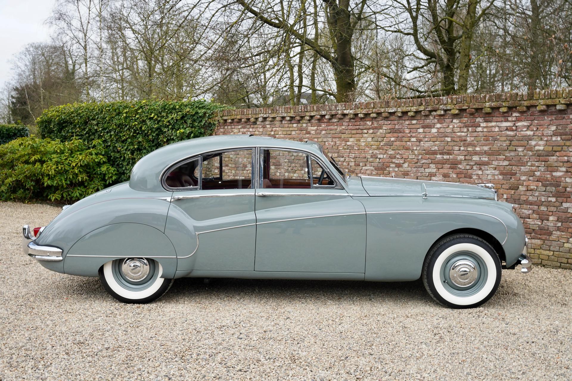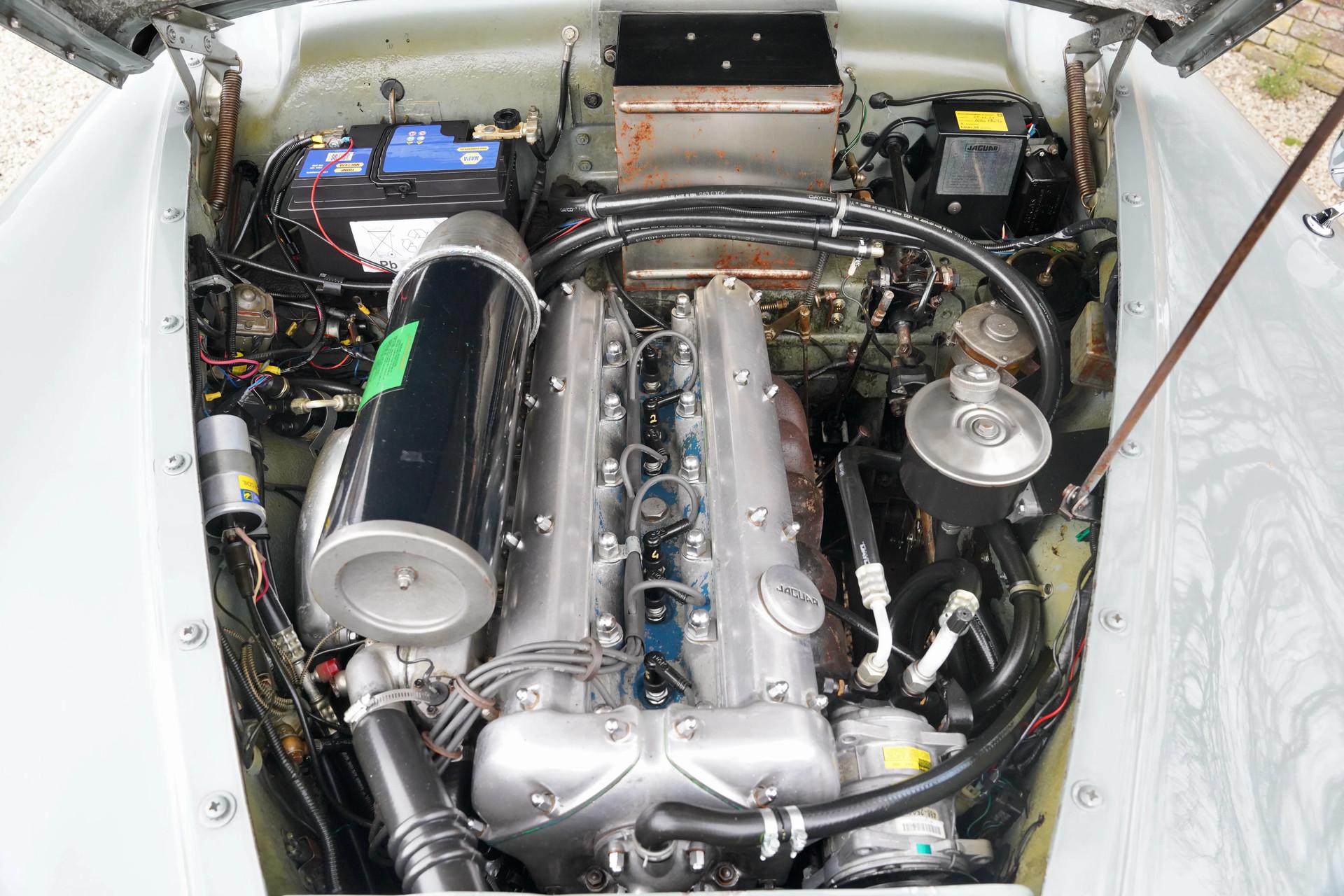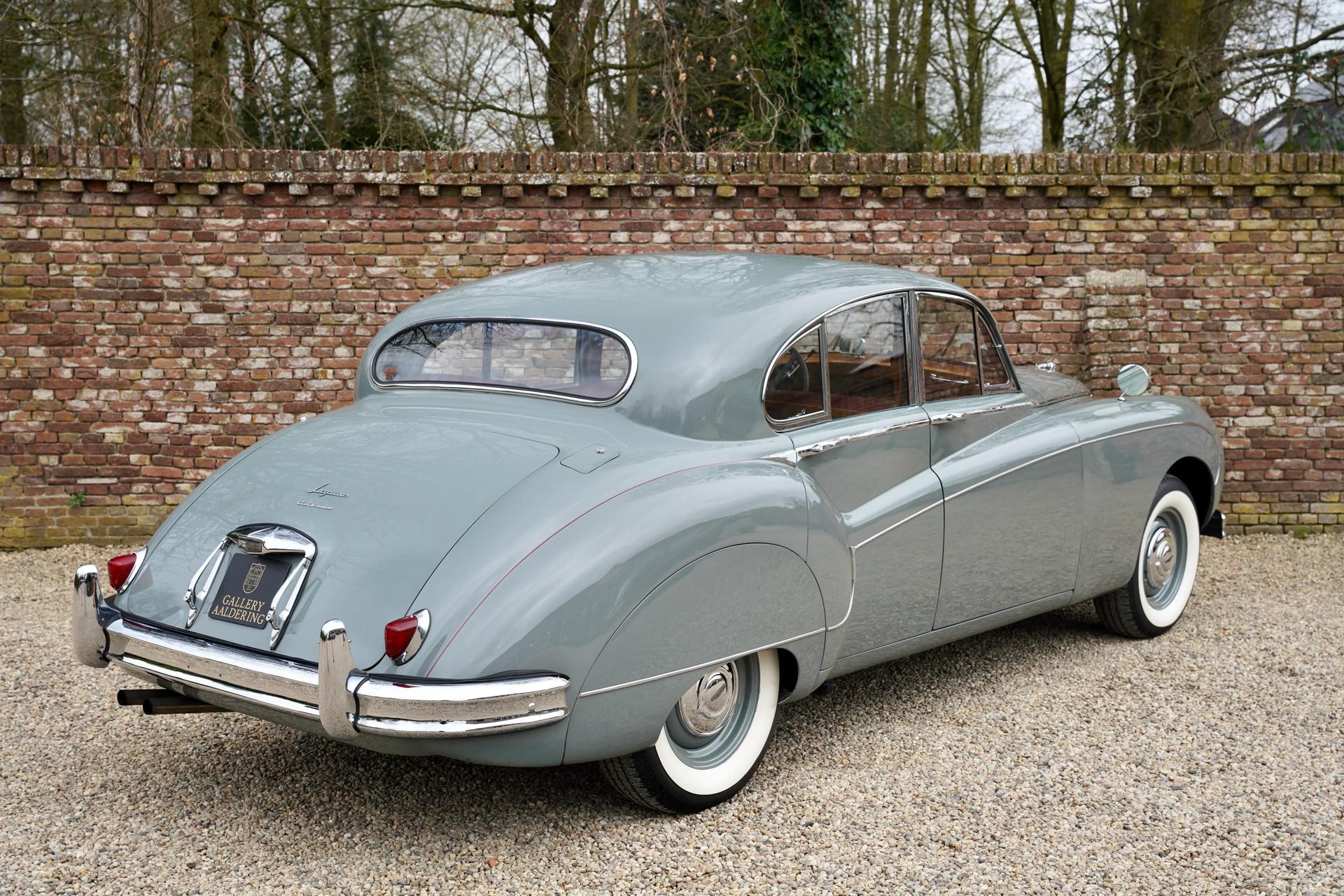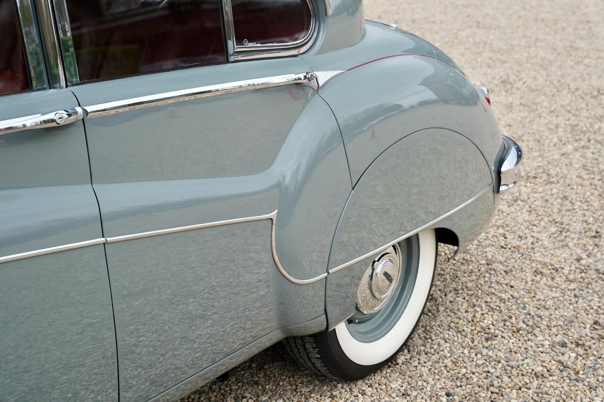 And you feel that the moment you start it up and take off. The 3.8-liter straight-six runs quietly and smoothly, the automatic gearbox shifts without hesitation, and the car has that solid, composed feel that defines a proper Jaguar. And then there's the added bonus: factory air conditioning and a sliding sunroof. In a 1959 model. A real treat, if you ask us.