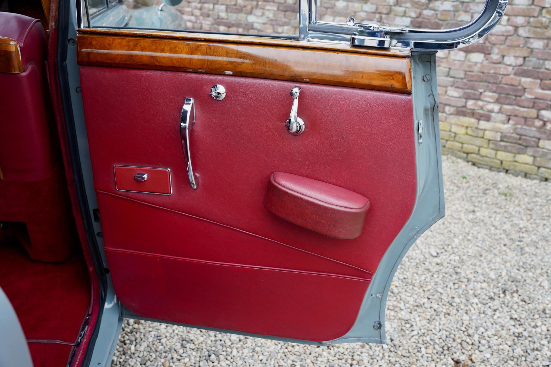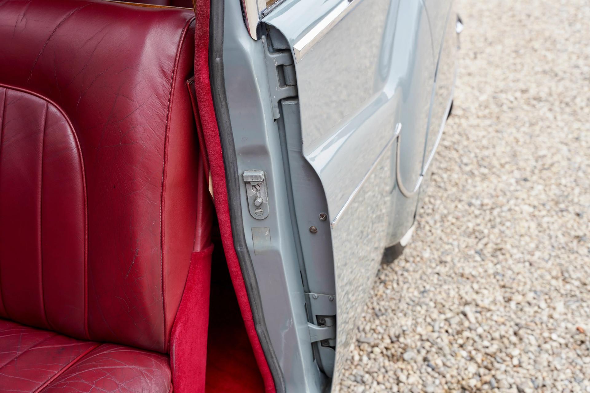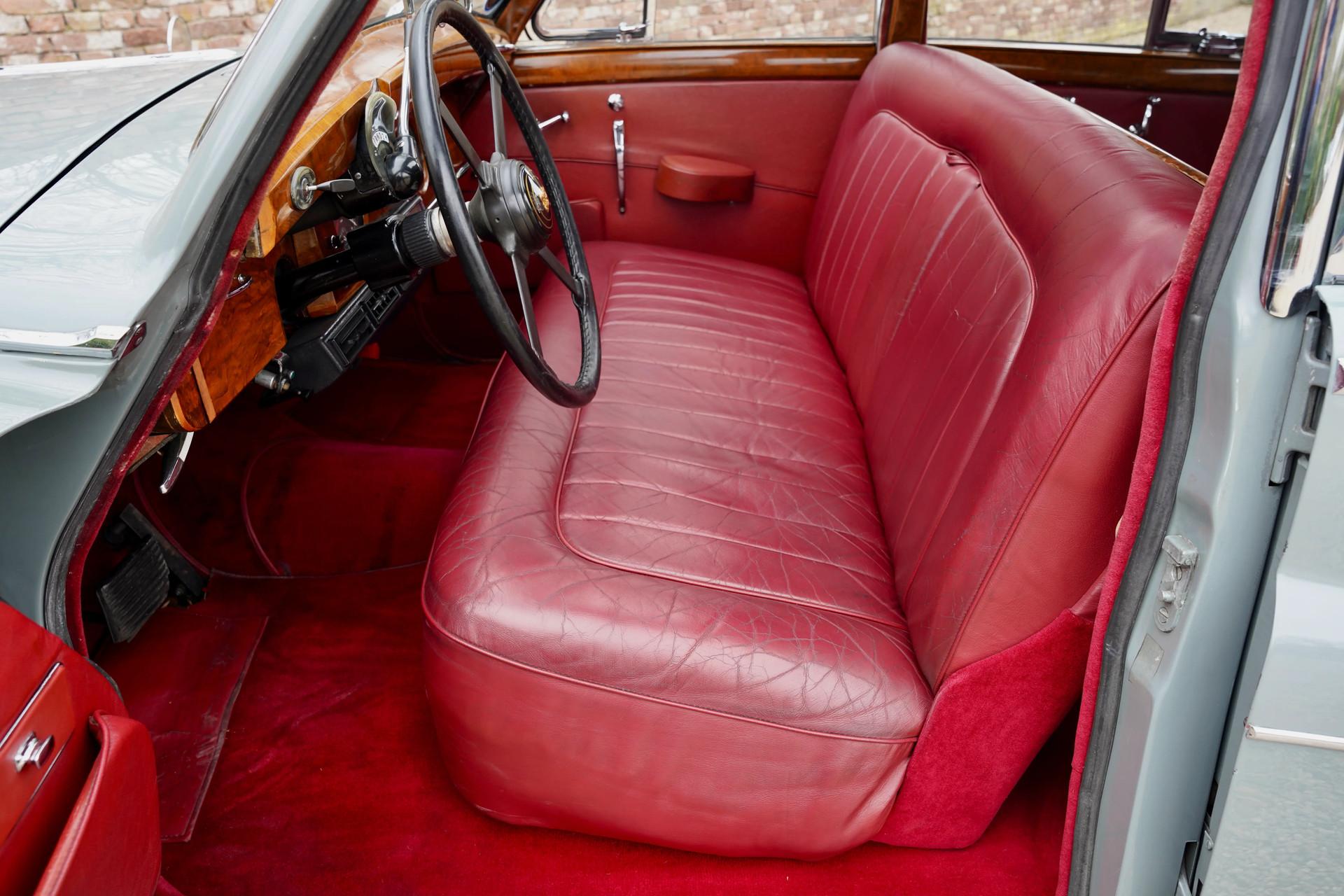 This particular MK IX is finished in Cornish Grey, a sophisticated shade that contrasts beautifully with its red leather interior. It's a color combination that captures the charm of the 1950s perfectly. Step inside and you're welcomed by a beautifully maintained cabin, rich in the unmistakable atmosphere of a classic Jaguar: wood, leather, space, and serenity.
