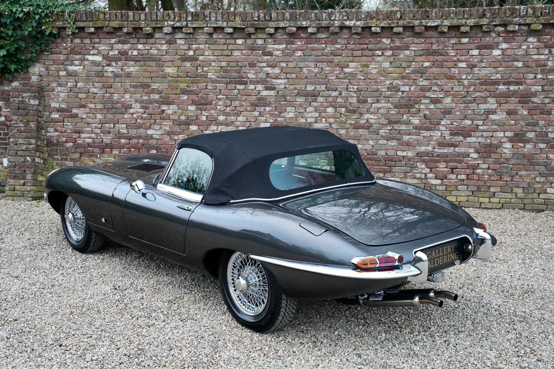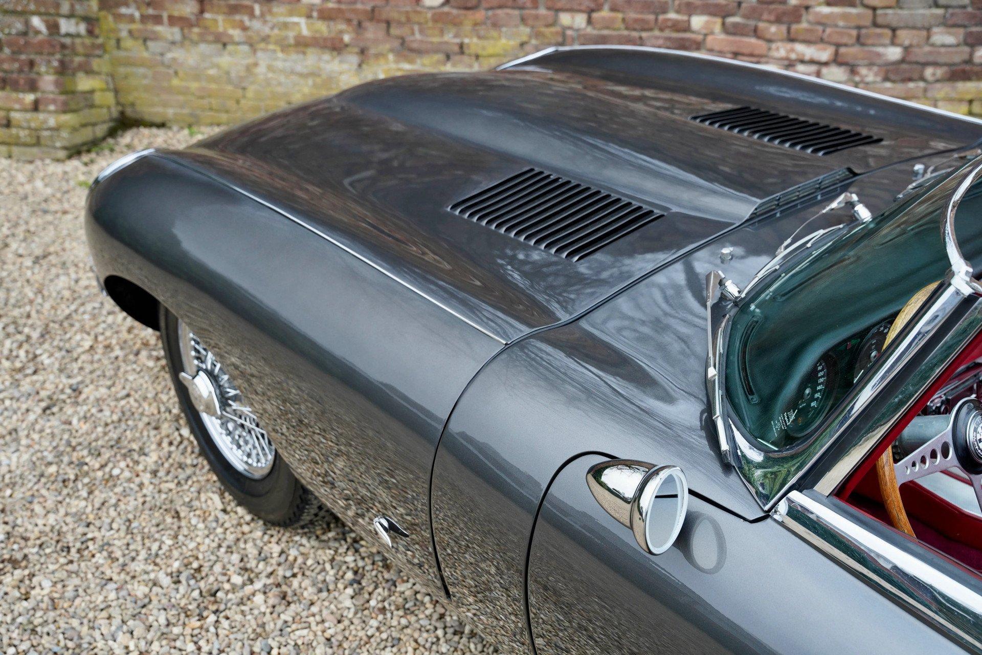 You know what's special? A Jaguar E-Type with one of those rare details only true connoisseurs appreciate: the outside bonnet locks. These external hood latches were exclusive to the very first E-Types to roll off the line in 1961. Fewer than 500 were ever built, making this a genuine collector's gem.
