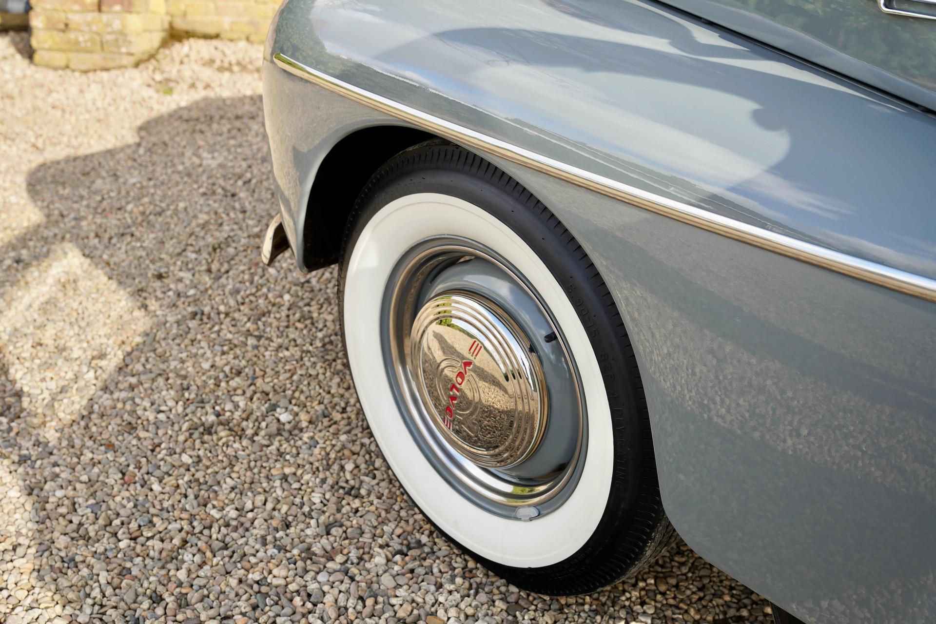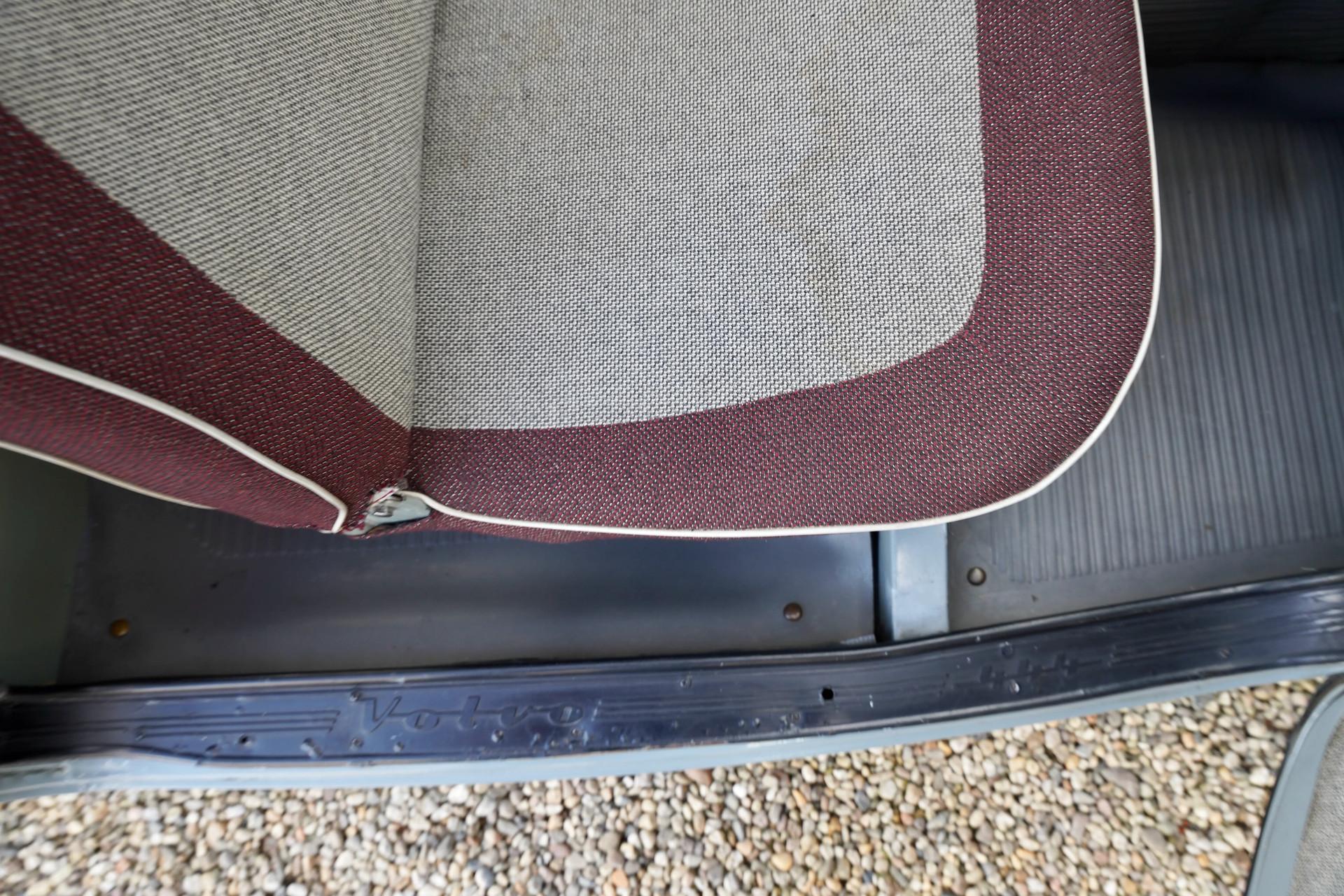 This particular example has had just three owners since 1956 — an incredibly rare find. Over all those years, the car has been cherished, and its neat condition reflects that. As for documentation? Everything is in perfect order. The car comes with photos of the restoration, invoices, and confirmation from the Volvo Heritage Register certifying that this is a matching numbers and matching colors example.