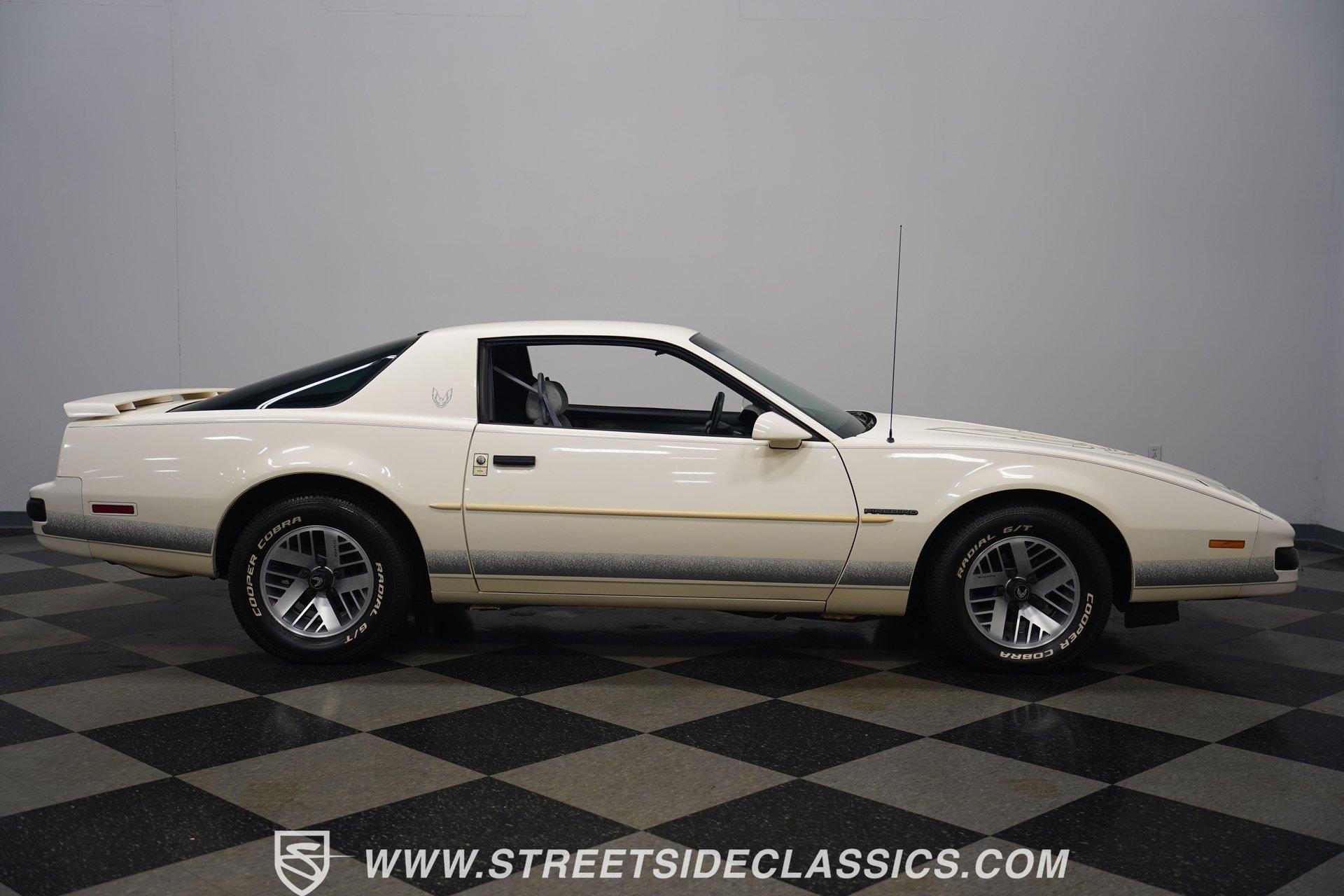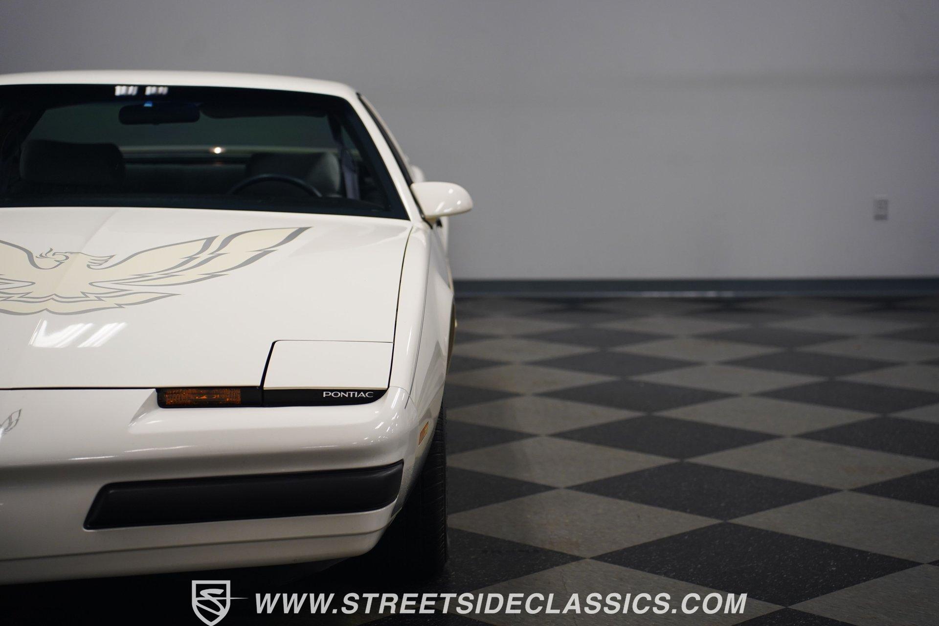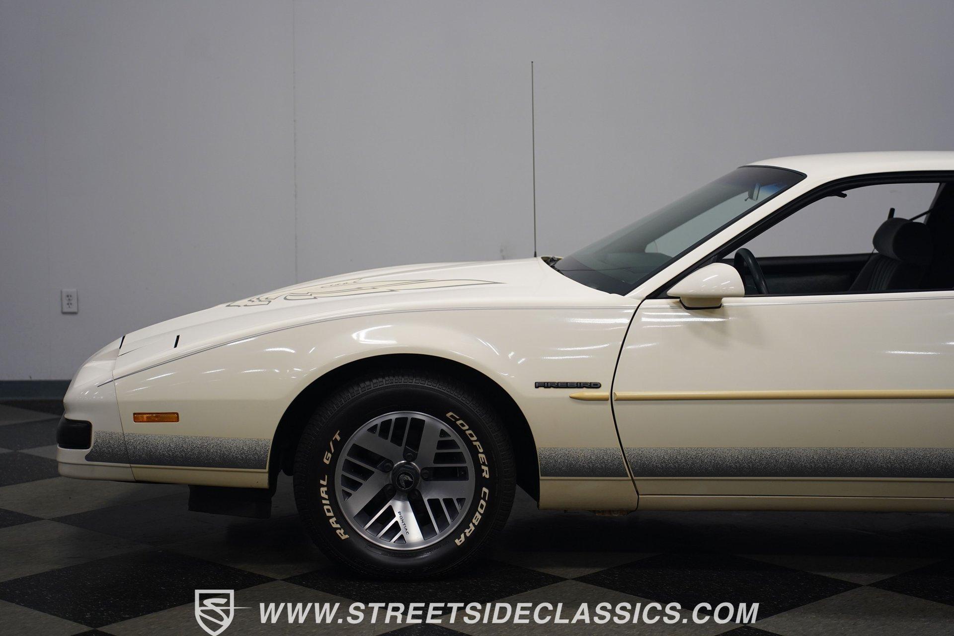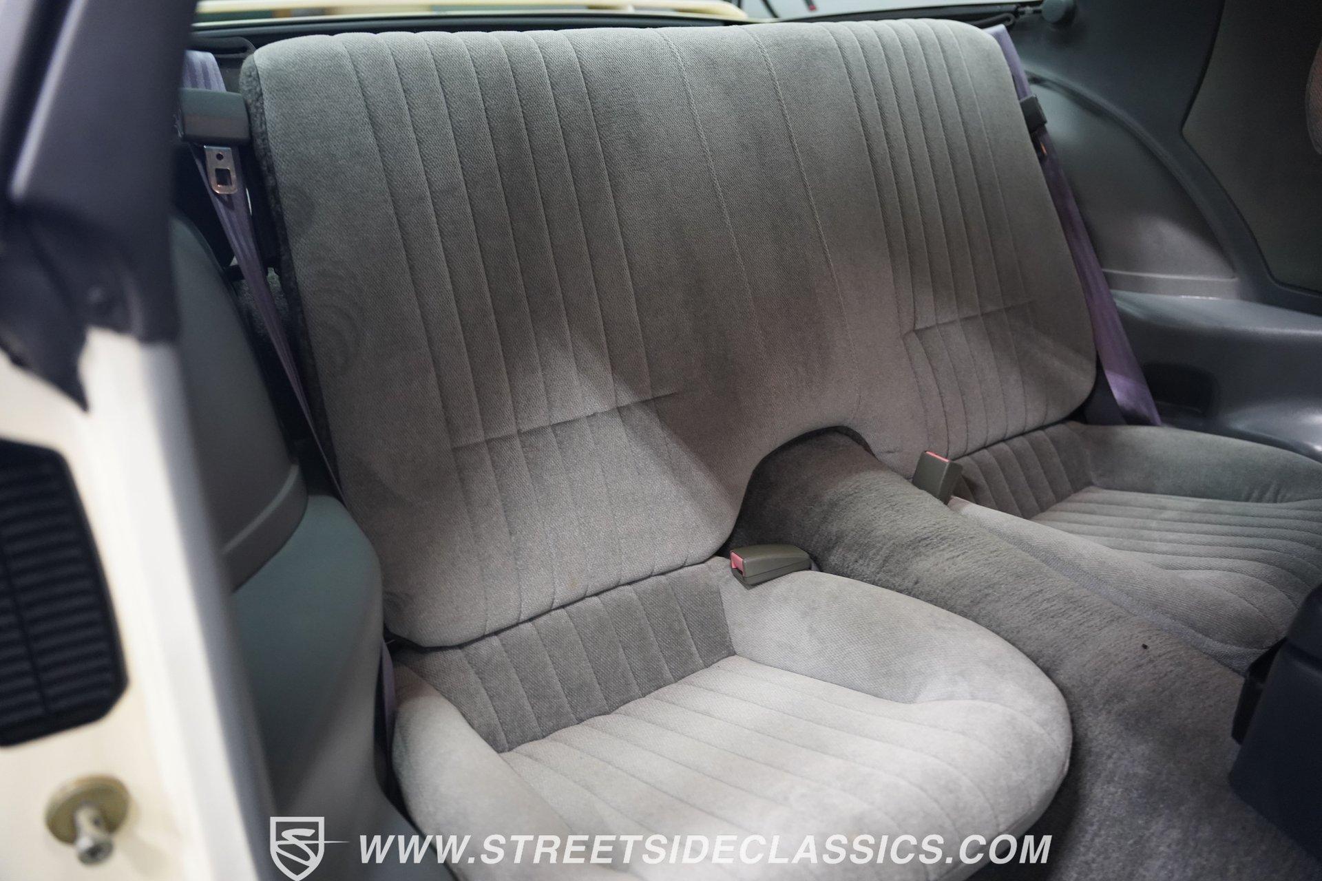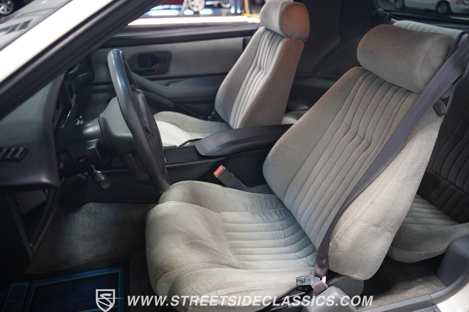 Unmistakable American muscle defines this 1990 Pontiac Firebird, dressed in factory white paint with silver decals that accentuate its aerodynamic profile. The clean body lines maintain their original showroom appeal with proper panel gaps and those signature heavy doors that close with authority. Original factory-correct 15-inch wheels wrapped in 235/60R15 tires sit perfectly in the wheel wells, giving this Firebird a planted stance. The classic silhouette with its long hood and short deck creates a balanced proportion that made these third-generation F-bodies an automotive icon of the era. The medium dark gray cloth interior remains remarkably intact with minimal signs of age. The front bucket seats show well, while the rear seats appear almost unused. Factory gauges display clearly against the uncracked dash surface. Gray door panels coordinate seamlessly with the seats and carpet, creating a cohesive cabin aesthetic. The factory floor shifter and center console add a sporty feel to the driving position. The AM/FM cassette player stands ready to play your favorite 90s tracks while the air conditioning and power steering ensure driving comfort. The 3.1L V6 engine pairs with a 700R4 4-speed automatic transmission to deliver smooth acceleration and highway cruising ability. The engine bay maintains a clean factory appearance with all components properly placed. A single-to-dual exhaust system with quiet flow mufflers provides just the right sound without being excessive. Power disc brakes up front offer solid stopping capability. The updated AC system has been converted to modern R134a refrigerant. Coil spring suspension front and rear delivers a balanced ride quality that feels solid on the road. HIGHLIGHTS: 3.1L V6 Engine 700R4 4-Speed Automatic Transmission Fuel Injection Power Front Disc Brakes Coil Spring Suspension Single to Dual Exhaust Quiet Flow Mufflers R134a AC Conversion White Paint with Silver Decals 15" Wheels with 235/60R15 Tires Medium Dark Gray Interior with Bucket Seats Floor Shift Center Console Power Steering Air Conditioning AM/FM Cassette Player 5-Digit Odometer Dealer Invoice Warranty Card This 1990 Pontiac Firebird represents pure 90s American performance with its clean original condition, V6 power, and unmolested appearance. A true survivor that gives you authentic third-generation F-body experience without modern modifications or alterations. Call today!
