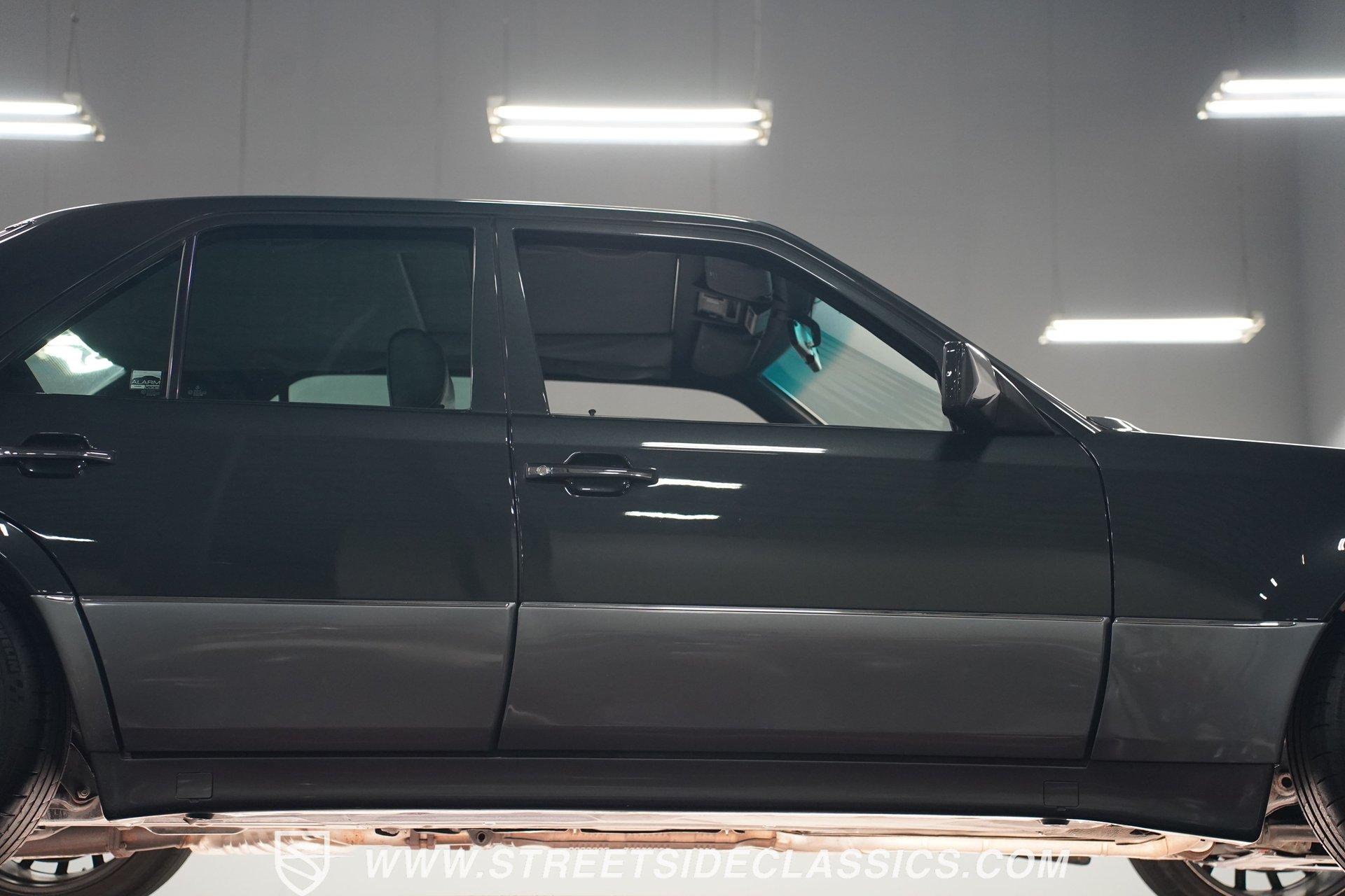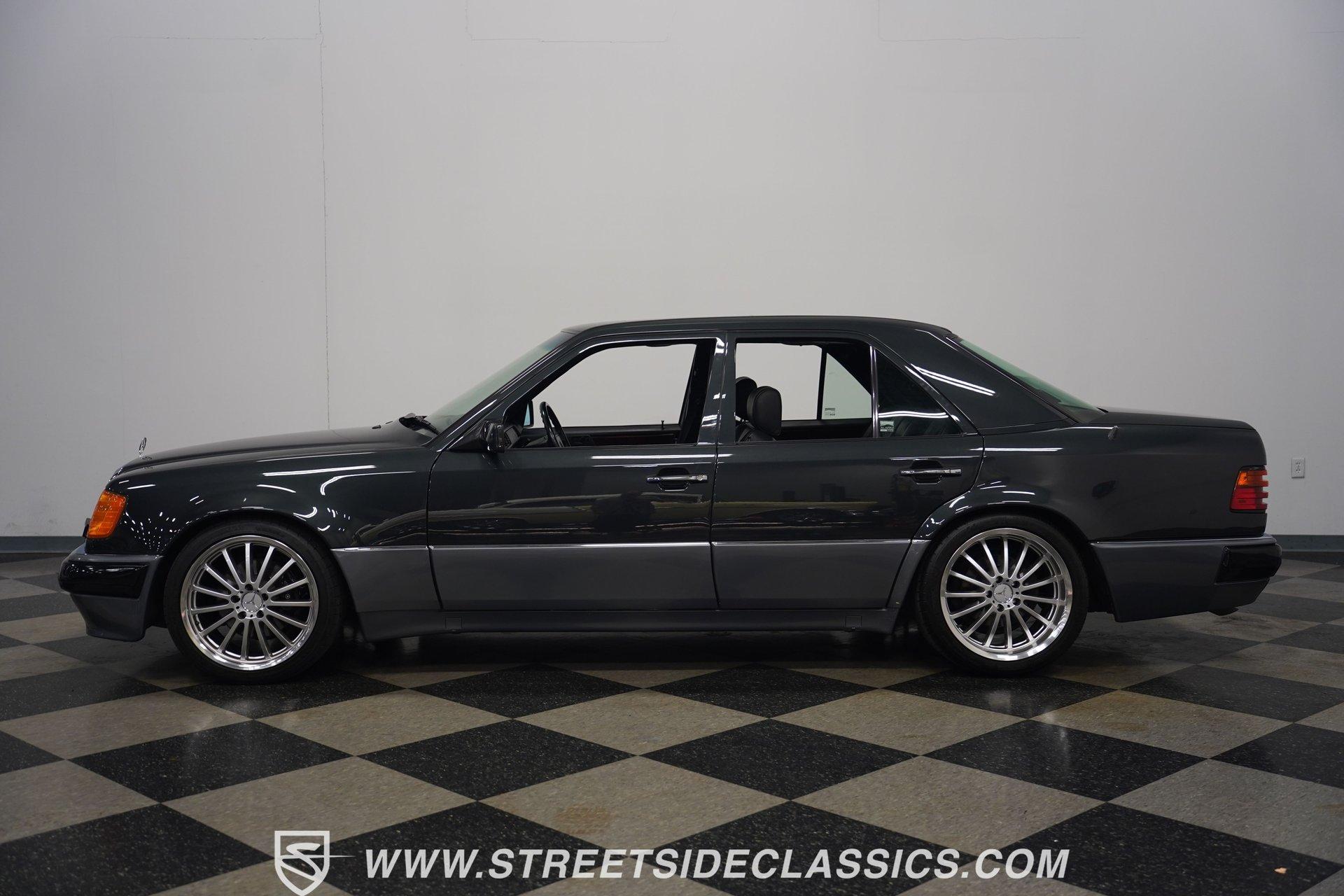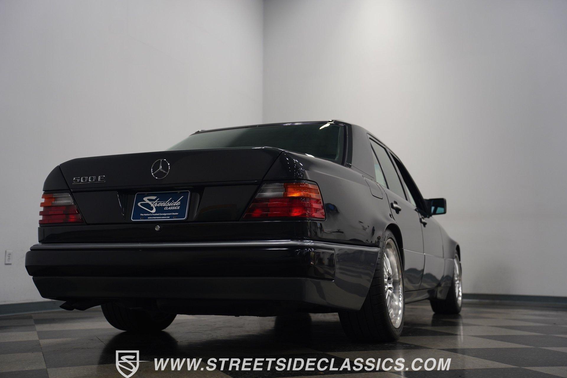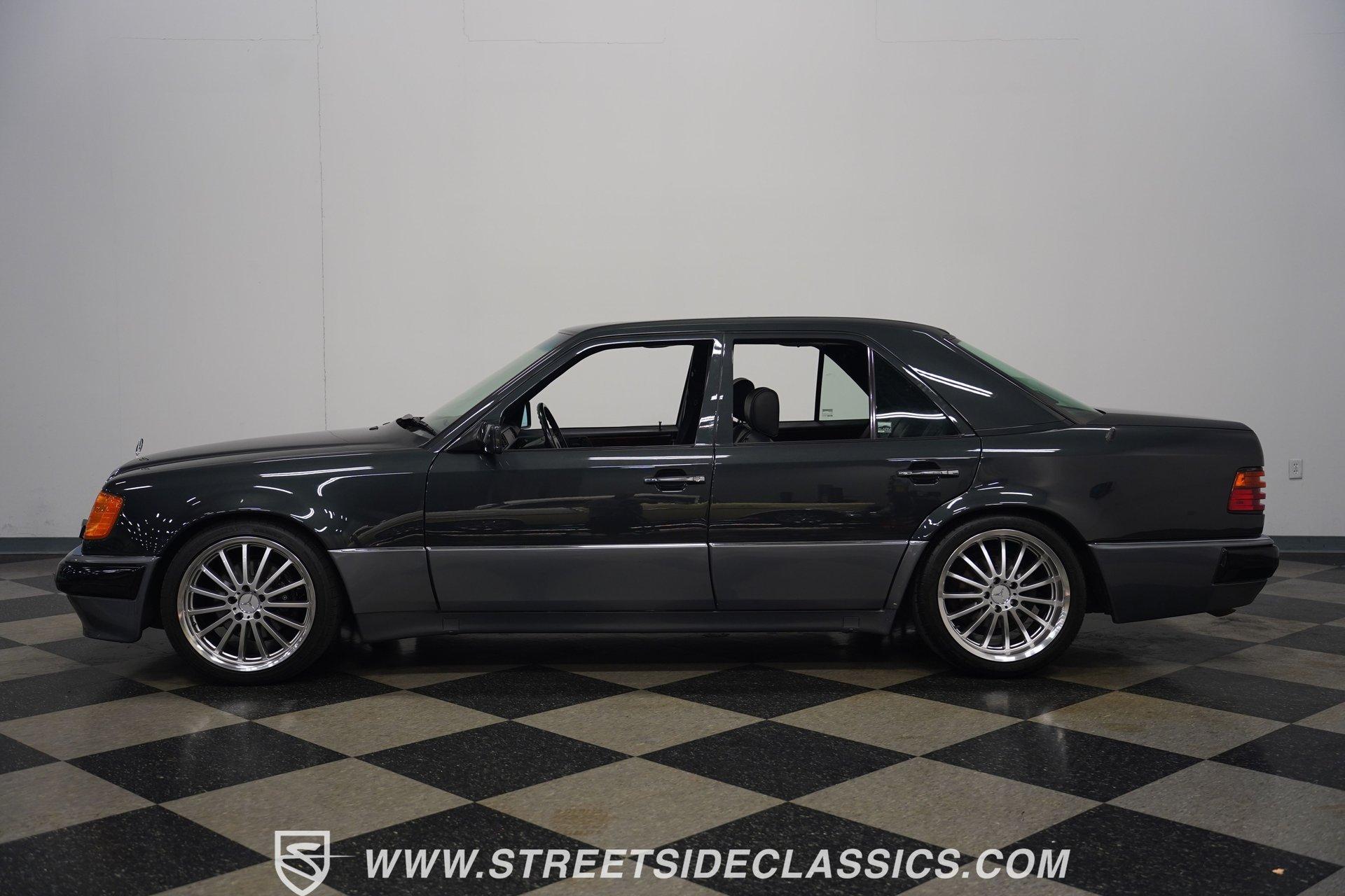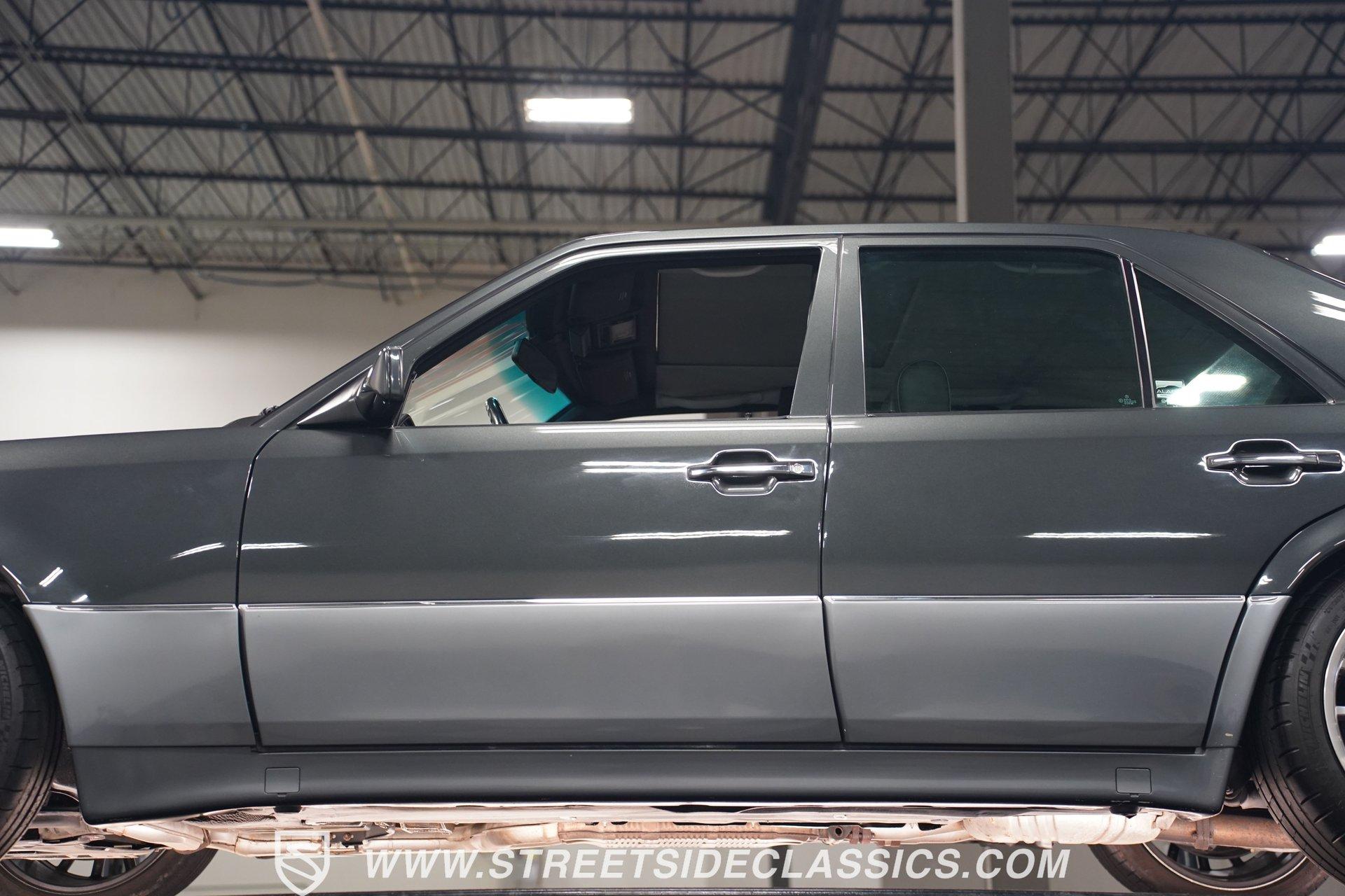 Born from a unique collaboration between Mercedes-Benz and Porsche, this 1993 Mercedes-Benz 500E displays its black exterior with authoritative composure. The sleek four-door silhouette wears its factory paint with distinction, accentuated by aftermarket 18" multi-spoke wheels - 18" front and 18" rear - paired with Michelin Pilot Super Sport tires sized 235/40ZR18 front and 265/35ZR18 rear. Lowered on HR springs, this German performance sedan maintains excellent panel gaps and glass clarity throughout, giving it a planted, athletic appearance without sacrificing its Mercedes-Benz identity. The black leather interior reflects Mercedes-Benz's attention to detail in this era. The bucket seats with center console provide both support and luxury, showing minimal wear after 49,704 actual miles. An aftermarket radio adds modern audio capability while retaining the classic look of the cabin. The woodgrain trim remains in excellent condition throughout, and the instruments display with crisp clarity against the dark dashboard. The clean interior spaces maintain their original factory sophistication. The 5.0 Liter V8 engine sends its considerable output through a 4-speed automatic transmission. The engine bay presents exceptionally well, maintaining a factory-correct appearance. Four-wheel power disc brakes provide strong stopping capability, working in concert with the HR lowering springs that improve handling dynamics. The dual exhaust system maintains factory specifications, allowing this German performance sedan to breathe effectively. With only 49,704 actual miles, all mechanical systems operate with German precision. HIGHLIGHTS: 5.0 Liter V8 Engine 4 Speed Automatic Transmission Electronic Fuel Injection HR Lowering Springs Power Disc Brakes Four-Wheel Disc Brakes Dual Exhaust Original Engine 49,704 Actual Miles Coil Suspension with Shocks Black Exterior Good Glass and Gaps 18" Multi-Spoke Wheels 235/40ZR18 Front, 265/35ZR18 Rear Michelin Pilot Super Sport Tires Black Leather Interior with Bucket Seats Console Shifter Center Console Aftermarket Radio with AM/FM/AUX Power Steering Air Conditioning Woodgrain Trim Clear Gauges Limited Production Model Only 1,000 Miles Added Since 2020 Engineered by Porsche and wearing the Mercedes-Benz star, this 1993 500E combines German performance with luxury. With low mileage, well-maintained systems, and its distinctive presence, this collaboration between automotive giants deserves your attention. Call today!