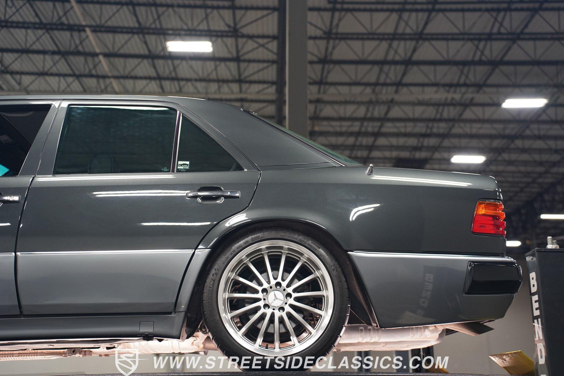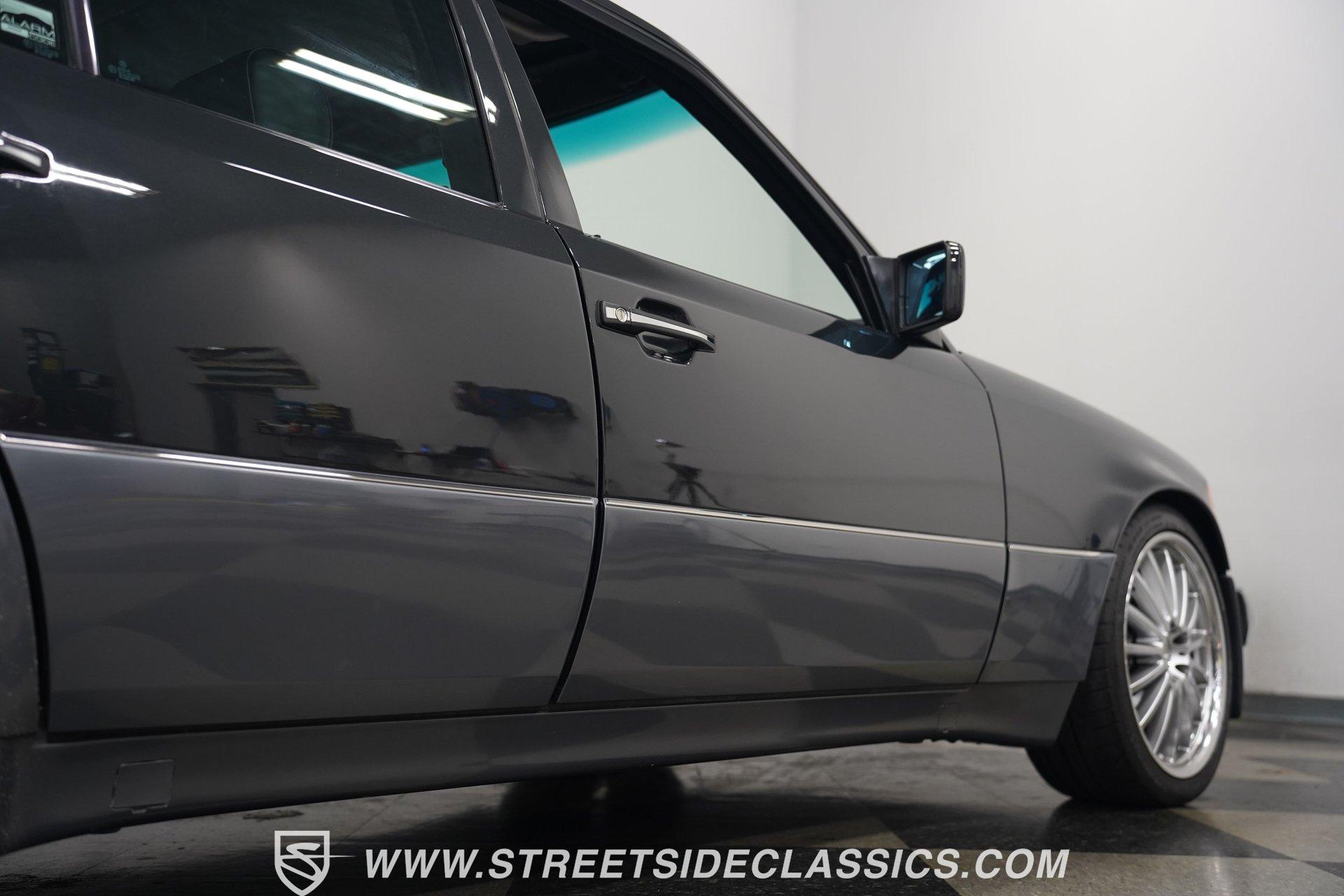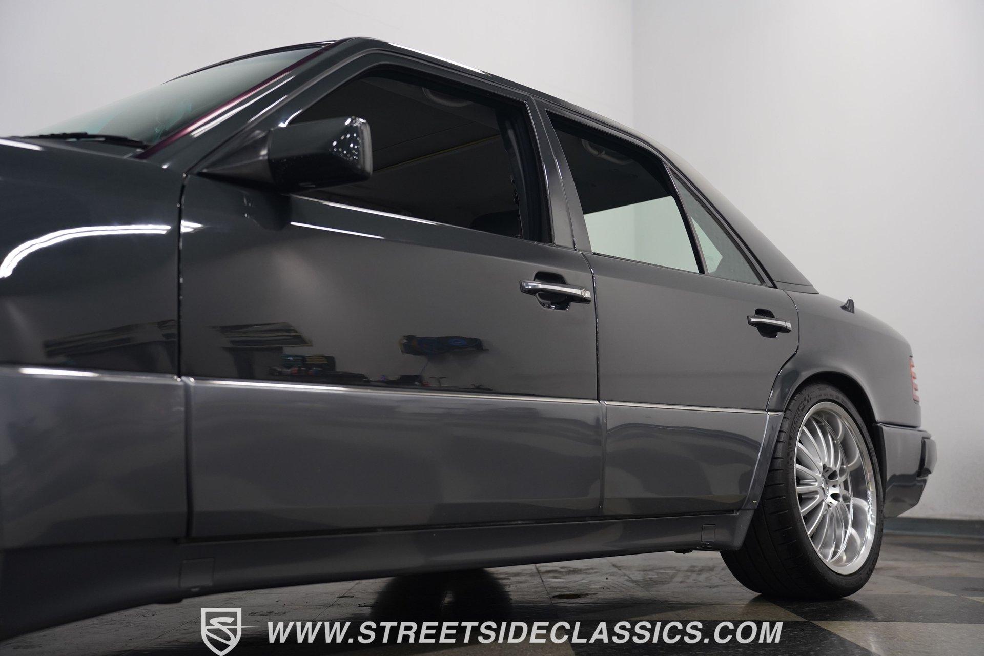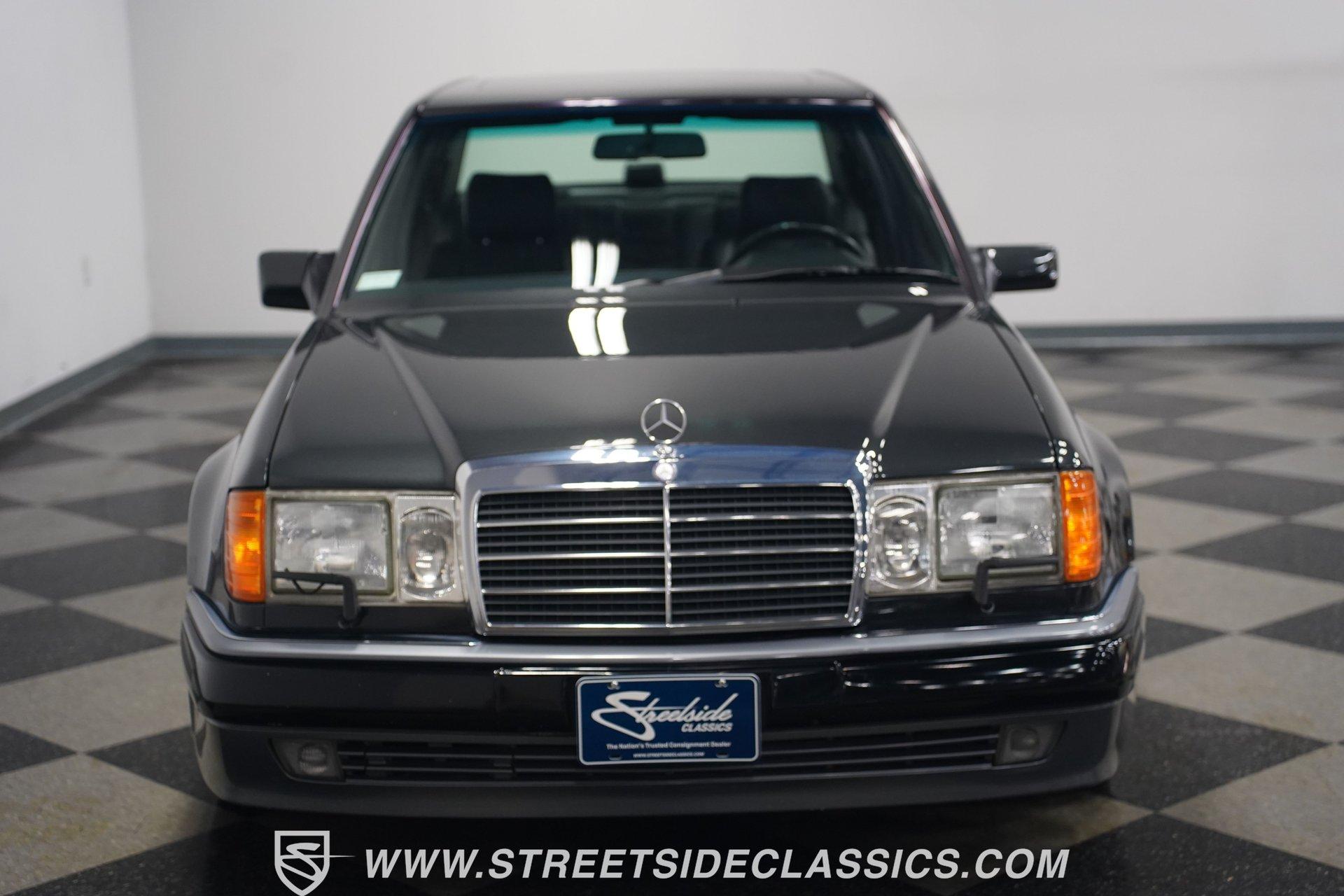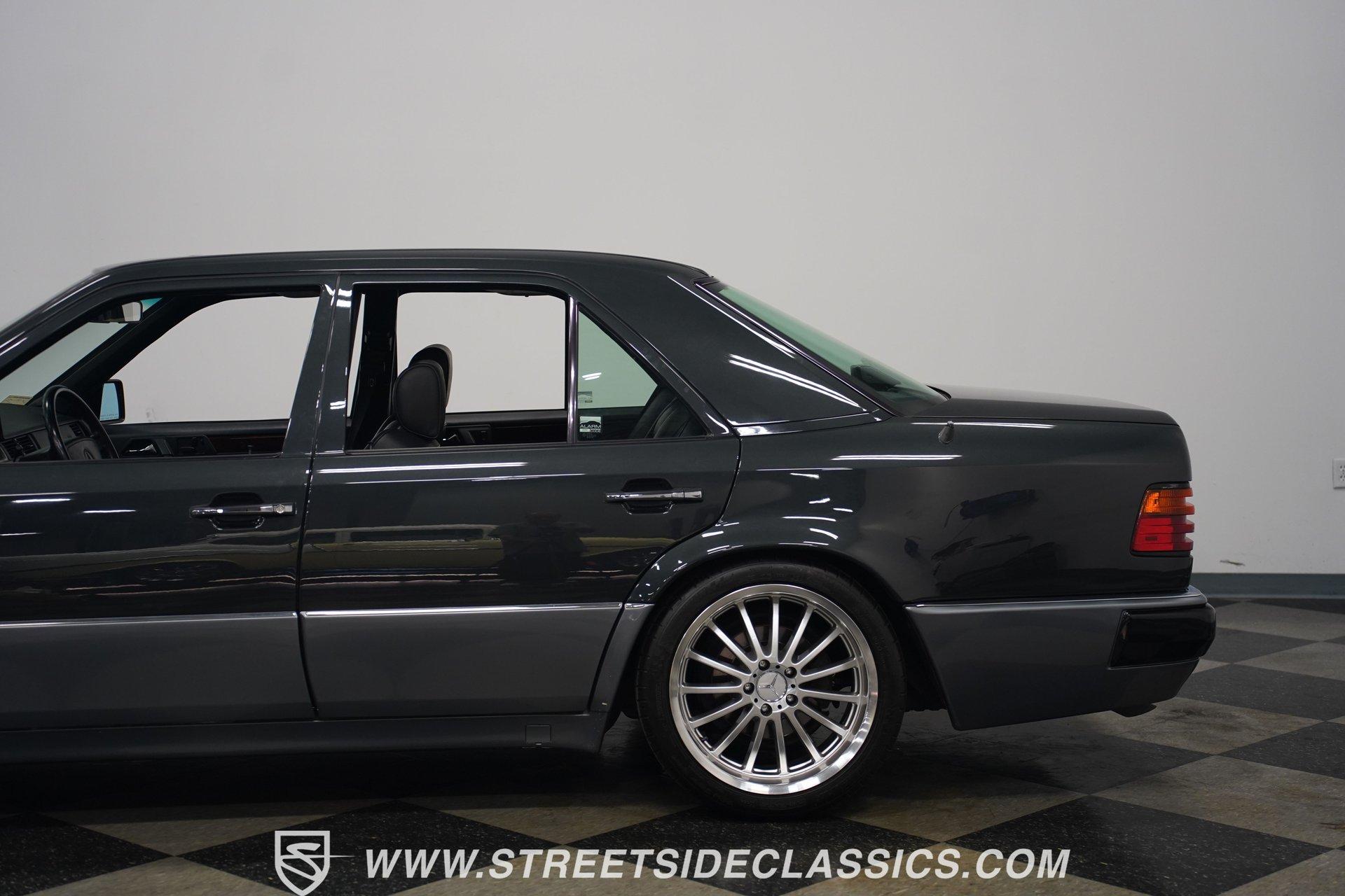 Born from a unique collaboration between Mercedes-Benz and Porsche, this 1993 Mercedes-Benz 500E displays its black exterior with authoritative composure. The sleek four-door silhouette wears its factory paint with distinction, accentuated by aftermarket 18" multi-spoke wheels - 18" front and 18" rear - paired with Michelin Pilot Super Sport tires sized 235/40ZR18 front and 265/35ZR18 rear. Lowered on HR springs, this German performance sedan maintains excellent panel gaps and glass clarity throughout, giving it a planted, athletic appearance without sacrificing its Mercedes-Benz identity. The black leather interior reflects Mercedes-Benz's attention to detail in this era. The bucket seats with center console provide both support and luxury, showing minimal wear after 49,704 actual miles. An aftermarket radio adds modern audio capability while retaining the classic look of the cabin. The woodgrain trim remains in excellent condition throughout, and the instruments display with crisp clarity against the dark dashboard. The clean interior spaces maintain their original factory sophistication. The 5.0 Liter V8 engine sends its considerable output through a 4-speed automatic transmission. The engine bay presents exceptionally well, maintaining a factory-correct appearance. Four-wheel power disc brakes provide strong stopping capability, working in concert with the HR lowering springs that improve handling dynamics. The dual exhaust system maintains factory specifications, allowing this German performance sedan to breathe effectively. With only 49,704 actual miles, all mechanical systems operate with German precision. HIGHLIGHTS: 5.0 Liter V8 Engine 4 Speed Automatic Transmission Electronic Fuel Injection HR Lowering Springs Power Disc Brakes Four-Wheel Disc Brakes Dual Exhaust Original Engine 49,704 Actual Miles Coil Suspension with Shocks Black Exterior Good Glass and Gaps 18" Multi-Spoke Wheels 235/40ZR18 Front, 265/35ZR18 Rear Michelin Pilot Super Sport Tires Black Leather Interior with Bucket Seats Console Shifter Center Console Aftermarket Radio with AM/FM/AUX Power Steering Air Conditioning Woodgrain Trim Clear Gauges Limited Production Model Only 1,000 Miles Added Since 2020 Engineered by Porsche and wearing the Mercedes-Benz star, this 1993 500E combines German performance with luxury. With low mileage, well-maintained systems, and its distinctive presence, this collaboration between automotive giants deserves your attention. Call today!