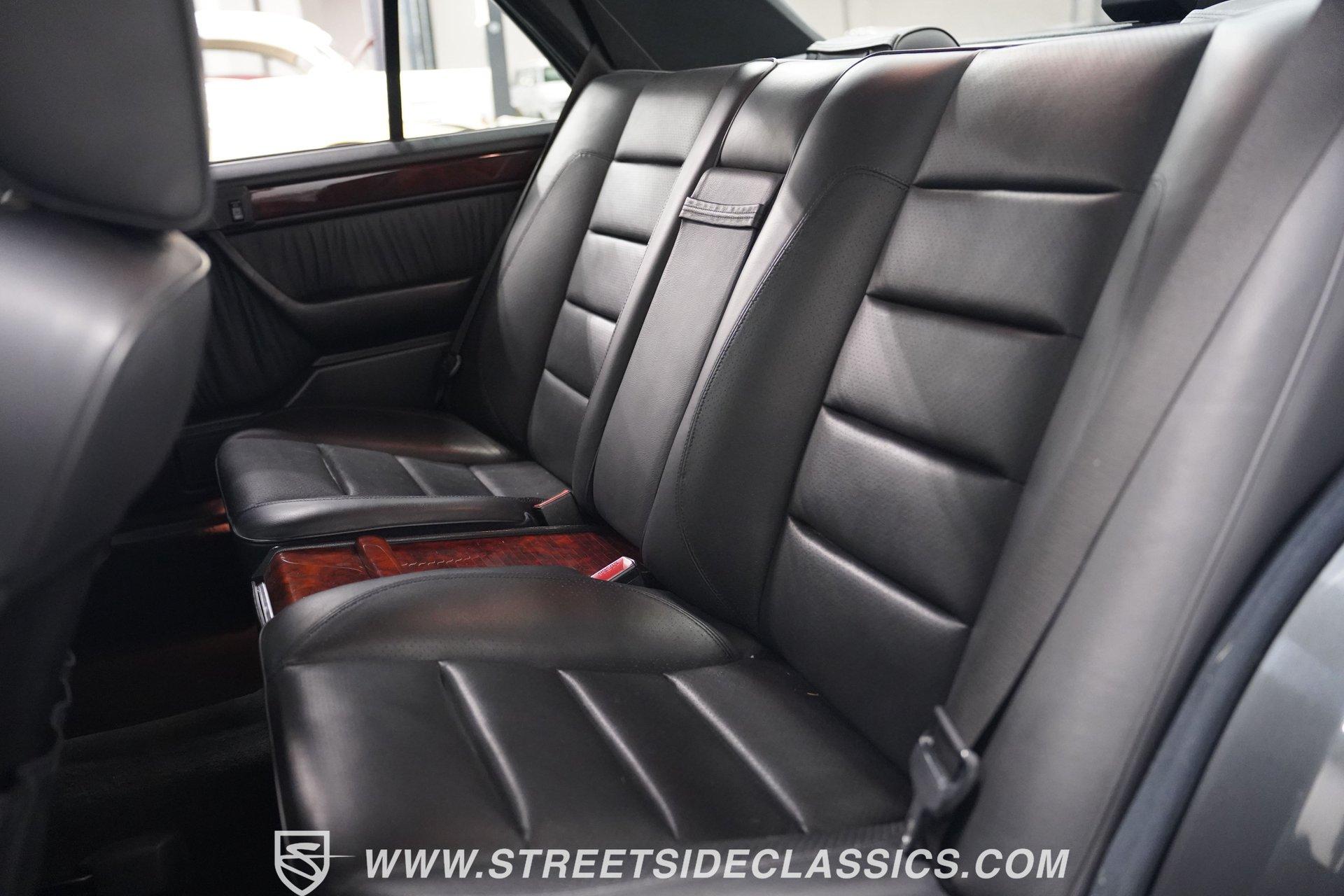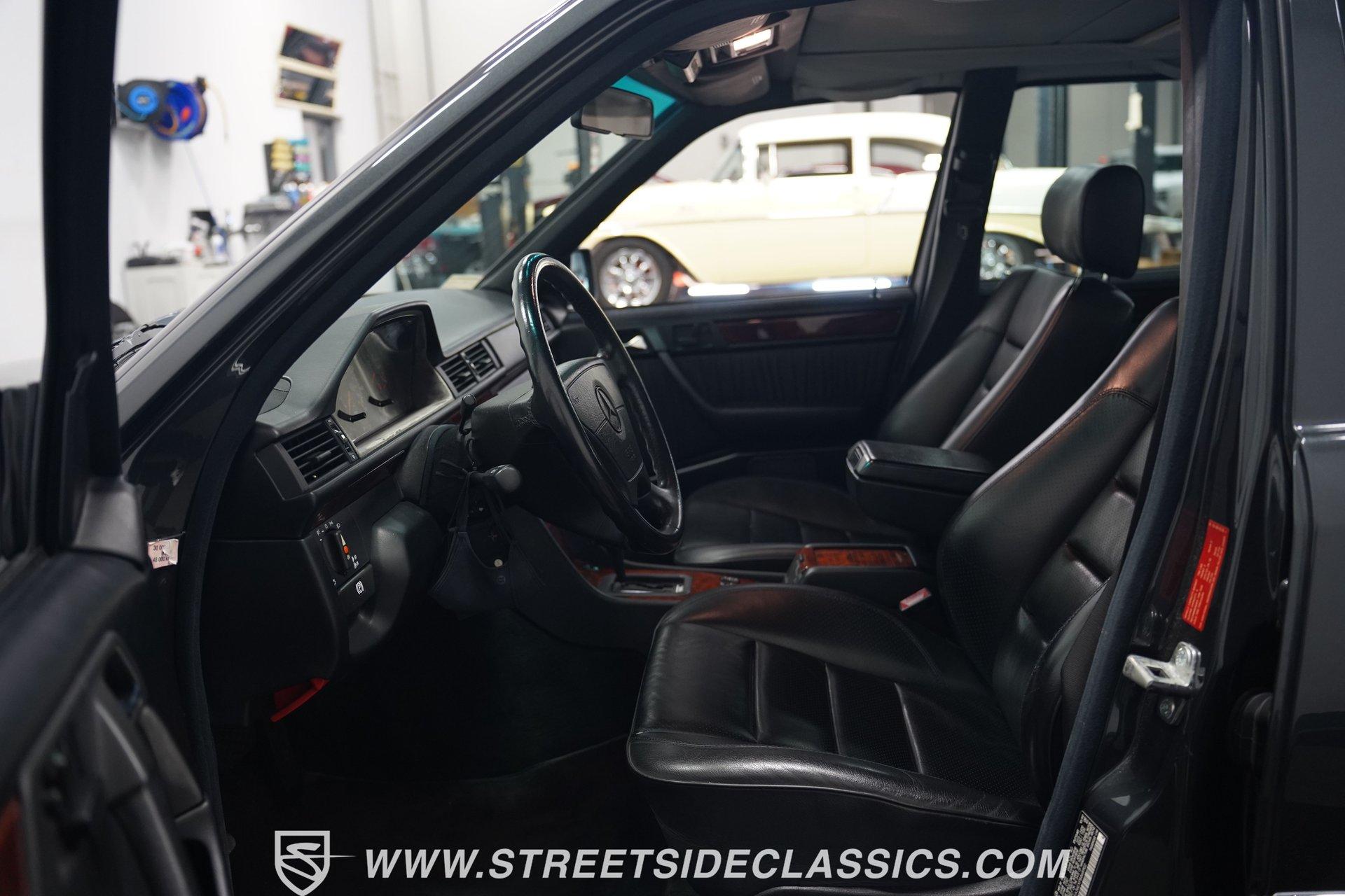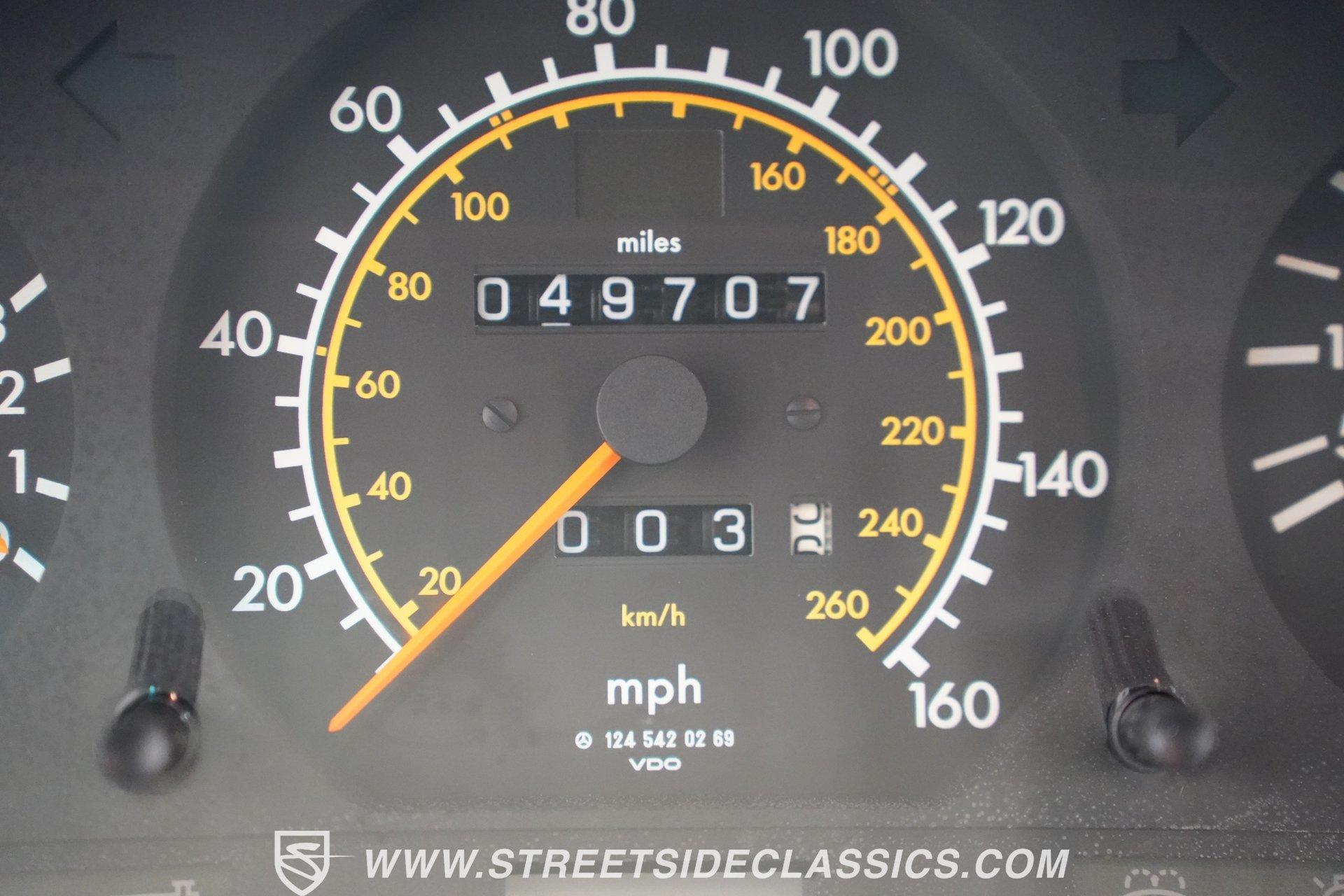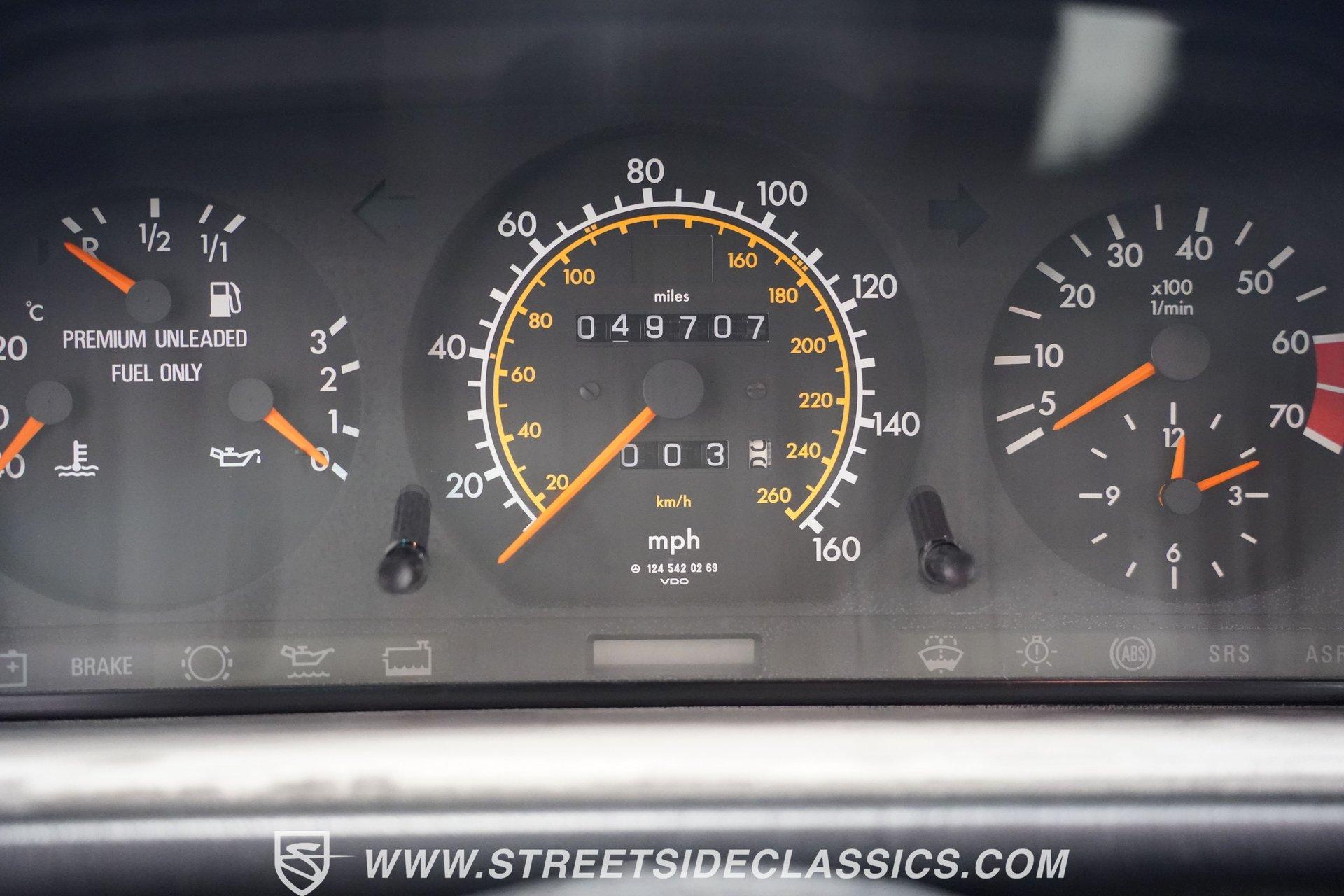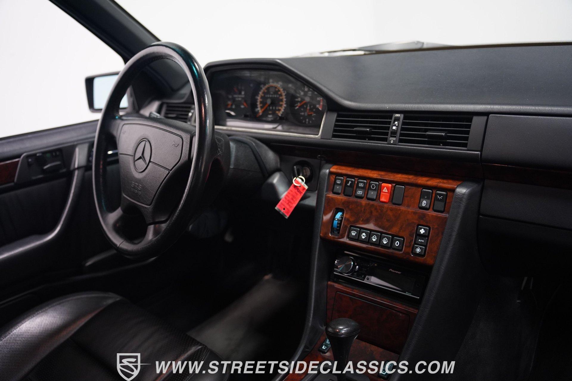 Born from a unique collaboration between Mercedes-Benz and Porsche, this 1993 Mercedes-Benz 500E displays its black exterior with authoritative composure. The sleek four-door silhouette wears its factory paint with distinction, accentuated by aftermarket 18" multi-spoke wheels - 18" front and 18" rear - paired with Michelin Pilot Super Sport tires sized 235/40ZR18 front and 265/35ZR18 rear. Lowered on HR springs, this German performance sedan maintains excellent panel gaps and glass clarity throughout, giving it a planted, athletic appearance without sacrificing its Mercedes-Benz identity. The black leather interior reflects Mercedes-Benz's attention to detail in this era. The bucket seats with center console provide both support and luxury, showing minimal wear after 49,704 actual miles. An aftermarket radio adds modern audio capability while retaining the classic look of the cabin. The woodgrain trim remains in excellent condition throughout, and the instruments display with crisp clarity against the dark dashboard. The clean interior spaces maintain their original factory sophistication. The 5.0 Liter V8 engine sends its considerable output through a 4-speed automatic transmission. The engine bay presents exceptionally well, maintaining a factory-correct appearance. Four-wheel power disc brakes provide strong stopping capability, working in concert with the HR lowering springs that improve handling dynamics. The dual exhaust system maintains factory specifications, allowing this German performance sedan to breathe effectively. With only 49,704 actual miles, all mechanical systems operate with German precision. HIGHLIGHTS: 5.0 Liter V8 Engine 4 Speed Automatic Transmission Electronic Fuel Injection HR Lowering Springs Power Disc Brakes Four-Wheel Disc Brakes Dual Exhaust Original Engine 49,704 Actual Miles Coil Suspension with Shocks Black Exterior Good Glass and Gaps 18" Multi-Spoke Wheels 235/40ZR18 Front, 265/35ZR18 Rear Michelin Pilot Super Sport Tires Black Leather Interior with Bucket Seats Console Shifter Center Console Aftermarket Radio with AM/FM/AUX Power Steering Air Conditioning Woodgrain Trim Clear Gauges Limited Production Model Only 1,000 Miles Added Since 2020 Engineered by Porsche and wearing the Mercedes-Benz star, this 1993 500E combines German performance with luxury. With low mileage, well-maintained systems, and its distinctive presence, this collaboration between automotive giants deserves your attention. Call today!