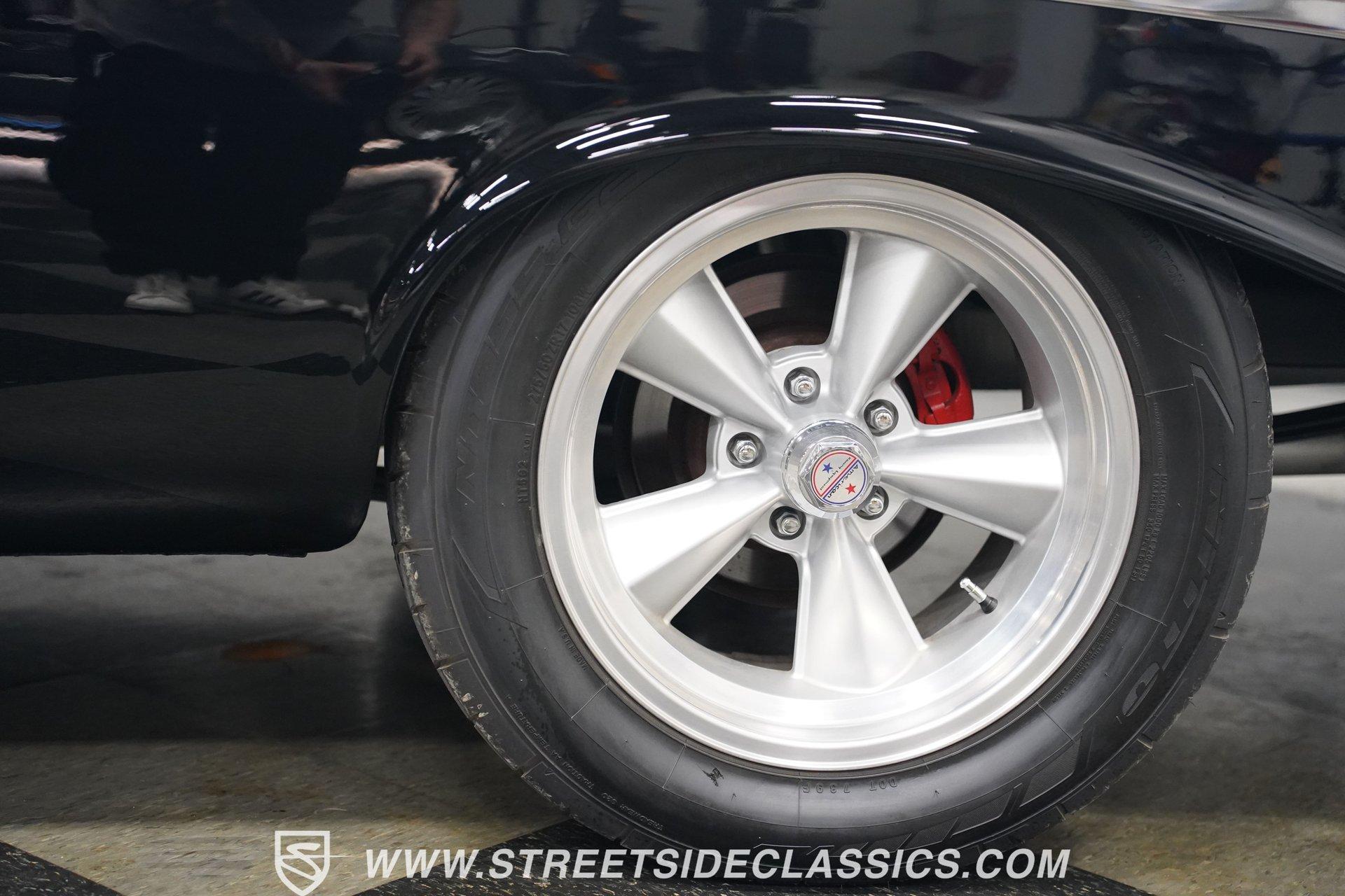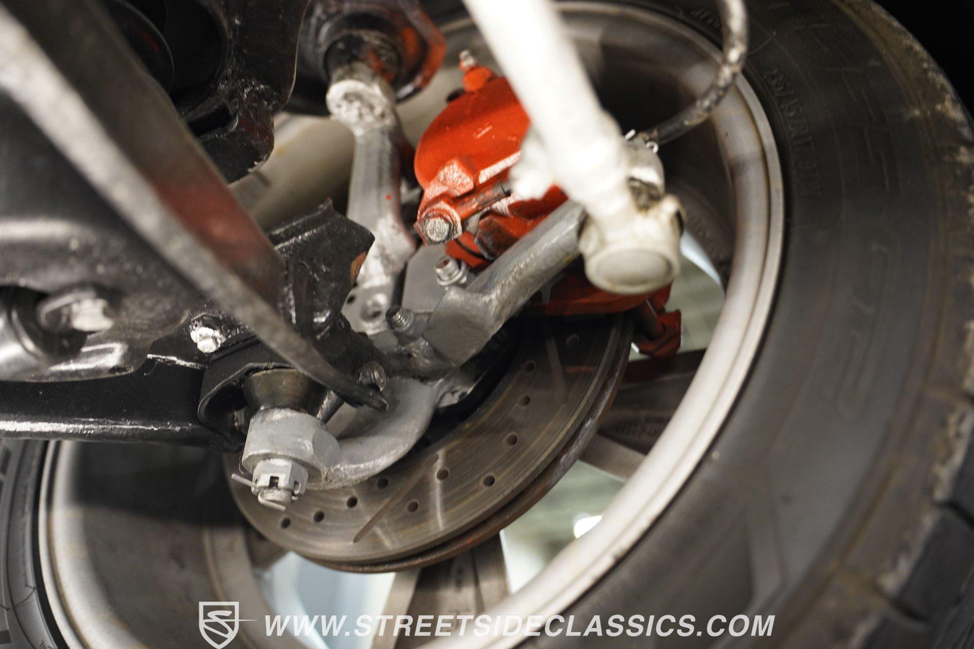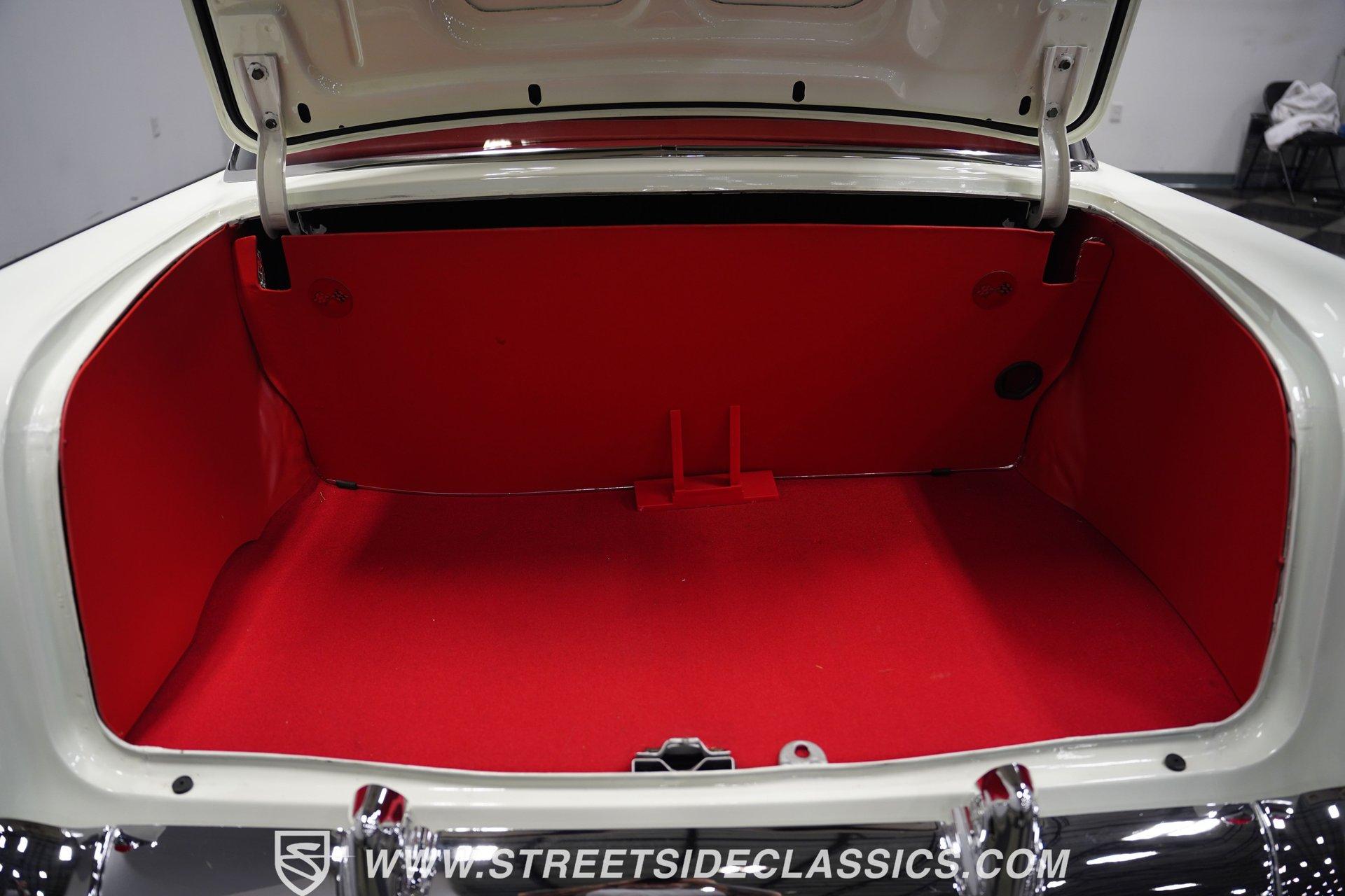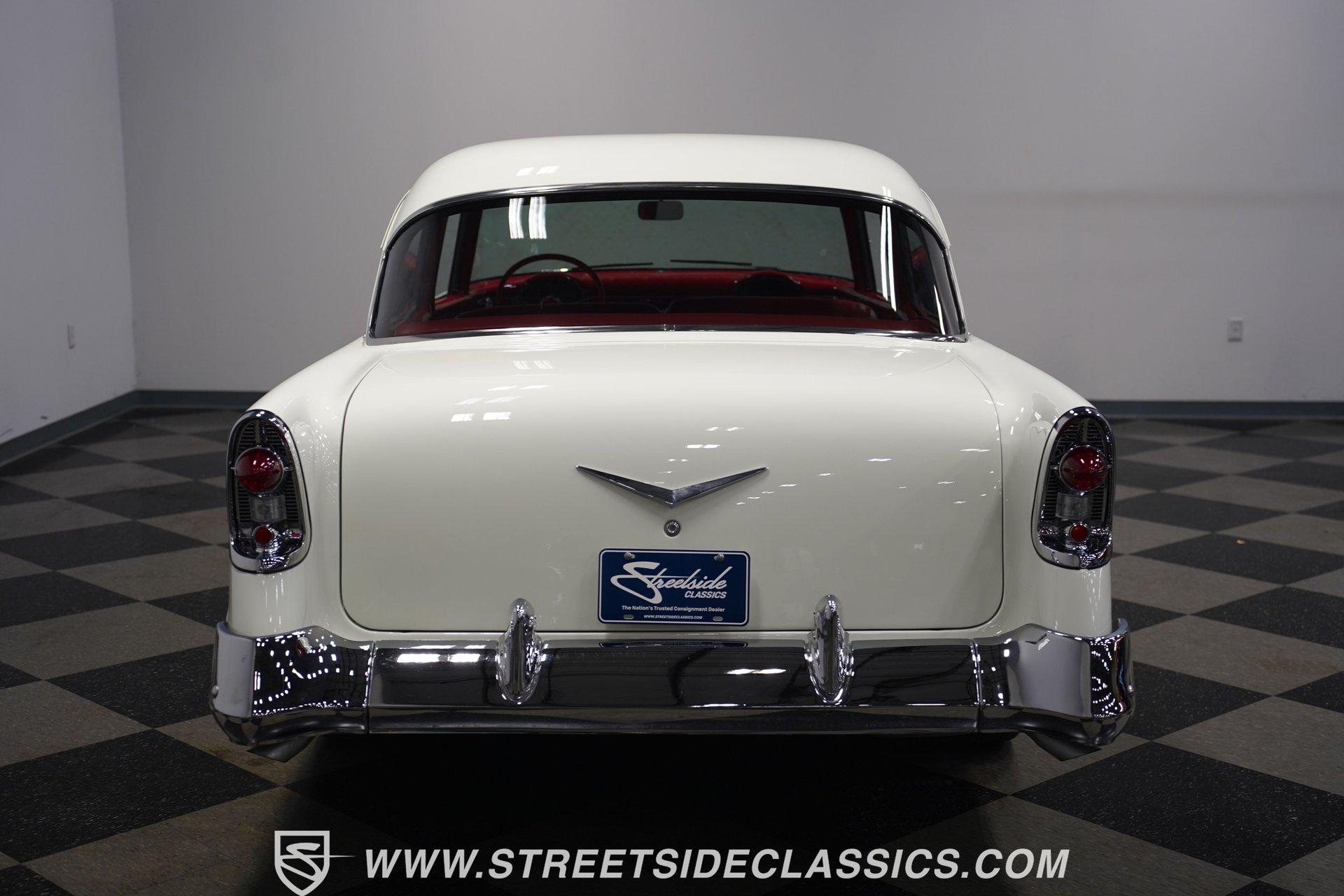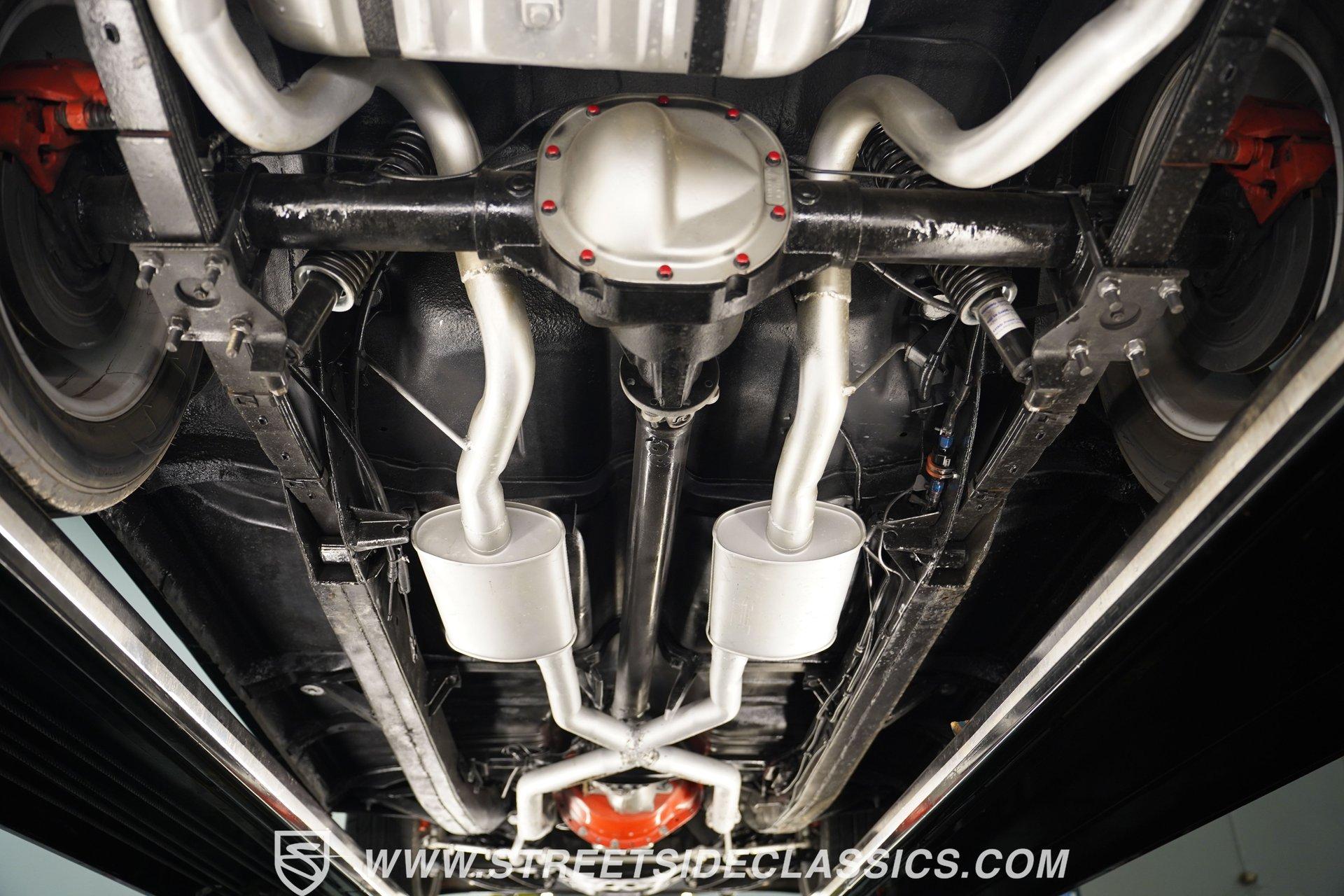 Frame-off built from the ground up, this 1956 Chevrolet 210 wears a bold two-tone finish with black covering the lower section and white across the roof. The 17-inch American Racing wheels fill the wheel wells perfectly, wrapped in 235/45ZR17 front and 275/50ZR17 rear tires for an aggressive road stance. Upgraded tri-bar headlights add modern illumination while maintaining the classic look. The brightwork gleams flawlessly against the contrasting paint while dual exhaust with an X-pipe exits the rear, giving onlookers something to admire from every angle. Red dominates the cabin with two-tone red and gray vinyl bench seats that add visual flair and comfort. Dakota Digital gauges offer clear readouts of vital stats while maintaining a period-correct appearance. The floor-mounted Hurst shifter controls the Muncie M20 four-speed manual with precision. A smaller radius steering wheel mounted on a tilt column improves control during maneuvers. The retro-style AM/FM/AUX stereo with Bluetooth plays your favorite tunes while Vintage Air vents mounted under the dash keep you cool during summer cruises. A 1967 Chevrolet 327 V8 with aluminum AFR heads pushes an estimated 275 horsepower through a Holley double pumper carburetor with electric choke. An Edelbrock intake manifold handles air distribution while ceramic-coated long-tube headers connect to an Xlerator dual exhaust system with X-pipe. The billet serpentine belt system looks sharp against the GM orange paint on the block. A Ford 8.8 rear end with 3.88 gear ratio puts power to the pavement. Four-wheel power disc brakes with drilled and slotted rotors bring everything to a stop quickly and effectively. HIGHLIGHTS: 327 V8 Engine 275hp with Aluminum AFR Heads 4 Speed Muncie M20 Manual Transmission Holley Double Pumper Carburetor with Electric Choke Edelbrock Intake Manifold Ceramic Coated Long Tube Headers Dual Exhaust with X-Pipe and Xlerator Mufflers Billet Serpentine Belt System Ford 8.8 Rear End with 3.88 Gear Ratio Four-Wheel Power Disc Brakes with Drilled and Slotted Rotors Helper Coils in Rear Suspension Aluminum Radiator with Electric Fan Power Steering Two-Tone Black and White Paint 17" American Racing Wheels in 235/45ZR17 Front, 275/50ZR17 Rear Tires Upgraded Tri-Bar Headlights Dual Exhaust Red Interior with Two-Tone Red and Gray Bench Seats Vintage Air Conditioning with Under-Dash Vents Dakota Digital Gauges Retro-Style AM/FM/AUX Stereo with Bluetooth Hurst Shifter Tilt Steering Column Smaller Radius Steering Wheel Red Carpet Frame-Off Restoration Modified and ready for action, this 1956 Chevrolet 210 combines classic Tri-Five styling with modern performance upgrades. The black and white exterior, red interior, and 327 V8 make an unbeatable combination for your next street machine. Call today!