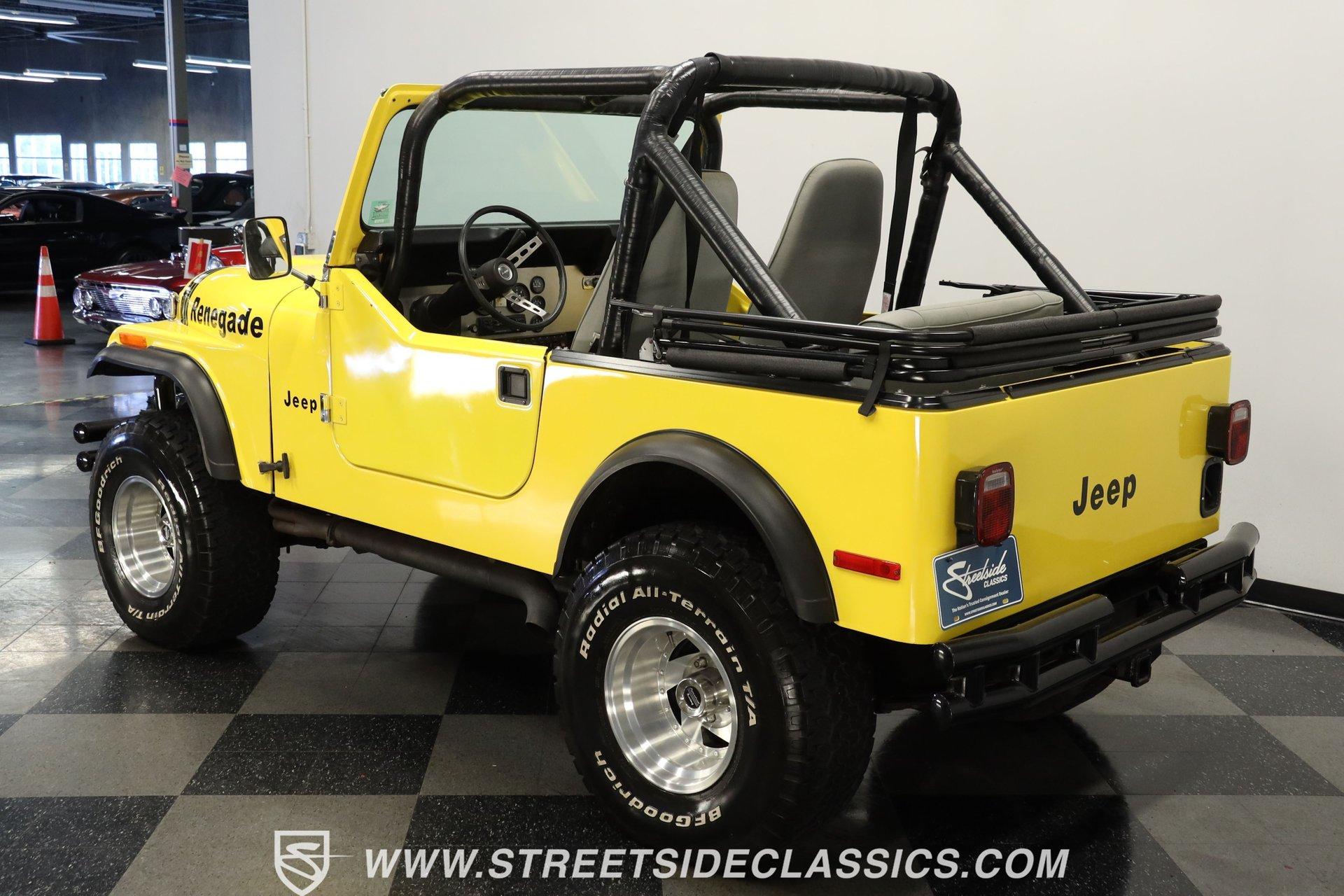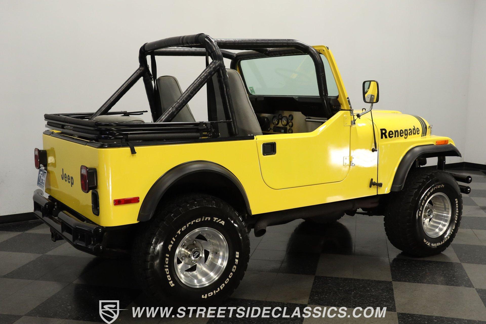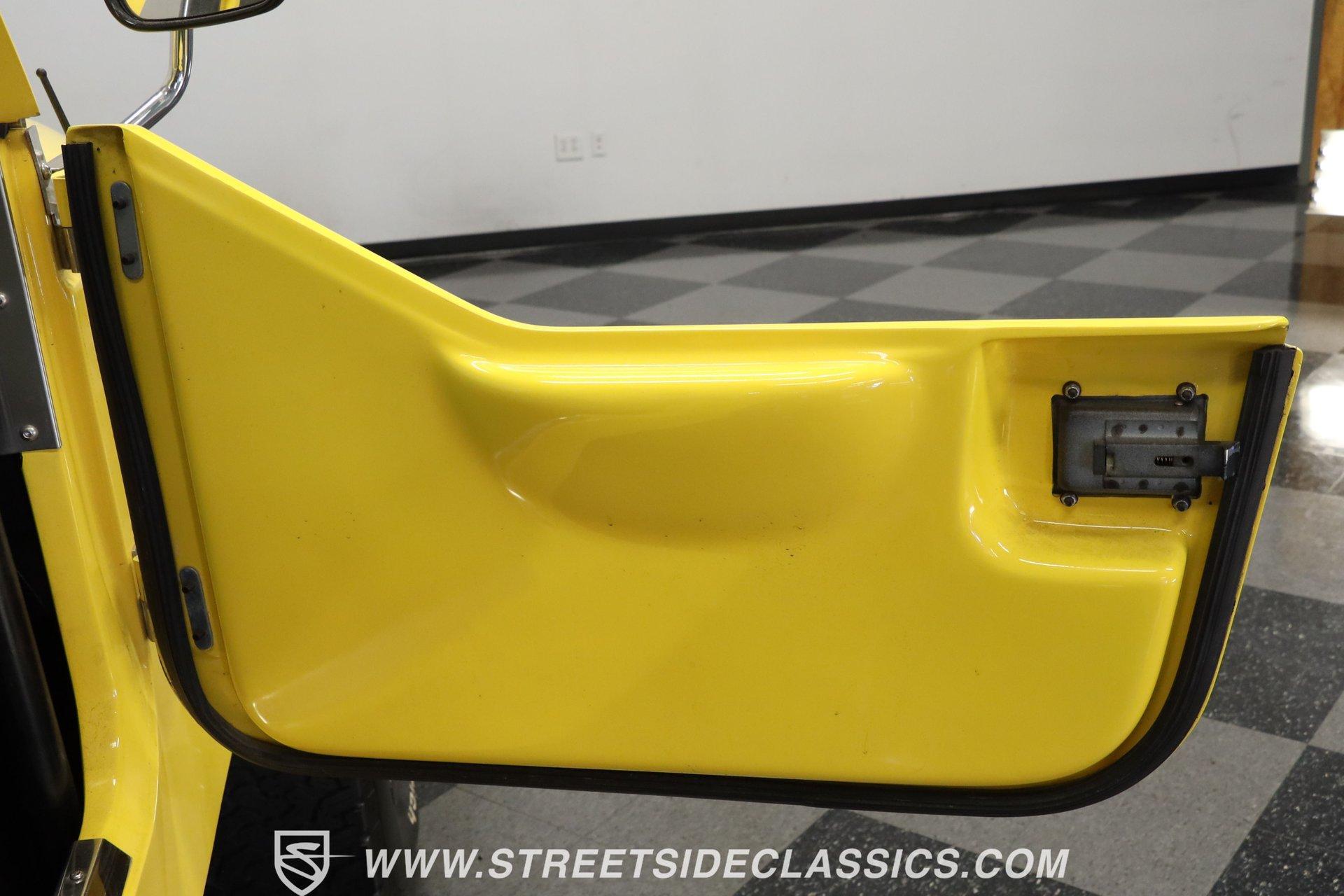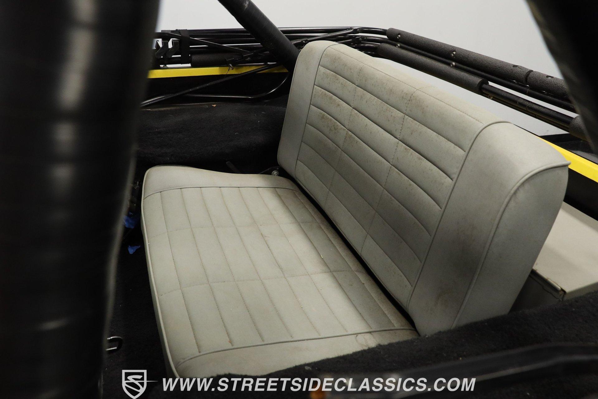 5084-TPA 1976 JEEP CJ7 Rugged yellow fiberglass panels showcase American exploration at its finest on this 1976 Jeep CJ7, built for conquering wilderness trails and mountain passes. The vibrant yellow exterior captures the adventurous spirit of backcountry exploration while black plastic fender flares frame massive 33x12.50R15LT tires mounted on 15" ARE slotted alloy wheels. Off-road capability extends with heavy-duty bumpers while a black soft top adds all-weather versatility. The tilt-back hood provides easy access while the entire fiberglass body construction offers lightweight durability for tackling rough terrain. Gray all-weather seat fabric adorns the interior, creating a functional space for outdoor adventures. The dash features a clean pad with upgraded gauges and switches for monitoring trail conditions, while the small dash speakers connect to the cassette receiver for wilderness soundtrack options. A matching padded center console complements the black carpet that maintains its deep color despite outdoor use. The full roll bar with padding provides crucial protection during difficult trails, while front seatbelts secure passengers during steep ascents and descents. Powering through mountain trails comes courtesy of a 360 V8 engine paired with a TH400 3-speed automatic transmission for effortless crawling over obstacles. The engine bay presents cleanly with aluminum intake and heads, QFT 4-barrel carburetor, and MSD ignition for reliable starting at any elevation. Power steering and brakes with front discs provide confident control when navigating difficult terrain. Headers connect to dual side pipes, producing an exhaust note that echoes through canyons and valleys as this CJ7 conquers the wilderness. HIGHLIGHTS: 360 V8 Engine TH400 3-Speed Automatic Transmission QFT 4-Barrel Carburetor Aluminum Intake & Heads MSD Ignition Headers with Dual Side Pipes Power Steering Power Front Disc Brakes 4X4 Drivetrain Yellow Fiberglass Body Black Soft Top Heavy-Duty Bumpers Black Plastic Fender Flares 15" ARE Slotted Alloy Wheels with 33x12.50R15LT Tires Tilt-Back Hood Gray All-Weather Seat Fabric Black Carpet Padded Center Console Upgraded Gauges & Switches Cassette Receiver with Dash Speakers Full Roll Bar (Padded) Whether conquering dusty desert trails or fording mountain streams, this 1976 Jeep CJ7 delivers classic American 4x4 capability with V8 power and automatic convenience. The iconic CJ7 design combines with thoughtful upgrades like aluminum heads and fiberglass construction to create a genuine off-road vehicle ready for your next wilderness expedition. Call today! We can assist you with getting an Extended Vehicle Service Plan from Freedom Warranty, which provides comprehensive coverage that can save thousands of dollars on unexpected repairs. Inquire for more details and pricing!