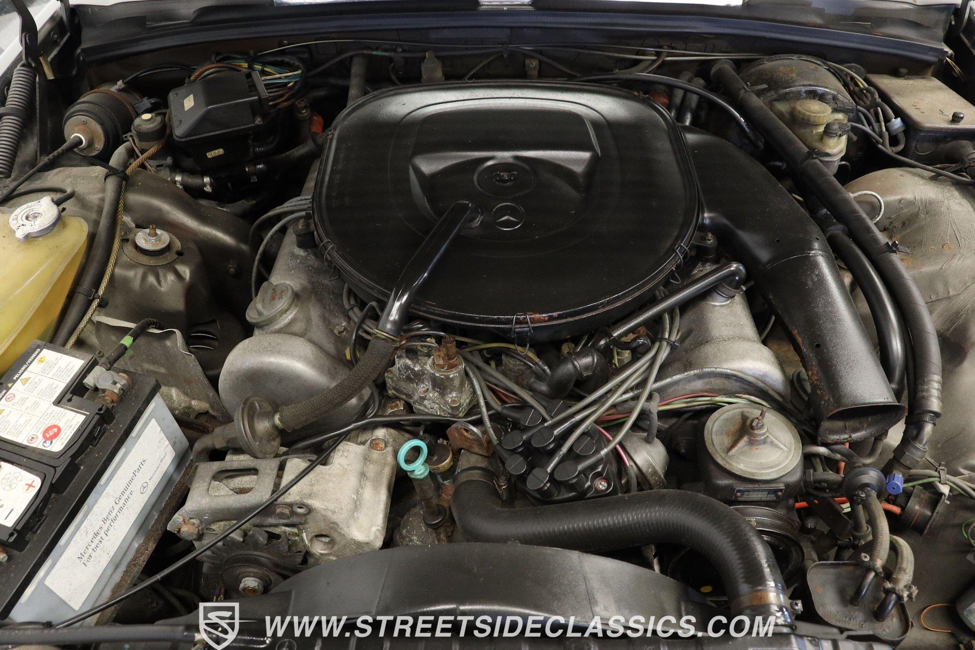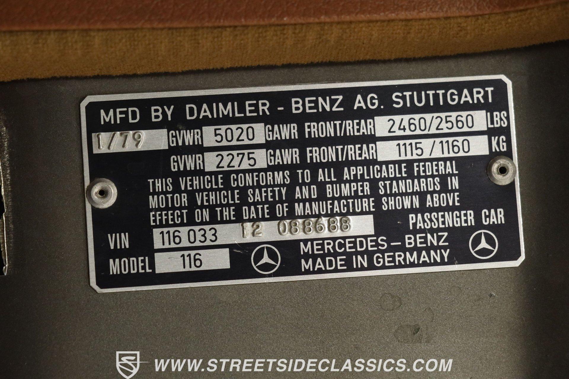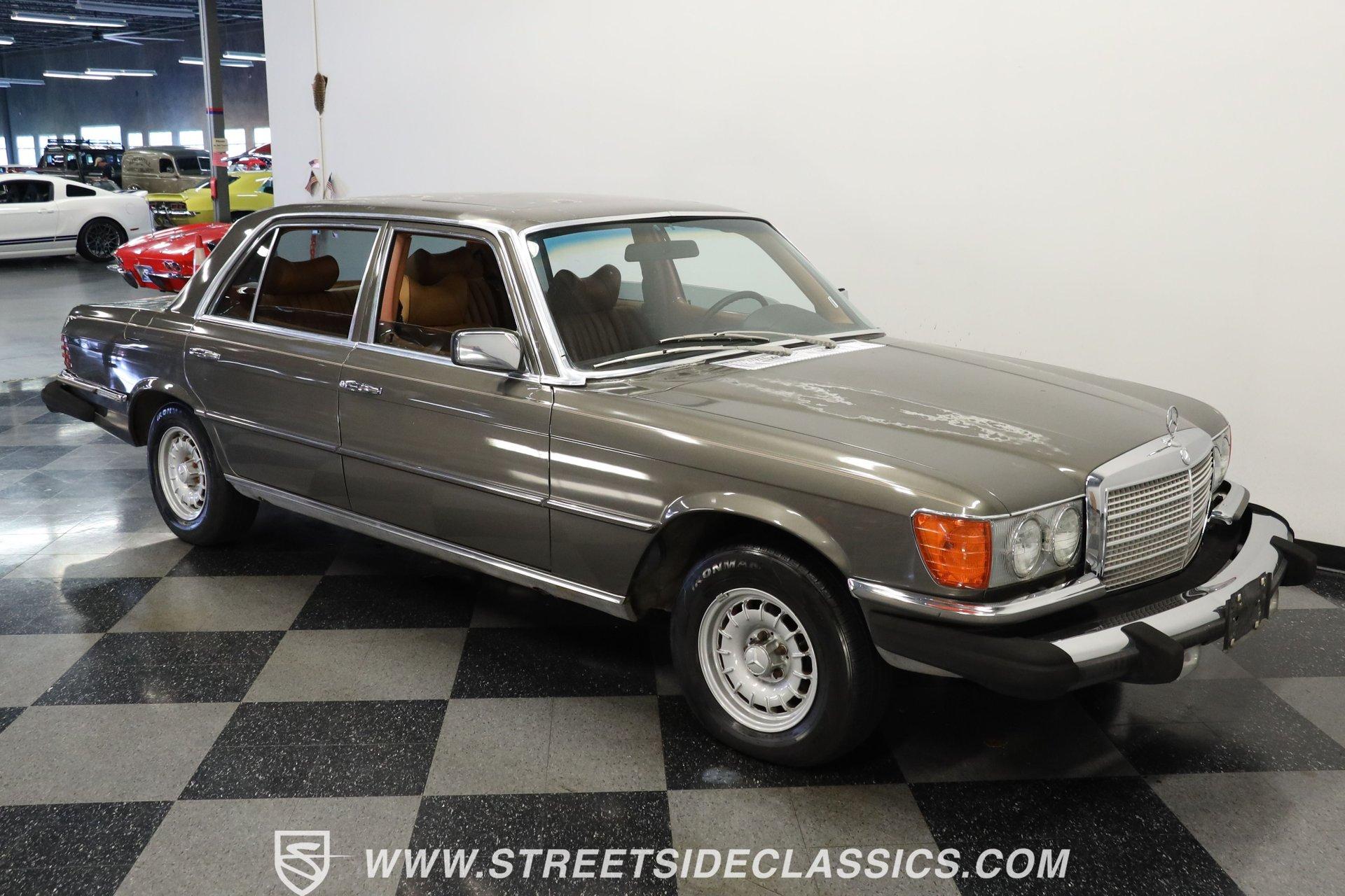 5074-TPA 1979 MERCEDES-BENZ 450SEL Expertly crafted with Germanic precision, this 1979 Mercedes-Benz 450SEL presents an authoritative Dark Gray Metallic finish. The three-pointed star proudly leads the way, firmly establishing this sedan's prestigious bloodline. Angular yet elegant body lines create a sophisticated profile that only Mercedes-Benz could perfect during the late 70s. Factory 14" Mercedes wheels maintain authentic European road presence, fitted with 205/70R14 tires for proper grip. Four doors offer access to luxury while distinctive stacked headlights and well-proportioned chrome bumpers complete the unmistakable W116 S-Class aesthetic that made these cars automotive royalty among executives worldwide. German luxury permeates throughout the Saddle Tan vinyl interior where every control was engineered for driver satisfaction. Bucket seats show excellent preservation with firm yet comfortable support that only Mercedes could design. The uncracked dashboard houses crystal-clear gauges displaying information with trademark Teutonic precision. Wood trim accents surround the console-mounted shifter, adding old-world craftsmanship to the driving environment. Numerous luxuries abound including power windows, door locks, and the highly desirable Becker Mexico radio. Cold R12 air conditioning maintains ideal cabin temperature regardless of outside conditions, exactly as Mercedes engineers intended. German V8 muscle comes courtesy of the 4.5 Liter engine with sophisticated electronic fuel injection providing smooth, authoritative power delivery. The 3-speed automatic transmission shifts with calculated precision expected from Stuttgart's finest automobiles. Four-wheel power disc brakes bring this executive sedan to controlled stops while power steering gives directional control with minimal effort. Independent suspension with rear coilovers delivers that signature floating-on-air sensation that defined Mercedes-Benz luxury during this golden era. The well-maintained engine compartment shows careful attention with factory-correct components throughout. HIGHLIGHTS: 4.5 Liter V8 Engine Electronic Fuel Injection 3 Speed Automatic Transmission 4-Wheel Power Disc Brakes Independent Suspension with Coilovers (Rear) Power Steering Dual Exhaust Dark Gray Metallic Paint Chrome Bumpers 14" Factory Mercedes Wheels in 205/70R14 Front and Rear Tires Sunroof Saddle Tan Interior with Bucket Seats Console Shifter Center Console Becker Mexico Radio Power Windows Power Door Locks Cold R12 Air Conditioning Few automobiles combine luxury and engineering excellence like this 1979 Mercedes-Benz 450SEL. From its powerful V8 to the refined interior, this German masterpiece offers authentic European craftsmanship during an era when cars were built without compromise. Call today! We can assist you with getting an Extended Vehicle Service Plan from Freedom Warranty, which provides comprehensive coverage that can save thousands of dollars on unexpected repairs. Inquire for more details and pricing!