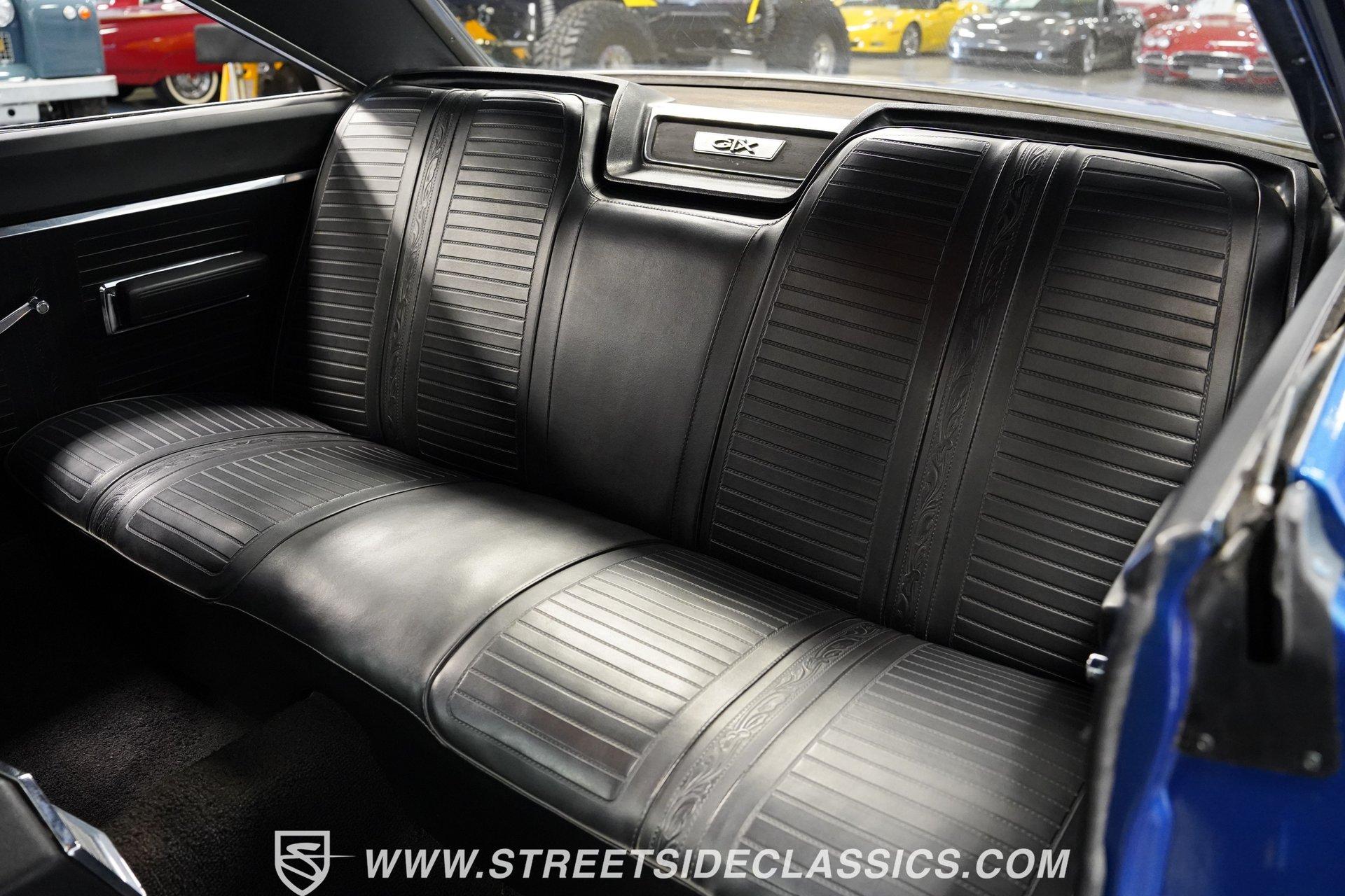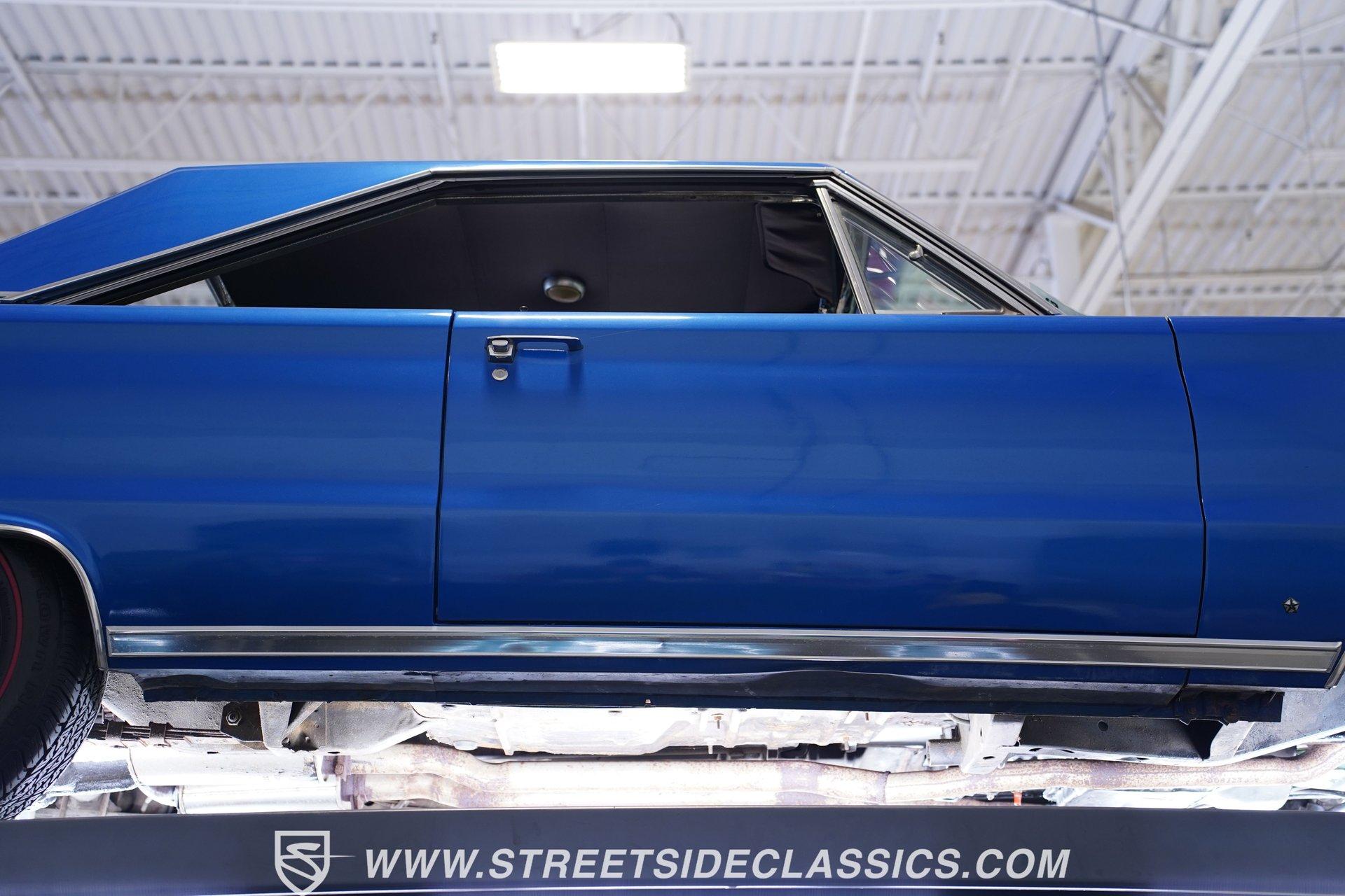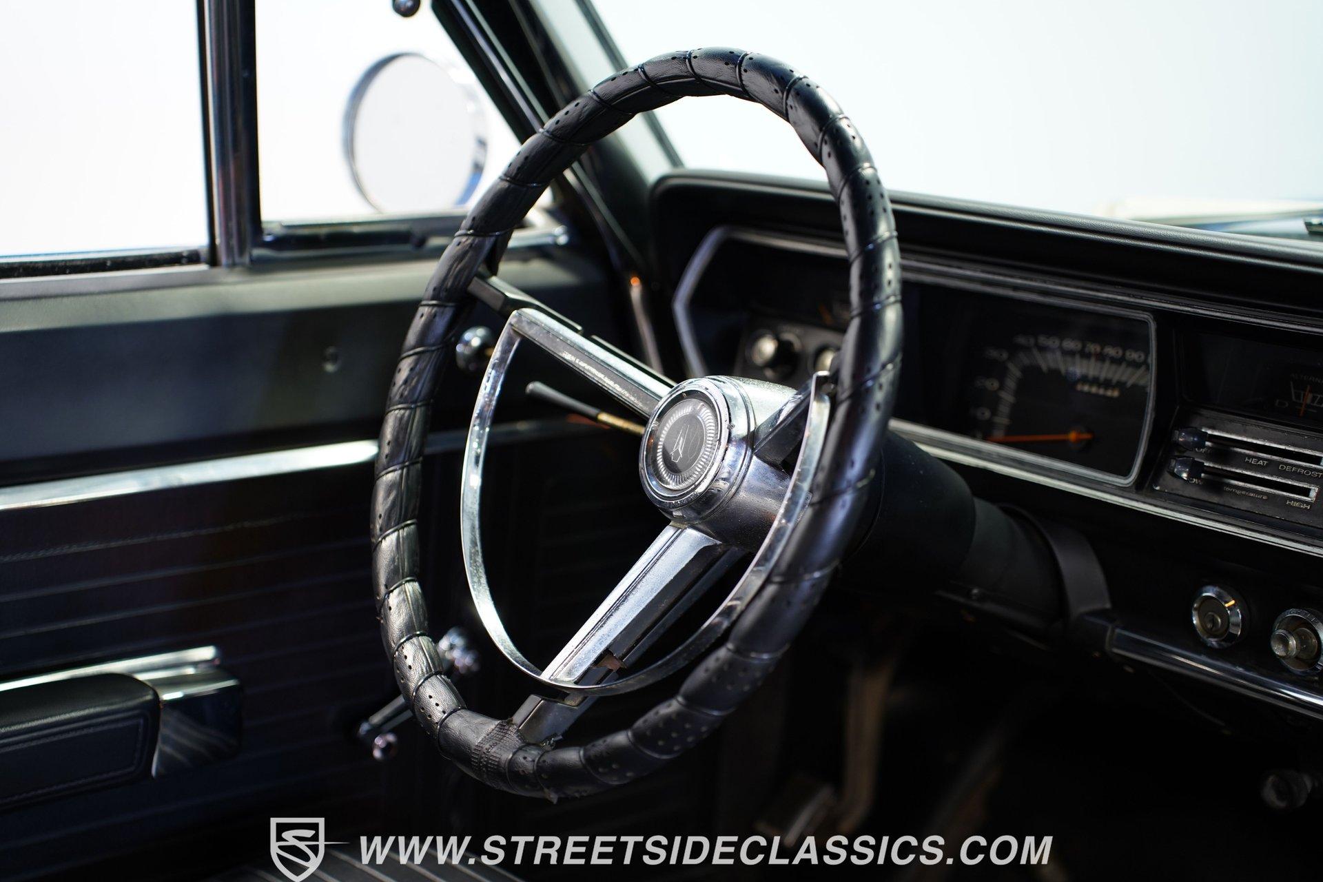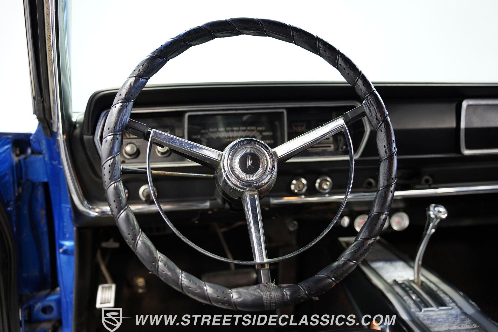 Born in 1967 as the inaugural year of Plymouth's performance flagship, this GTX shows off its blue finish with authority. The two-door design features clean, uncluttered lines that allow the color to make its statement without unnecessary distractions. Chrome accents around the windows and bumpers provide perfect contrast against the blue background. The factory-styled 15-inch wheels wear 225/70R15 tires and give this muscle machine its planted stance. GTX badging on the sides and rear announce what you're looking at - pure American muscle from Plymouth's golden age. Black leather creates a bold contrast inside this GTX. The bucket seats offer lateral support during quick cornering while the console-mounted shifter falls naturally to hand. The dash presents information clearly through the gauge cluster with its 5-digit odometer. Door panels display a distinctive floral pattern that adds visual interest without being flashy. The center console adds both function and style to the cabin layout. Black carpeting covers the floor area while the headliner remains properly attached above. Every detail works together in a unified black color scheme that lets you focus on the driving. A massive 440 cubic inch V8 gives this GTX its go-fast credentials. Cast on October 25, 1966, this period-correct big block breathes through a single four-barrel carburetor mounted on an Edelbrock Performer intake manifold. The engine bay shows off polished valve covers and a 440 Super Commando air cleaner for improved airflow. An A727 TorqueFlite 3-speed automatic transmission handles the power without fuss. Dual exhaust with aftermarket mufflers produces the appropriate V8 sound. Power steering combines with power brakes for easy control, while torsion bars with a sway bar manage the handling dynamics. HIGHLIGHTS: 440 V8 Engine A727 TorqueFlite 3-Speed Automatic Transmission Single 4-Barrel Carburetor Edelbrock Performer Intake Manifold 440 Super Commander Air Cleaner Dual Exhaust with Aftermarket Mufflers Power Drum Brakes 8 3/4 Rear Axle Torque-arm Front Suspension Torsion Bar Rear Suspension with Sway Bar Blue Exterior 15" Wheels in 225/70R15 Tires Black Leather Bucket Seats with Console Power Steering 5-Digit Odometer Factory Radio in Trunk Floral Pattern Door Panels Extra Wiper Motor This 1967 Plymouth GTX offers exactly what muscle car fans want - a mighty 440 V8, easy-shifting automatic, and comfort options in a great-looking package. One drive in this blue bruiser with its black leather interior will make you understand why GTX became legendary. Call today!